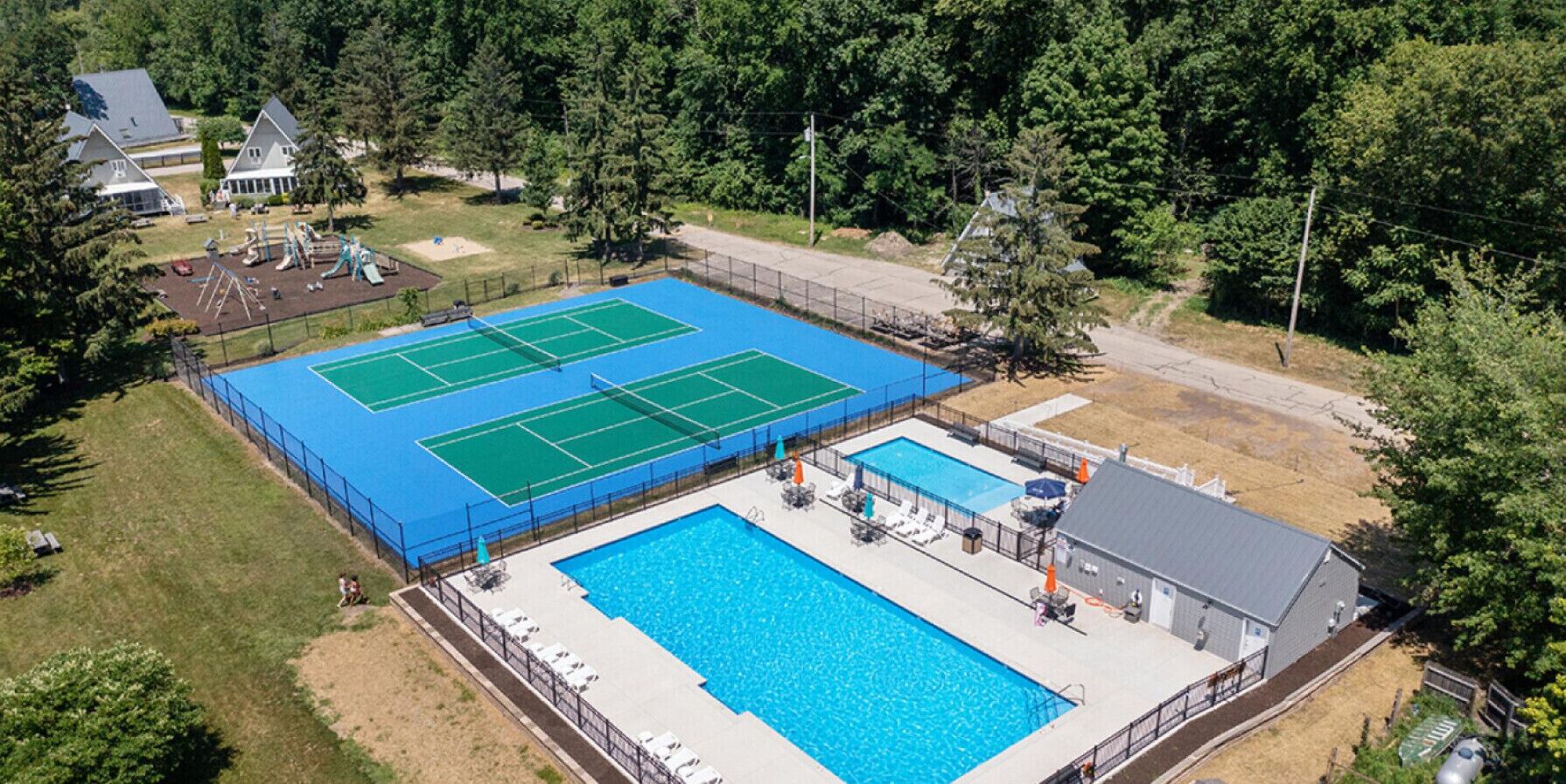 Does Lakefront Chalet #29 w/ Beach Access, Pools, Sport Courts, Fishing Pond & more! have a pool?