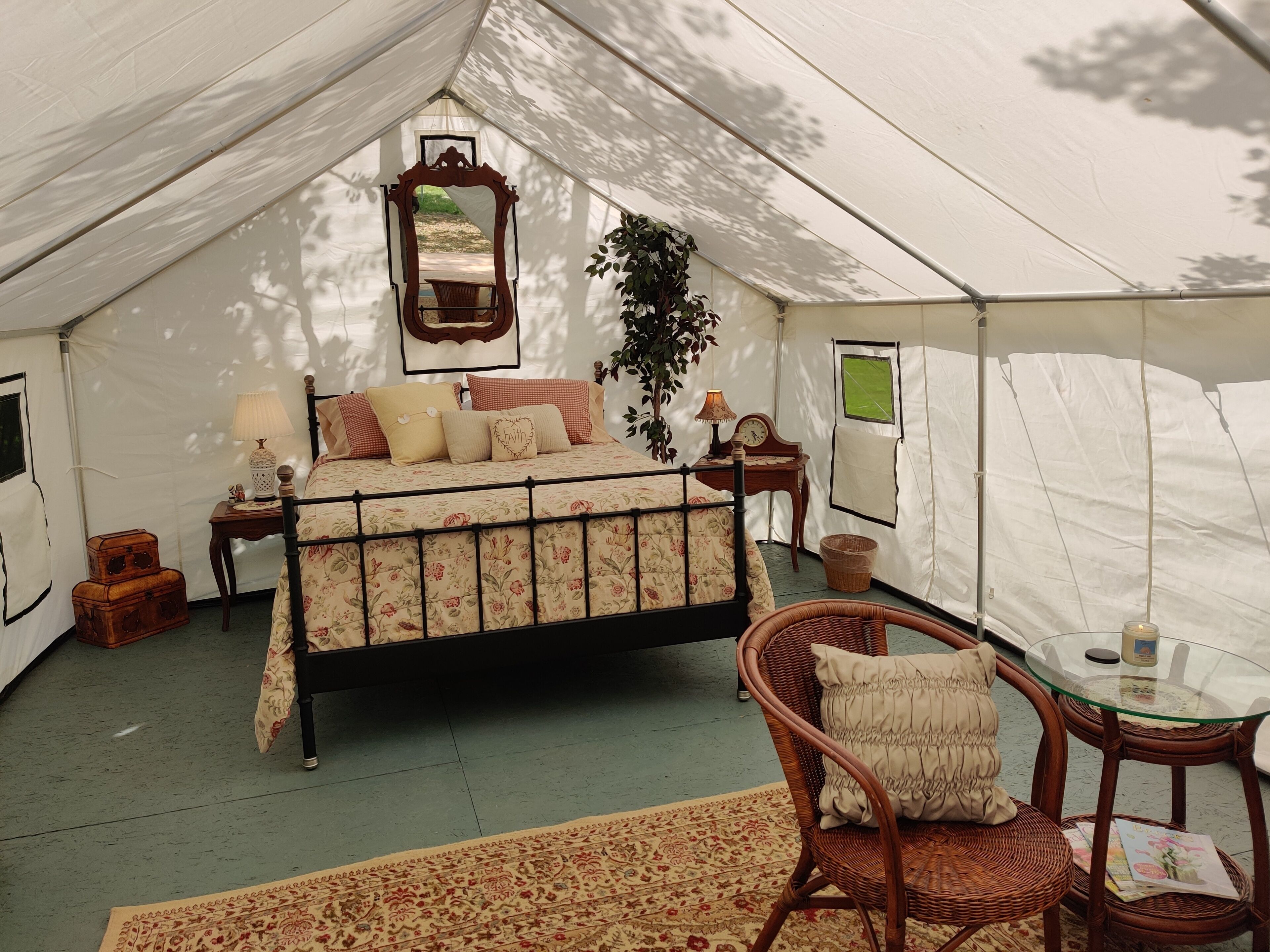 Victorian Dream, glamping by the river, 2 miles from Quinn's Hot Springs Resort. Peace of Paradise is what you'll find in 1 of our 5 quaint and cozy Glamping tents along the river, overlooking the spectacular river views! It's surreal beauty from every angle, tranquil peace and calm! A short walk takes you to the rivers edge where Bass and Pike are a delight to every fisherman! Your experience inc...