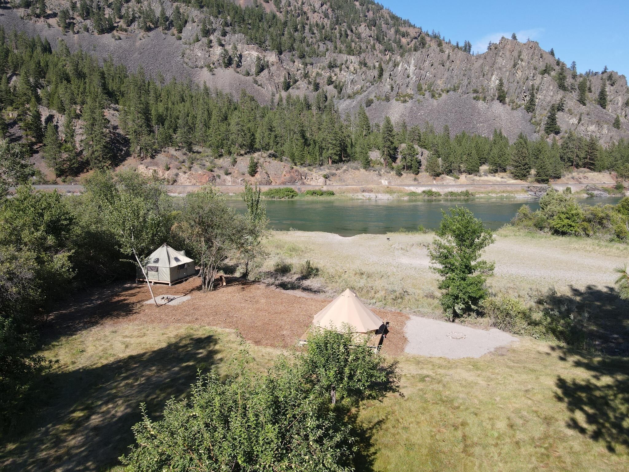 Victorian Dream, glamping by the river, 2 miles from Quinn's Hot Springs Resort. Peace of Paradise is what you'll find in 1 of our 5 quaint and cozy Glamping tents along the river, overlooking the spectacular river views! It's surreal beauty from every angle, tranquil peace and calm! A short walk takes you to the rivers edge where Bass and Pike are a delight to every fisherman! Your experience includes, but is not limited to, an open fire pit for cooking, table and chairs for eating, drinking water, dishwater, river and mountain views from your site, lamps, phone charger port, shared shower house and clean porta potties. Kayaking, paddle boarding, swimming and relaxing are a few of the charming delights just out your front door. Can't pull yourself away from the glacier blue river views, the charming old fruit trees in the lawn and the cozy campfire at night! Experiencing the western trains rumbling down the valley is a highlight to many campers. (There are no Railroad crossings or air horns near our property.) Just a short 2 miles down the road, a mineral soak awaits you at Quinn's Hot Springs Resort. You can also enjoy a cute, best in the west ice cream shop ten minutes away in the town of Wild Horse Plains, a darling old town which also hosts antique shops, grocery, hardware, hospital and so much more! The old and fascinating town of Thompson Falls and a local Bison range, are less than an hrs drive away!We also host listings;https://www.vrbo.com/2909627?unitId=3481667https://www.vrbo.com/3379559?unitId=3952684https://www.vrbo.com/3364936?unitId=3938061https://www.vrbo.com/3383893?unitId=3957021