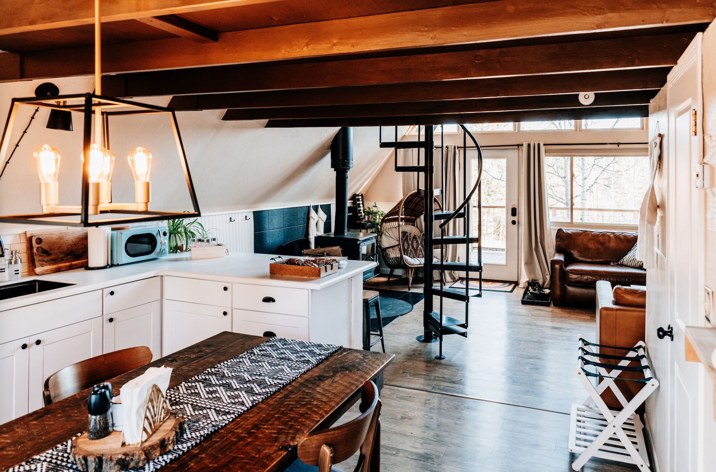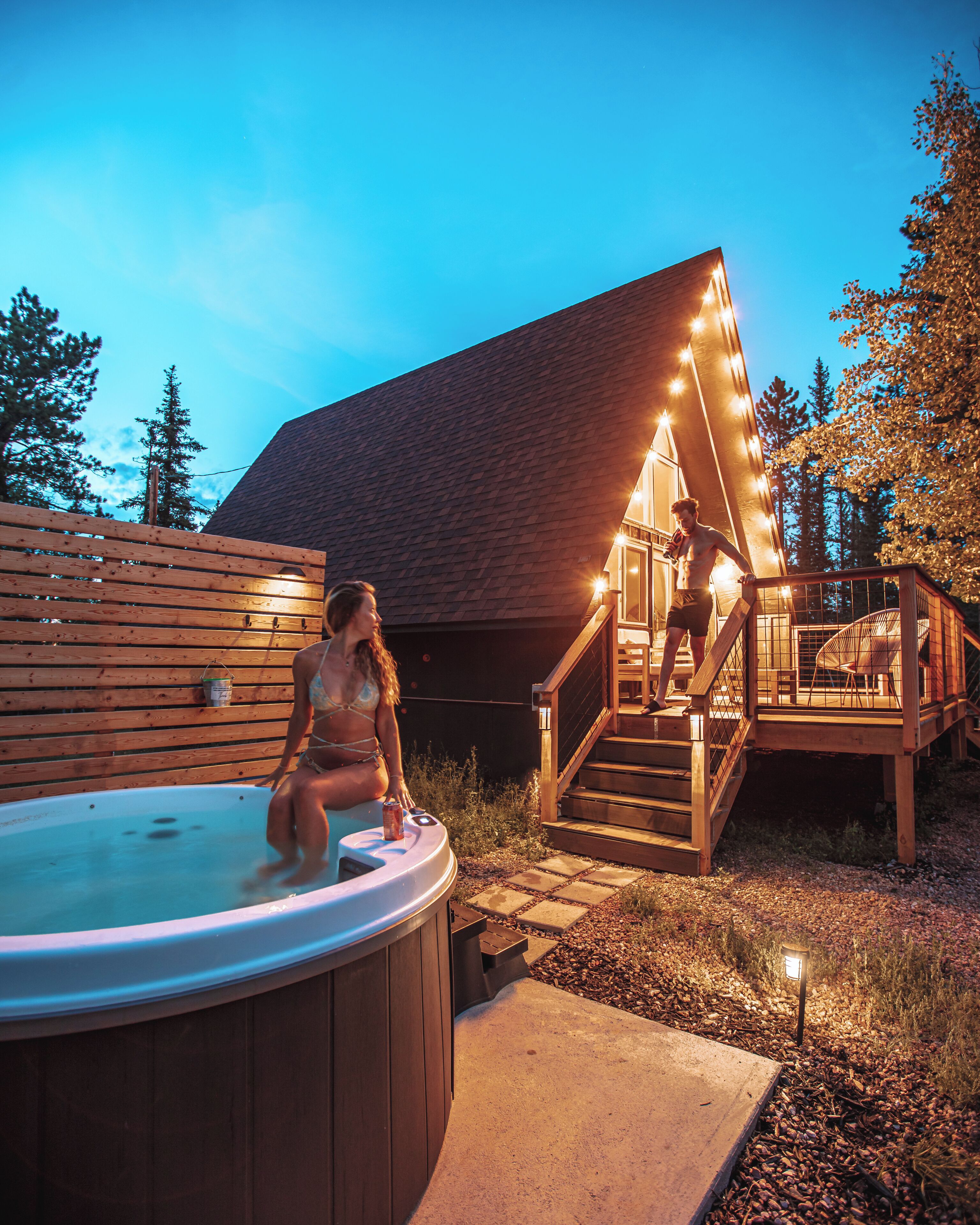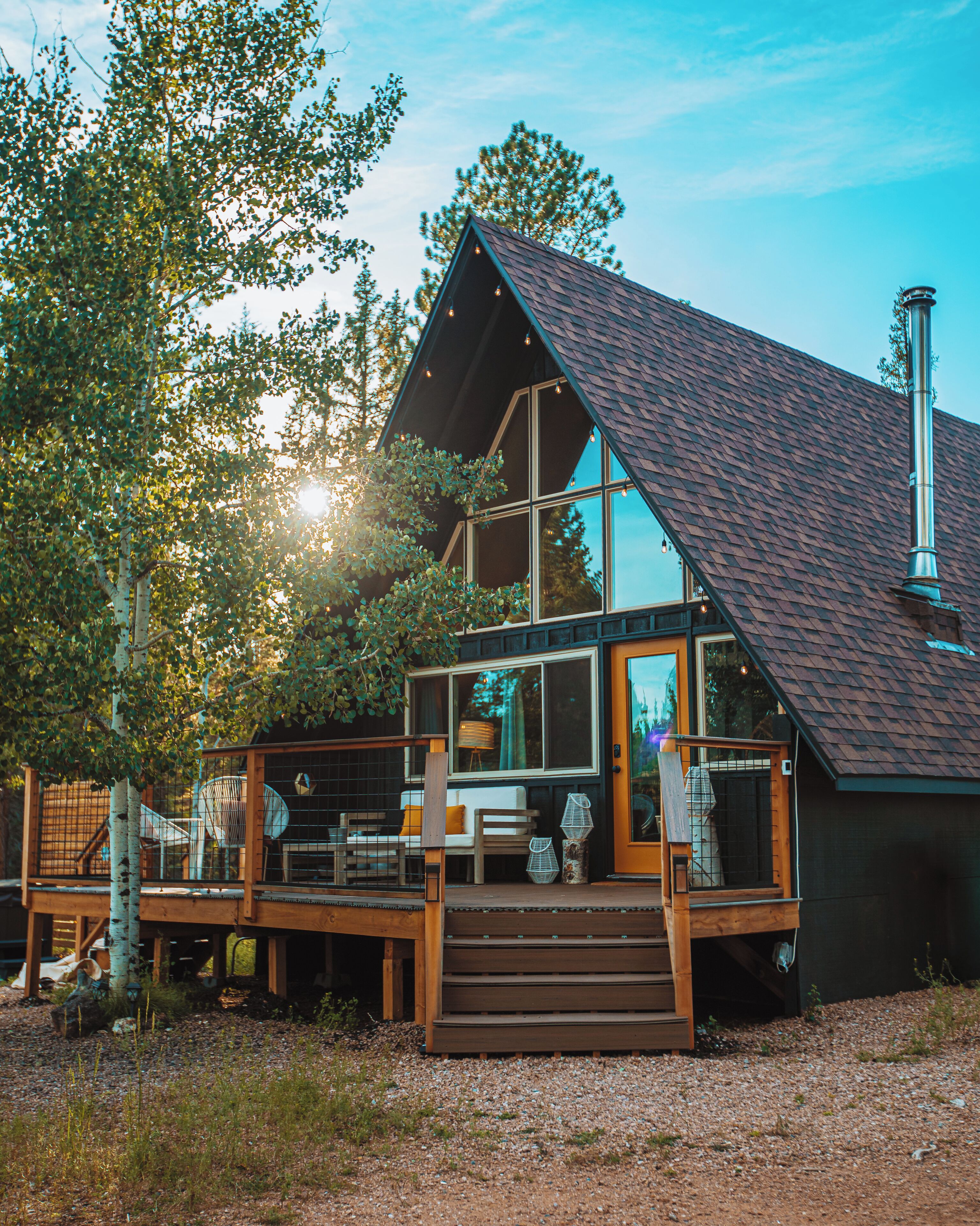 Rainbow Trail //A-frame This recently renovated A-Frame is situated on 2 acres of forested land, surrounded by aspen and pine trees, offering a serene mountain retreat. You can relax and unwind while soaking in a private hot tub, warming up by a wood-burning stove, or enjoying an outdoor fire pit. Nearby towns are Divide, Florissant, and Woodland Park. The cabin is a 45-minute drive from Colorado Springs, 1 hour and 45 minutes from Breckenridge for skiing, and 2 hours from Denver International Airport (DIA).The spaceNestled in the serene wilderness of Divide, Colorado, this charming A-frame cabin offers an idyllic escape into nature. Surrounded by towering pine trees, the cabin exudes rustic charm while providing modern amenities for a comfortable and unforgettable retreat.Upon entering, guests are greeted by the warm embrace of a wood fireplace, stocked with seasoned logs to create a cozy and inviting atmosphere. The crackling fire provides the perfect backdrop for relaxation after a day of exploring the nearby trails or skiing in the winter months. The fully stocked kitchen beckons culinary enthusiasts to try their hand at creating delicious meals, with ample counter space and a newly remodeled space.The cabin's thoughtful design includes a lofted bedroom with a king bed with a new Helix Mattress, offering a snug and private space for a restful night's sleep. Two pull-out couches in the living area provide additional sleeping arrangements, making the cabin suitable for a small family or a group of friends. Large windows throughout the cabin frame picturesque views of the surrounding woods, bringing the outdoors in and allowing natural light to flood the space.Step outside onto the expansive deck, where a hot tub awaits, promising relaxation under the starlit Colorado sky. Whether it's soaking in the tub or sipping morning coffee surrounded by nature, the deck serves as an extension of the living space, allowing guests to immerse themselves in the beauty of their surroundings fully.This A-frame cabin in Divide, Colorado, is not just a vacation rental; it's a haven for those seeking a tranquil retreat where the simplicity of nature harmonizes with the comforts of modern living. Whether you're curled up by the fireplace, soaking in the hot tub, or stargazing from the deck, every moment spent in this cabin is a moment of serenity and connection with the natural beauty of the Rocky Mountains.Guest accessYou’ll have access to the surrounding woods to explore and gather wood (for the indoor wood-burning stove). The surrounding neighborhood has three ponds and a lake that you can walk around. Fishing and water activities are only available to property owners at this time.Other things to noteImportant (Please Read)!We do NOT accept check-in or check-out on holidays.Absolutely no open fires are allowed. The area's risk of wildfire is too high.The gas firepit out front is available when there is no fire ban. If there is a fire ban, the firepit will be removed. You will be asked to leave immediately if there is any fire activity.PetsWe will allow pets who qualify. At this time we only host dogs. Please message us before booking for our pet policy to see if your dogs qualify. There is an additional fee for bringing a pet to cover the cleaners’ extra time to keep the space fresh for future guests. Please note the only way to the loft is the spiral staircase which is not safe for pets. When we have our pup there he sleeps in the lower level.The roads require AWD or 4WD for November through April (however it can snow in October and in May!). The roads are plowed after 6 inches of snow. You do not need a 4WD or AWD in the summer but be aware that the dirt roads in the neighborhood bumpy!There is no air conditioning unit here. It is very rare in our county to have one installed in a house (even brand-new builds!). The nights are cool in the summer so to cool the house off you can open all the windows and doors, then close them during the day and you stay nice and cool! There are fans provided to help blow the cool air through the cabin.We are at 9,200 feet in elevation — altitude sickness can occur, but you can do things to prevent it and alleviate symptoms, including: Taking a day to rest when you arrive. Drink extra water and stay well hydrated (avoiding alcohol will help). (The tap water is from natural spring water and is delicious and safe to drink.) Wear sunscreen, even when it is cool or cloudy.The spiral staircase is narrow and it can be challenging to cart large luggage up and down. We often keep our luggage on the main level. If you have children, please be extra careful around the staircase (it’s tempting to use it as a play gym, but can be very dangerous).This house is in a neighborhood. While it feels secluded from the front porch, our back-door neighbors are visible from the side and back of the house.