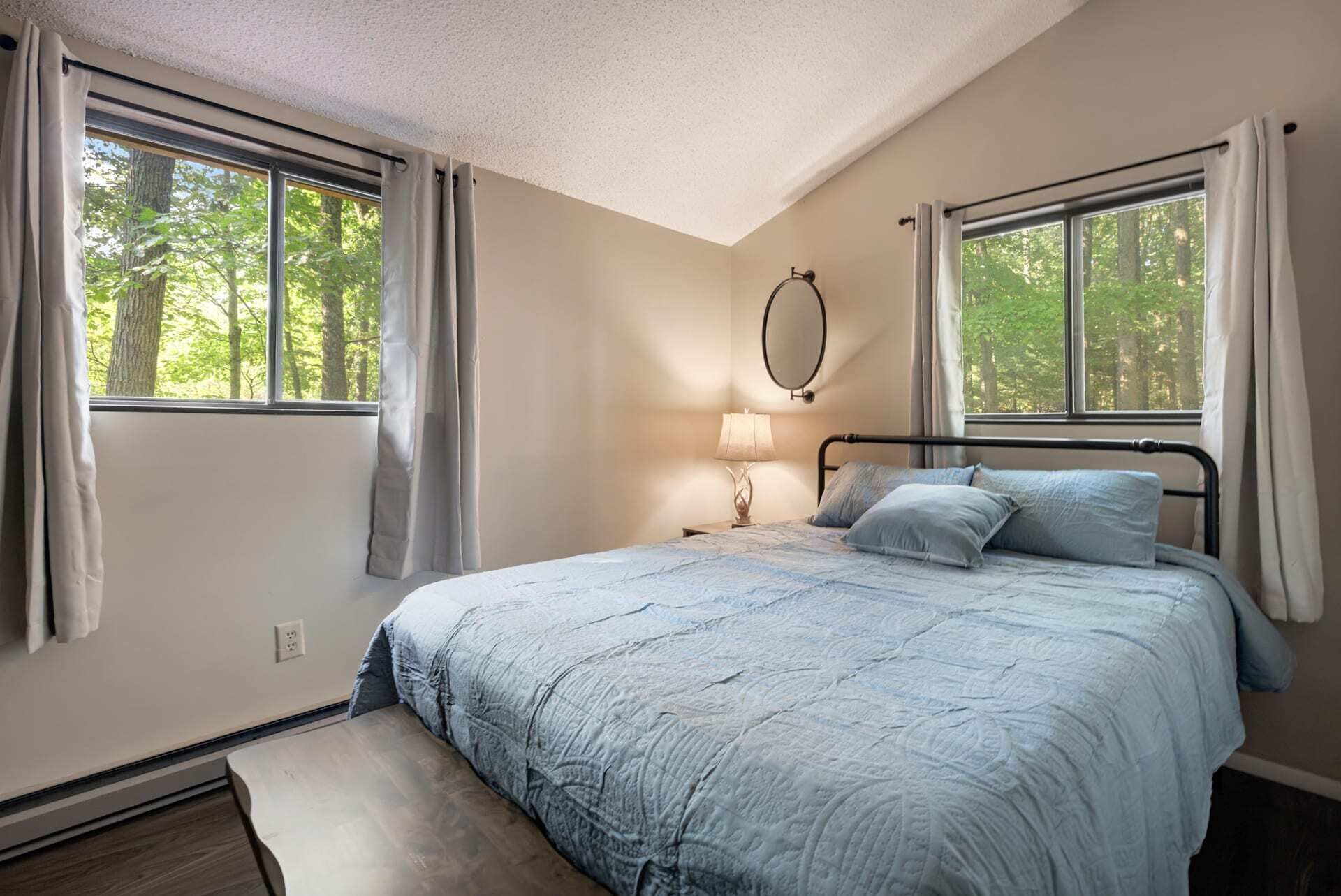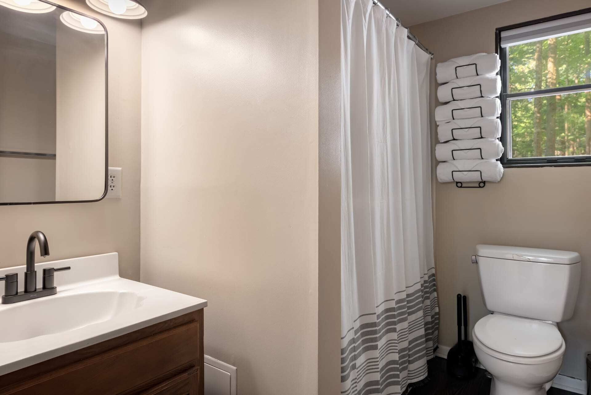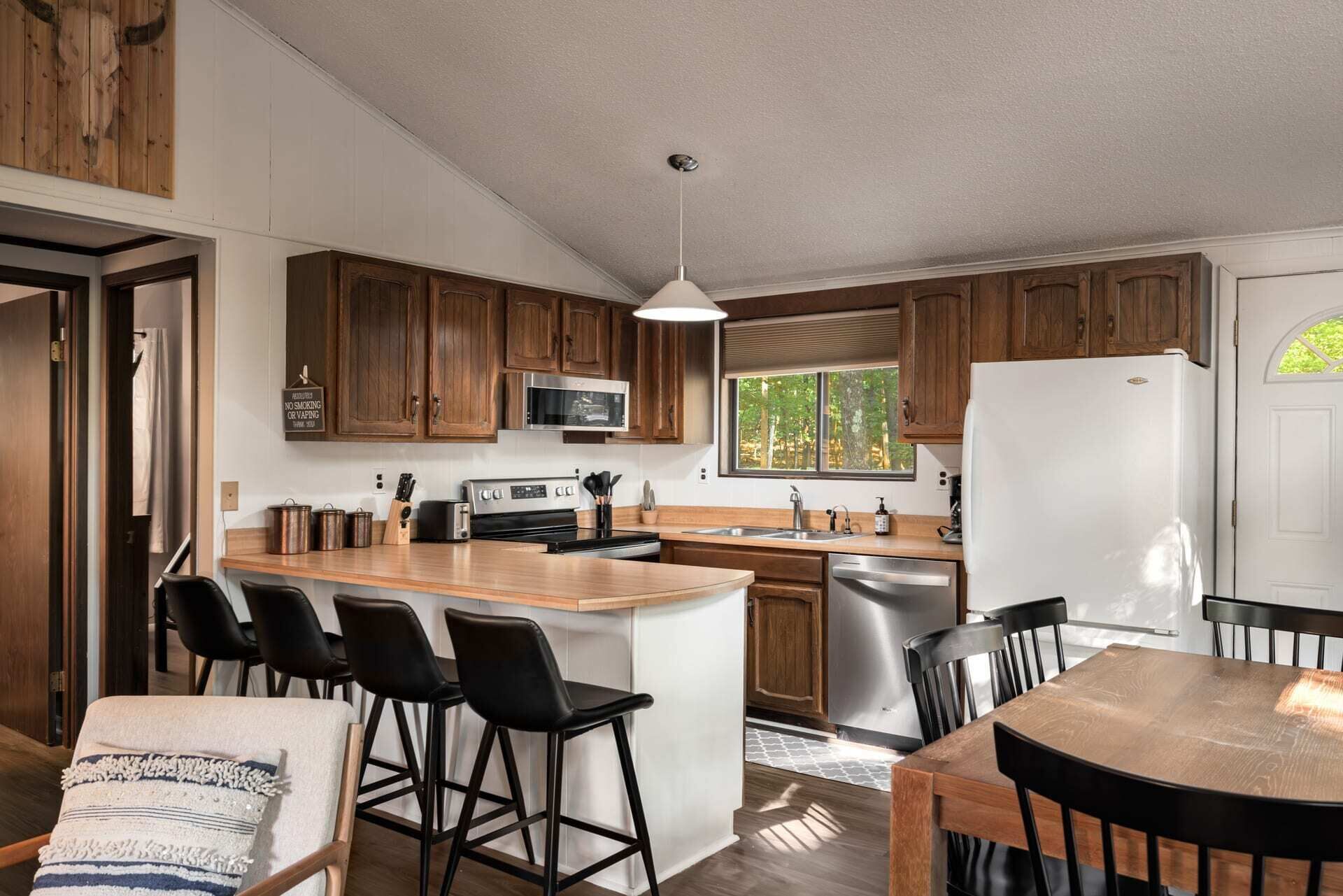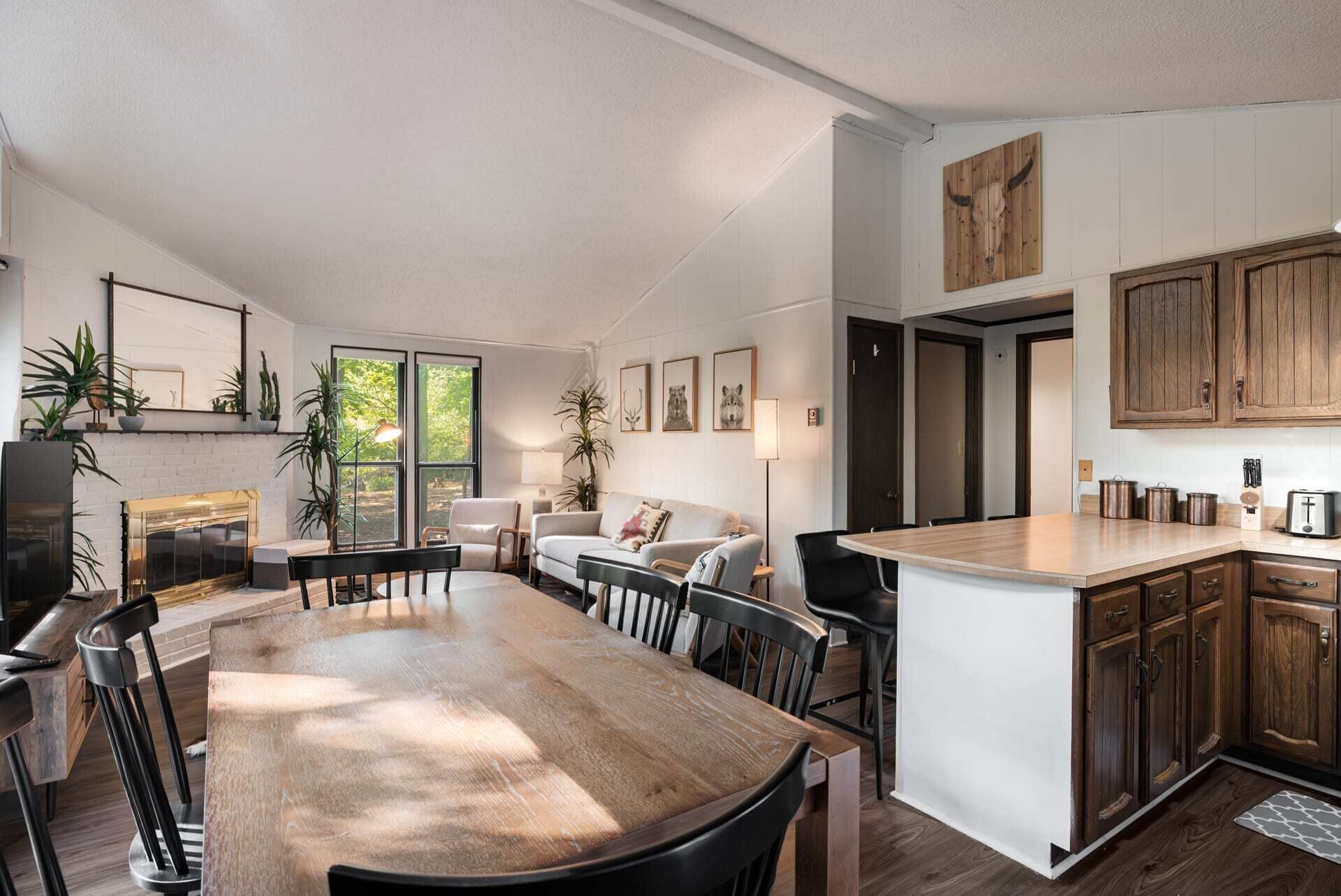 Hot Tub, Fire Pit, Deck, Grill w Resort Amenities Summary:Golden Pines, a bright and cozy chalet with modern touches throughout. Nestled in The Woods Resort - you’re sure to enjoy the amenities. Explore Berkeley Springs and the WV mountains at this unique getaway! The highlights: - Enjoy views from the large great room - Relax or grill on the wraparound deck - Cozy up by the fire pit - Stream movies or take video calls on fast WiFi (100 Mbps) - Drive 15 mins to Berkeley Springs or Cacapon State Park for trails, golfing, fishing, and more.The Space:Golden Pines, updated fully stocked kitchen, large great room with wood burning fireplace, 2 spacious bedrooms, large wraparound porch with grill and access to the Woods Resort (golf, tennis, swimming, and more) - the perfect home away from home for your family, friends or small group. We’re also dog-friendly!The chalet includes: - Open living and dining area - 2 bedrooms (Bedroom 1 - Queen bed, Bedroom 2 - Queen and Twin Combo) - Newly renovated, fully-stocked modern kitchen - 1 Full bathroom with bathtub - Baseboard heat and AC units - Large deck for grilling - Smart TV where you can quickly sign-in to your favorite streaming service - Fast, reliable WiFi that’s more than enough to stream movies and hold video calls Outside you’ll find: - Brand new hot tub! - Fire pit with seating for the whole group - Deck & propane grill - Plenty of parking - Games to enjoy!Our cabin is located in The Woods Resort, a private community with an 18-hole golf course (with low green fees), spa, a restaurant and pub, and miles of walking/hiking trails. It’s considered the best course in the area, and the pub food is pretty great too!Beyond The Woods Resort, there’s plenty to do just a short drive away: - Love the outdoors? Berkeley Springs State Park is home to a mineral spa that has been in use since colonial times. The park is renowned for its warm spring water, which flows at a constant temperature of 74.3 degrees. (15 min drive away) - A little further away is Cacapon State Park a 6,000 + acre nature park great for hiking and exploring (about 25 minutes away) - Looking for good restaurants & shopping? A short drive to Berkeley Springs Brewery, wineries, tea room, cafes, donut shop, art galleries - lots of local favorites - In the summer, head out for a day of fishing, hiking, a round of golf or get on the water – you’ll find a little something for everyone (about 20 mins away) We often take our three little kids and dog to the cabin with us, so we're very family- and dog-friendly. Unfortunately we don't allow cats (we're allergic).This area of West Virginia has so much to offer, and Canary Point is the perfect place – whether you want to explore the area, or just cozy up around the fire and take in the sites. We’d love to host you!