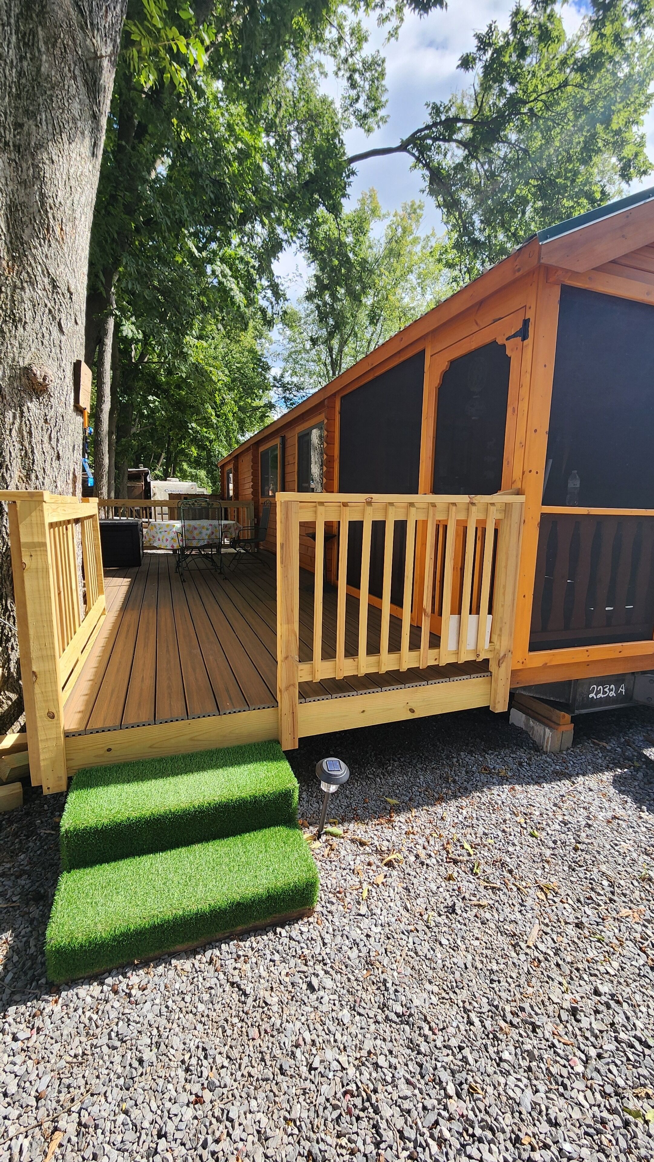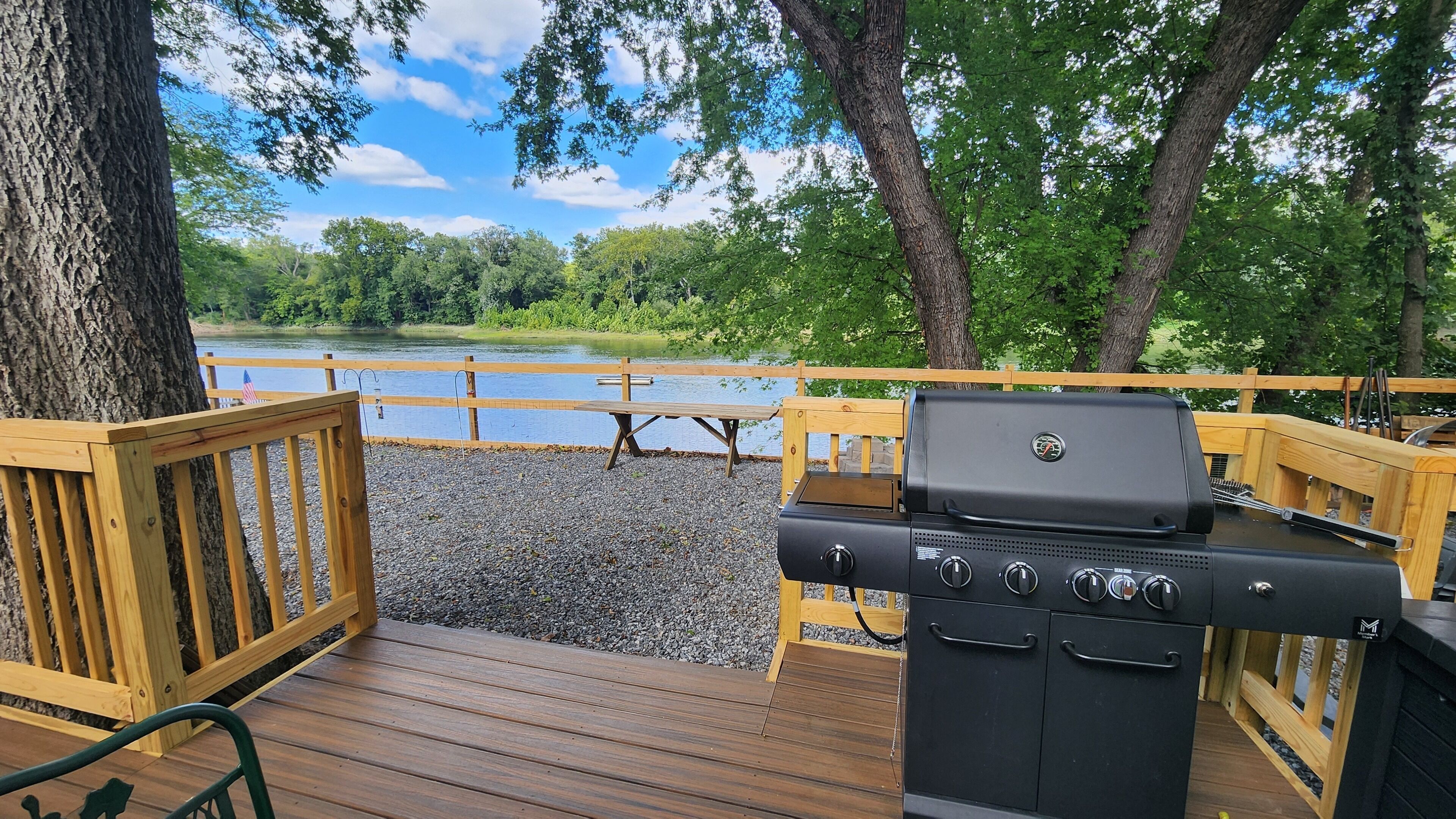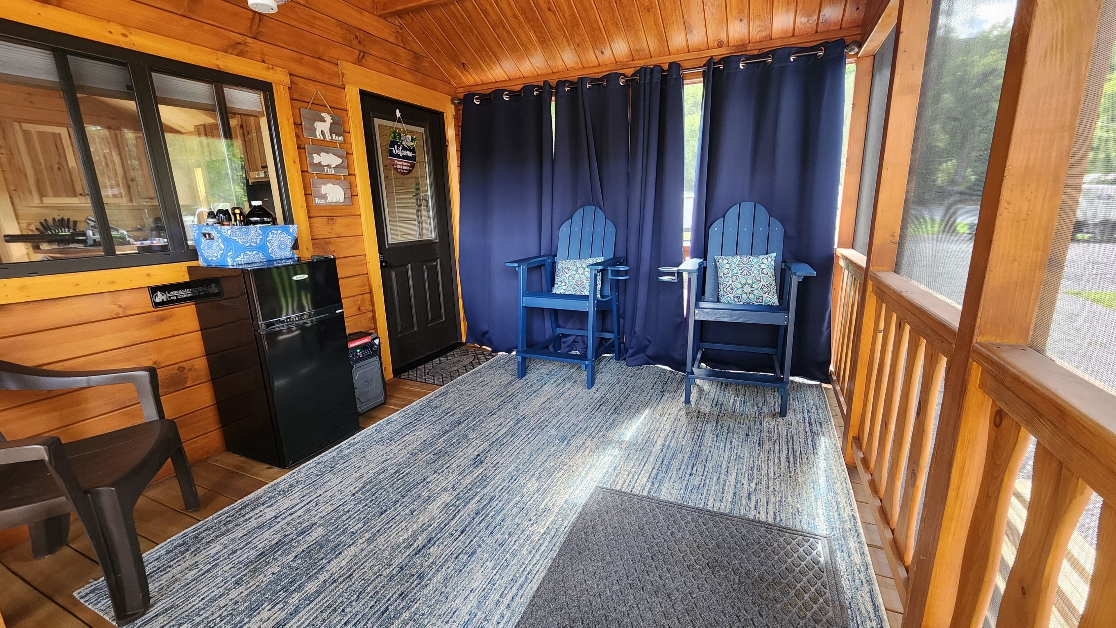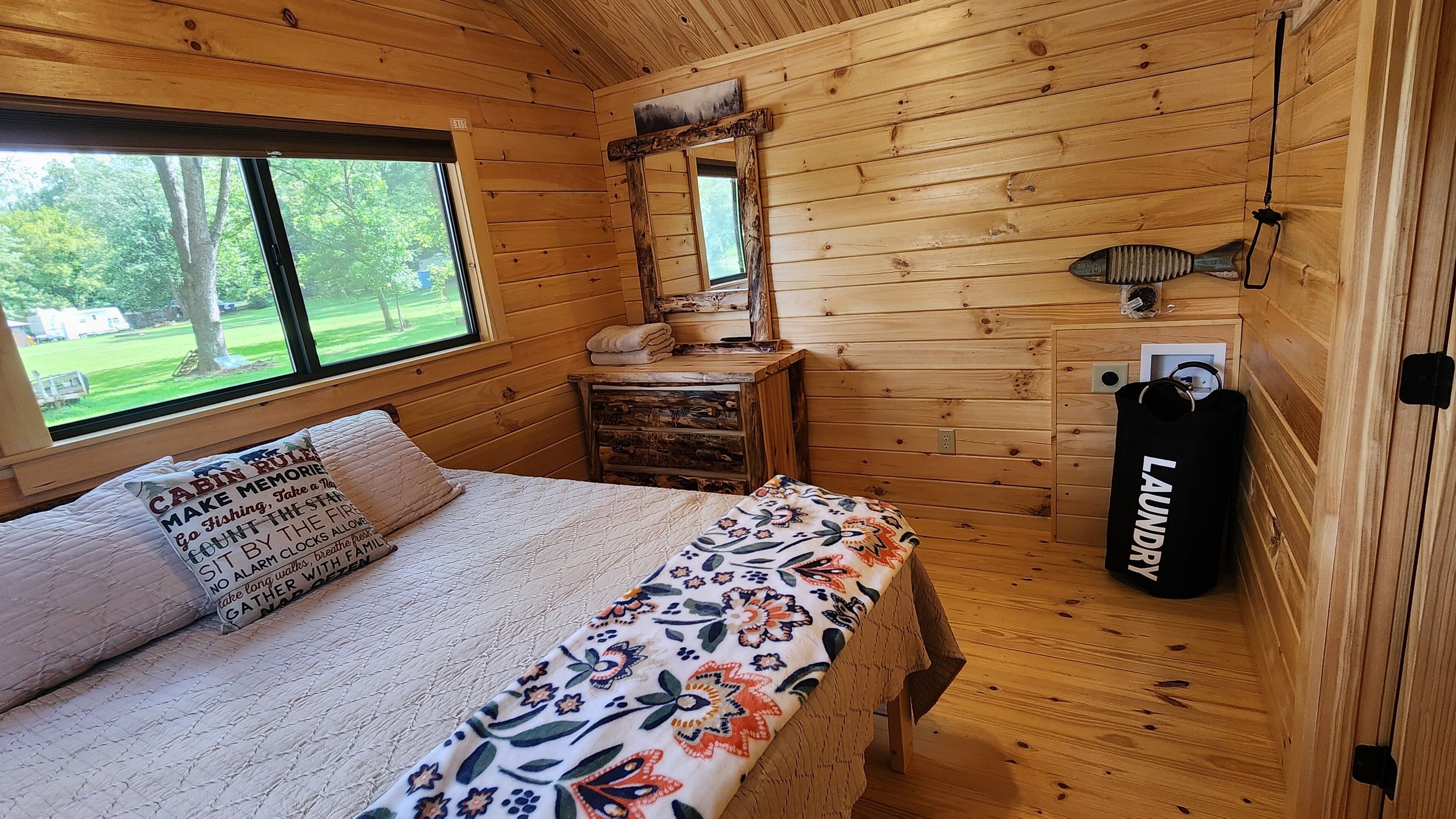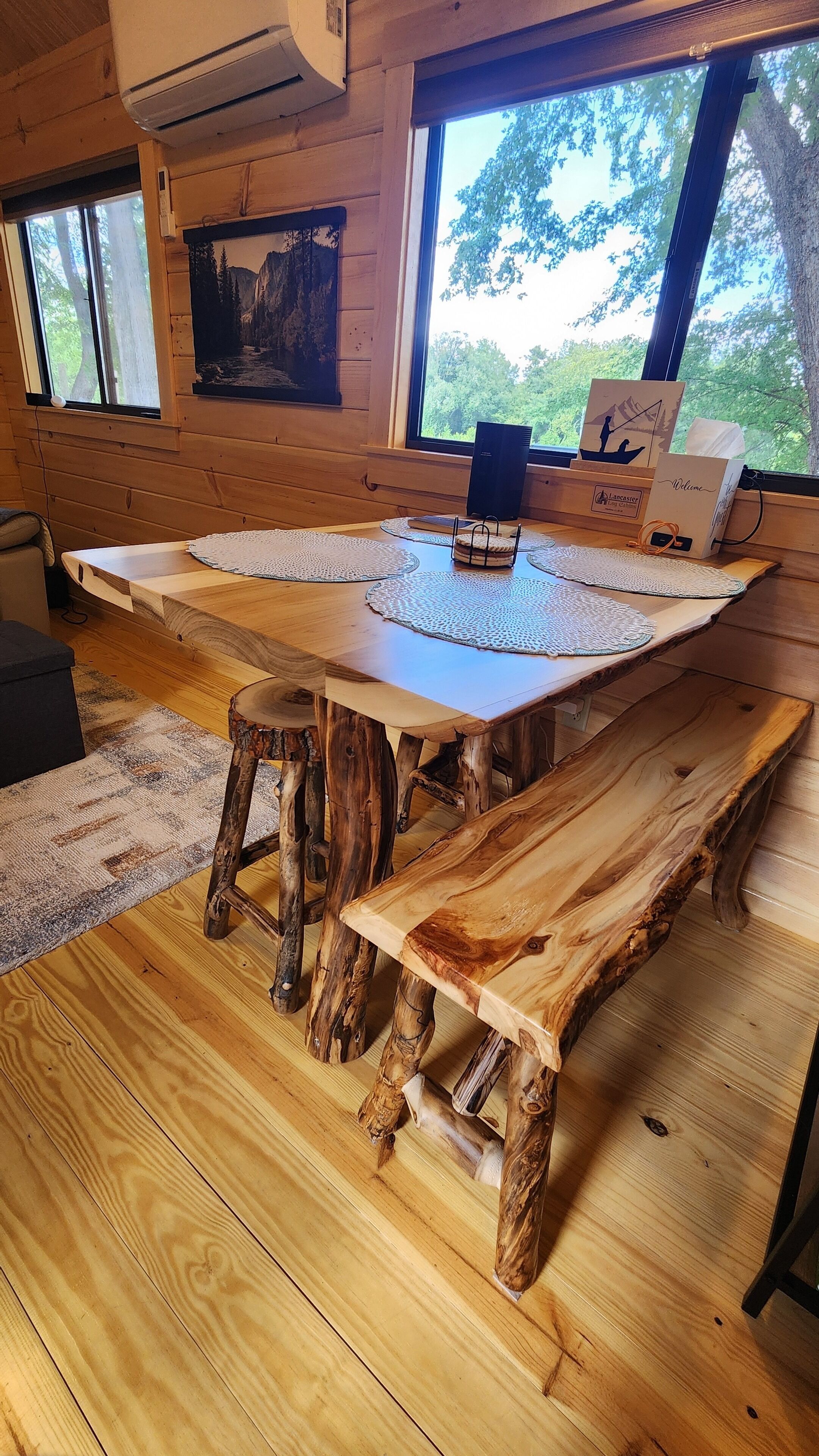 Brand New Riverfront Cabin on the Potomac River - Sure to WOW you Discover the some of Gods beauty in Hedgesville at this really cool cabin facing the water. This cozy retreat features 1 queen bed and 1 bunk bed, perfect for a small group of guests. With AC, heating, and WiFi, you'll stay comfortable and connected. You're sure to make fantastic memories with a stay at our place.Our New Log Cabin is located right on the shallow end of the Potomac River w/ direct access to swim, fish, float, kayak, or just sit in the water. It brings such peace and serenity. Read a book? Take a nap? Have some wine? Smell the fresh cut wood as you enter the door. Take it easy at this unique getaway. The nature watching is quite entertaining. (Don't leave trash or food out) or the nature isn't so entertaining lol Camping at its finest. There is another vacation rental on this property as well, you may book the entire property, perfect for a larger family or gathering. I can message you the link.Fully furnished and stocked with everything you may need.Sit on the deck and watch the birds, there is an Eagle and some Hawks & Herrings you may get to see dive down to feast. The Nature watching is quite entertaining. Perfect relaxing camping here folks. Grill outside after a long day in the water or cook inside with the full kitchen. Two smart Vizio TVs with surround systems to kick back on the reclining loveseat and enjoy a movie. Listen to music, sing with the portable Monster Bluetooth Radio.Summer - Fall go get in the river. Sit, Swim, float, Kayak, Fish and live your best life.Very private November - March. Come for the peace, watch the snow fall on the trees around the river. Our cabin does have 6 seasonal RV lots (April - October) and is surrounded by other families camping and enjoying the outdoors, so you may hear music. Everyone is super friendly and will not bother you but welcome you to hang out if you choose. The deck and steps to the river is the access point for our friends and family that have the RV spots as well. We have a place there we sometimes stay at as well. Our goal for this property is to be able to share the blessing and for others spend time in Gods creation as well.This property is off the beaten path and the water is hard. We do have the best filtration systems, water softener and a uv light to kill bacteria but rarely when the Cabin hasn't been used you "could" smell a sulfur smell that goes away with running the water.A 25-30 minute drive will lead you to Berkeley Springs, Wv. Aka "America's First Spa," check out the natural springs, distinctive shops, dining, theater, live music, and holiday festivities. Berkeley Springs is known to have some of the best spas around. Or take a Hike to Harpers Ferry.You must wear a life jacket while Kayaking and have a fishing license to fish as required by law.There is no lifeguard and you enter the Potomac River at your own risk.Guest accessParking is right behind the cabin in the gravel. Your area is the deck and gravel space in front with the fire pit. This entire area is yours. The Deck and stairs to the river are a shared access point.Other things to notePlease bring your own Queen size sheets. The set that is on, is a secondary mattress protection.The wood floors are still so very soft and dent and scratch easily. Please be very careful and don't roll heavy things across them.We ask you to remove shoes at the door to help keep it as clean as possible.Absolutely no smoking or pets. Ashtrays are provided outside.The wood absorbs smells. If there is smoking of anything, including weed inside there will be an additional $500 cleaning fee to have it removed.Smoke OUTSIDE