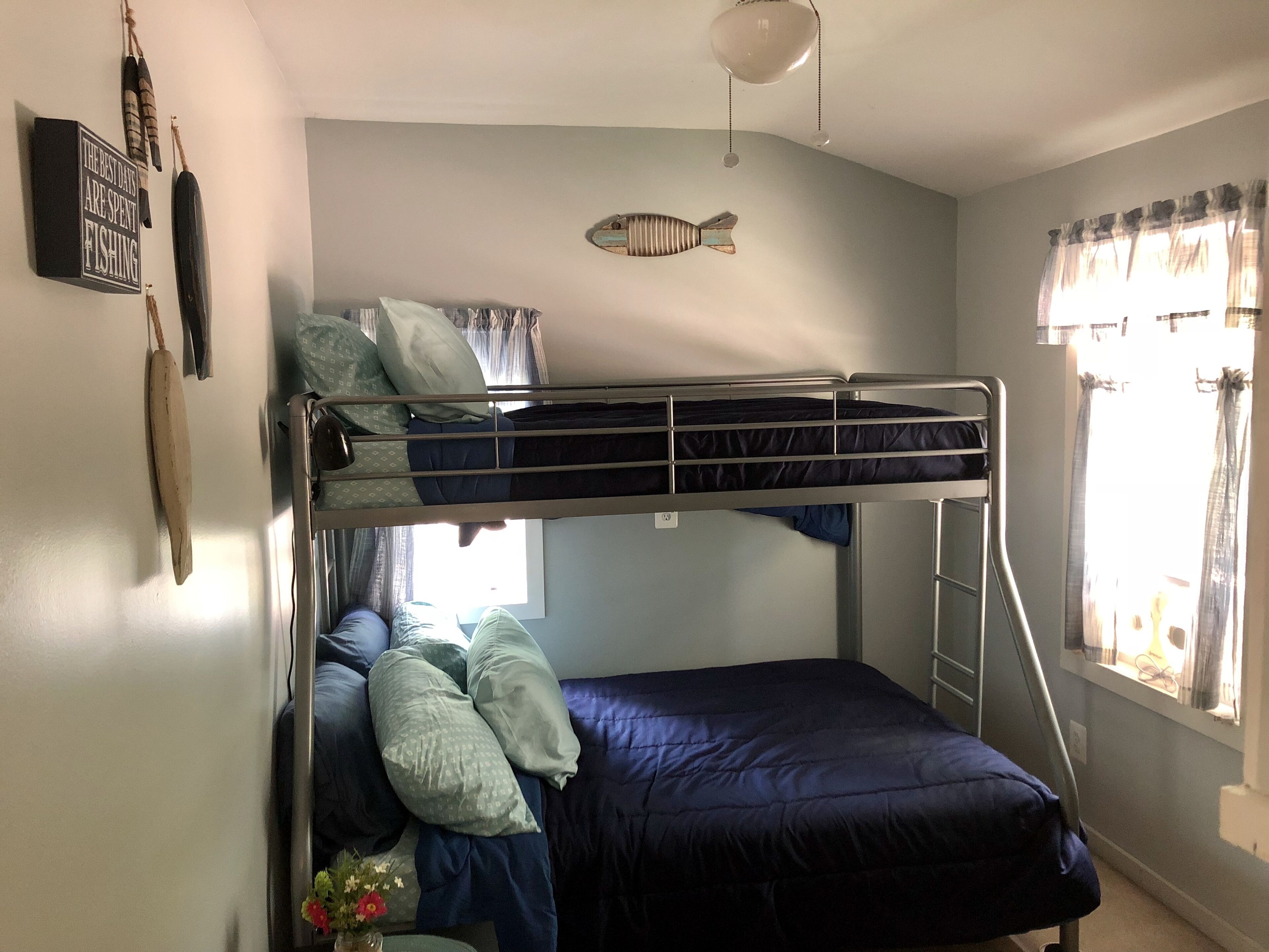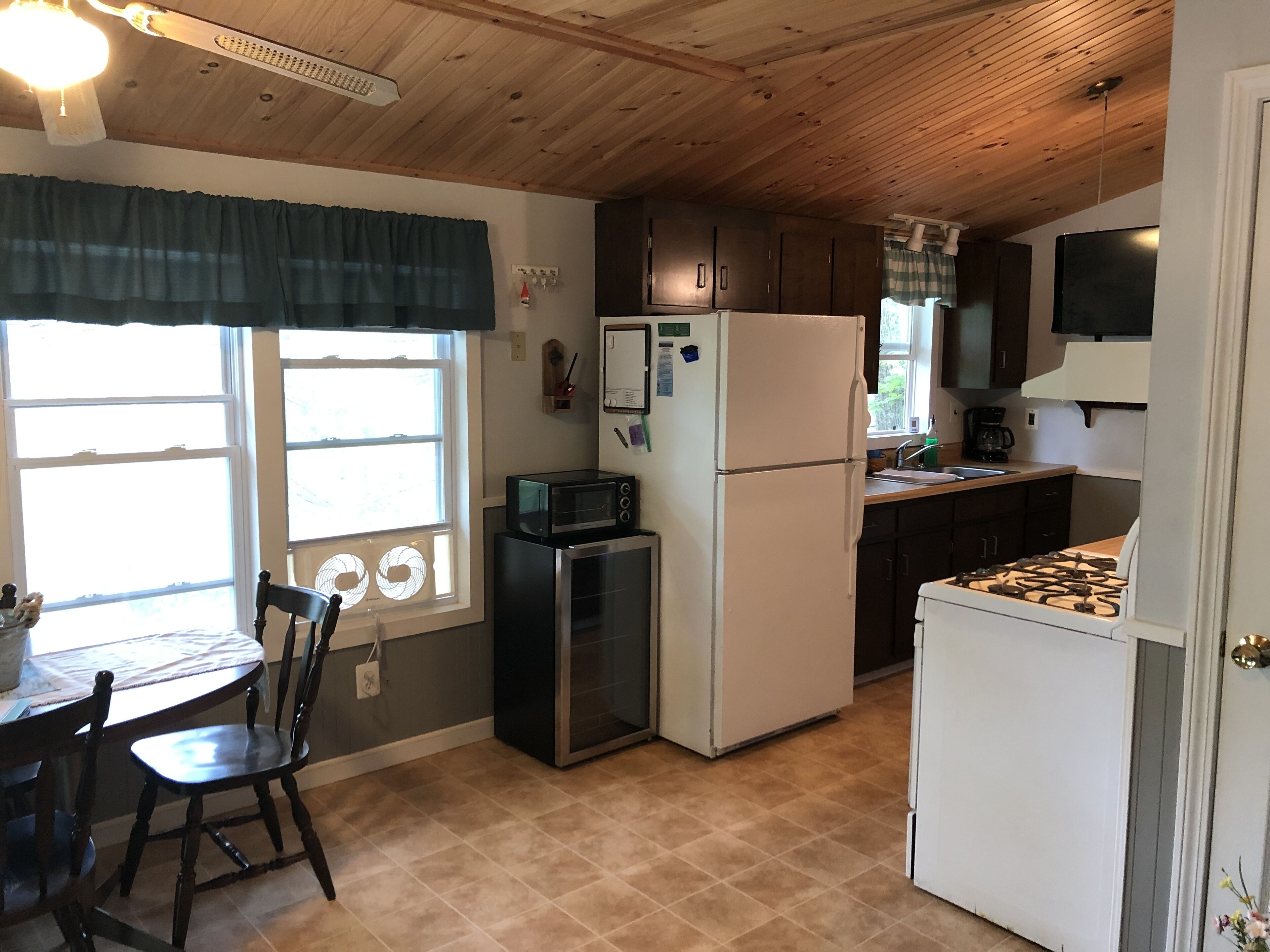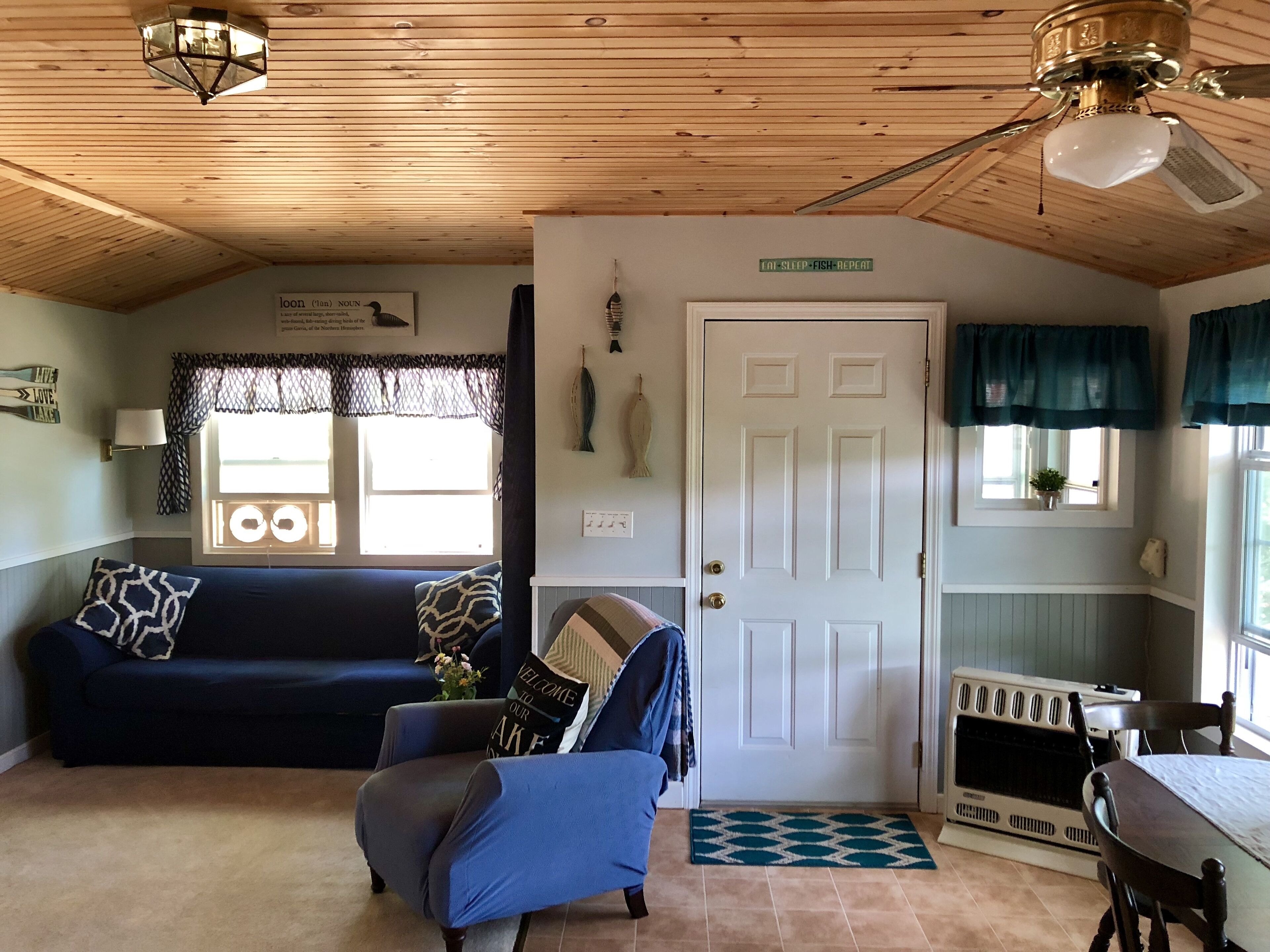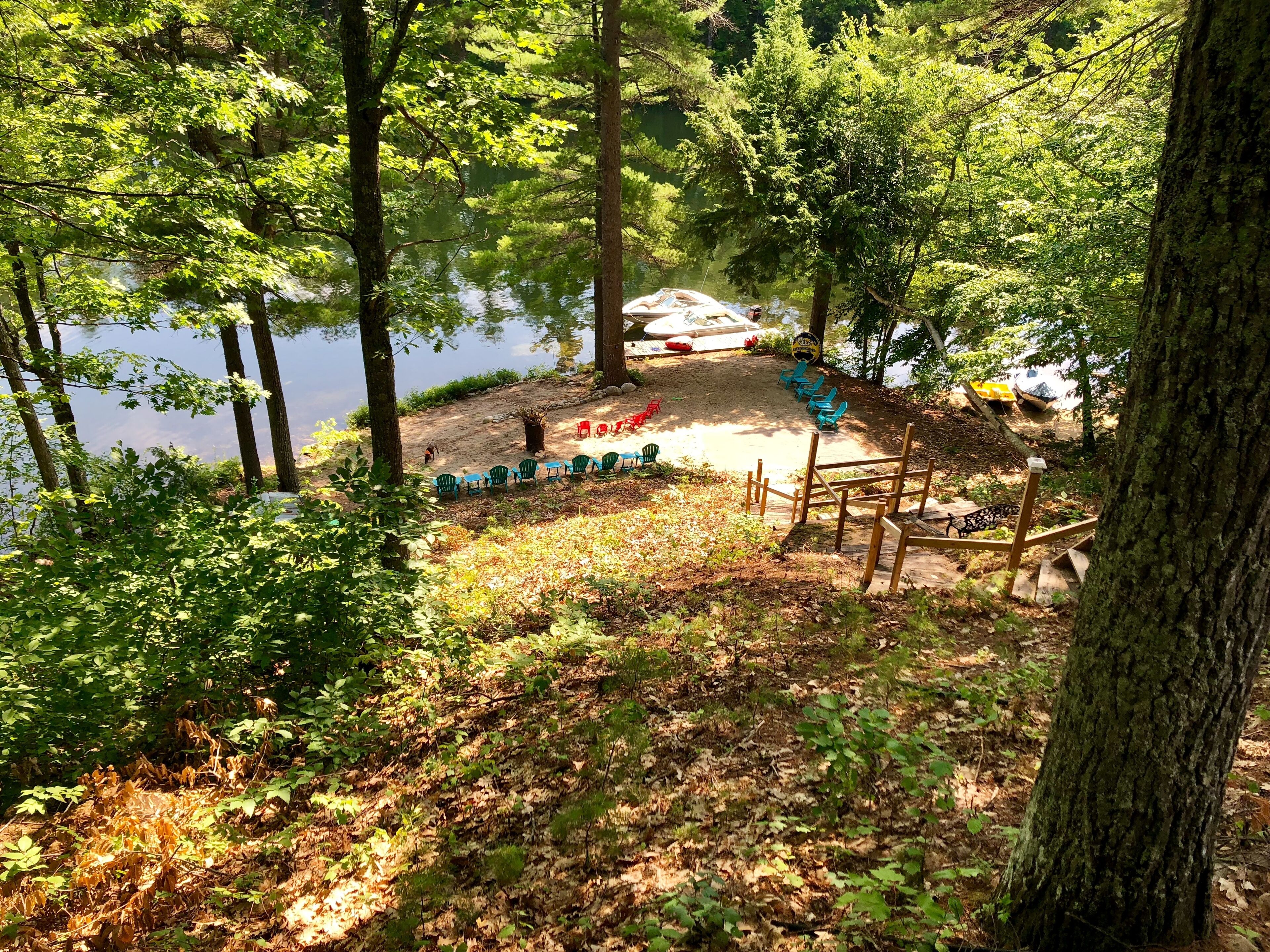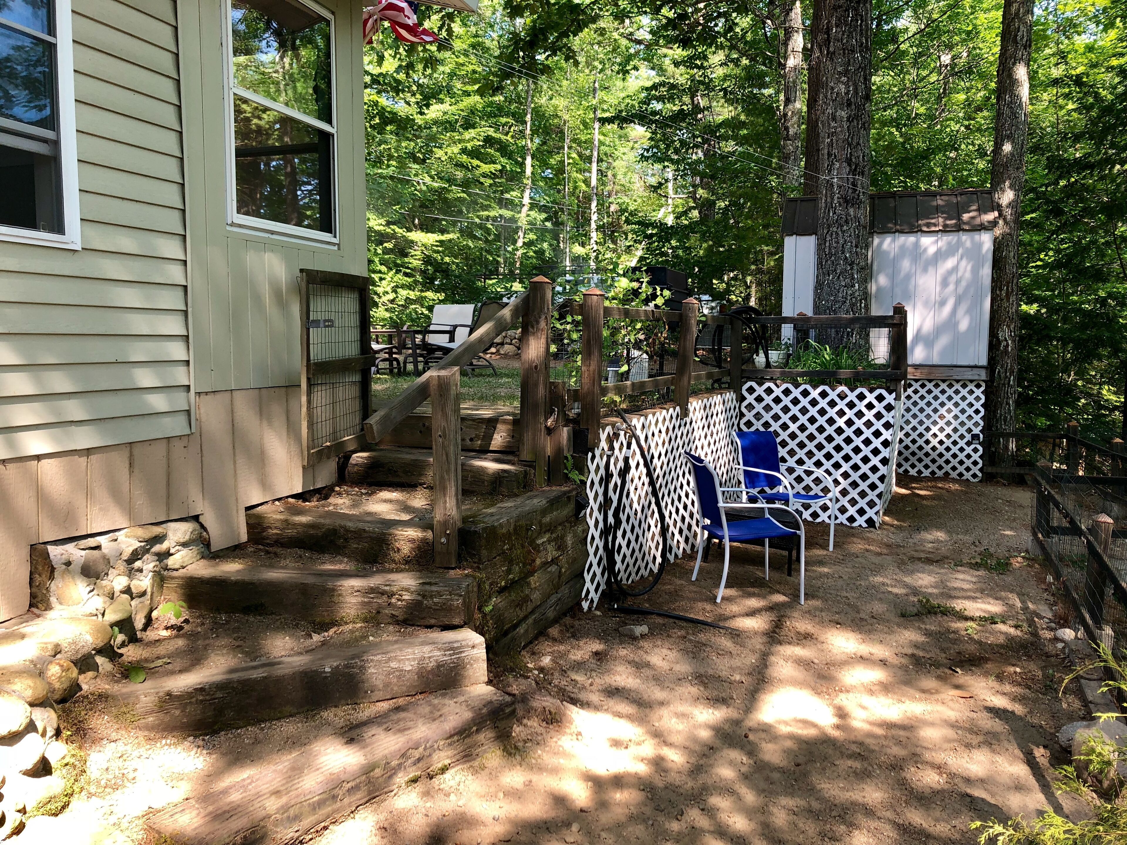 Waterfront camp on beautiful Great East Lake We have a two bedroom, full bath camp for rent that comfortably sleeps 4. One bedroom with a queen bed, second has bunkbeds (twin on top, double on bottom).Both bedrooms have a smart TV and a 55” flat screen is in the open concept living/ dining room area. There is no cable tv but you will have WIFI- so all TV’s will have the ability to stream from your netflix, Hulu, etc. accounts. The bathroom has a stand up shower and washer/dryer. Directly outside you have a patio area to grill and a stone firepit.You’ll need to take the stairs down to the water. Once you reach the bottom, you have your own 115’ of sandy water front. Located in the first basin which is a no wake zone- so it’s always calm! The beach area is perfect for your children to play and there is also a dock to keep your boat.*****Please note, we do not provide any linenes. We are asking that you bring your own linens. Including, dish towels, bath towels, blankets, pillows and sheets. We would also recommend you bring your own paper plates, bowls, plasticware, etc. as there is no dishwasher. ******