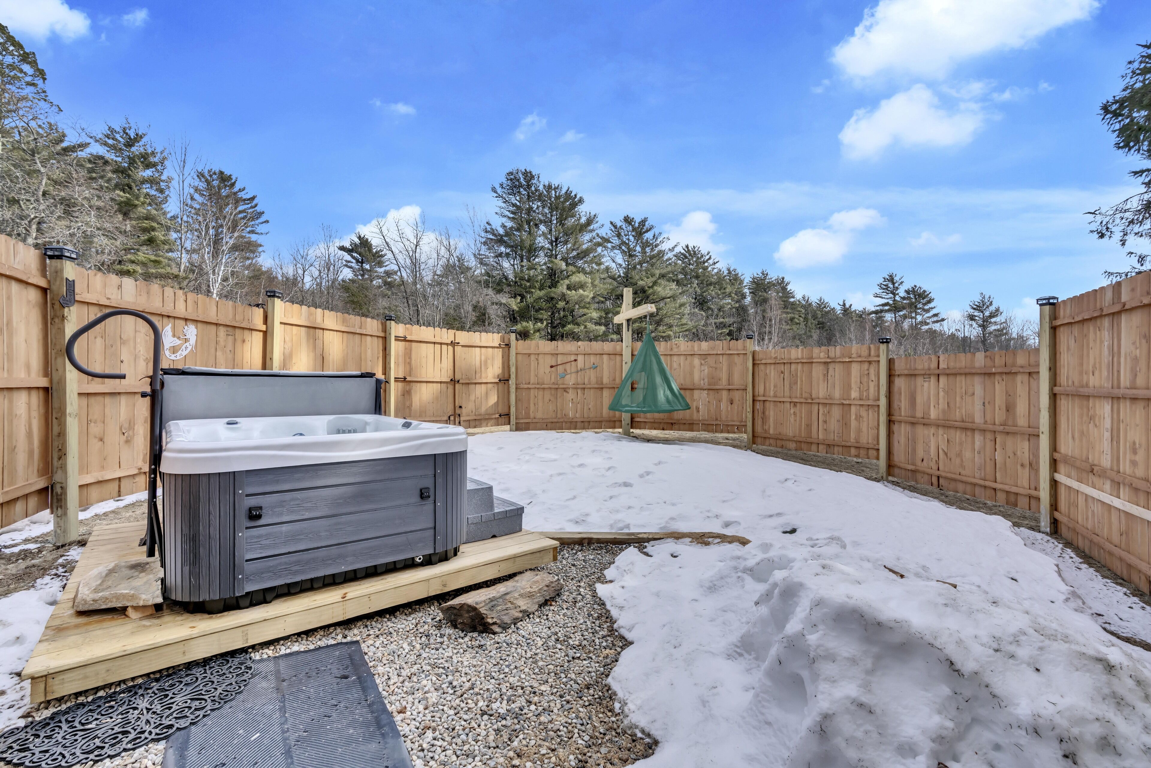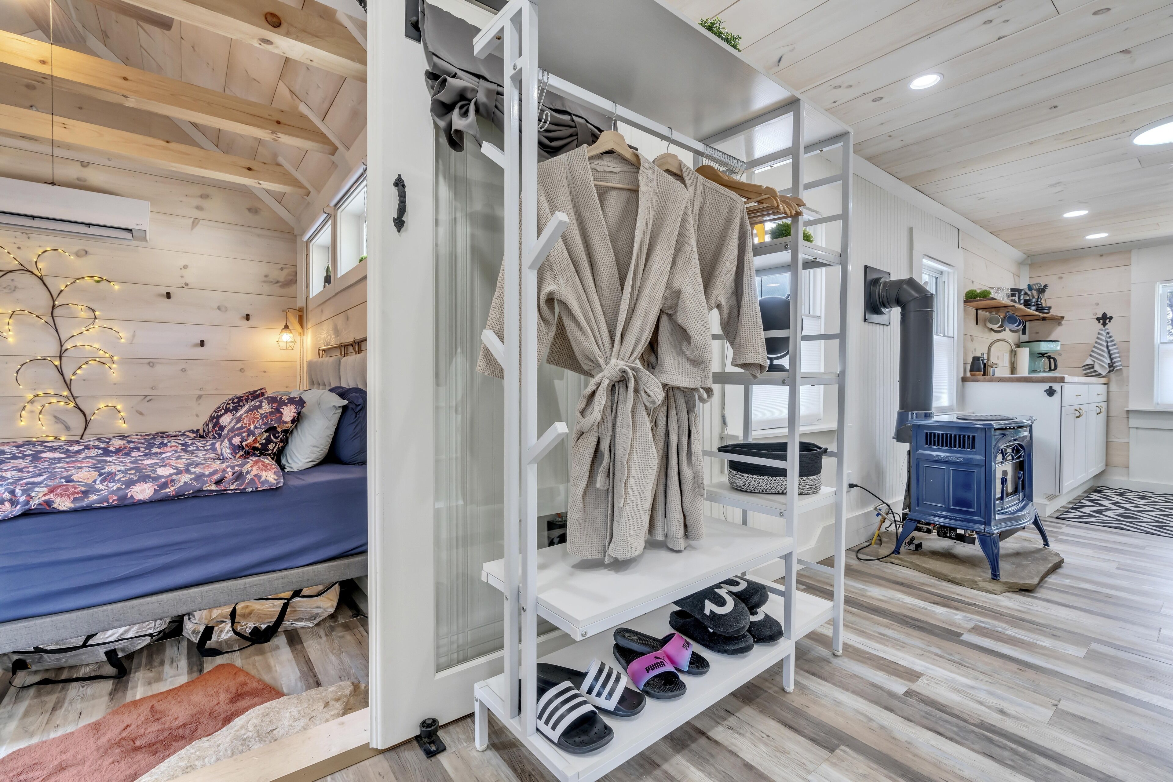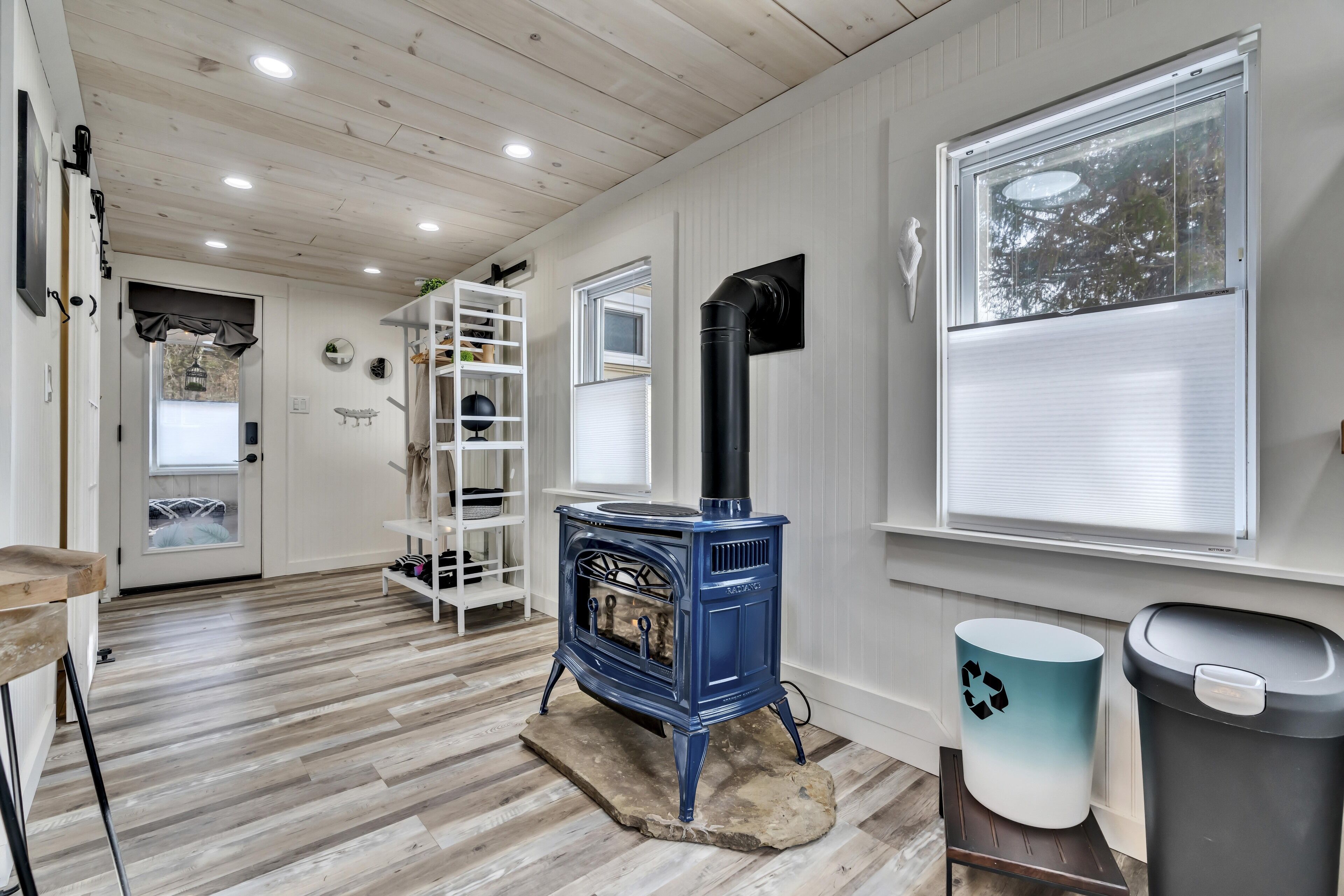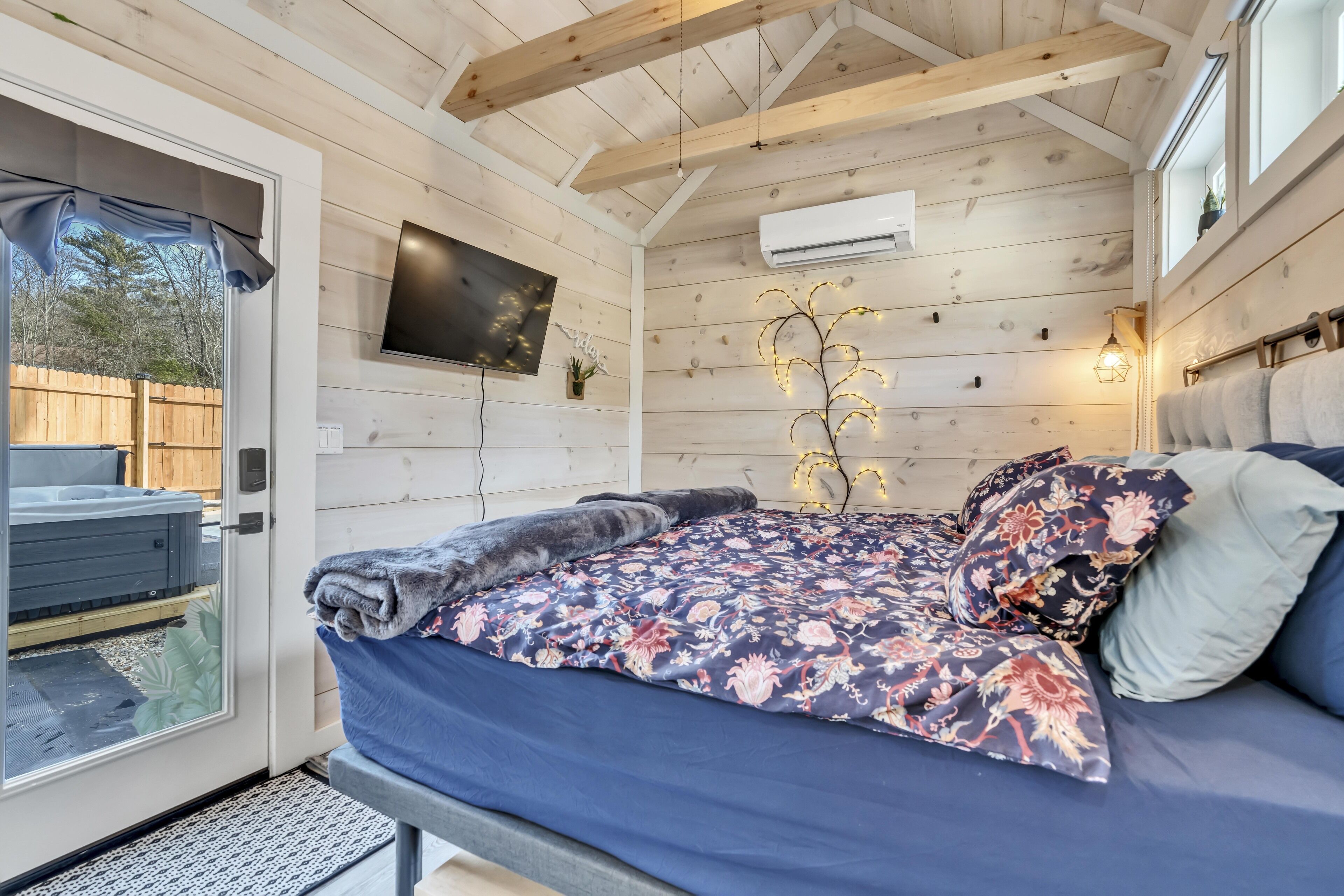 Welcome to the Z E N The goal is for you to relax, recharge, enjoy, love and breathe. We offer a private 3 person HOT TUB , an interior infrared SAUNA, a 72" freestanding bathtub and a corner shower for the ULTIMATE spa experience. We even have a towel and robe warmer. The ZEN has a king bed with an adjustable & vibrating bed base. The cozy 600 sqf home is equipped with everything your heart could desire. Artistic Design around every corner. BOHO swings on the private porch. We abutt a 13 ac conservatory land with walking & hiking trails off the backyard. We supply slippers, bathrobes and other small amenities. Enjoy a fire outside.