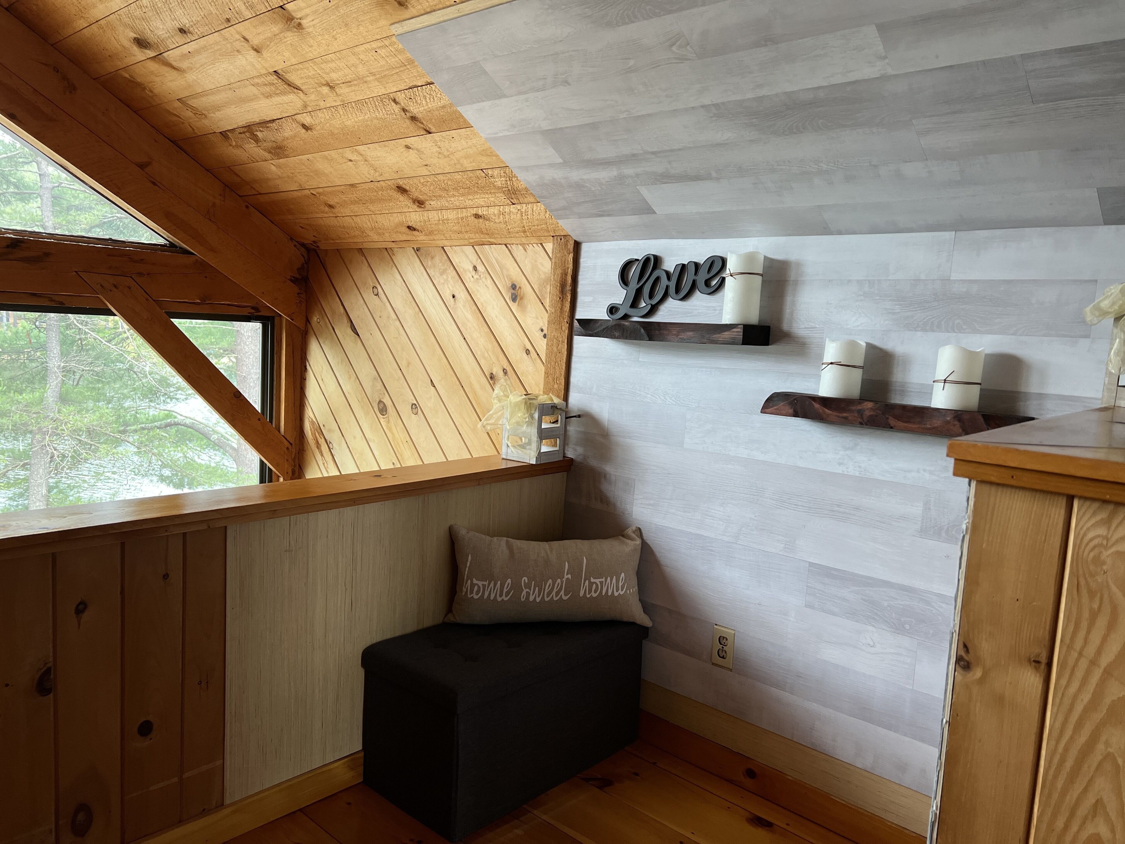 Waterfront Lake House, your perfect getaway in Maine Your perfect getaway will be in this 500-square feet, glass-front house on Loon Pond. This is the perfect escape from your busy life. We are 30 minutes from Wells, ME, and the gorgeous ocean. We are just under 45 minutes from Portland ME, and all it has to offer. We have a full book listing all attractions nearby when you check in:) There is a private bedroom with a queen bed, and an open loft on the second floor to relax and enjoy the view. The open design allows the light to radiate through the house. There is a porch and dock to relax and catch some rays. Down by the dock you will find a picnic table and some chairs. There is also a grill on the front porch, a fire pit down by the dock, and a paddleboat in the water for your enjoyment (life jackets are required). We provide plenty of board games, DVDs, and WE DO HAVE WI-FI. We hope you enjoy our home, as much as we do. We are not much for words, we will let the pictures speak for themselves. Please feel free to contact us with any questions or concerns. This home is cozy and is best suited to couples, solo travelers, or just a couple of people.Thanks for taking a look at our home! Have a fab day!!