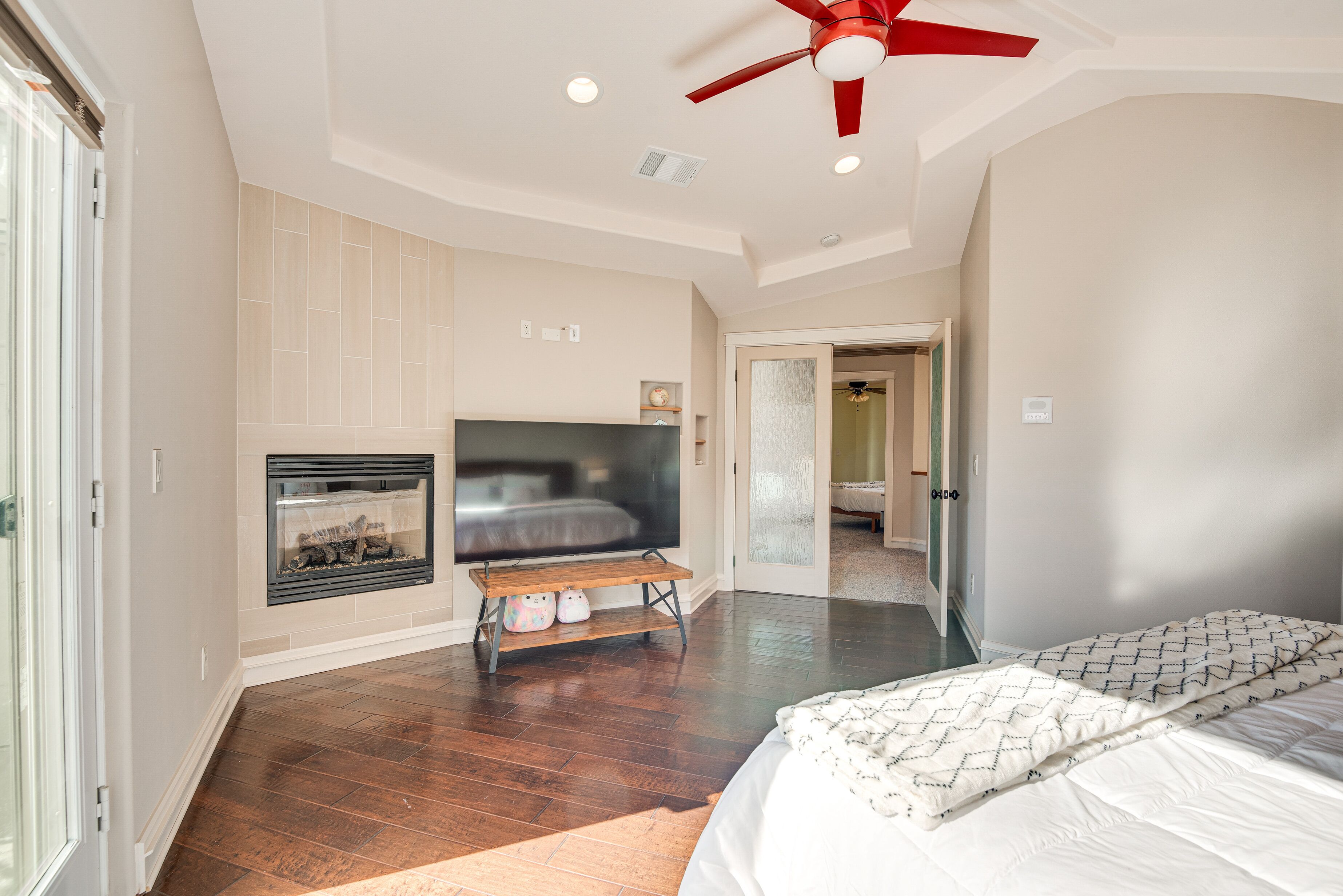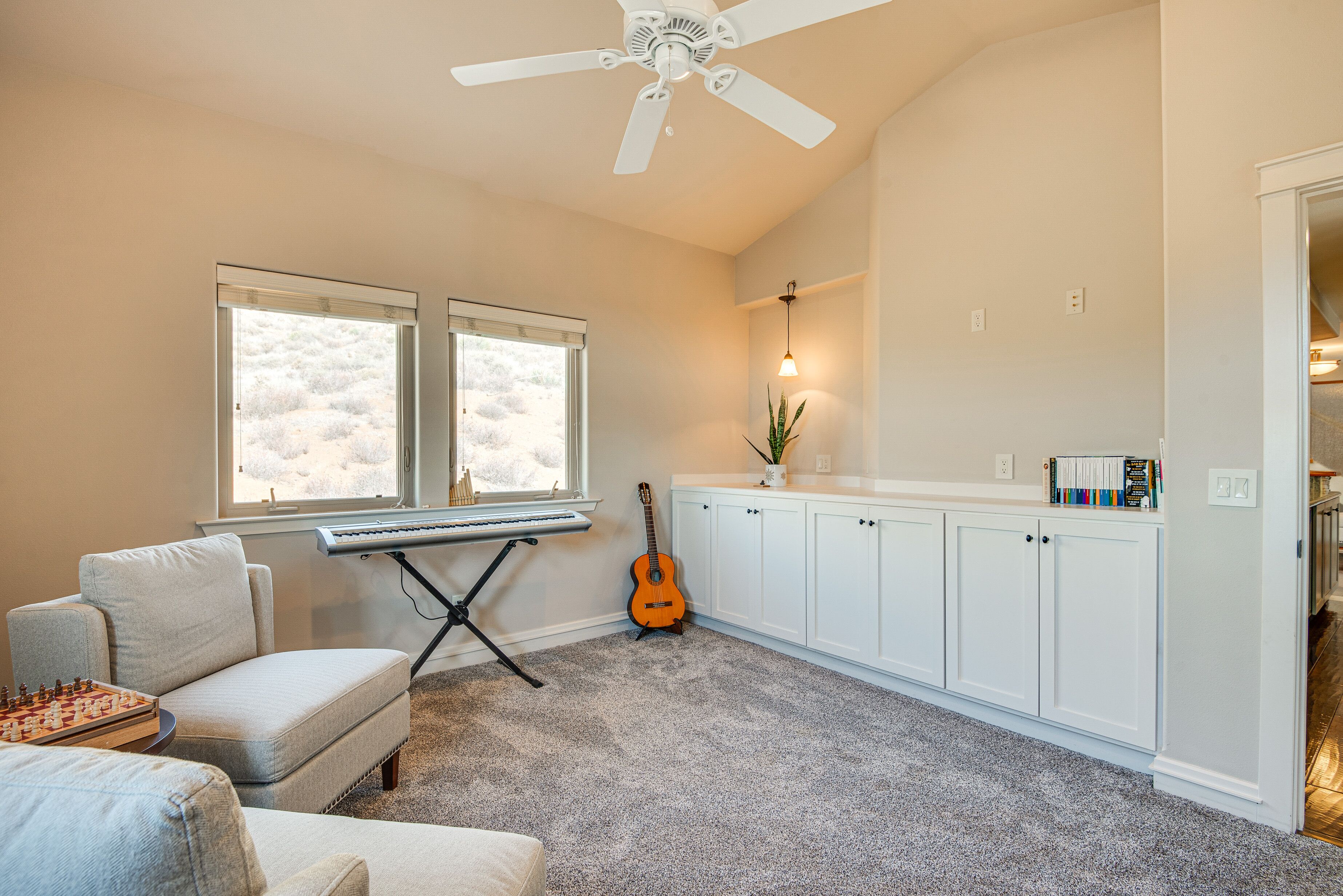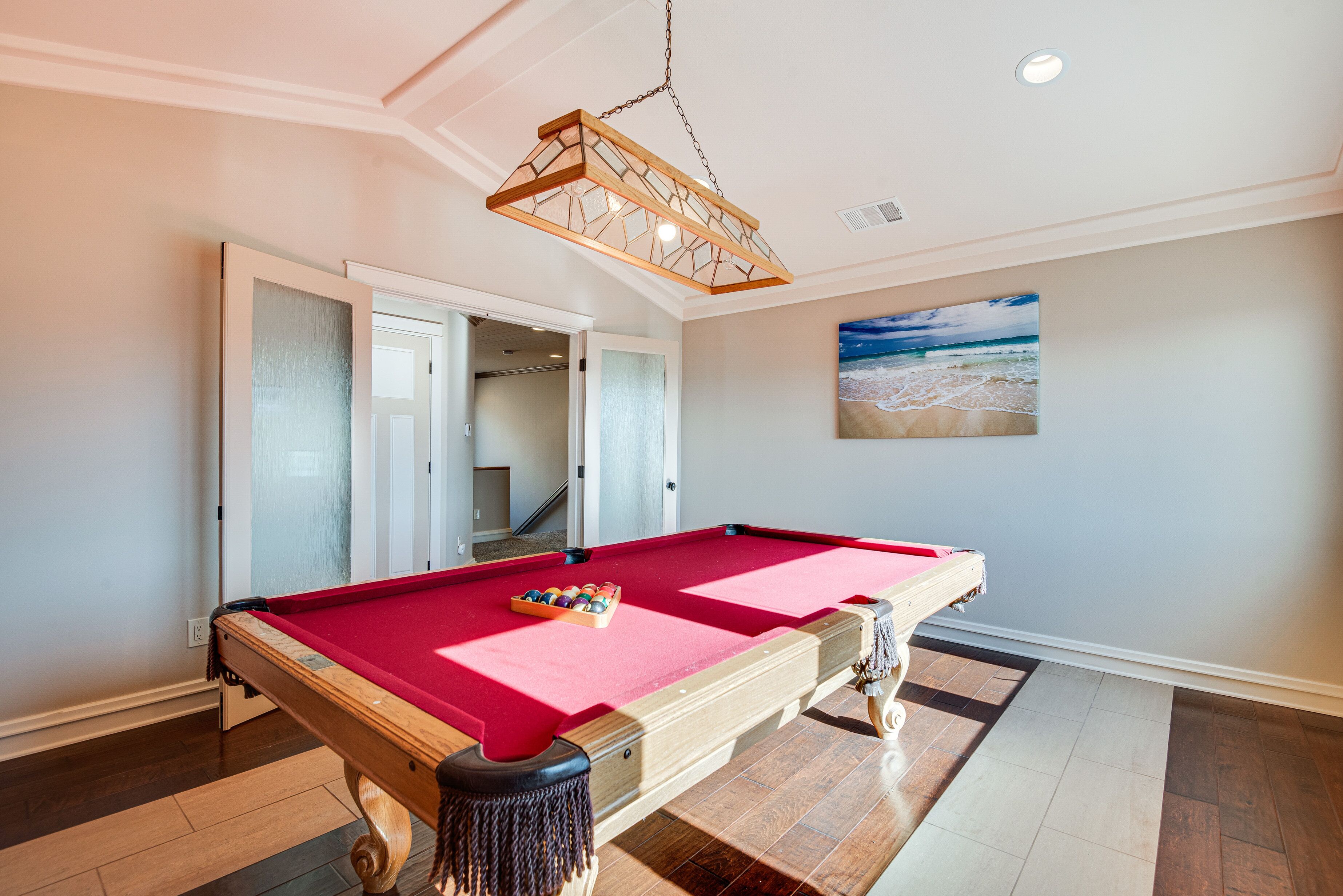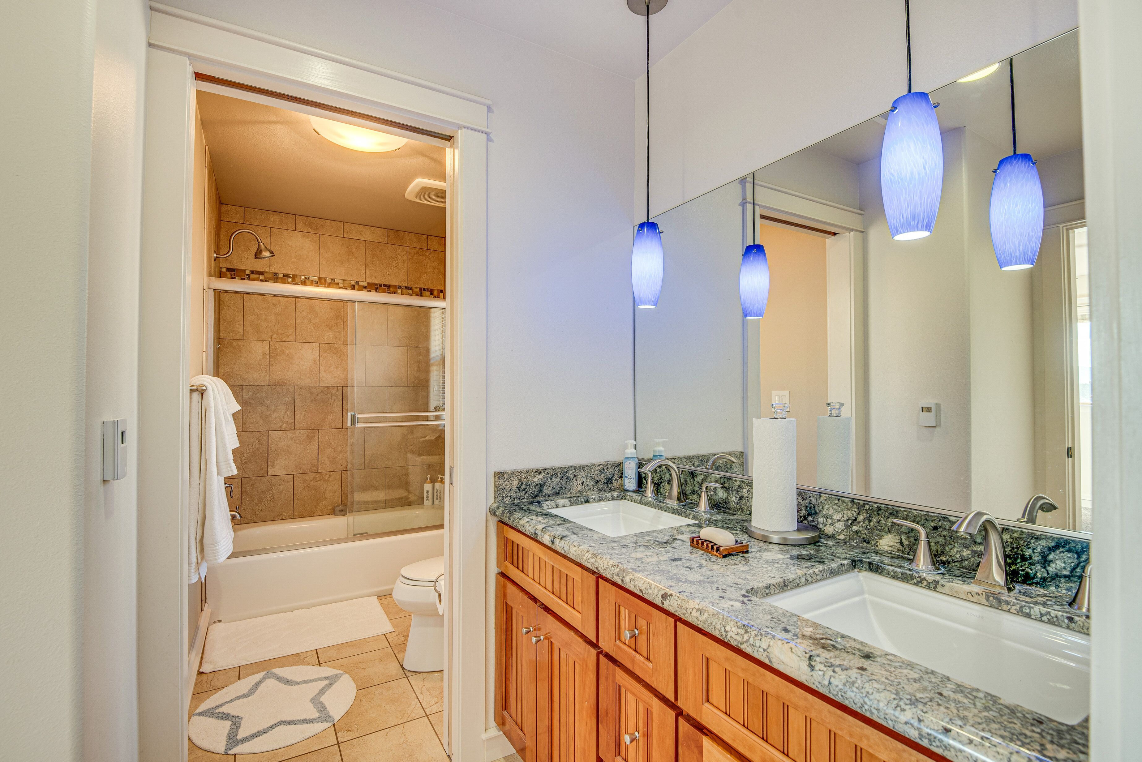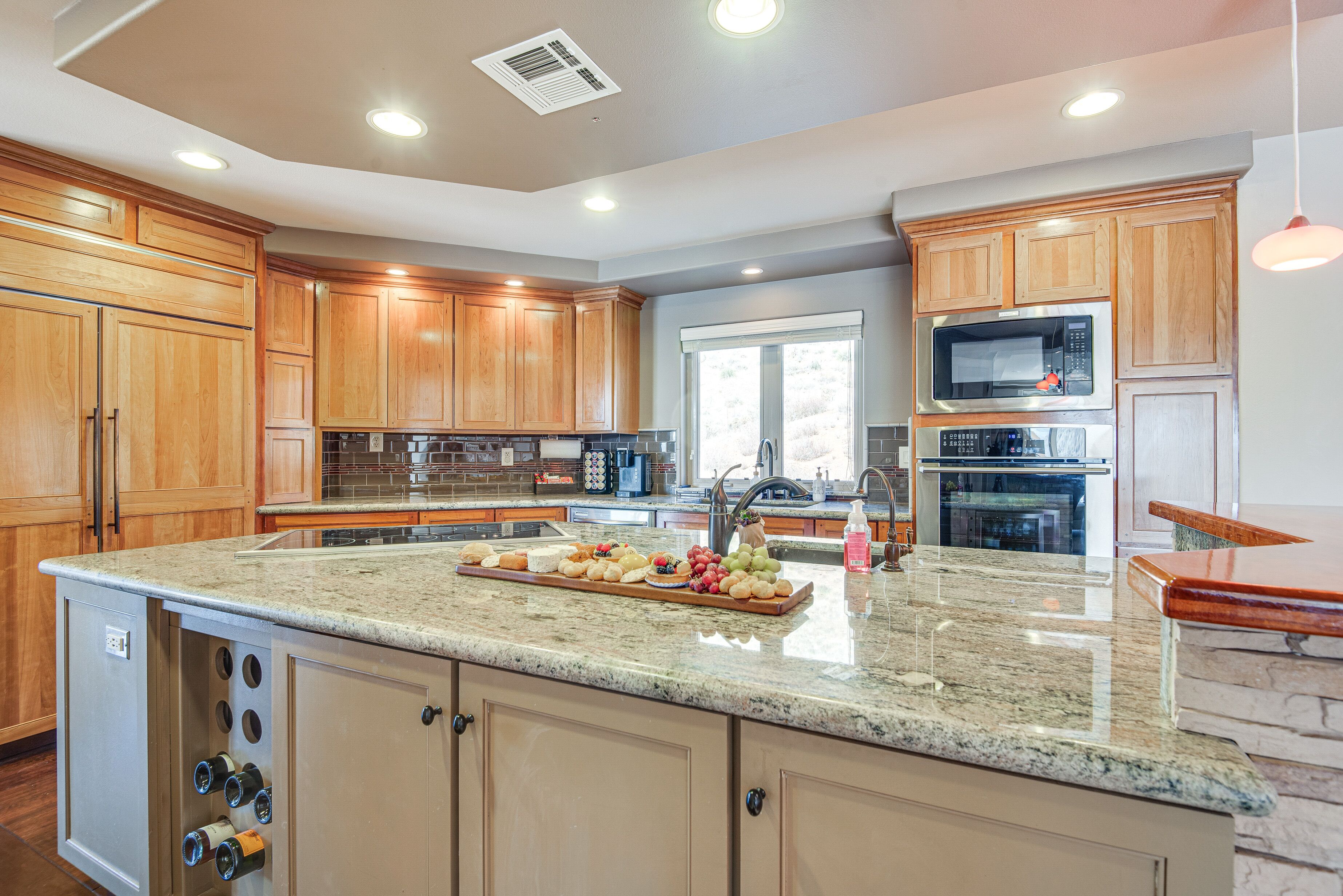 Expansive Mountain Retreat: 3 Mi to Acton! A peaceful escape awaits at this Acton vacation rental! Nestled in a secluded, mountainous area, this 4-bedroom, 3-bathroom home offers ample living space and breathtaking views throughout the property. Stay on-site to hike the private trail, venture out to explore Angeles National Forest, or take a day trip to Six Flags Magic Mountain. After active days, relax on the patio before heading inside to cozy up by the fireplace in the modern living room.-- THE PROPERTY --3,300 Sq Ft | Unobstructed Mountain Views | Private Hiking Trail On-Site | 20-Acre PropertyBedroom 1: California King Bed | Bedroom 2: California King Bed | Bedroom 3: Queen Bed | Bedroom 4: Queen Bed | Additional Sleeping: Queen Air MattressOUTDOOR LIVING: Private yard, private balconies, patio w/ seatingINDOOR LIVING: Smart TVs w/ cable, fireplaces, game room w/ pool table, electric keyboard, guitar, chess set, board games, books, yoga mats, dining table, en-suite bathrooms, state-of-the-art bathrooms w/ heated floors, aromatherapy air bathKITCHEN: Chef's kitchen, expansive island, built-in/high-end appliances, solid cherry cabinets, Keurig coffee maker, dishwasher, microwave, stove/oven, refrigerator, cooking basics, walk-in pantryGENERAL: Free WiFi, central A/C & heating, linens/towels, Smart combination washer/dryer, hair dryer, iron/board, complimentary toiletries, keyless entry, laundry detergent, trash bags/paper towelsFAQ: 4 exterior security cameras (facing out)ACCESSIBILITY: Multi-story home, exterior staircase required to enter, 1 bedroom & 1 full bathroom on main levelPARKING: Garage (4 vehicles), driveway (5 vehicles)-- THE LOCATION --OUTDOOR RECREATION: Acton Park (3 miles), Santa Clara River (3 miles), Ritter Ranch Park (9 miles), Angeles National Forest (15 miles), Marie Kerr Park (17 miles), Castaic Lake State Recreation Area (32 miles), Mountain High Resort (39 miles), Topanga State Park (42 miles)AREA HIGHLIGHTS: Lockheed Martin Aeronautics Co (16 miles), Nethercutt Museum (27 miles), Six Flags Magic Mountain (27 miles), Universal Studios Hollywood (41 miles), The Getty (42 miles), Hollywood Walk of Fame (43 miles), Guinness World Records Museum (43 miles), Rose Bowl Stadium (49 miles), Pacific Park on the Santa Monica Pier (50 miles)TOWNS & CITIES: Acton (3 miles), Santa Clarita (24 miles), San Fernando (30 miles), Pasadena (51 miles), Los Angeles (51 miles)AIRPORT: Los Angeles International Airport (54 miles)-- REST EASY WITH US --Evolve makes it easy to find and book properties you’ll never want to leave. You can relax knowing that our properties will always be ready for you and that we’ll answer the phone 24/7. Even better, if anything is off about your stay, we’ll make it right. You can count on our homes and our people to make you feel welcome--because we know what vacation means to you.-- POLICIES --- No smoking- No pets allowed- No events, parties, or large gatherings- Must be at least 25 years old to book- Additional fees and taxes may apply- Photo ID may be required upon check-in- NOTE: This multi-story home requires using an exterior staircase to enter. While it offers 1 bedroom and 1 full bathroom on the main level, additional interior stairs are required to access bedrooms on the upper level- NOTE: The property sleeps 8 guests in 4 beds with room for 10 guests total by using the queen air mattress- NOTE: Your safety matters. This property features 4 exterior security cameras: 1 camera is located on the main door facing the front outdoor entry, 1 camera is located on the back door facing the back outdoor entry, 1 camera is located outside the garage facing the parking area, and 1 camera is on the 2nd-floor balcony facing the gate entrance. The cameras are outward facing and do not look into interior spaces. The cameras display video and sound when activated by motion, but do not record