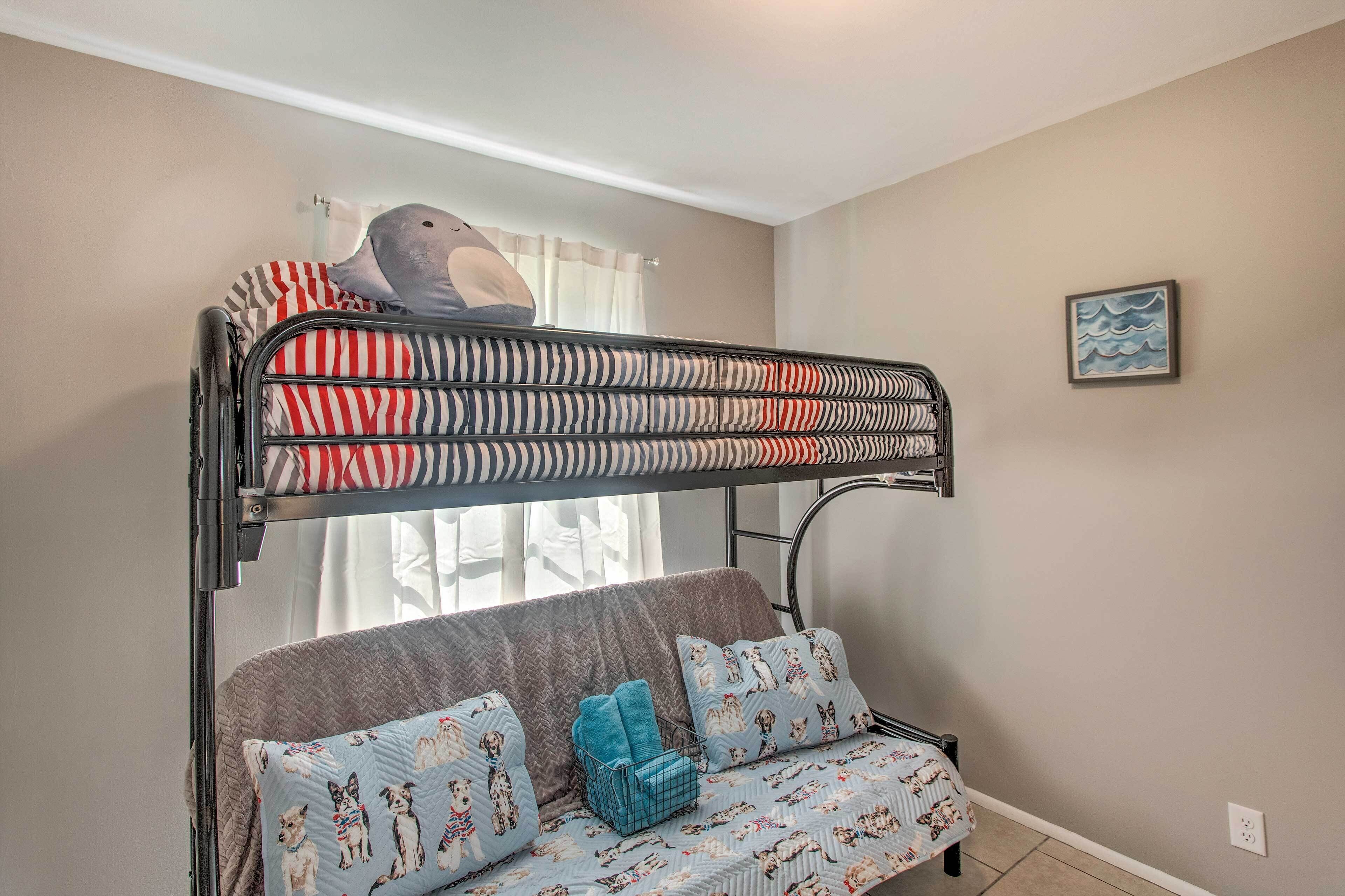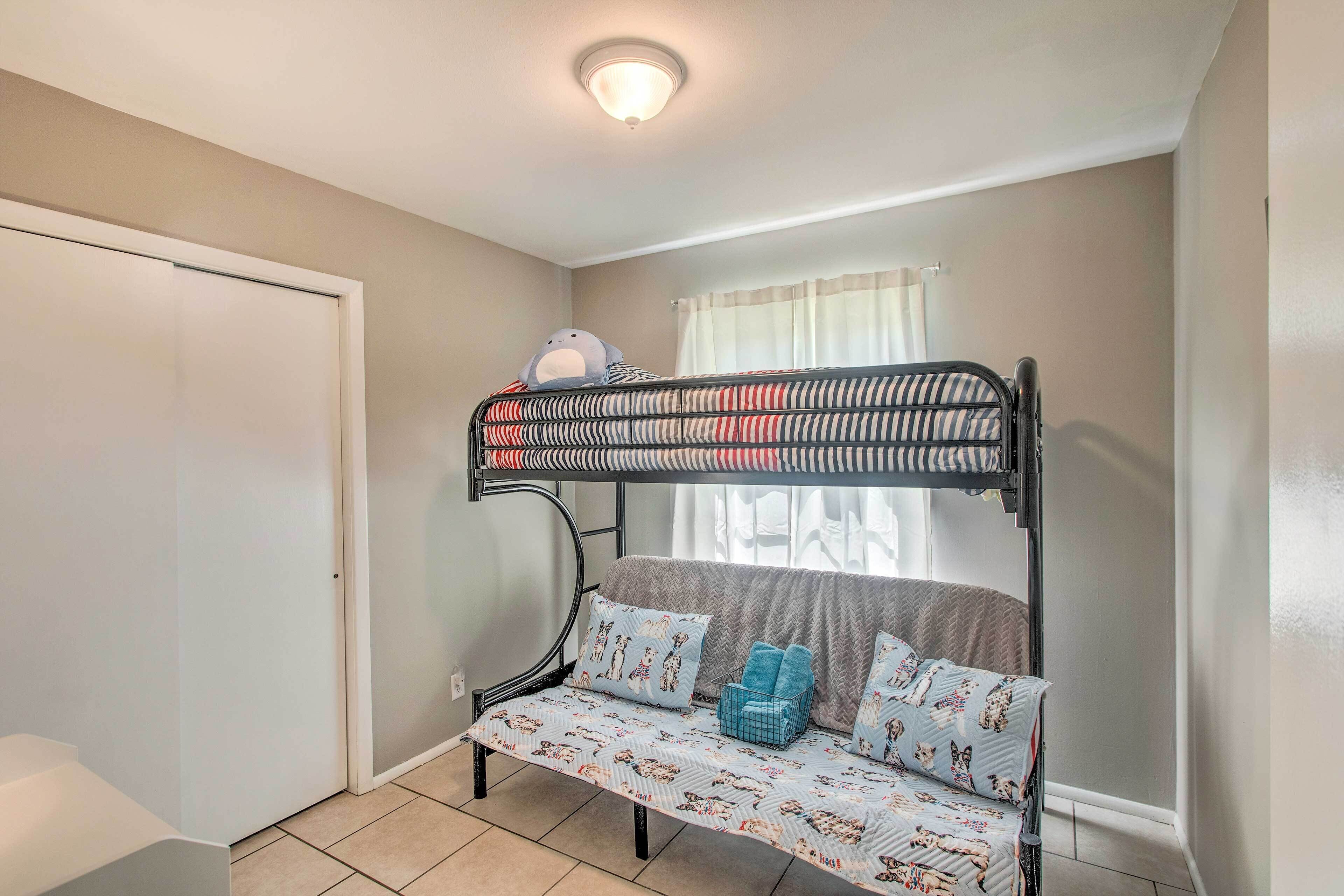 Pet-Friendly Brunswick Retreat w/ Gas Grill! Highlighted by a peaceful screened porch and proximity to activities and attractions, this quiet Brunswick home is ideal for families and friends to relax and spend quality time together on the Georgia coast. This 3-bedroom, 1.5-bath vacation rental features an outdoor dining area and a gas grill, perfect for enjoying an al fresco meal while your furry friend roams the fenced yard! After a day of sightseeing and outdoor fun, you can unwind with WiFi, board games, and all the comforts of home.-- THE PROPERTY --Free WiFi | Screened Porch | ~5.4 Mi to Downtown BrunswickBedroom 1: Queen Bed | Bedroom 2: Queen Bed | Bedroom 3: Twin/Full Bunk BedINDOOR LIVING: TV w/ cable, board games, dining tableOUTDOOR LIVING: Dining area, gas grill, games, private yardKITCHEN: Cooking basics, dishware/flatware, stainless steel appliances, dishwasher, stove/oven, microwave, coffee makerGENERAL: Linens/towels, washer/dryer, iron/board, clothes hangers, complimentary toiletries, central air conditioning, hair dryer, trash bags/paper towelsFAQ: Half step required to access, 4 exterior security cameras (outward facing), pet fee (paid pre-trip)PARKING: Driveway (3 vehicles)-- THE LOCATION --SUN & SAND: Neptune Park (10.7 miles), East Beach (11.5 miles), Massengale Park (11.7 miles), Gould's Inlet Public Beach Access (12.1 miles), Driftwood Beach (18.8 miles)HIT THE LINKS: Brunswick Country Club (2.3 miles), Heritage Oaks Golf Club (9.2 miles), Retreat Golf Course (9.5 miles), Sea Palms Golf Club (12.9 miles), Sea Island Resort (13.3 miles), Ocean Forest Golf Club (16.1 miles)FAMILY FUN: Blythe Island County Park (8.2 miles), Bloody Marsh Site (10.7 miles), Island Cinemas (11.2 miles), Bennie's Red Barn (13.0 miles), Fort Frederica National Monument (14.8 miles), Summer Waves Water Park (15.4 miles)HOT SPOTS: St. Simons Island Lighthouse Museum (10.7 miles), Altamaha Wildlife Management Area (15.5 miles), Jekyll Island (16.8 miles), Little St. Simons Island (20.1 miles) AIRPORT: Jacksonville International Airport (62.2 miles)-- REST EASY WITH US --Evolve makes it easy to find and book properties you’ll never want to leave. You can relax knowing that our properties will always be ready for you and that we’ll answer the phone 24/7. Even better, if anything is off about your stay, we’ll make it right. You can count on our homes and our people to make you feel welcome--because we know what vacation means to you.-- POLICIES --- No smoking- Pet friendly w/ $50 fee (+ fees and taxes)- No events, parties, or large gatherings- Must be at least 25 years old to book- Additional fees and taxes may apply- Photo ID may be required upon check-in- NOTE: Your safety matters. This property features 4 exterior cameras located at each entrance of the home. The cameras are outward facing and do not look into interior spaces. The cameras record video and sound when activated by motion