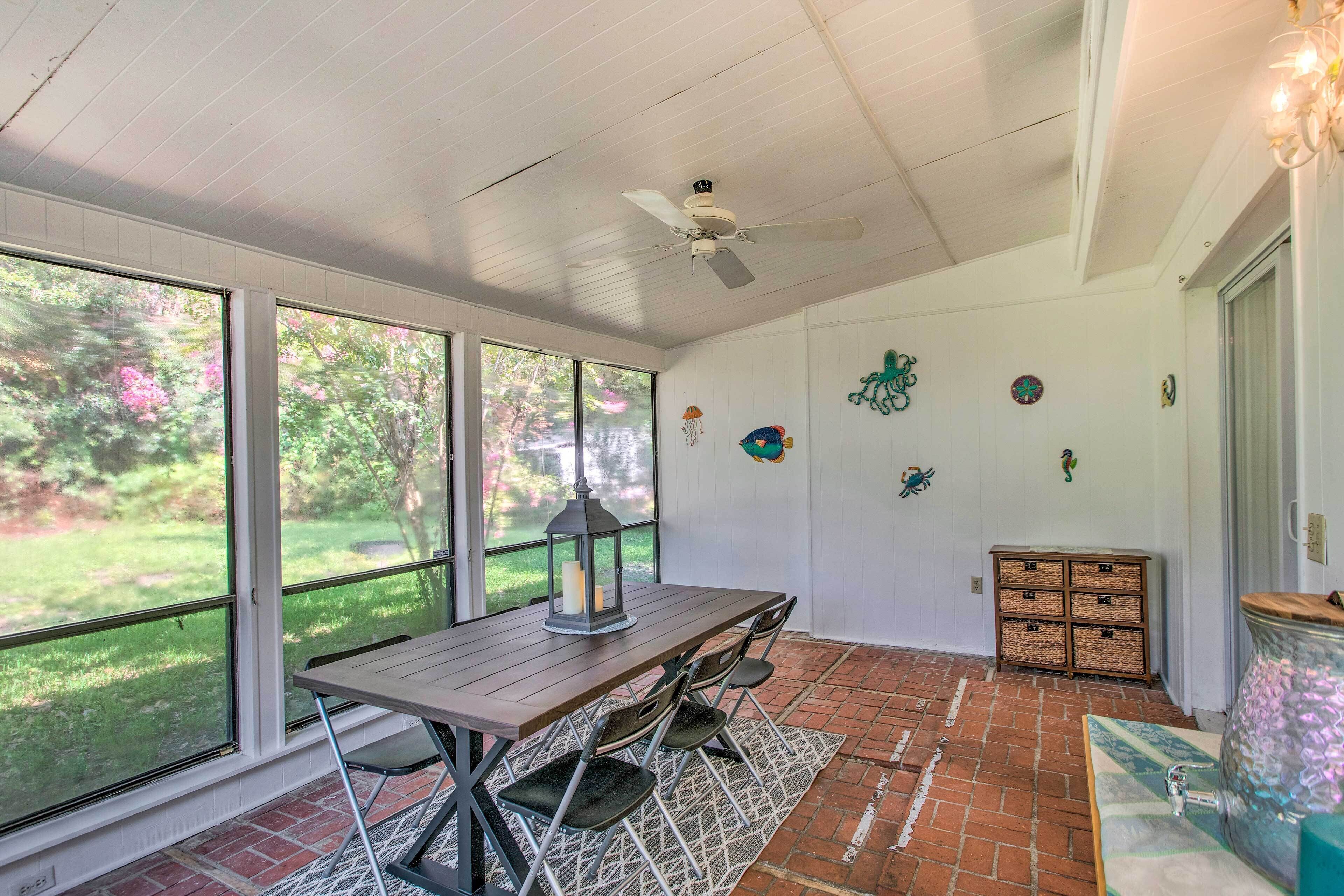 Pet-Friendly Brunswick Retreat w/ Gas Grill! Highlighted by a peaceful screened porch and proximity to activities and attractions, this quiet Brunswick home is ideal for families and friends to relax and spend quality time together on the Georgia coast. This 3-bedroom, 1.5-bath vacation rental features an outdoor dining area and a gas grill, perfect for enjoying an al fresco meal while your furry...