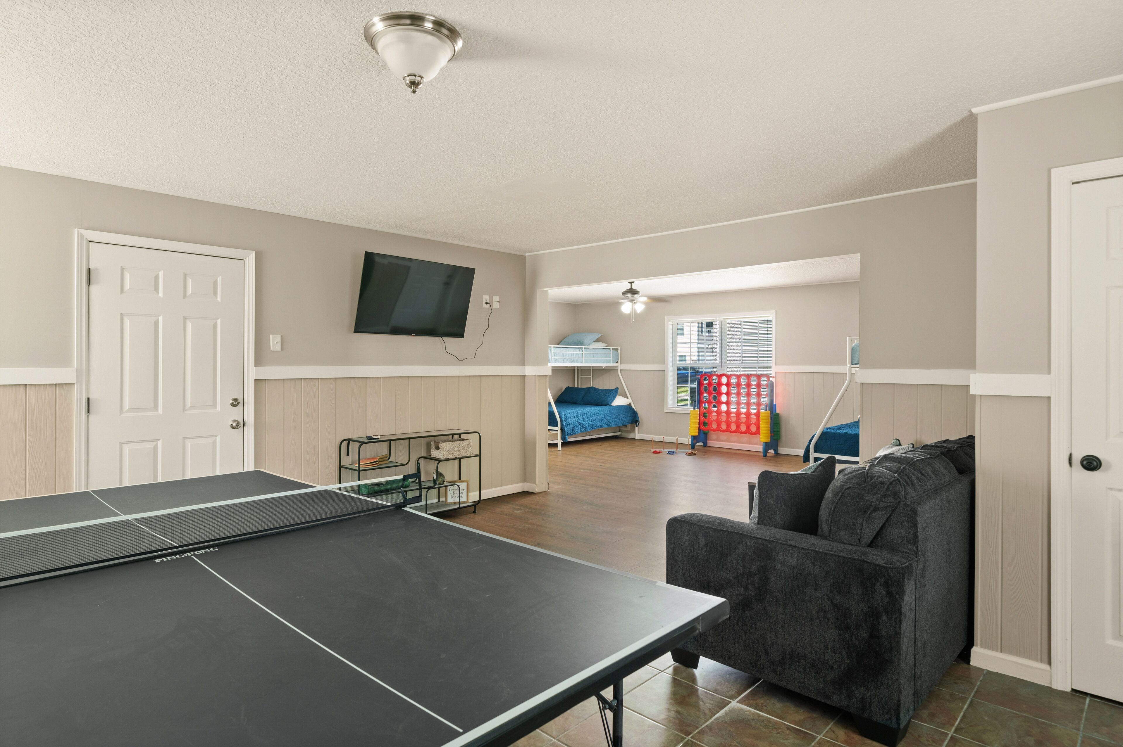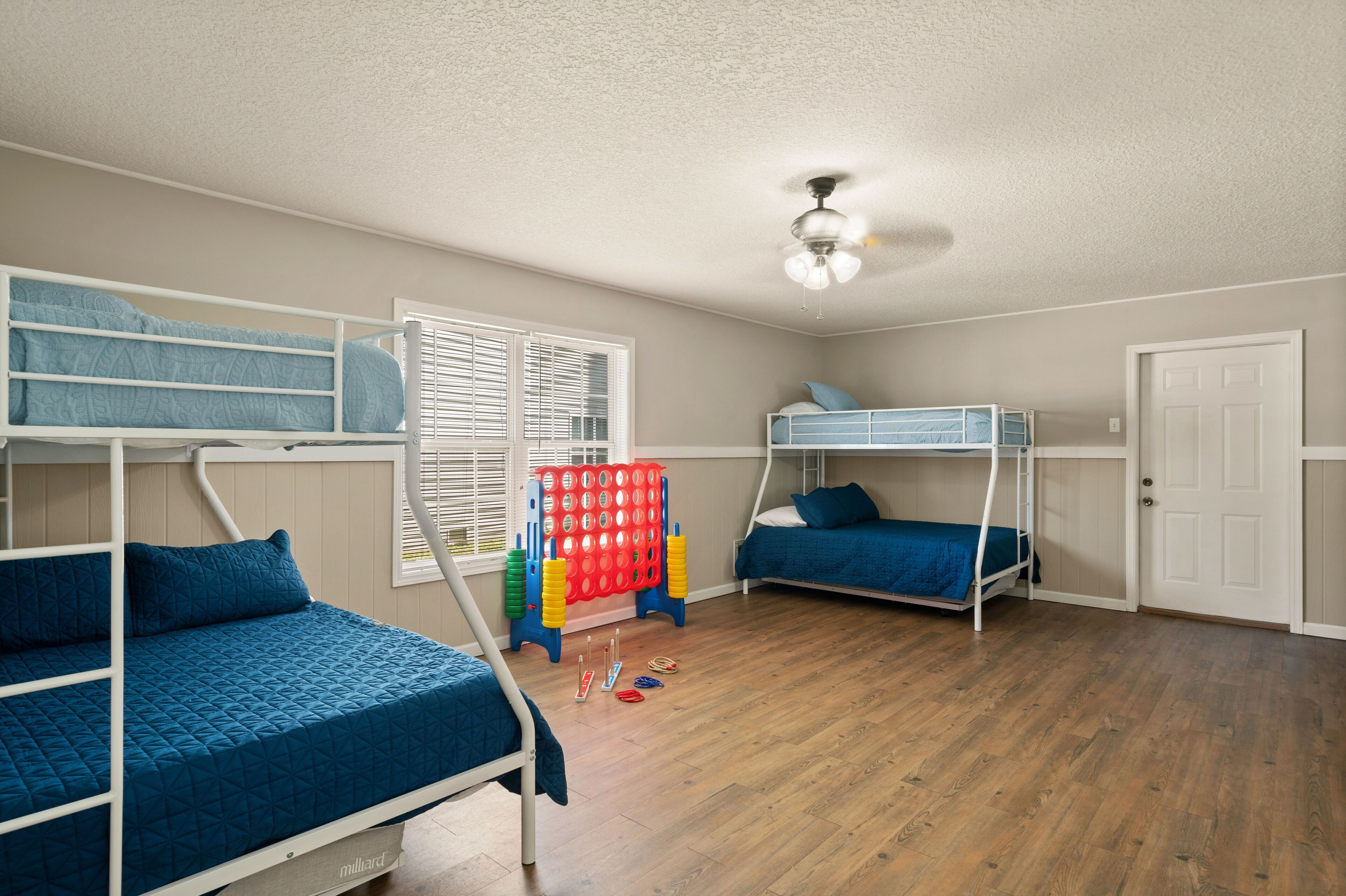 Blue Dog Inn | 3 Bed, 2 Bath This fully fenced-in home has over 2300 square feet of space. It's perfect for large families and we always welcome your fur babies!There is a game room on the main floor with a ping pong table, life-sized connect 5 and various other games.The main floor also has two bunk beds that have a twin bed, full bed and twin trundle on the bottom (sleeping a total of 4 people per bed).The second level is spacious and contains three bedrooms, two bathrooms and a HUGE living room for entertaining.Other things to note:Please consider purchasing travel insurance for your trip. This may cover you for instances of medical emergencies or inclement weather. We unfortunately can’t offer refunds for these types of situations so we want to ensure you’ve properly covered yourself.For stays of 30 nights or more, we will collect a $750 refundable security deposit.