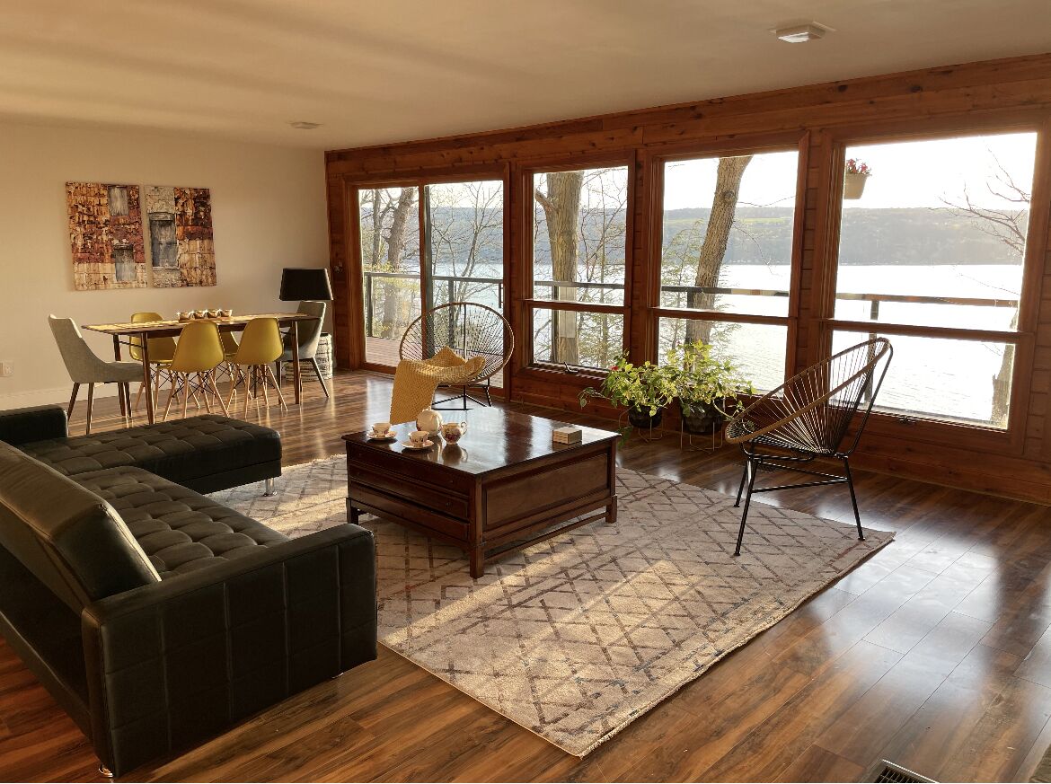 Mid-Century modern Lakeview Stay Enjoy this mid-century modern guest house in a spectacular site, with a lake view, waterfall, and forest all in one place. The house was just fully renovated. This house is just 2 miles from Ithaca downtown and 3 miles from Cornell University. The location is super close to everything Ithaca has to offer—Ithaca falls, hiking, Ithaca Commons, movies and theater, restaurants, the farmer's market, the waterfront trail, wineries-- all within a few minutes drive of your rental.
