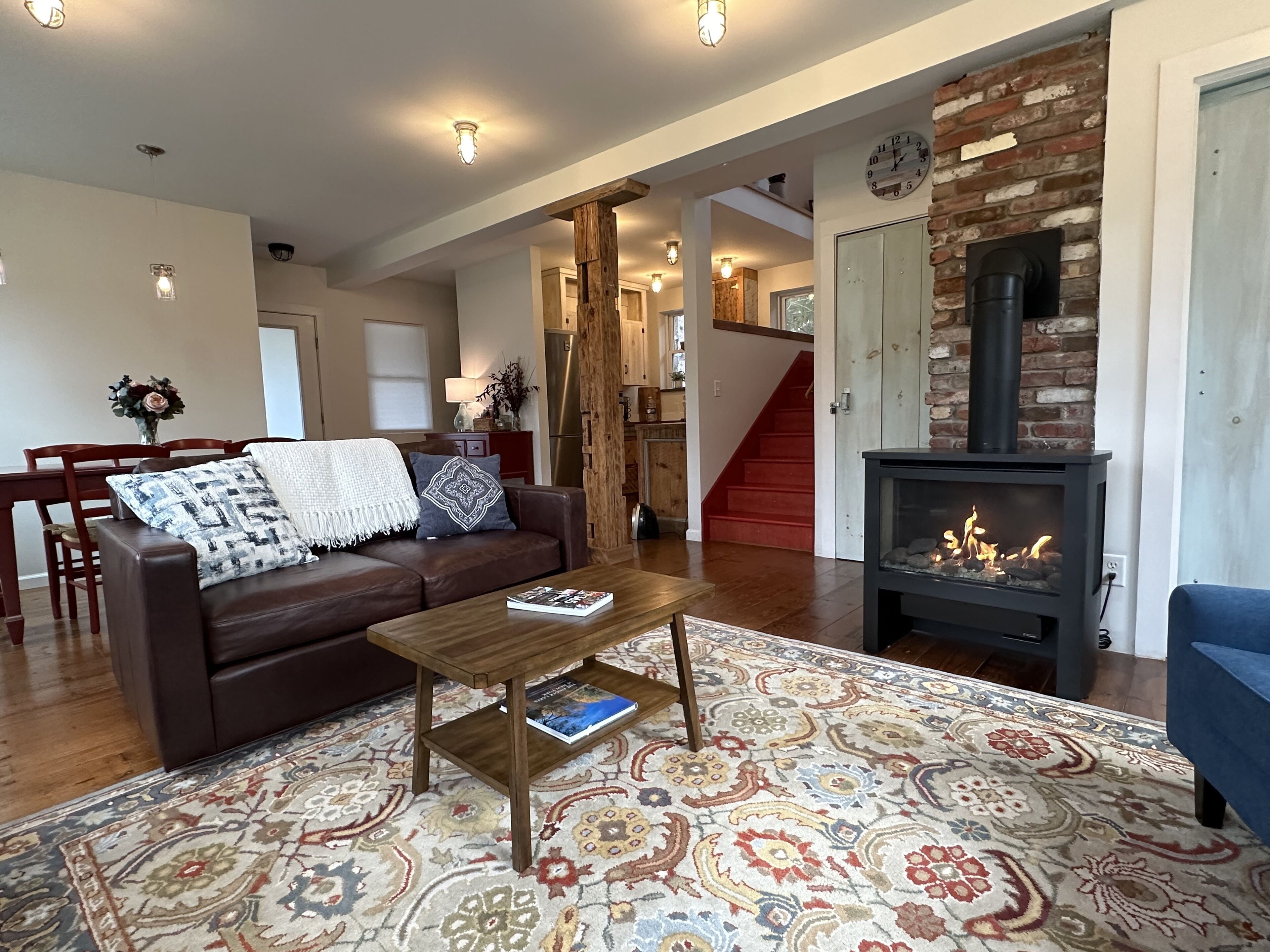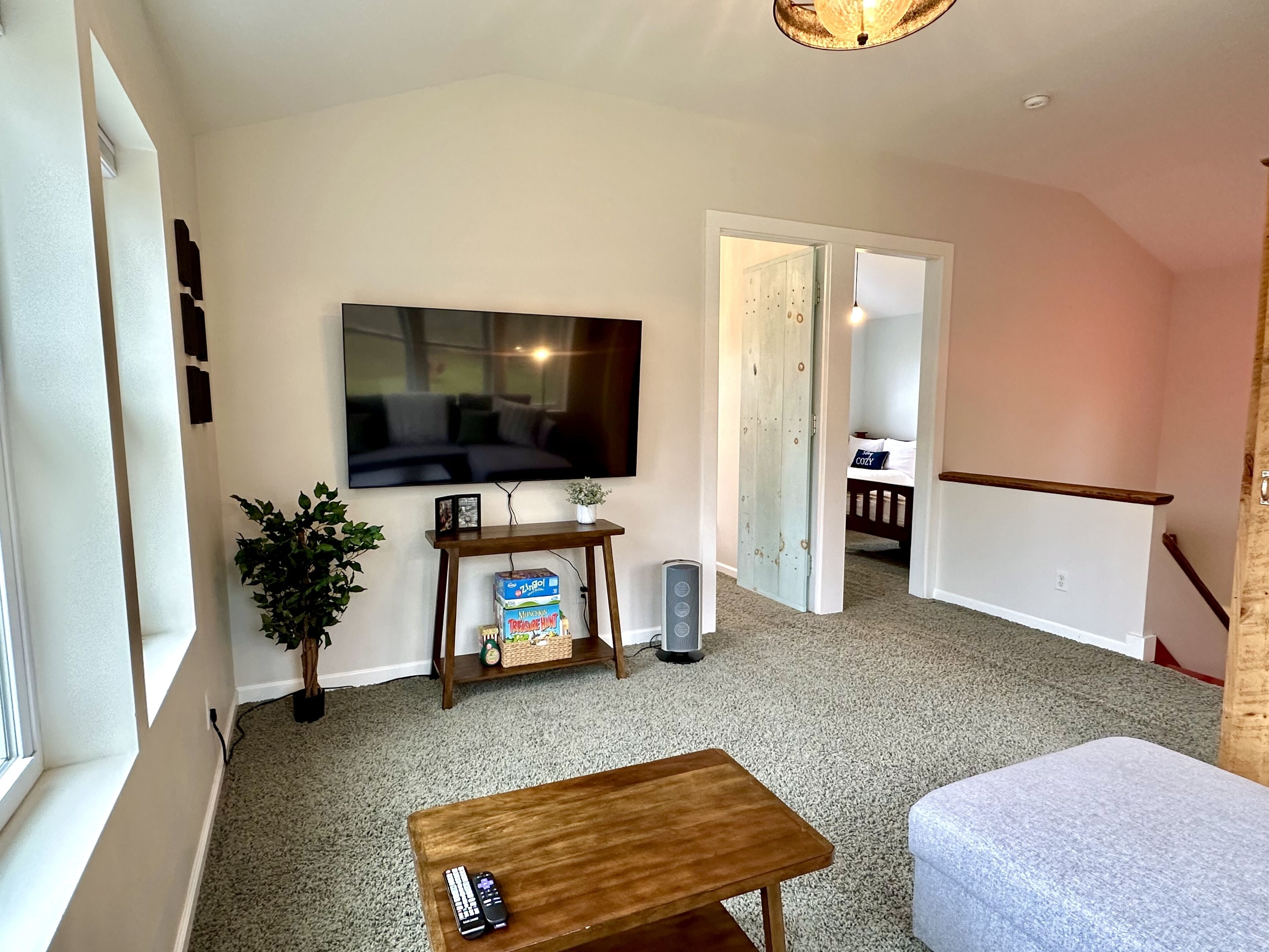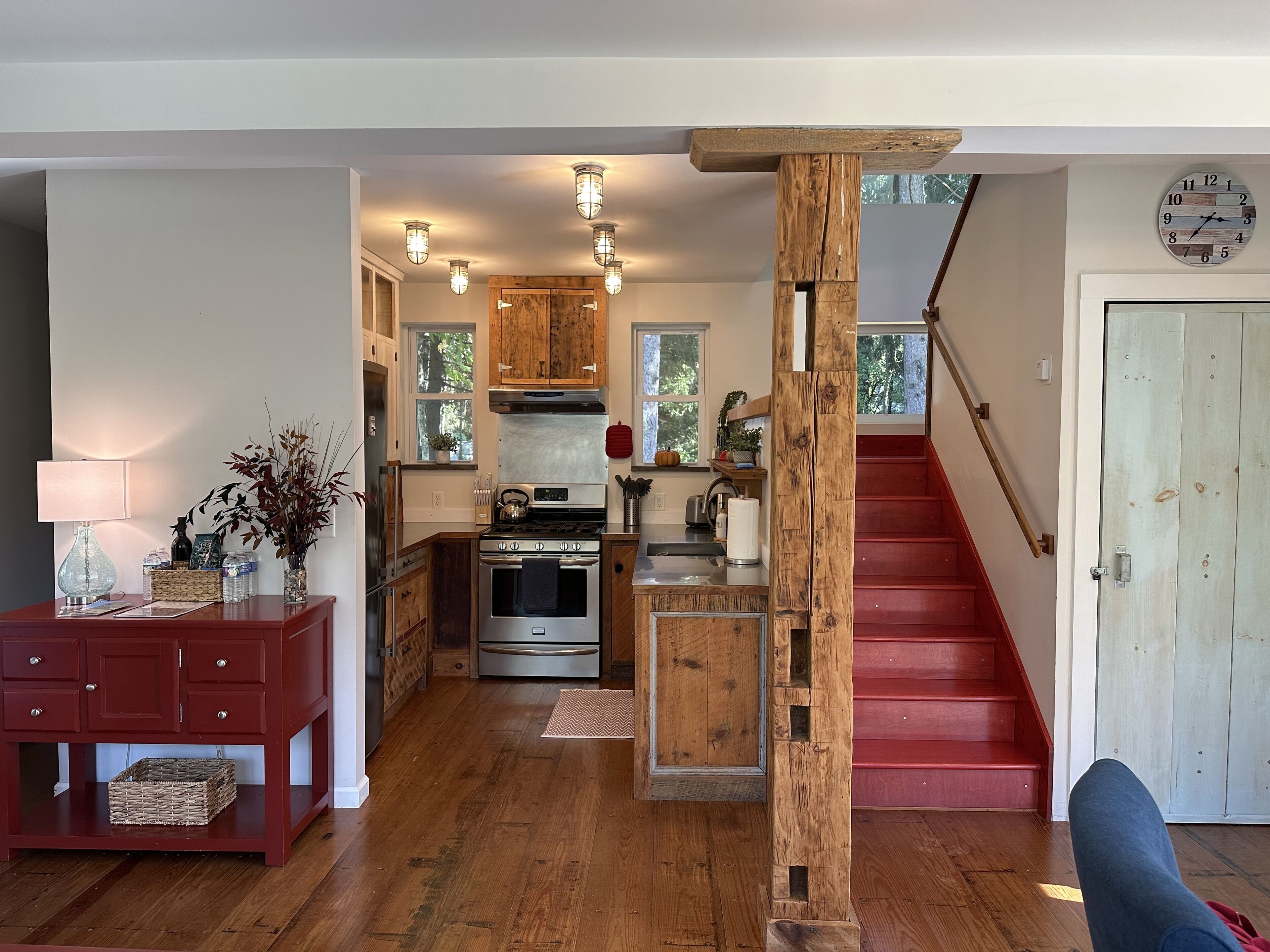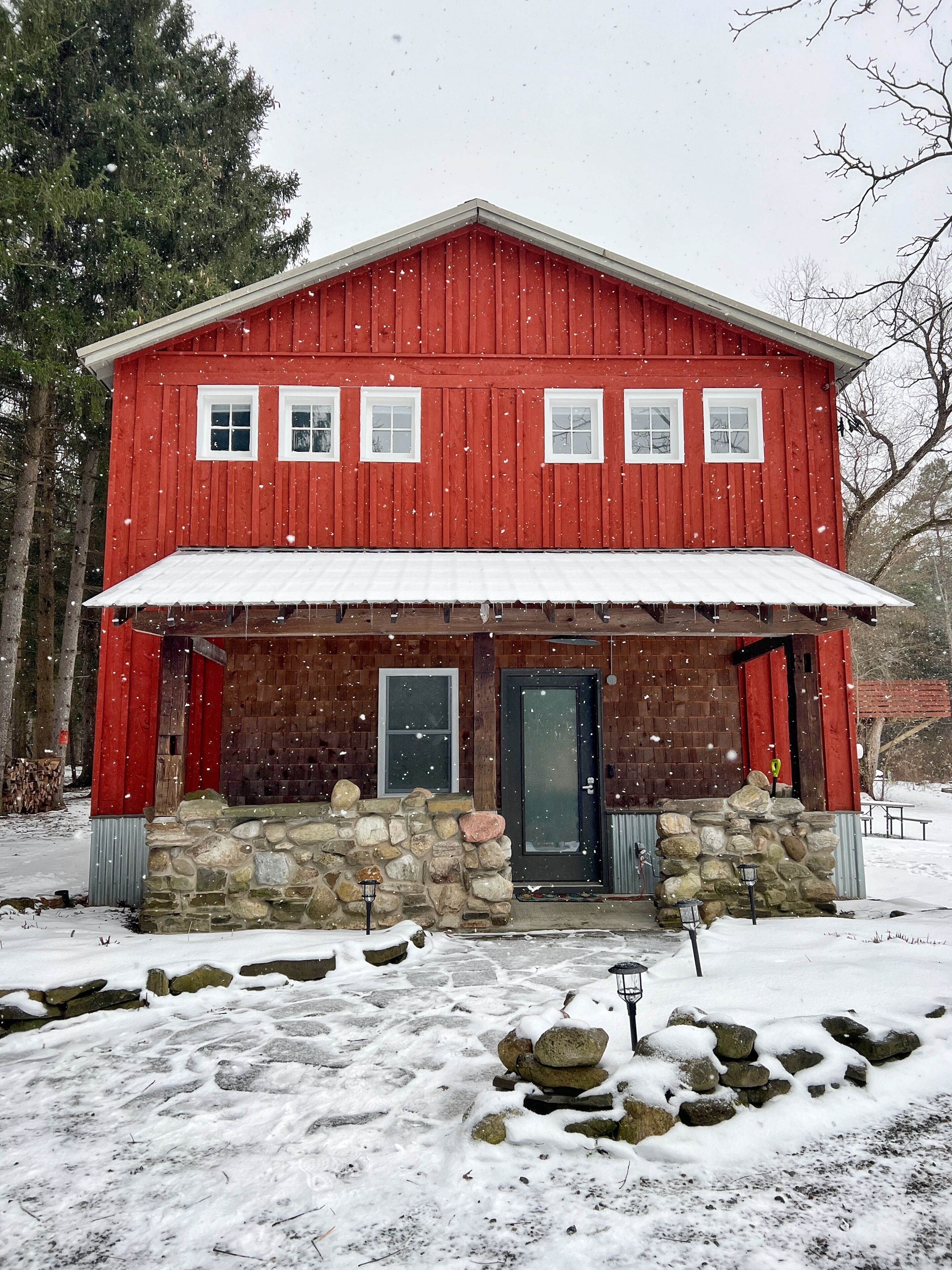Modern Rustic- Private pond, hot tub, Waterfalls, State Parks, Hiking, Cornell Enjoy your next Finger Lakes vacation at the Rustic Red Retreat! Located just outside of Ithaca, and a short drive to Cornell, this home is nestled next to a peaceful pond and provides modern amenities with rustic charm. The beautiful hand-hewn beams, reclaimed materials, and fireplace offer a warm, cozy stay after a busy day exploring the area. Enjoy numerous state parks, incredible waterfalls, wineries, breweries, restaurants, and all the seasonal events that the Finger Lakes have to offer!Located along Cayuga Lake, this beautiful home boasts reclaimed materials throughout - Douglas Fir floors from the bleachers in the previous Ithaca College gymnasium. Hand-hewn barn beams from the late 1800s create a sense of life and warmth on the main floor and hand selected stones from the area were used to build a relaxing front porch. Feeling adventurous? Grab your soap and suds up under the stars in the outdoor shower!The rustic red retreat is perfect for a romantic getaway or to enjoy with family and friends. The main floor features a half bath with laundry, a well-equipped cook-in kitchen, a dining area, and a lovely conversation space with a cozy gas-burning stove.The second level sleeps 5 to 6 guests - two private bedrooms with three beds, an open loft/living space with a sleeper sofa, 65-inch smart T.V., and a full bath.With iconic Taughannock Falls just 3 minutes away, we’ve provided a state park pass for guests to borrow allowing for free parking at any of the nearby state parks. The property also offers a new Weber gas grill, picnic table, Adirondack chairs, and a corn-hole game for guests to enjoy.Notable nearby attractions include Taughannock Falls State Park, Buttermilk Falls State Park, Robert H. Treman State Park, and many other local parks including Cass Park and Stewart Park, and hiking the Black Diamond Trail. Our home is located at the beginning of the Cayuga Lake wine trail with Bet the Farm Winery just 4 minutes away. Want to explore even more? Venture to downtown Ithaca and enjoy many local shops and restaurants just around the corner from the Ithaca Commons and minutes from the colleges. For those who prefer a quieter area with great restaurants and parks, drive just 4 miles to Trumansburg where you’ll find unique shops and local restaurants.