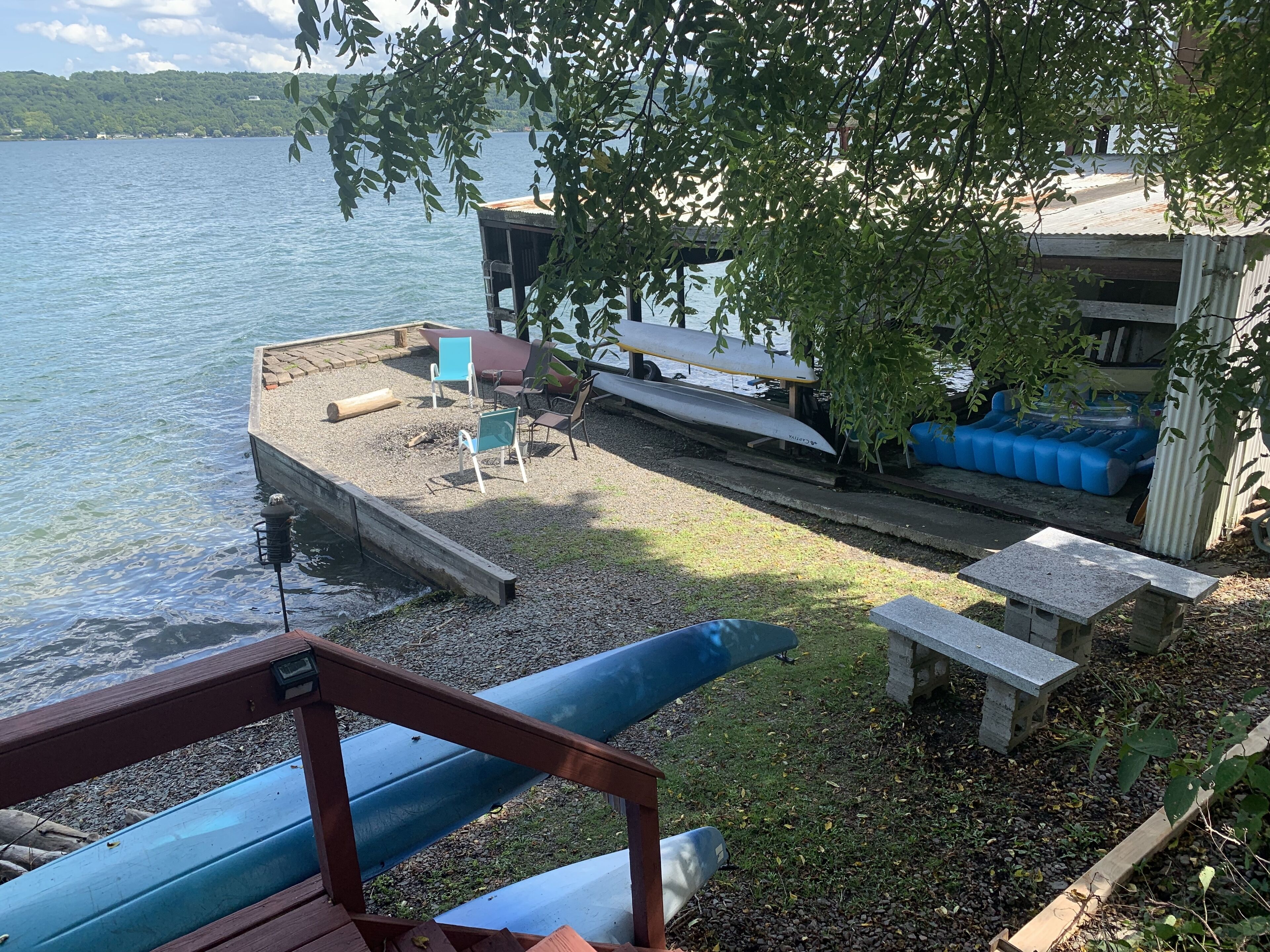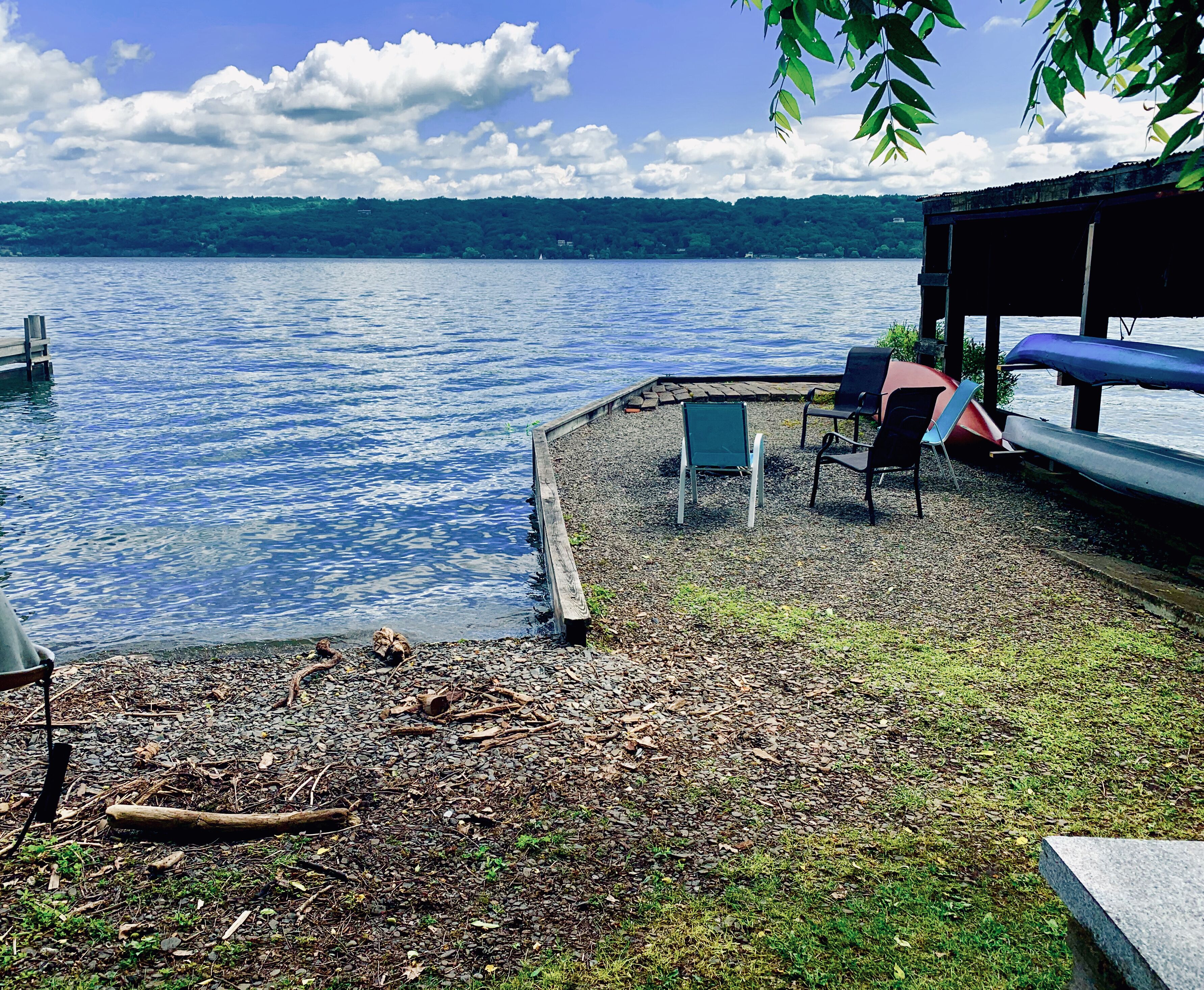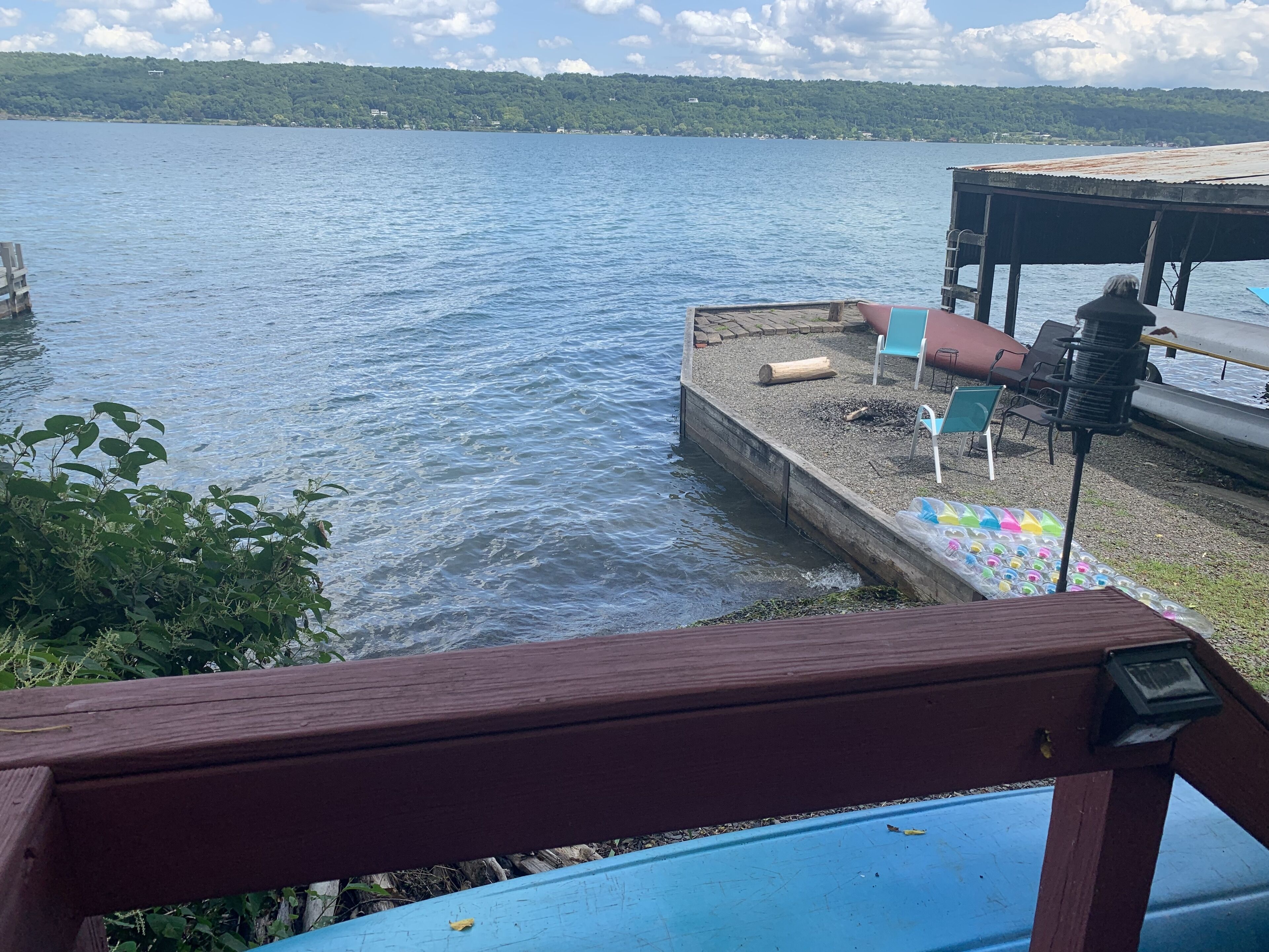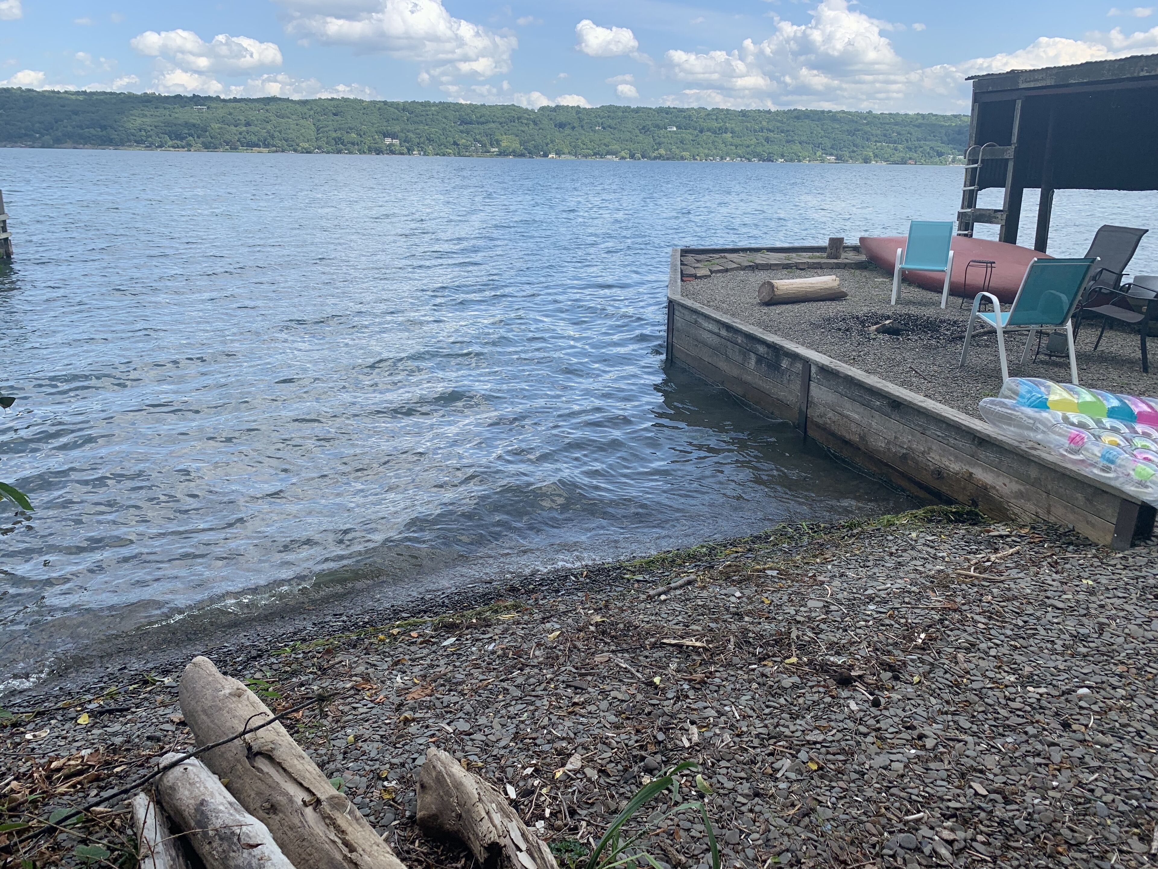 Beautiful Cayuga Lake Beautiful Cayuga Lakehouse available for weekly rentals in July and August, three night minimum in June and two night minimum in the off season. Off-season (after Labor Day and before Memorial Day) the house is available for long-term rental or short stays. The house is fully furnished. We are conveniently located 2 miles from Ithaca, N.Y. in a nice private, relaxing setting. We are located on the west shore of Cayuga Lake on Taughannock Blvd. just 3.5 miles from the Ithaca Commons and 5 miles from Cornell Campus and Ithaca College. This house has a large deck featuring a hot tub overlooking Cayuga Lake. The hot tub accommodates 3-4 people very comfortably. There is a patio table that seats six and lounge chairs for relaxing outside. This house has 2 bedrooms, a fully equipped kitchen with a Jenn Air stove, 2 full bathrooms, central air conditioning, and a spiral staircase.The master bedroom has a queen sized bed, the second bedroom has a queen bed and a twin bed, and there is a queen sized pull-out couch in the living room. There are large closets in the bedrooms with hangers for your clothes as well as large dressers. You can hear the water lapping on the lake shore from the bedrooms. The master bedroom has beautiful lake views. The living room has a comfy chair with ottoman, couch, and recliner. There are bookcases with books for your use and a DVD library and board and card games for your enjoyment. The dining table is located in front of the large windows facing the lake. There is a built in oak desk. The kitchen features a high ceiling, large counter tops for cooking, microwave, toaster oven, 4 slice toaster, drip coffee maker, A Keurig single cup Coffee machine, electric hot water kettle, blender, cook and bakeware, dishwasher, ice trays, spices, and other staples. There is a mudroom for hanging up jackets and taking off wet shoes. The bathroom on the main floor off the living room has a stand up shower and a heat blower. The bathroom on the second floor has a full tub/shower, washer/dryer, and a heat lamp. There are four kayaks and an old canoe with paddles and life jackets available for tenant use. There is a small covered boathouse that is rustic and just used for storage with some rafts, a mini fridge, and campfire wood. The pier has a fire pit for nighttime fun. There are several chairs for relaxing by the lake. We have WiFi high speed internet access and over 190 channels of cable TV and a DVR for pausing, rewinding, or recording your favorite shows during your stay. There is a 42' flat screen TV with DVD player. This is a family oriented neighborhood so no large parties or excessive noise allowed. Please contact us with any questions or if you would like to see more pictures of the house. Please note: The access to the bedrooms on the second floor is via a narrow spiral staircase. This may be difficult to navigate with large suitcases, infants, elderly, and/or pets. The house is at the bottom of a steep driveway. In the winter the driveway is plowed as soon as possible. The driveway is paved. Steps to the house and deck are cleared of snow prior to your stay. During the stay if it snows, shoveling is required. The driveway leads to a small shared parking area where we have two designated parking spots. Additional parking is available at the top of the driveway. *IMPORTANT!* No trailers or boats are to be driven down the driveway. Trailers and boats can be parked in the parking area adjacent to the road at the top of the driveway. Off season rates are for 2 night minimum. Thanks!IMPORTANT: Summer July and August rentals are one week minimum. Rates start at $3150 from Saturday to Saturday. Cornell and Ithaca College graduation weekend rates are $900 per night for 3 night minimum. Additional nights are $900 and discounts apply for full weeks including these graduation weekends. June is three night minimum.Fall, Spring, and Winter are $400 per night for 2 night minimum.