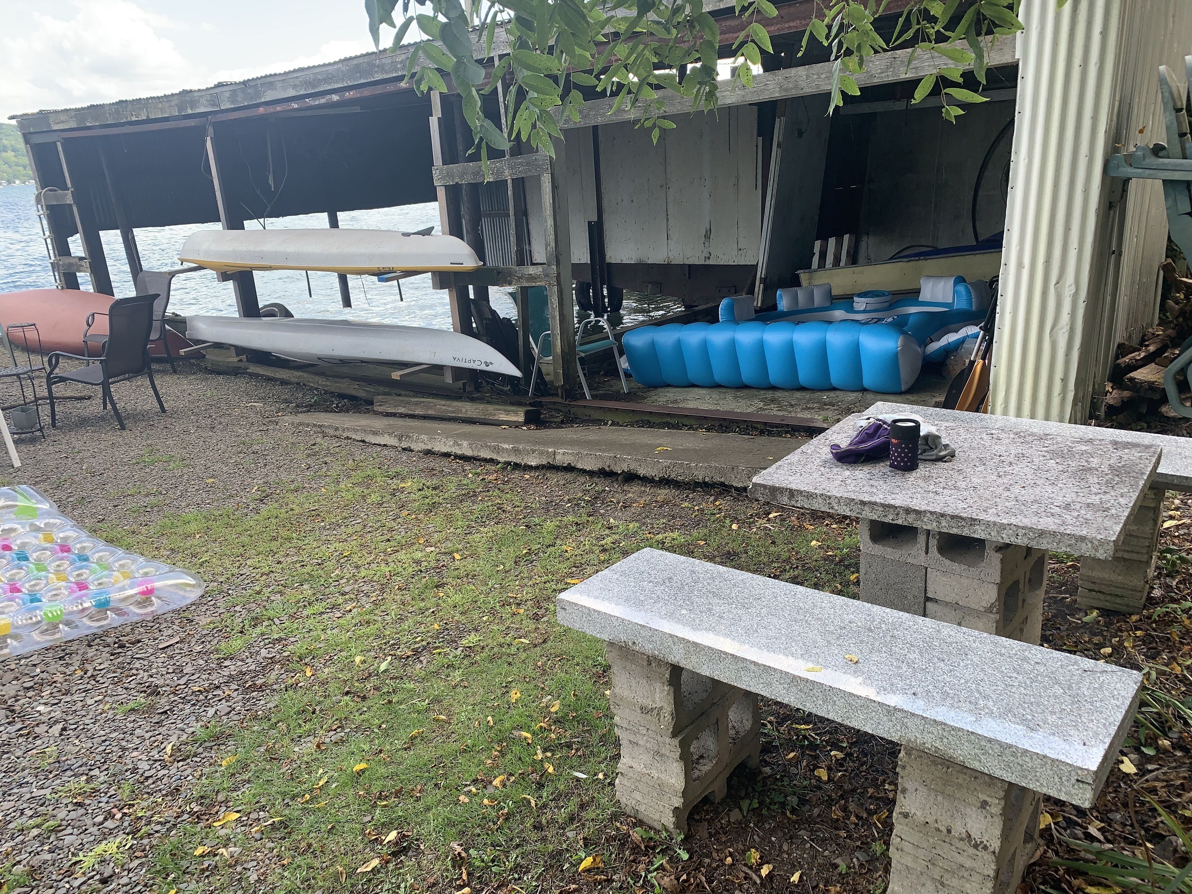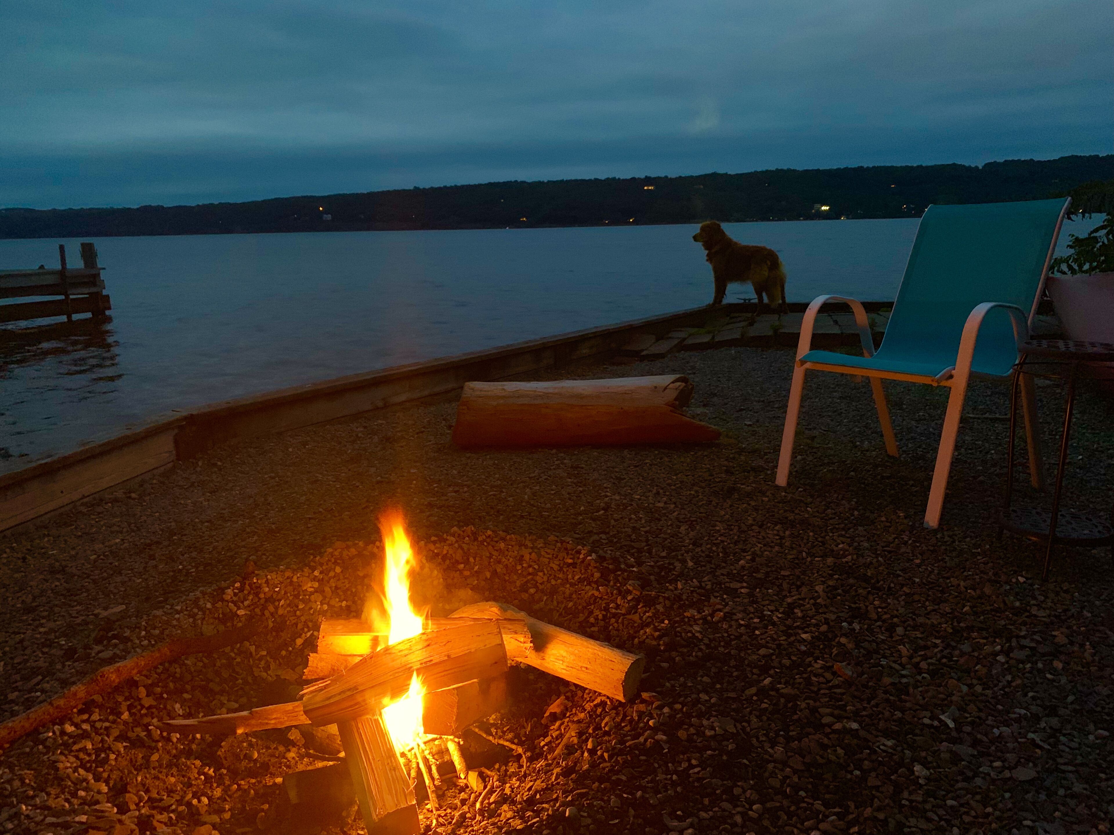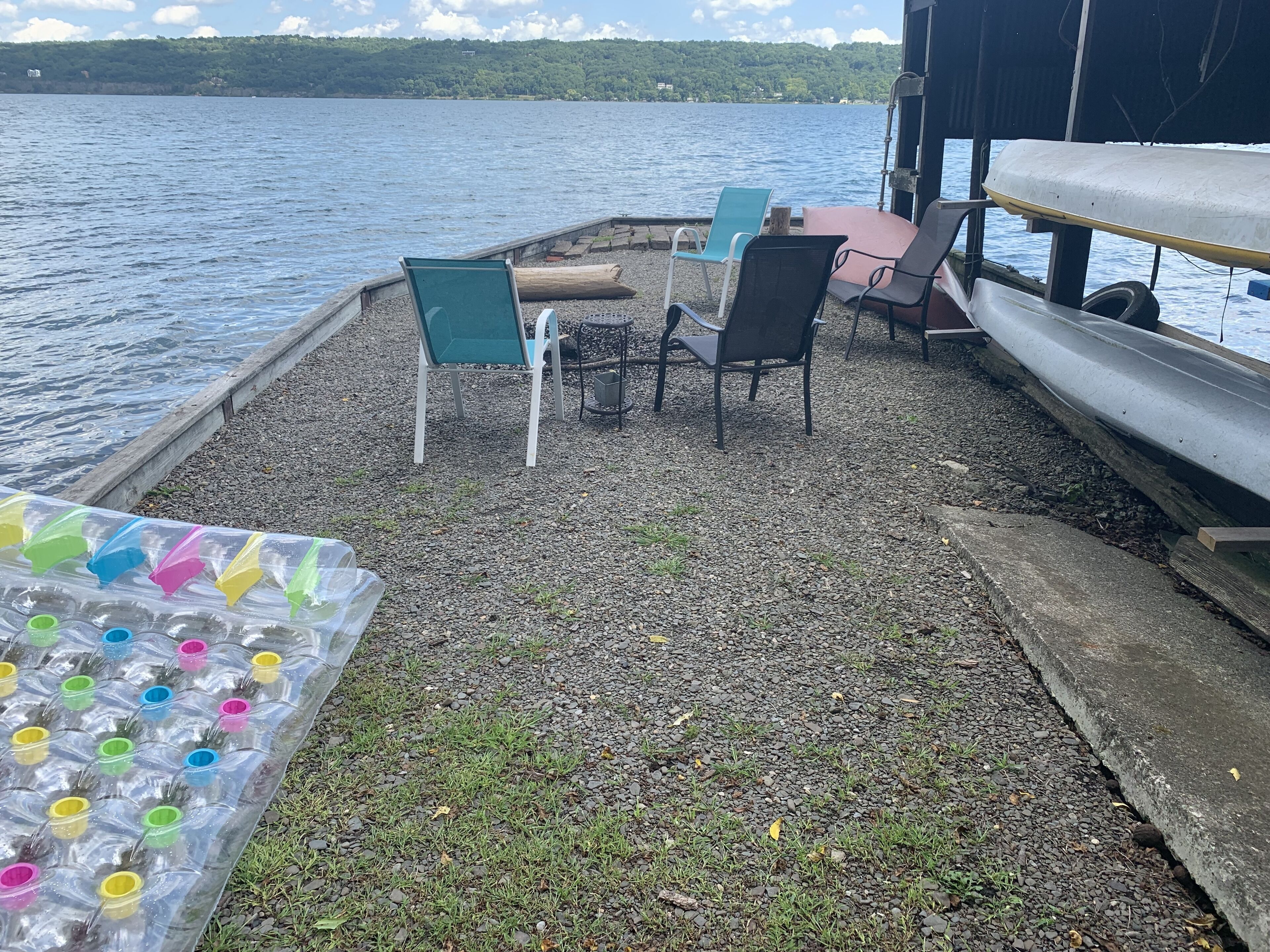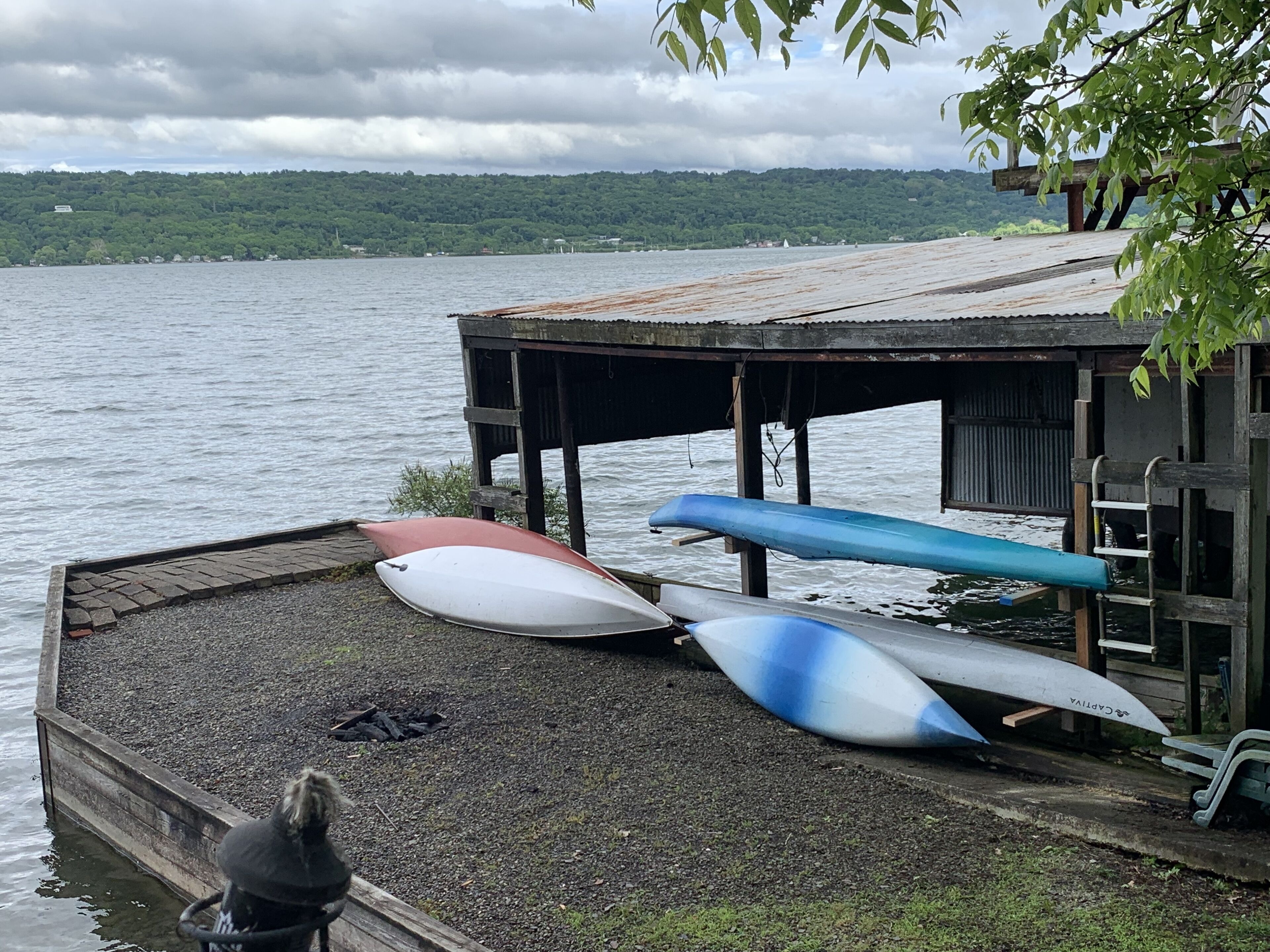Beautiful Cayuga Lake Beautiful Cayuga Lakehouse available for weekly rentals in July and August, three night minimum in June and two night minimum in the off season. Off-season (after Labor Day and before Memorial Day) the house is available for long-term rental or short stays. The house is fully furnished. We are conveniently located 2 miles from Ithaca, N.Y. in a nice private, relaxing setting. We are located on the west shore of Cayuga Lake on Taughannock Blvd. just 3.5 miles from the Ithaca Commons and 5 miles from Cornell Campus and Ithaca College. This house has a large deck featuring a hot tub overlooking Cayuga Lake. The hot tub accommodates 3-4 people very comfortably. There is a patio table that seats six and lounge chairs for relaxing outside. This house has 2 bedrooms, a fully equipped kitchen with a Jenn Air stove, 2 full bathrooms, central air conditioning, and a spiral staircase.The master bedroom has a queen sized bed, the second bedroom has a queen bed and a twin bed, and there is a queen sized pull-out couch in the living room. There are large closets in the bedrooms with hangers for your clothes as well as large dressers. You can hear the water lapping on the lake shore from the bedrooms. The master bedroom has beautiful lake views. The living room has a comfy chair with ottoman, couch, and recliner. There are bookcases with books for your use and a DVD library and board and card games for your enjoyment. The dining table is located in front of the large windows facing the lake. There is a built in oak desk. The kitchen features a high ceiling, large counter tops for cooking, microwave, toaster oven, 4 slice toaster, drip coffee maker, A Keurig single cup Coffee machine, electric hot water kettle, blender, cook and bakeware, dishwasher, ice trays, spices, and other staples. There is a mudroom for hanging up jackets and taking off wet shoes. The bathroom on the main floor off the living room has a stand up shower and a heat blower. The bathroom on the second floor has a full tub/shower, washer/dryer, and a heat lamp. There are four kayaks and an old canoe with paddles and life jackets available for tenant use. There is a small covered boathouse that is rustic and just used for storage with some rafts, a mini fridge, and campfire wood. The pier has a fire pit for nighttime fun. There are several chairs for relaxing by the lake. We have WiFi high speed internet access and over 190 channels of cable TV and a DVR for pausing, rewinding, or recording your favorite shows during your stay. There is a 42' flat screen TV with DVD player. This is a family oriented neighborhood so no large parties or excessive noise allowed. Please contact us with any questions or if you would like to see more pictures of the house. Please note: The access to the bedrooms on the second floor is via a narrow spiral staircase. This may be difficult to navigate with large suitcases, infants, elderly, and/or pets. The house is at the bottom of a steep driveway. In the winter the driveway is plowed as soon as possible. The driveway is paved. Steps to the house and deck are cleared of snow prior to your stay. During the stay if it snows, shoveling is required. The driveway leads to a small shared parking area where we have two designated parking spots. Additional parking is available at the top of the driveway. *IMPORTANT!* No trailers or boats are to be driven down the driveway. Trailers and boats can be parked in the parking area adjacent to the road at the top of the driveway. Off season rates are for 2 night minimum. Thanks!IMPORTANT: Summer July and August rentals are one week minimum. Rates start at $3150 from Saturday to Saturday. Cornell and Ithaca College graduation weekend rates are $900 per night for 3 night minimum. Additional nights are $900 and discounts apply for full weeks including these graduation weekends. June is three night minimum.Fall, Spring, and Winter are $400 per night for 2 night minimum.