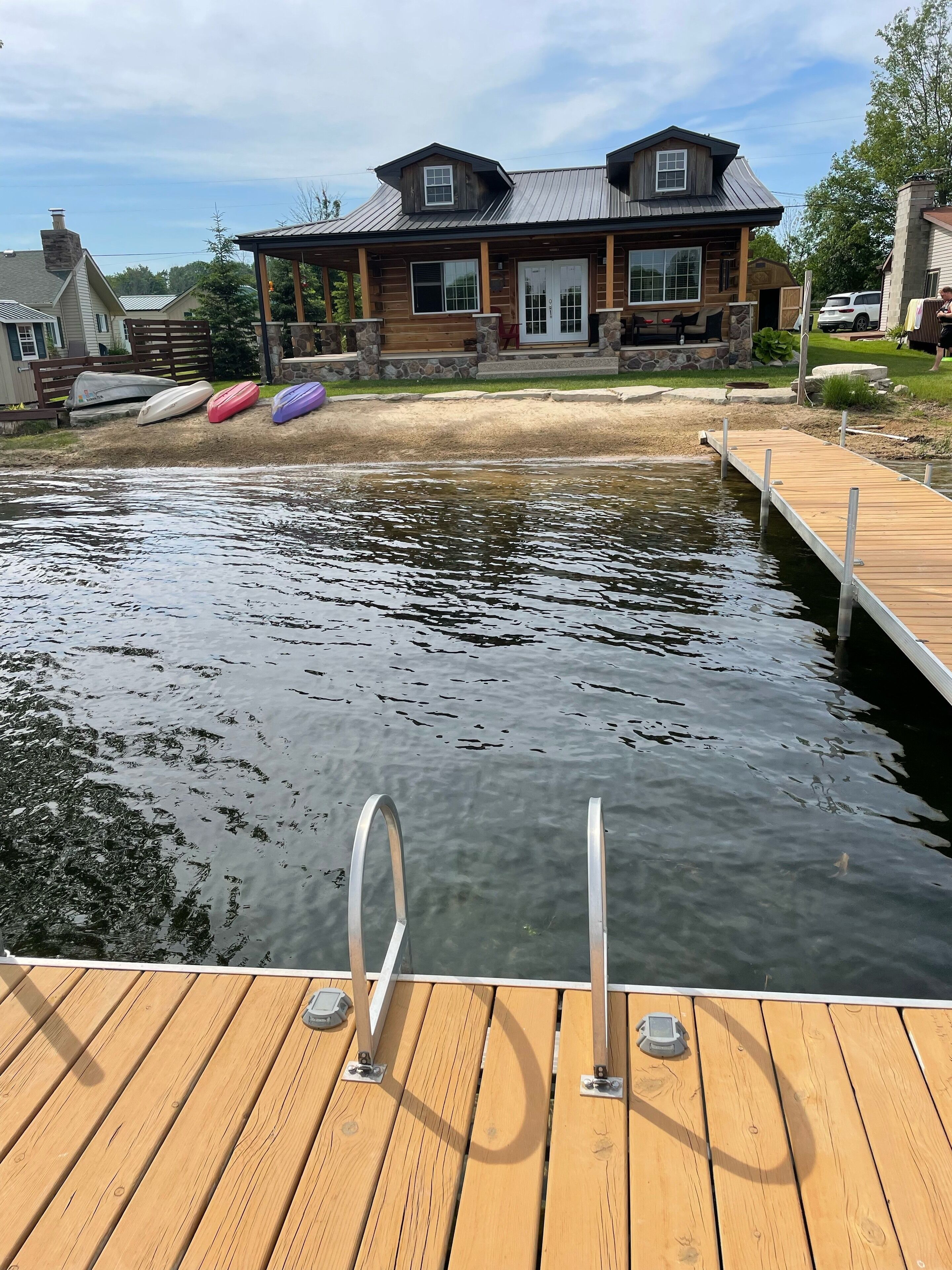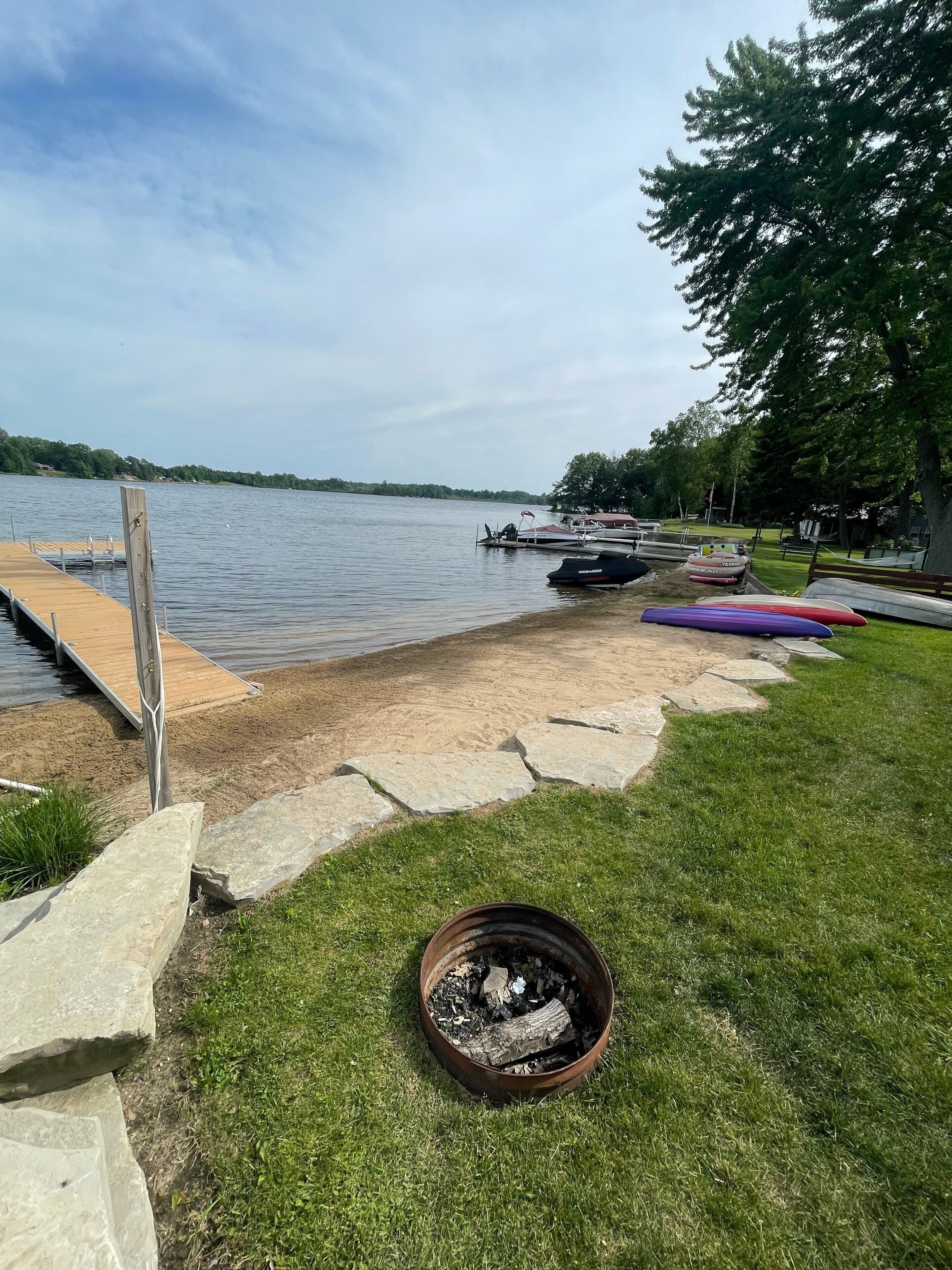 Big Lake Bungalow - Private Beach w/ Boat launch access Welcome to BIG LAKE, a low-key all sports lake we welcome you to enjoy with your friends and family. Our cabin is lake front with a public launch, and a private dock, providing everything you need to bring your own watercraft. We have multiple kayaks for use along with a rowboat that's perfect for fishing.TV, DVD player, some DVDs, books, games and cards are stocked inside for a rainy day. There is no Wi-Fi and only local channels, providing a "disconnected" environment to ensure ultimate relaxation. Towels and bed linens are provided along with some basic kitchen condiments, grilling spices and grilling tools.Nearby Evart is the home of the Dulcimer and non-electric music festival in July, as well as the Woodcarvers Festival in June. Beginning in June there is a local farmers on Saturdays from 9am-1pm. Rafting, tubing, and kayak trips are available on the nearby Muskegon River.Located approximately 2.5 hours northwest of Metro Detroit and 1 hour north of Grand Rapids. Day trip to Traverse City, Ludington, Manistee & Frankfurt all up to 1.5 hours away.