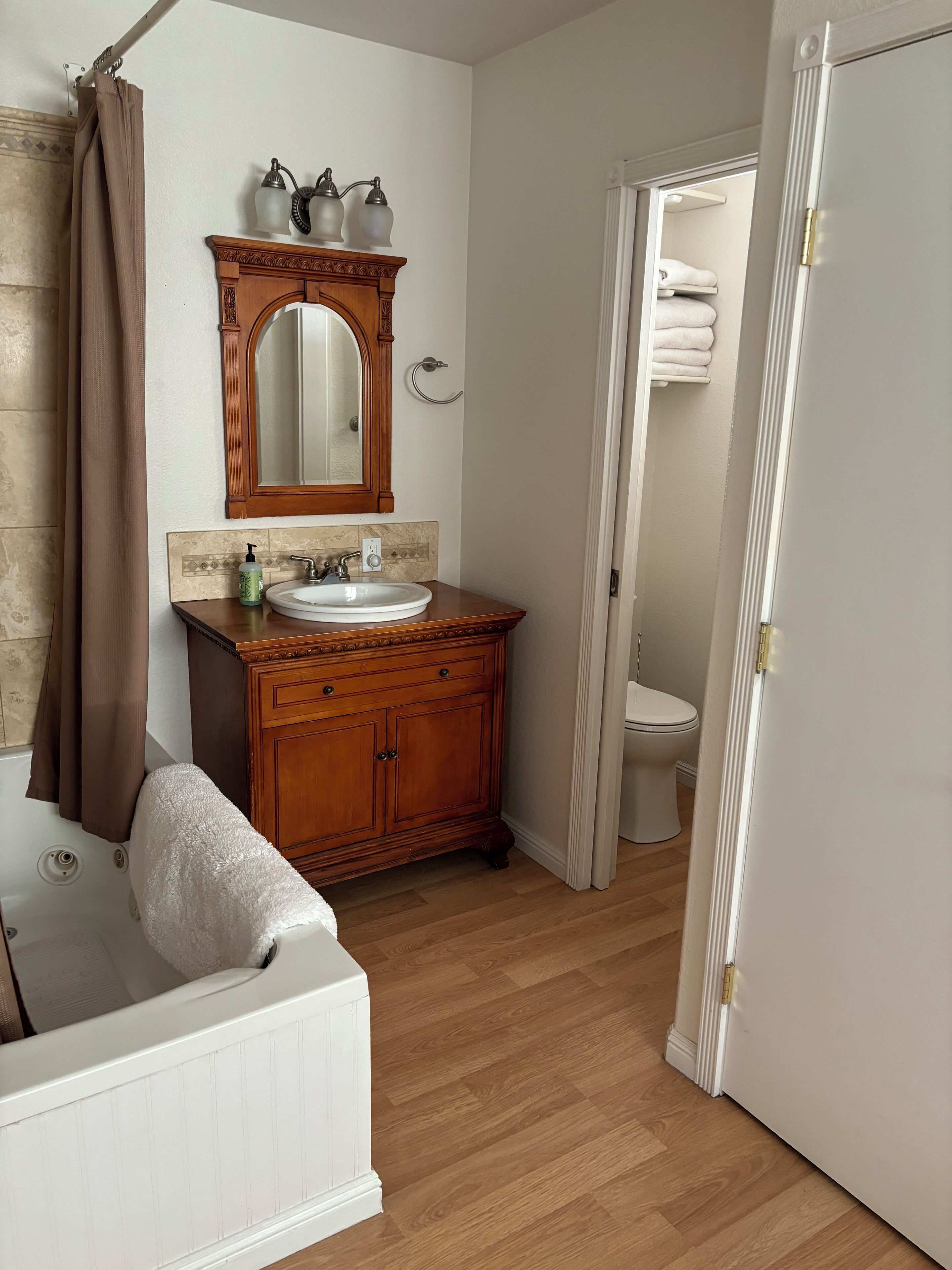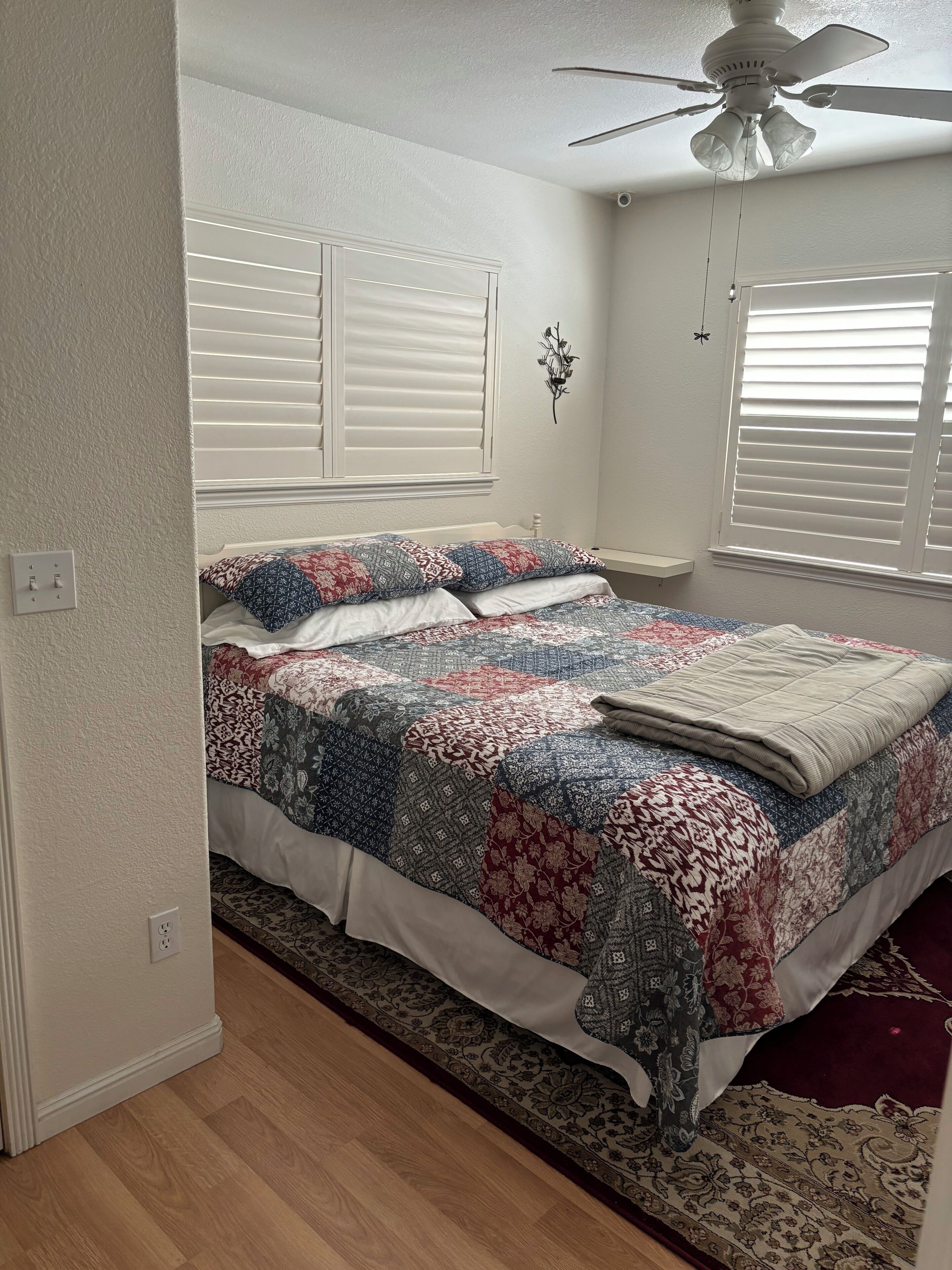 Tranquil,3 bedroom ,2 bath,near Lake Tahoe Sleeps 6 , Serta Perfect king bed, Queen , and twin trundle, , linens provided,washer and dryer, TV, air conditioning, quiet and safe neighborhood, private back yard, private car port, BBQ, full kitchen stocked with cooking utensils, etc., centrally located to many resort destinations. Within an hour to many ski locations, of the mountains, and 20 minutes from the mountain to Lake Tahoe,restaurants,and Heavenly. Ski resort.