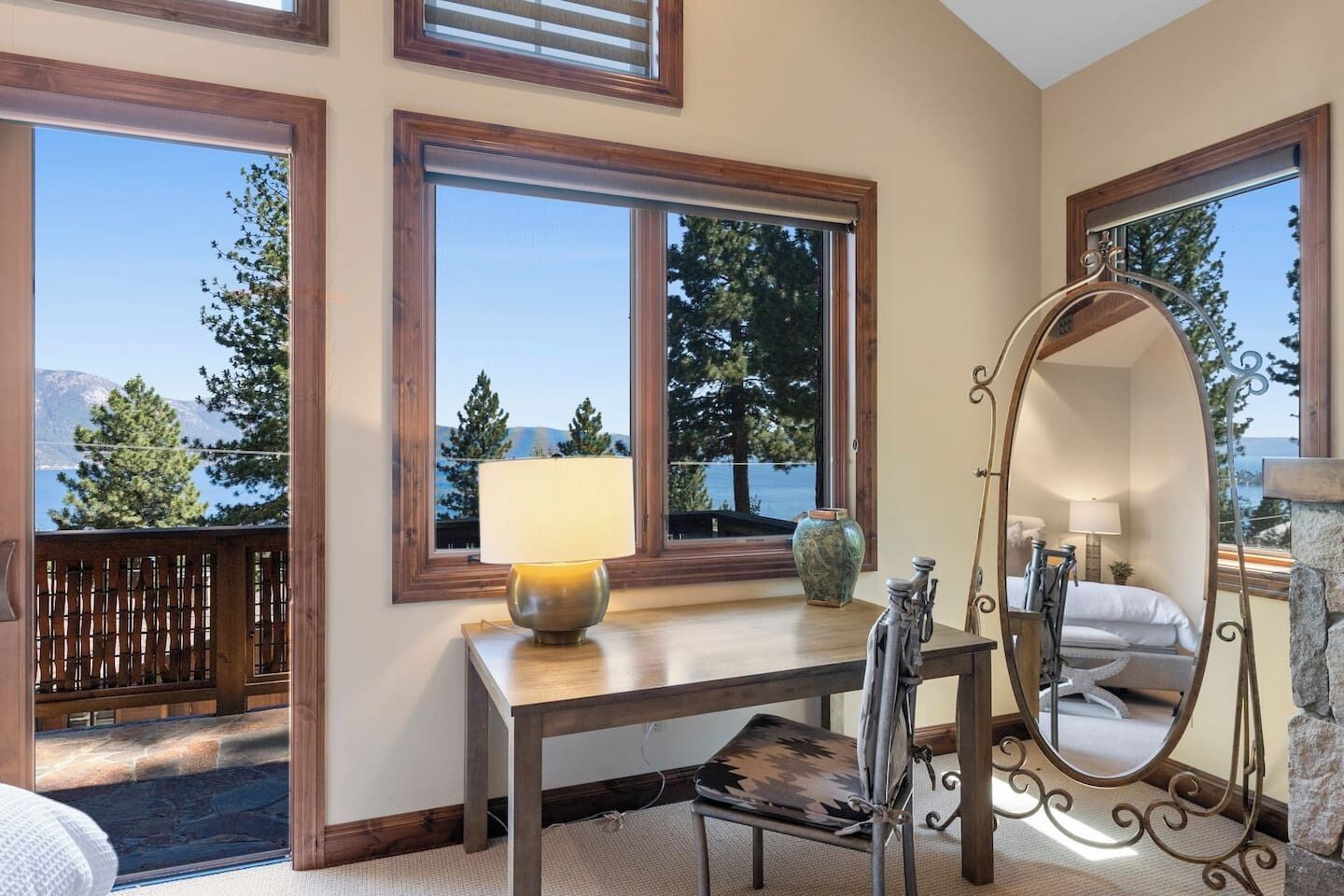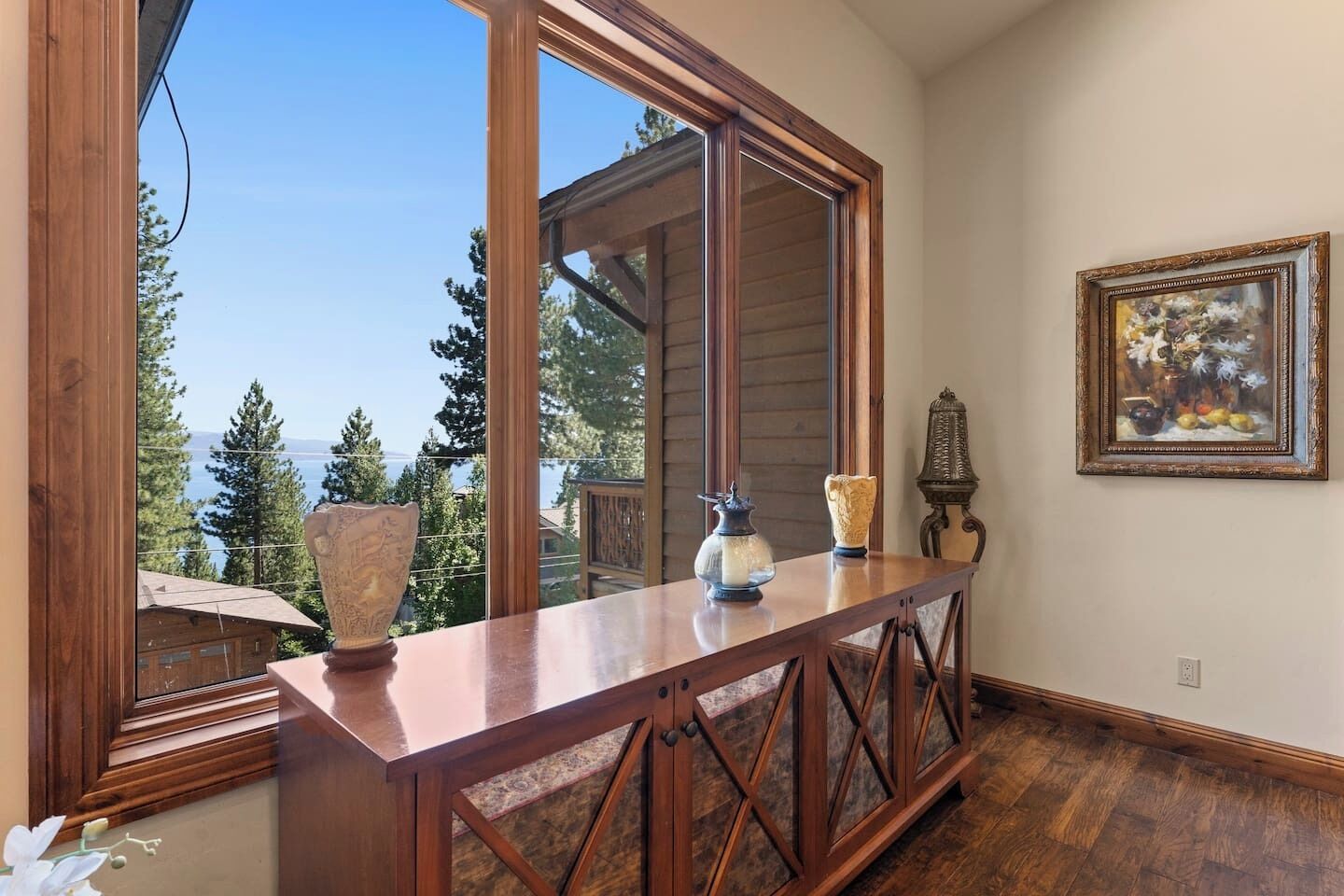 Lakeview Manor Spa WineBar Foosbal Elevator & Gym Imagine waking up to the warmth of your private fireplace & gazing out the window to panoramic views of turquoise Lake Tahoe. You step onto your private balcony to enjoy a delicious morning cup while the rest of the house wakes up. Invigorated, you squeeze in a workout in the home gym until smells of breakfast bring you to the Chef's kitchen. Ready...