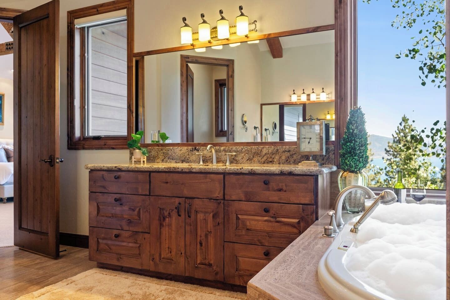 Lakeview Manor Spa WineBar Foosbal Elevator & Gym Imagine waking up to the warmth of your private fireplace & gazing out the window to panoramic views of turquoise Lake Tahoe. You step onto your private balcony to enjoy a delicious morning cup while the rest of the house wakes up. Invigorated, you squeeze in a workout in the home gym until smells of breakfast bring you to the Chef's kitchen. Ready for the day, you take the elevator downstairs & take a short drive to the beach. Later, you unwind with a game of Foosball & soak in the Hot Tub.Welcome home to your dream getaway! Nestled in a highly sought-after neighborhood, this custom mountain home boasts breathtaking panoramic lake views from almost every room, creating a serene and picturesque escape.Step into the upper level great room, where the rustic charm of beamed ceilings meets the warmth of a cozy fireplace. Imagine gathering around the gourmet kitchen island, which seats six comfortably, and enjoy the convenience of Dacor professional appliances and a wine bar. The dining area flows seamlessly to the deck, perfect for al fresco meals with stunning sunset views.Retreat to the beautiful master suite, featuring a bedroom-sized custom closet and an additional walk-in closet for all your essentials. Unwind by the private fireplace or step out onto your own deck to savor the fresh mountain air. The master bath offers a luxurious experience with a steam shower and a soaking tub, inviting you to relax and rejuvenate.The mid-level hosts a second master suite and two en-suite guest rooms, each thoughtfully designed for comfort and privacy. The huge family room is an ideal space for entertaining, with an office nook and deck providing versatile options for work and play. The gym and patio, complete with an outdoor Spa, offer a perfect setting for relaxation and wellness.The formal entry welcomes you with a stunning waterfall feature, setting the tone for the elegance that follows. With elevator access to all levels, convenience is at your fingertips. The tandem three-car garage, with a second bay measuring 29.9 feet, provides ample space for your vehicles and storage needs.Every detail has been meticulously curated, from the custom iron railing and sconces to the warm LED step lights and 8-foot solid alder doors. Light-filtering blinds and hydronic in-floor heating throughout ensure a cozy and inviting atmosphere. The extensive landscaping, featuring stone wall terraces, adds to the home's charm, while the southeast-facing driveway with an easy grade offers low elevation for effortless access. The fully fenced backyard also adds a sense of security for children or furry friends to play.Indulge your senses and create unforgettable memories in this exceptional mountain retreat. Book now and experience the perfect blend of luxury, comfort, and natural beauty.During your stay, you'll have access to the entire house, garage, patios, and backyard.Our home is yours to use during your stay and you will not be disturbed, but our local team in Incline Village is just a phone call or message away if you ever need anything or have questions!This is NOT a party house, and our maximum occupancy is 10 guests. There is NO smoking allowed. Please try to limit the number of vehicles to 5 cars total and park your cars in the garage or in the drivewayWe offer 14 other homes in the Tahoe/Reno area, so if you're looking for additional accommodation beyond 10 people, check out our host page to see other other listings/availability!Washoe County Permit Number: WSTR24-0084TLT Number: W-5156- NO PARTIES OR EVENTS (this is a quiet, family neighborhood and there will an $1000 fine for any reported parties or noise complaints) - Quiet hours are strictly enforced from 10pm – 9am each day. Quiet hours apply especially to our outdoor areas (hot tub, patios). If you can't keep it way down outside after 10pm, PLEASE bring it inside to respect our neighbors, as they have been known to call the authorities (no one want to deal with that!) - According to Incline Village Laws, ALL TRASH MUST be placed in our Bear Box to prevent access by wildlife. PLEASE DO NOT leave any trash or trash cans outside of the home, or there will be FINE OF $1000.- The recycling bin can ONLY be placed outside of the home on Tuesday mornings starting at 5am, and brought in once same day once it's been collected by Waste Management. NO FOOD WASTE can be place in the recycling bin or there will be a FINE OF $1000.- Due to Washoe County Regulations, no more than 4 vehicles are permitted to be parked at the property (2 in the driveway and 2 in the garage). NO STREET PARKING is permitted- No RVs or trailers may be parked on the street or driveway due to Incline Village code enforcement—violation WILL RESULTS IN A $500 FINE- Please do not allow children in the elevator unsupervised—it is not for playing- Smoking is NOT allowed anywhere on the premises. - Small dogs and cats are allowed. All dogs must be kept on a leash throughout the neighborhood. - Please park all vehicles in the driveway when possible, not on the street - Loud, rude, obnoxious, disrespectful, or disorderly behavior is not allowed at any time. We will give one courtesy warning for any such behavior. If such behavior continues, you and your party can be evicted without refund. - Normal cleaning fees are included in all rental rates, however additional billing will occur for any excessive/abnormal cleaning, damages, or missing items. - Please make sure to fully turn off the BBQ and fire pit after use - To help us preserve cleanliness of the hot tub, please rinse off prior to use - Please do not use the white towels on the floor, on kitchen surfaces, or for cleaning make up—there are kitchen/make up towels and paper towels provided - Please do not have packages or mail delivered to the home - Please make sure doors and windows are closed & locked when leaving the unit. - Linens, blankets, and towels are not to be removed from the ho
