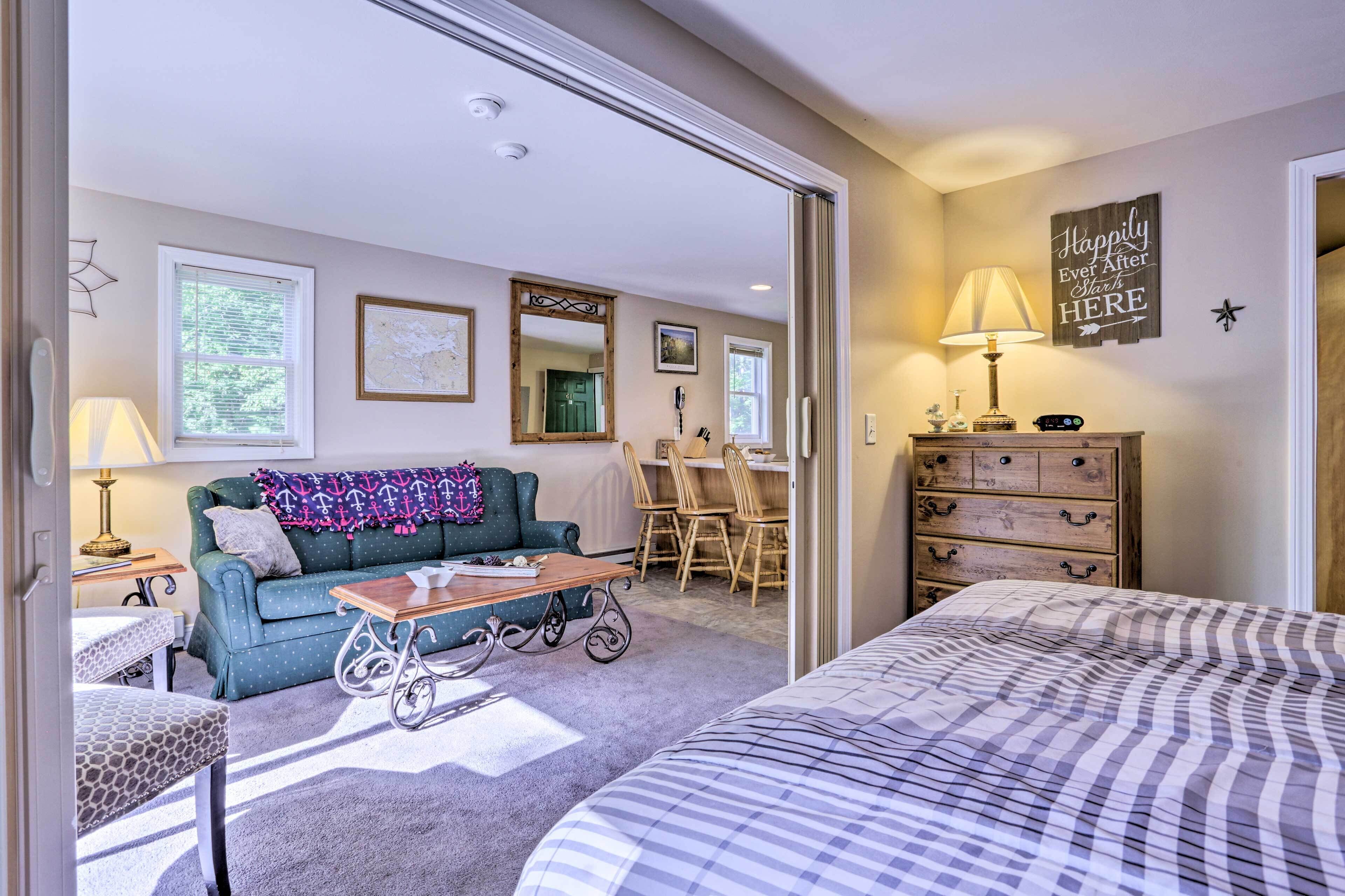 Lake Getaway: Walk Across Street to Private Beach! Experience all New Hampshire has to offer and more from this charming 1-bedroom, 1-bath vacation rental condo in Gilford! Nestled just across the street from Misty Harbor's private beach, you'll enjoy a variety of amenities, including access to Lake Winnipesaukee, a private deck, and a fully equipped kitchen. When you're not kayaking across the la...