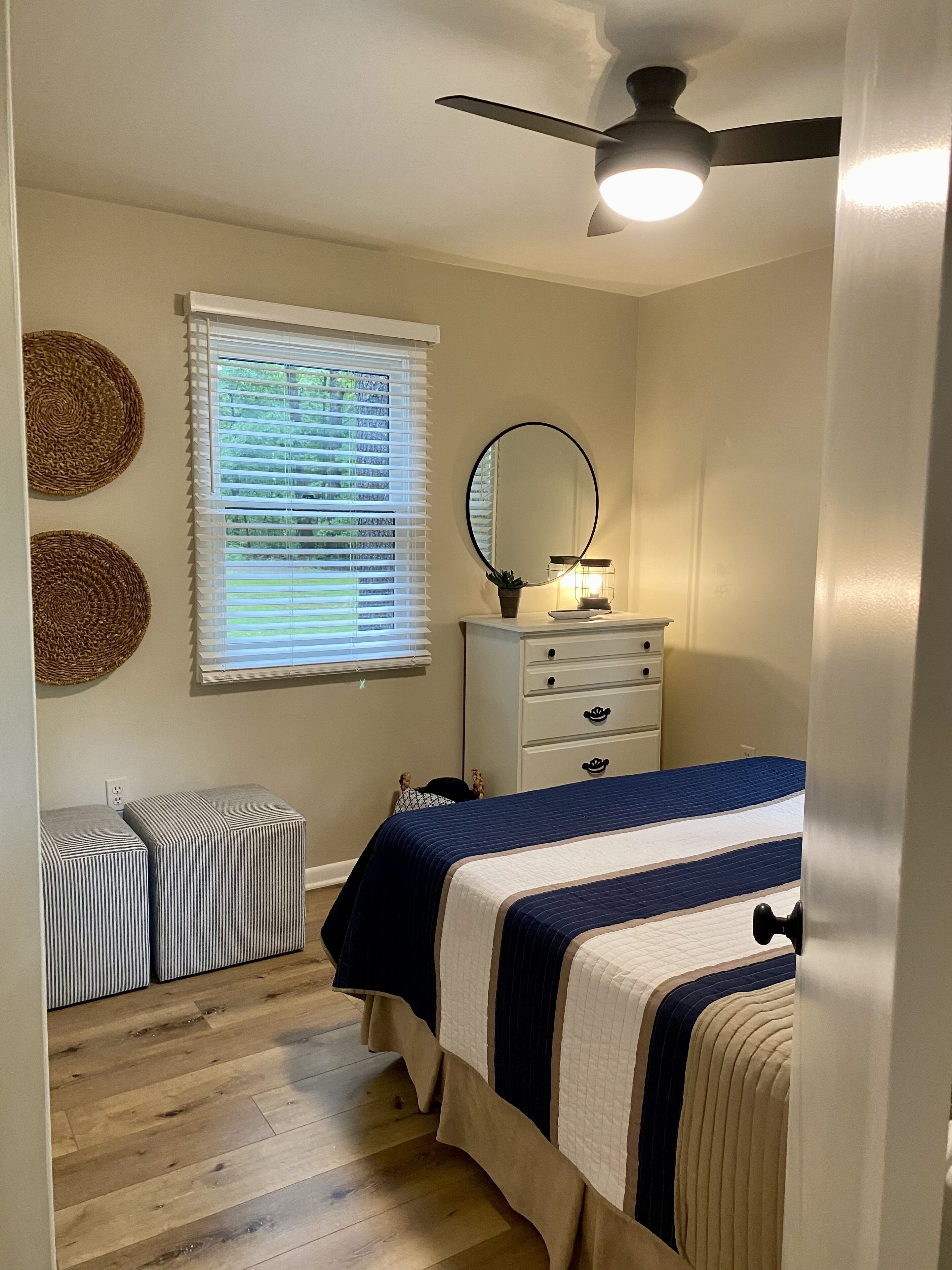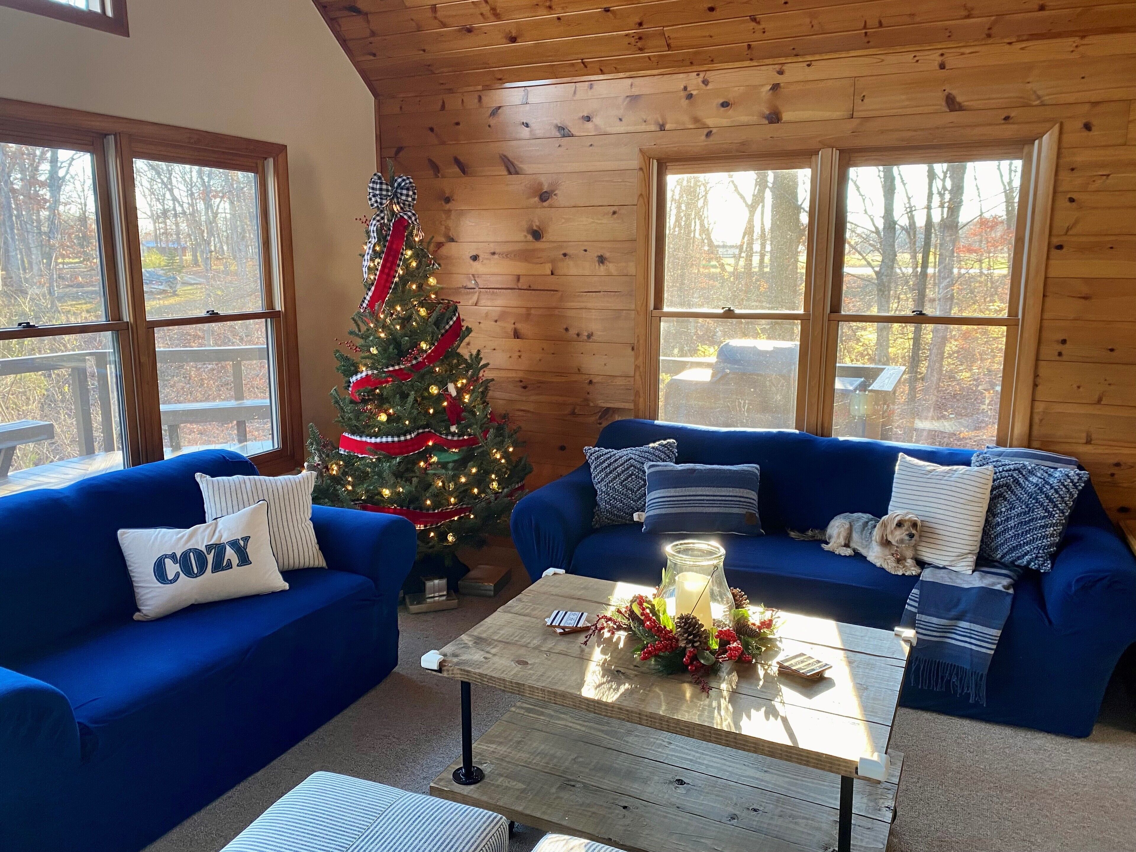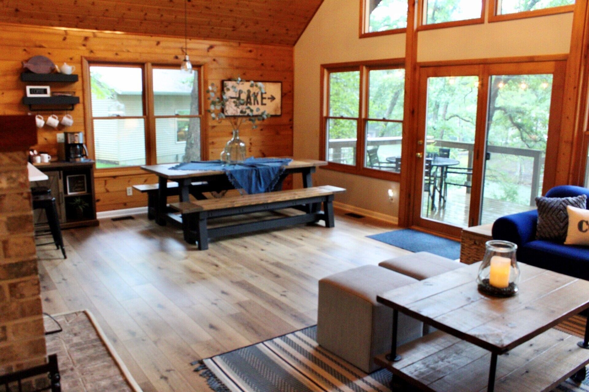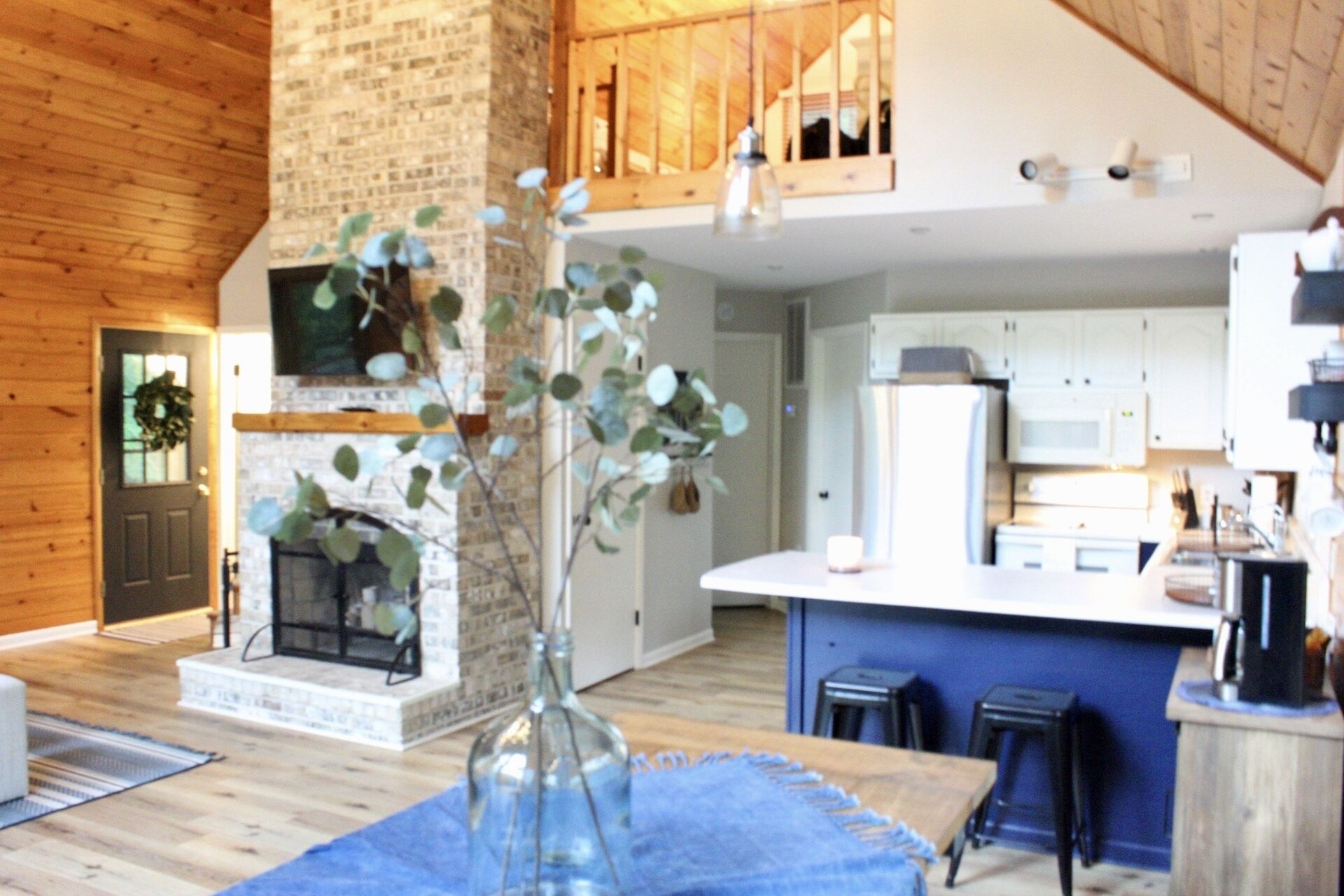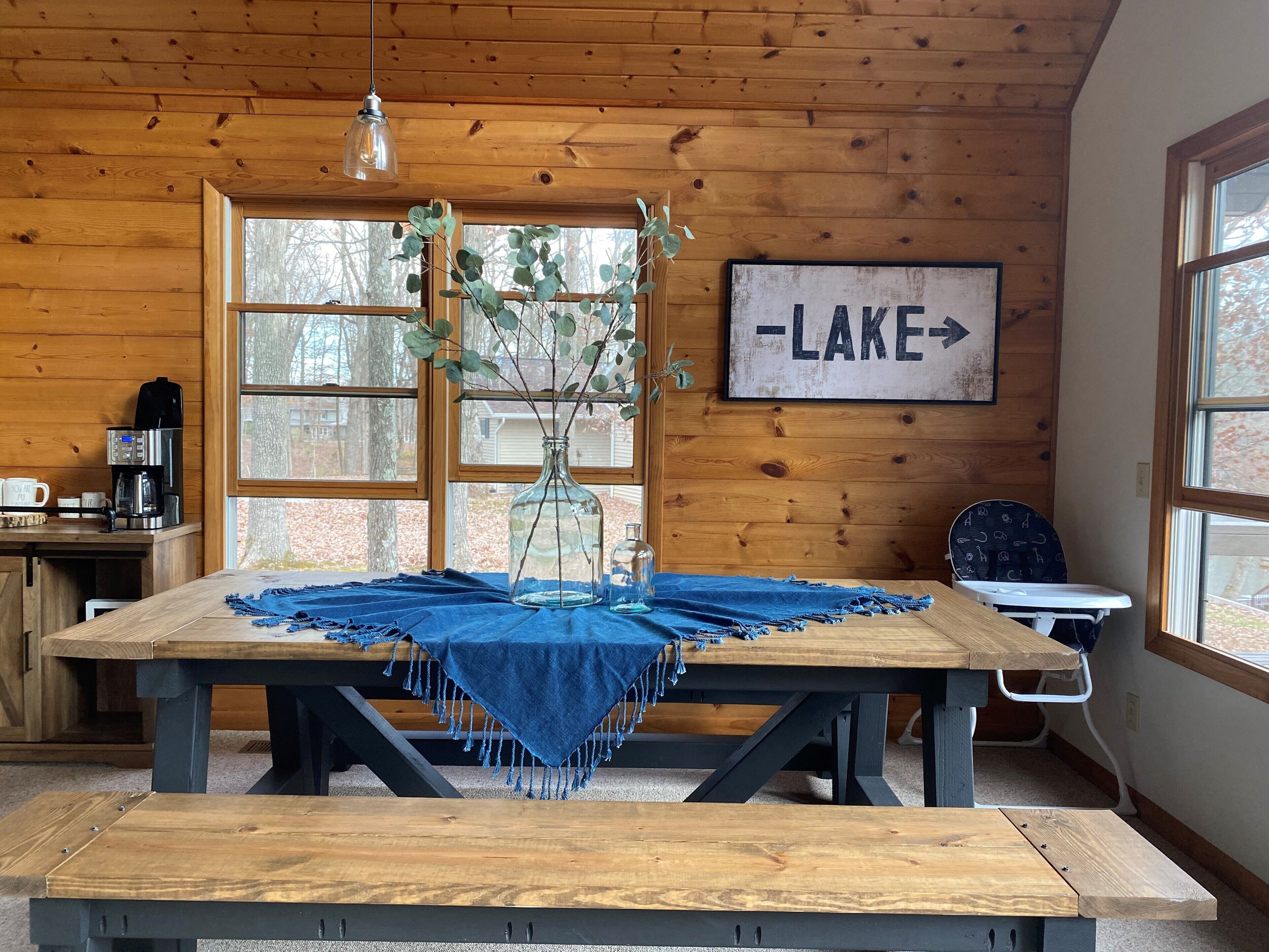 Cozy Lake Sara Year-Round Cottage- Amazing beach and lake-side restaurants. Vacation Rental Amenities: Our lake house is a year round cottage that includes heaand central air-conditioning. The cottage is a 3 bedroom, 1.5 bathroom open concept with huge vaulted ceilings and picturesque windows to capture the scenic lake views. The bedrooms accommodate 6. -2 bedrooms & 1 loft bedroom (sleeping a total of 6) -Queen size Sofa-bed in living room (sleeps 2)-Queen size air mattress -All Beds include pillows, sheets, and blankets -Towels & Beach towels provided -2 Hair dryers in both bathrooms-Baby gate, pack & play, high chair, & baby walker available -4 person raft & paddle board-Full size washer and dryer-Fully equipped Kitchen includes: Stove/oven, refrigerator, microwave, toaster, crock pot, blender, air fryer, coffee pot, pots & pans, dishes and kitchen utensils-Firewood provided for outside camp fires-Outdoor table & chairs & 2 rocking chairs -Charcoal & Gas Grill -Board games & puzzles Details & Things to Do/Attractions: Lake Sara is an 800-acre lake located 4 miles west of the city of Effingham. Lake Sara's attractions include 2 marinas, 2 restaurants: PInky's & Heron Cove, 1 bar- Rusty Reel, an ice cream truck, bait shop, and public beach with playground. The lake offers boating, fishing, swimming, water sports, kayaking, & paddle boarding. Pontoon rentals available both at the marinas and online. Other recreational activities in the area include hiking, biking, golf, hunting, and sledding. The downtown area of Effingham is filled with unique shops & boutiques, local restaurants and cafes. Area Attractions near Lake Sara: -Pinky's (Lake-side)-Heron Cove (Lake-side)-Rusty Reel Bar (Lake-side)-Local restaurants & cafes -Wineries -Historic downtown Effingham -Local festivals & seasonal farmers markets -Grocery stores-Ice cream shops -Liquor stores-Golf courses - Theatres