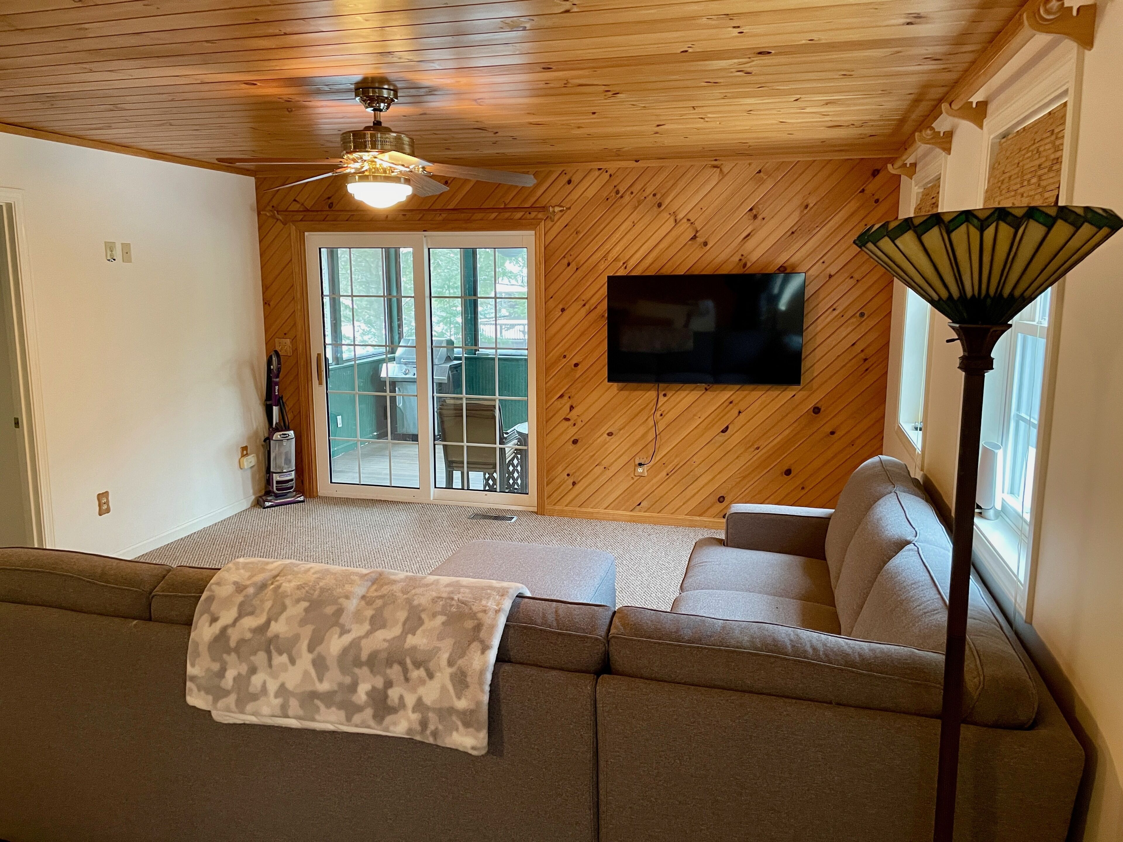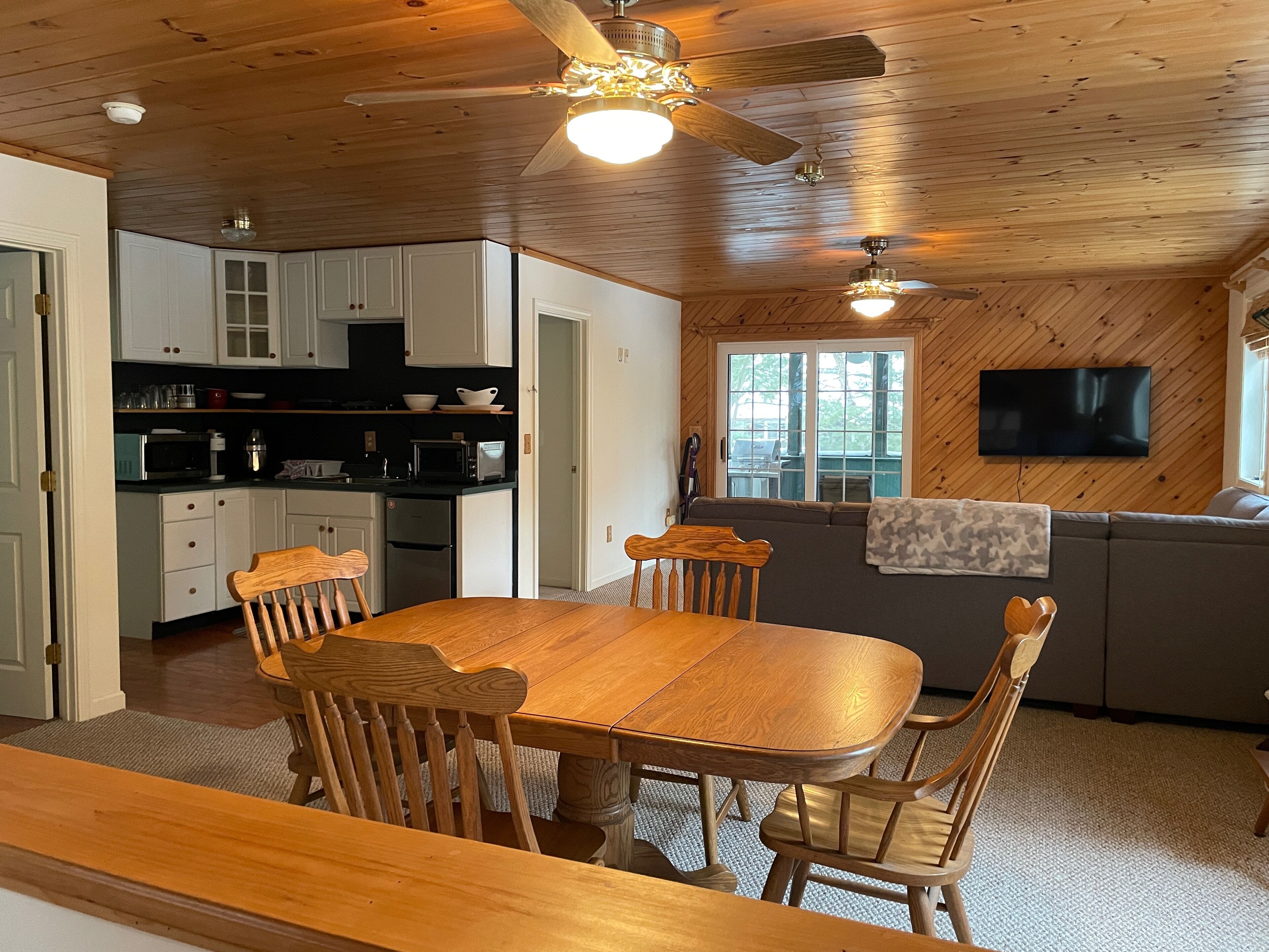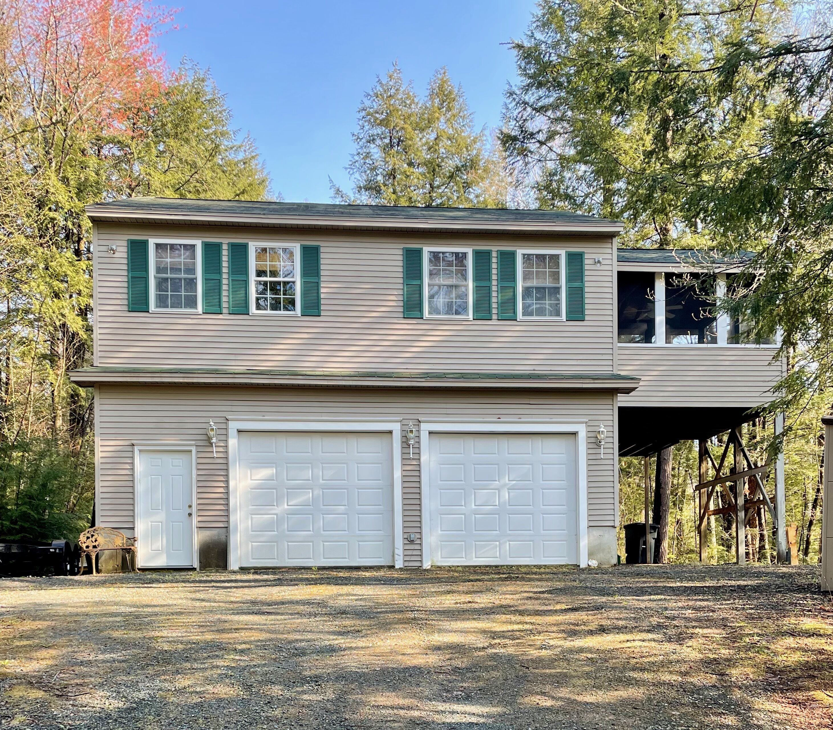 Two bedroom apartment with king size beds Sunny and spacious two bedroom apartment above a huge two bay garage perfect for motorcycles trips. Both bedrooms have new king size beds. Screened in upper deck has delightful breezes for outside relaxing. Deck has a small gas grill for outside barbeques. Small kitchenette includes a microwave, counter oven, air fryer, griddle and small refrigerator. A...