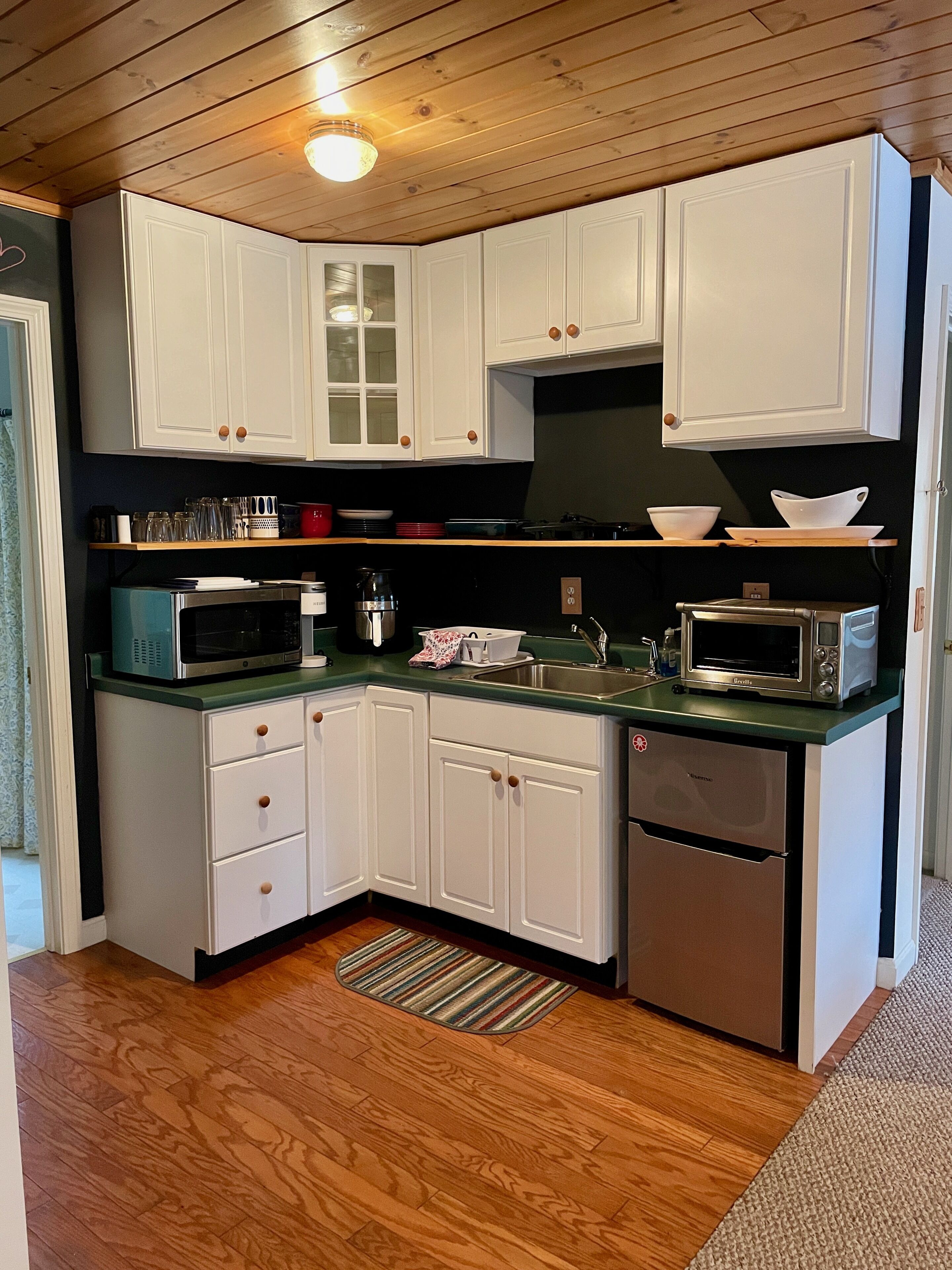Two bedroom apartment with king size beds Sunny and spacious two bedroom apartment above a huge two bay garage perfect for motorcycles trips. Both bedrooms have new king size beds. Screened in upper deck has delightful breezes for outside relaxing. Deck has a small gas grill for outside barbeques. Small kitchenette includes a microwave, counter oven, air fryer, griddle and small refrigerator. Additional full size refrigerator in the lower garage. Centrally located in the beautiful Suissevale beach community. Just a 200 yard walk to the beach area with volleyball, grills and boat launch. Perfect location for day trips all around the lake, just 30 minutes from Wolfeboro & Meredith.