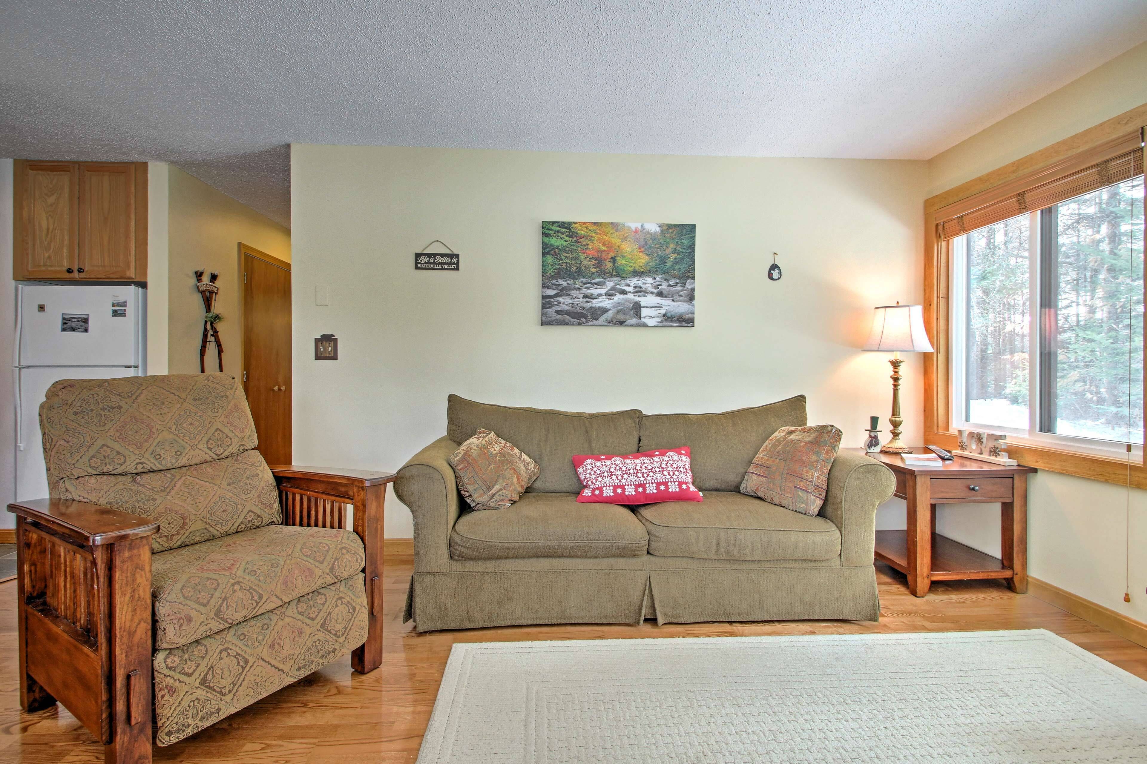 Waterville Valley Condo near Town Square & skiing! Experience the beautiful white mountains of New Hampshire from the comfort of this 2-bedroom, 1.5-bathroom condo in the heart of Waterville Valley. Located just a stone’s throw from Town Square and the Waterville Valley Ski Area, ‘Sunnyside’ is the perfect home base for all of the Granite State adventures that await you. Whether you spend your day...