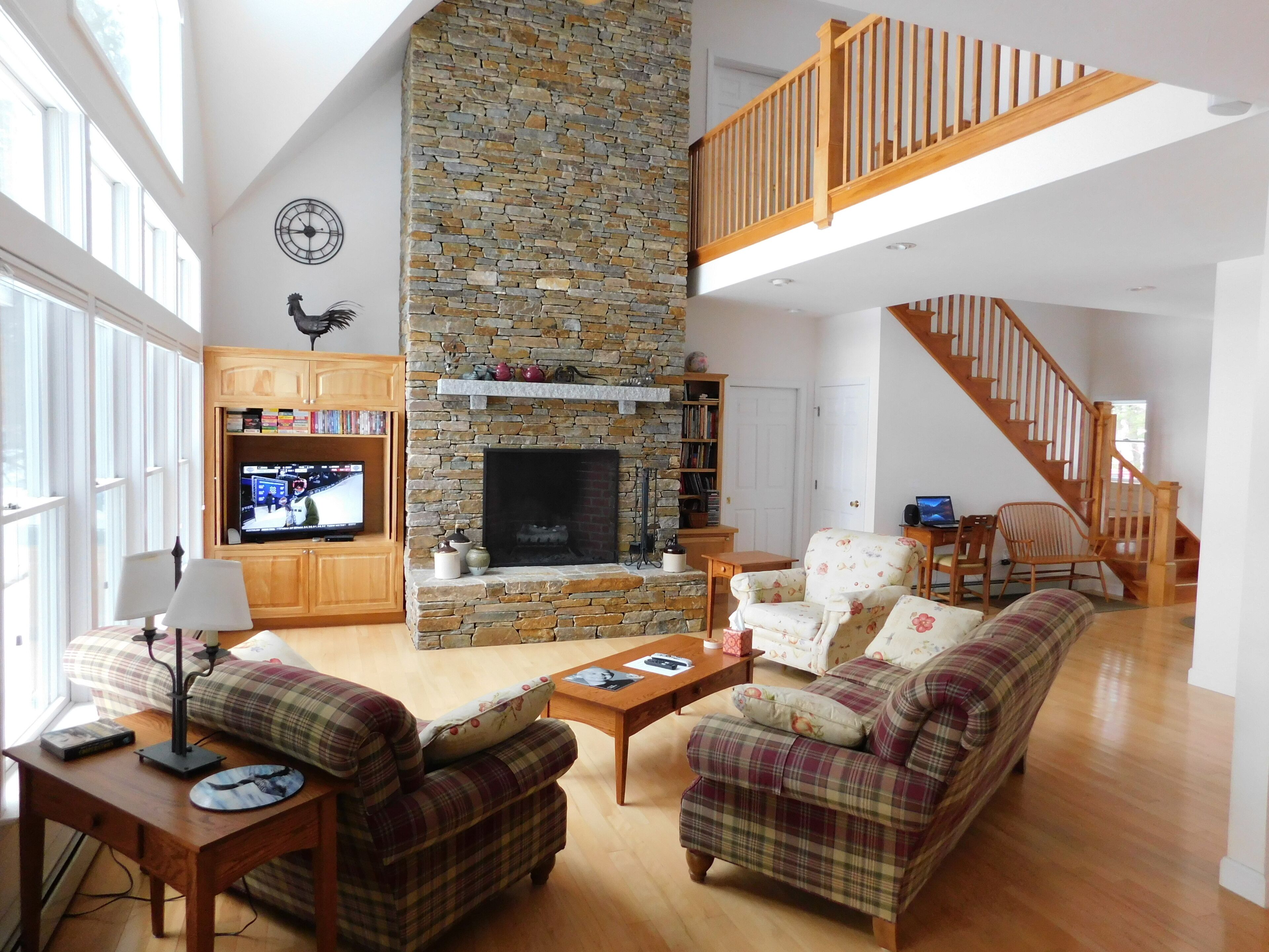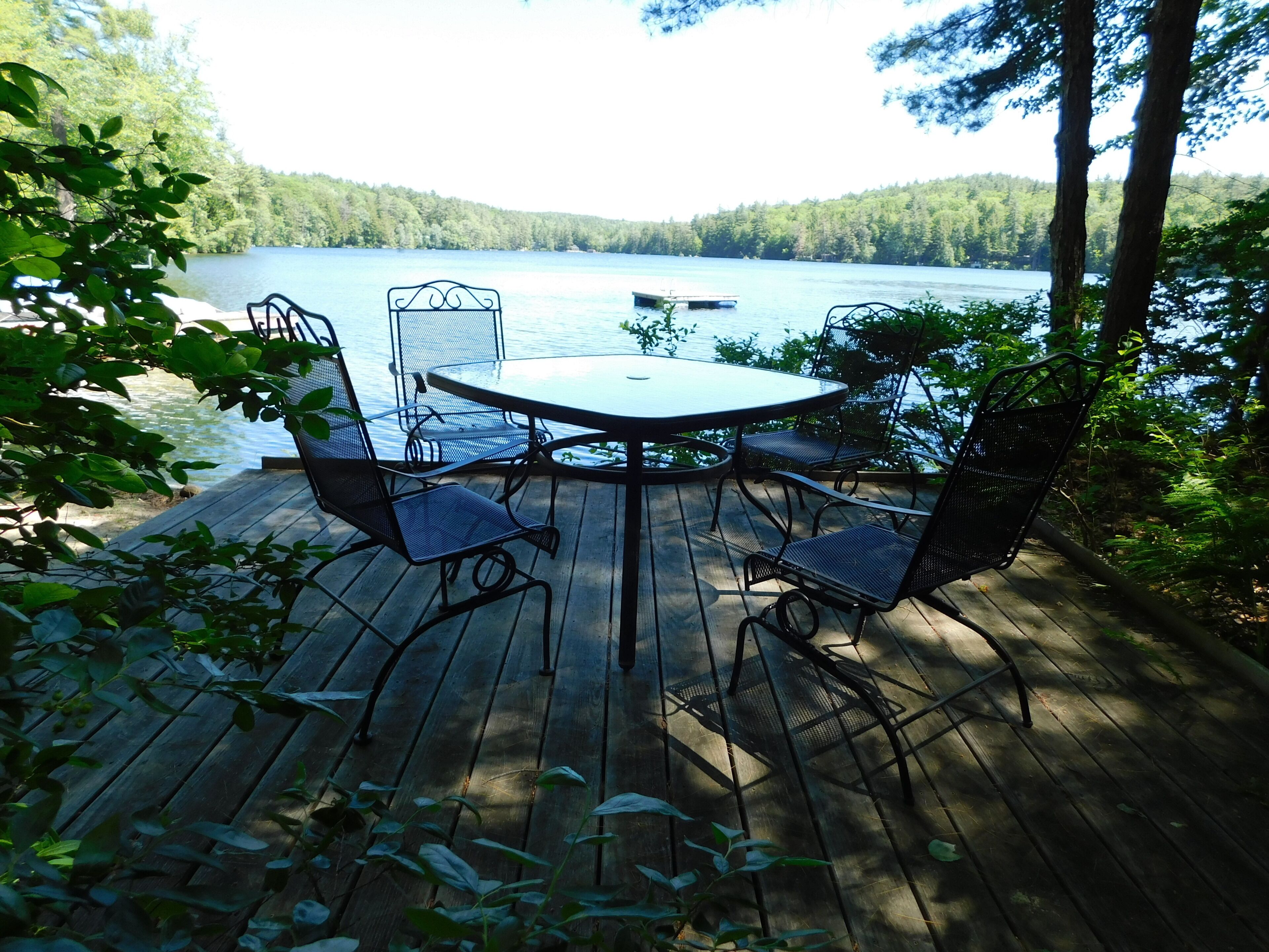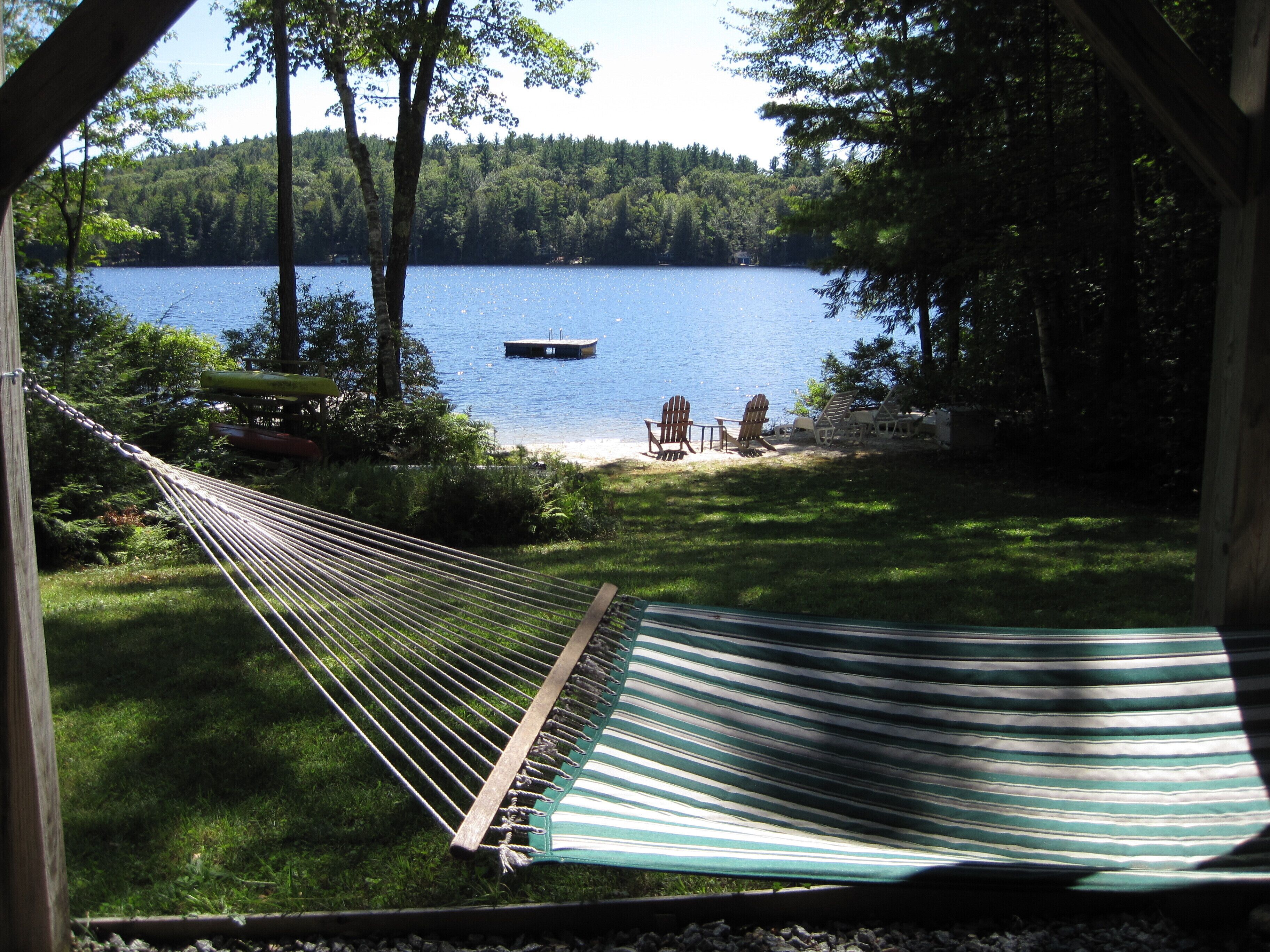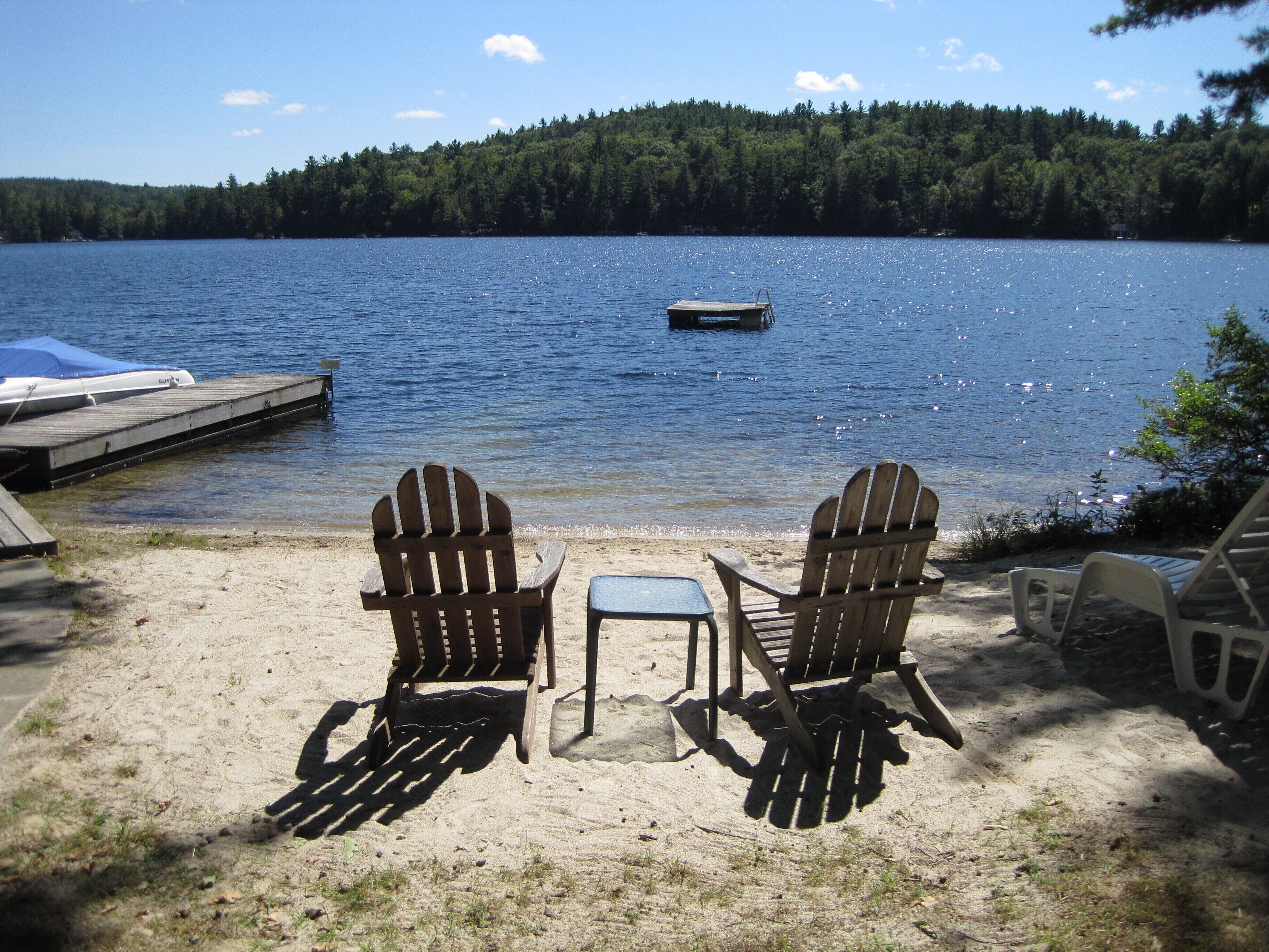 Lakefront Home with Private Beach! Great privacy!Enjoy the privacy and seclusion with your own private beach! Swim to the floating dock, explore the lake in the kayaks, or the great fishing. Relax on the screened porch or go out on the deck to enjoy the sun. Large open floor plan overlooking the lake includes spacious family room w/beautiful fireplace, dining room, and large fully-equipped kitchen. Wake up to a view of the lake from the 1st floor master bedroom. Upstairs includes two guest bedrooms, playroom, and full bath. Gas grill.Just a few minutes from the Country Club of NH, Mount Sunapee adventure park, and Mount Kearsarge State Parks.Please note we only rent thru VRBO.