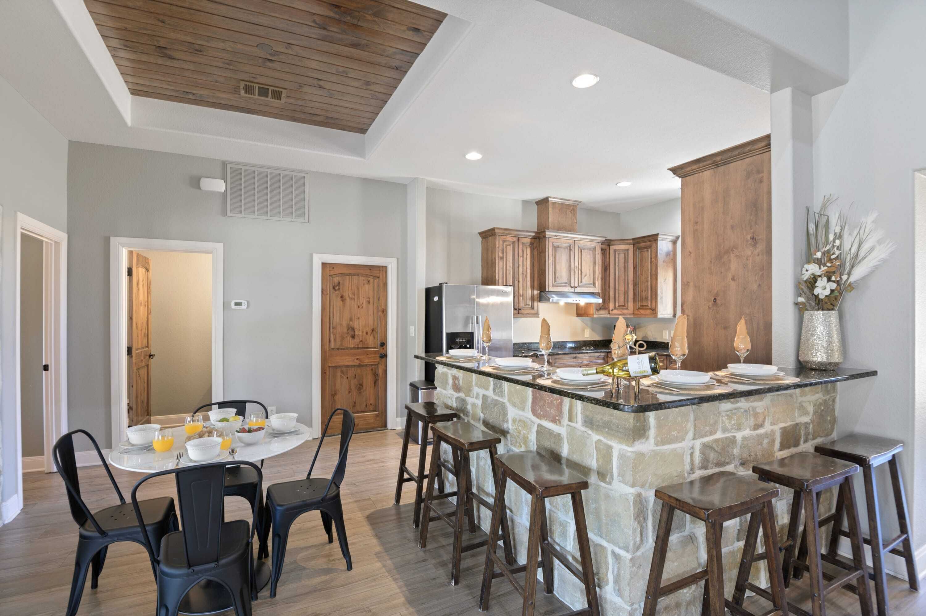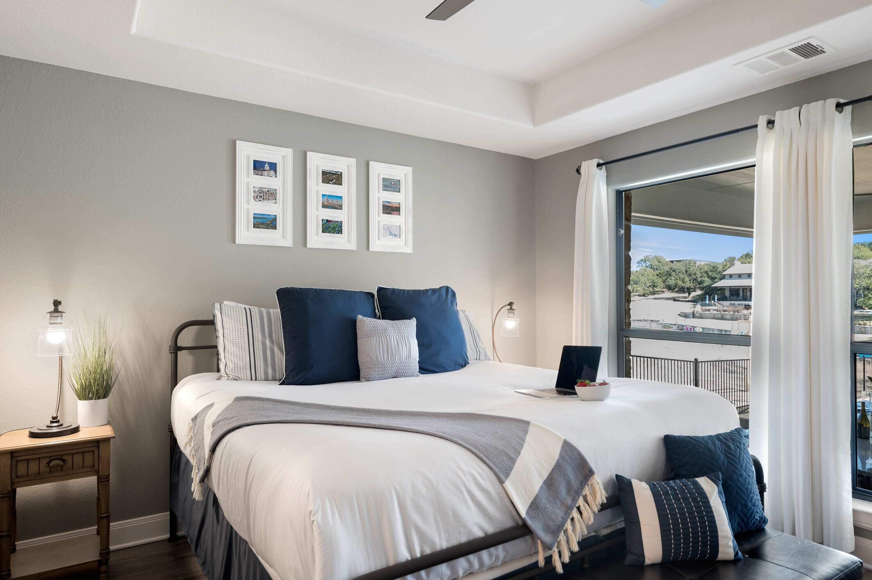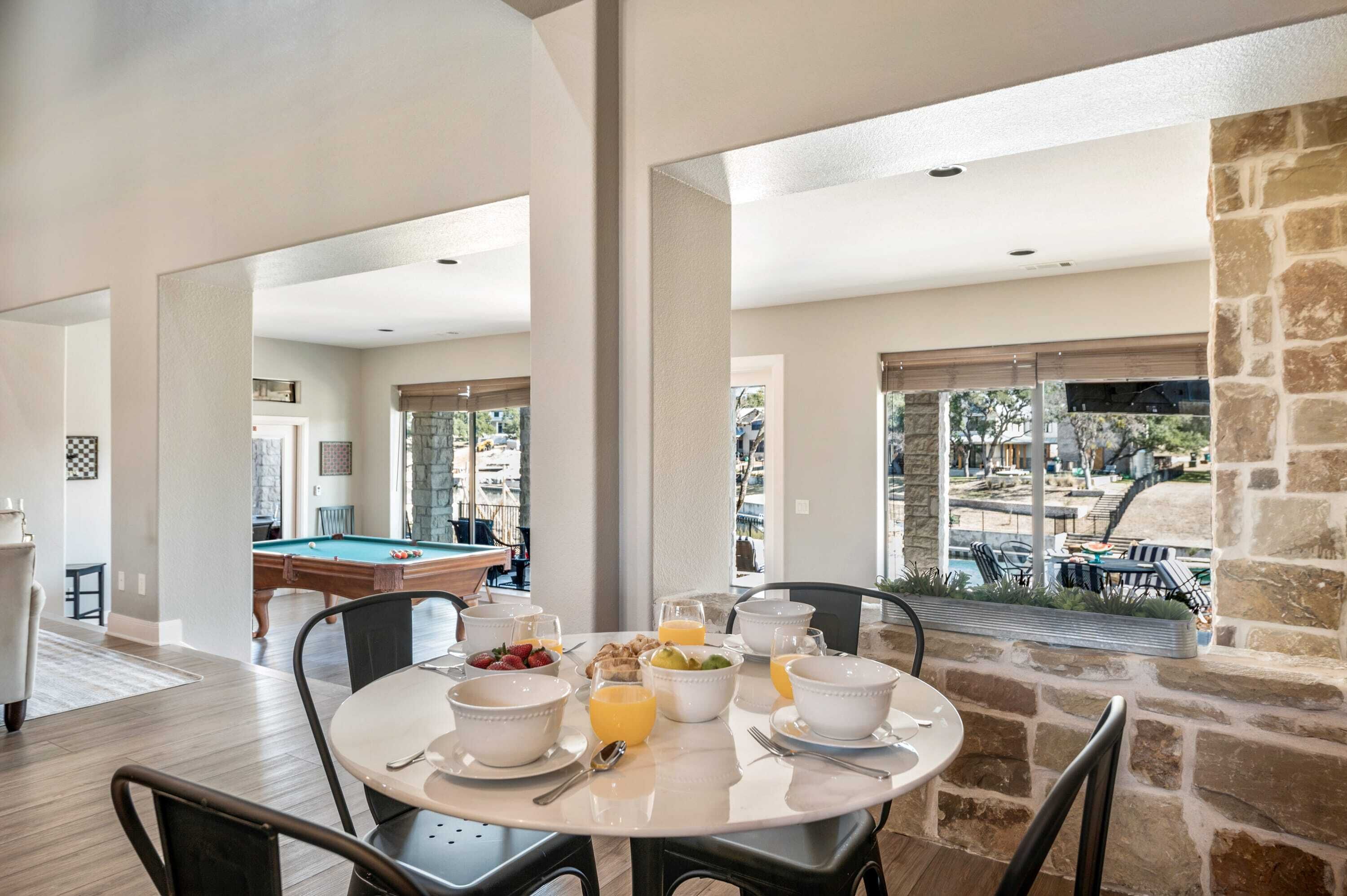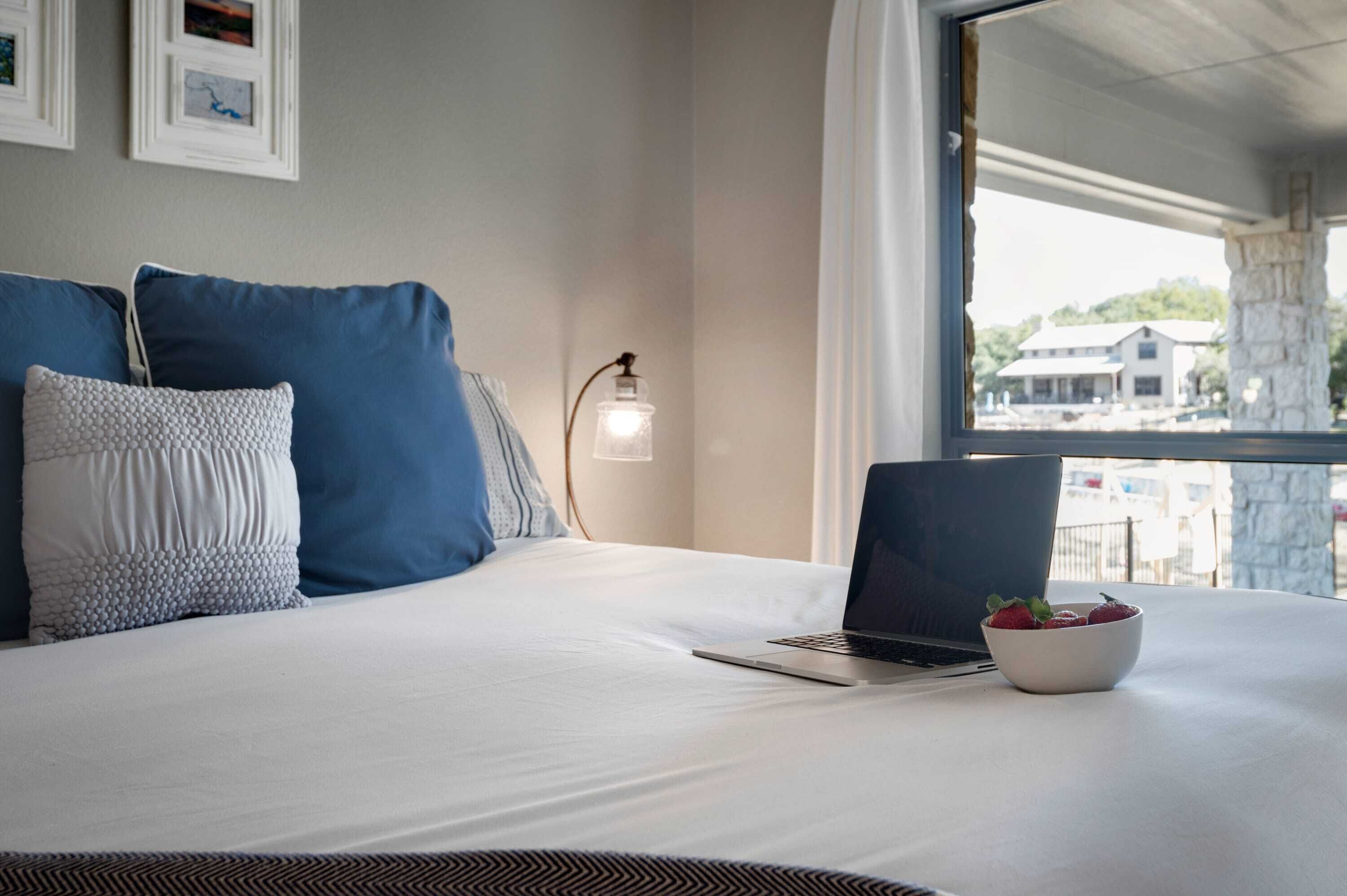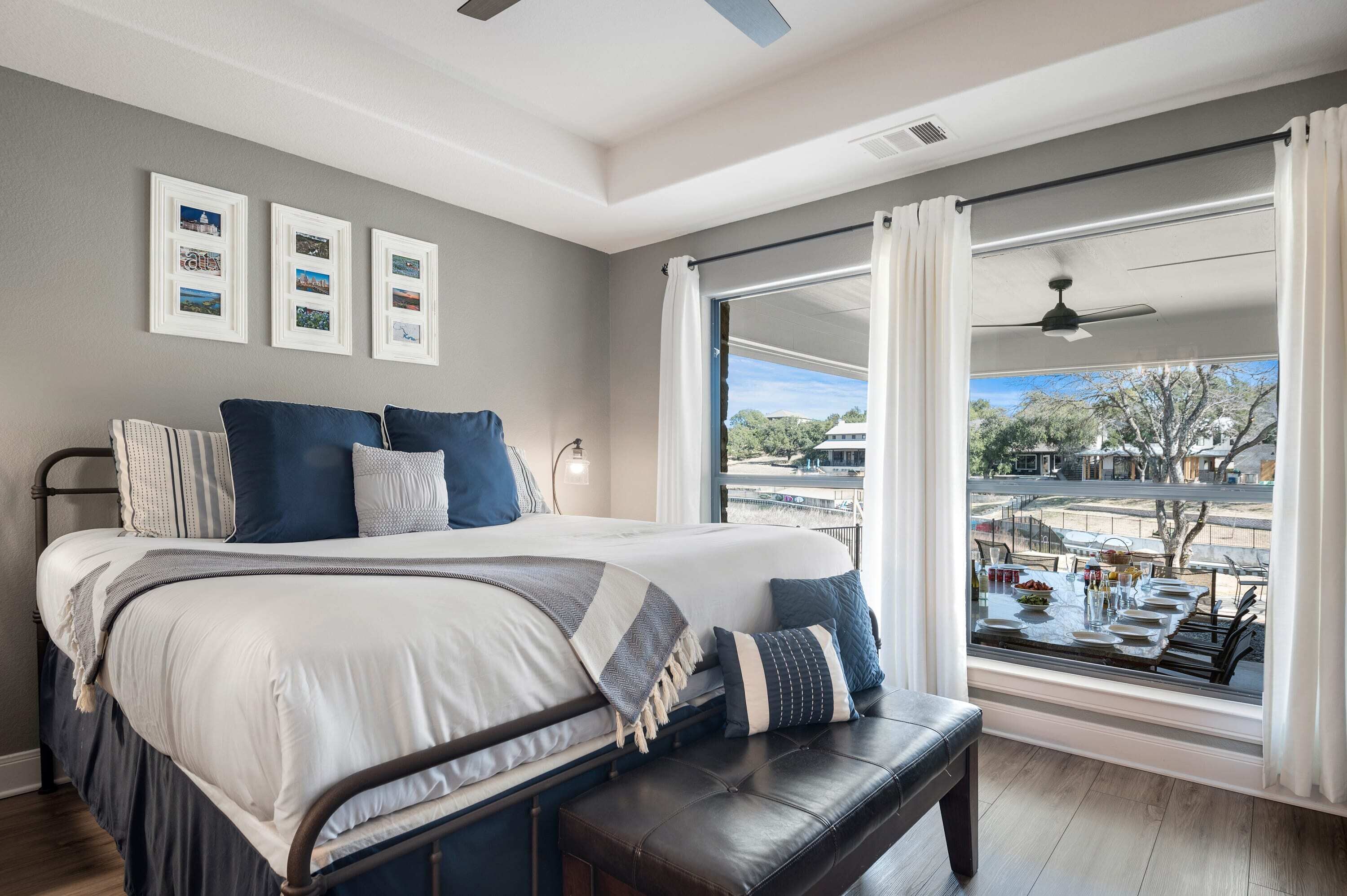 Waterfront House on Lake LBJ Cove | Heated Swimming Pool | Hot Tub | Wet Slip Summary:Promotions Available (Excluding Holidays and Valid only October Thru April):Book 3 Nights, Get 4th for 50% (Must Include a Sunday Night)Book 4 Nights, Get 5th FreeBook 6 Nights, Get Sunday and Monday Nights FreeLate Check Out Until 5pm (Subject to Availability, Inquire for Price)Early Check-In Special From 10am (Subject to Availability, Inquire for Price)***Winter Monthly Rates Available, inquire for pricing***Concierge Services Available Throughout Your StayThe Space:Sleeping Arrangements: Bedroom 1: King Bed (Sleeps 2) | Ensuite Bathroom | 55" Smart TV | Walk-In Closet | 1st Floor Bedroom 2: King Bed (Sleeps 2) | Ensuite Bathroom | 40" TV | Walk-In Closet | First Floor Bedroom 3: King Bed (Sleeps 2) |Ensuite Bathroom | 40" Smart TV | Lake View | Walk-In Closet | 1st Floor Bedroom 4: 2 Queen over Queen Bunk Beds (Sleeps 8) | Ensuite Bathroom | 65" Smart TV | Lake View | Private Balcony Access | 2nd Floor Bathrooms: 4.5Bathroom 1: Full | Shower, Tub, Double Vanity, Toilet | Ensuite to Bedroom 1Bathroom 2: Full | Shower, Vanity, Toilet | Ensuite to Bedroom 2Bathroom 3: Full | Shower, Vanity, Toilet | Ensuite to Bedroom 3Bathroom 4: Full | Shower, Vanity, Toilet | Ensuite to Bedroom 4Bathroom 5: Half | Vanity, Toilet | 1st Floor Kitchen & Dining: Fully Equipped Kitchen | Drip Coffee Maker | Coffee Provided | Electric Oven | Dishwasher | Refrigerator & Freezer | Microwave | Toaster | Blender | Dishes & Utensils | 6 Seat Dining Table | 6 Seat Breakfast Bar Area | Granite Countertops Indoor Living: Bright Open Layout |Fire Place (Just Decorative) | 65” Smart TV | Split Level Living Room Areas | 7 Person Couch Area on First Floor | Wide Open Windows w/ Pool & Lake View | Pool Table | Modern Stylish Interior Décor Watercraft Information: Wet Boat Slip Area (4 Mooring Cleats) | 6 Kayaks | 2 Stand Up Paddleboards | Height restrictions apply to approach to boat slipOutdoor Living: Large Outdoor Patio | Heated (Heating Fees Apply) Swimming Pool with Spill-Over Hot Tub | Kids Pool (Not Heated) | Fenced Yard | 65" Outdoor Smart TV | Cushioned Outdoor Seating | Outdoor Dining Area for 16 People | Outdoor Kitchen Area with Gas Powered GrillPet Policy:Pets Permitted: Yes | Max Number of Pets: 1 | Pet Restrictions: Dogs only, Under 20 lbs, Aggressive breeds and puppies under 1 year not permitted | Pet Fee: $150 plus applicable tax | Signed rental agreement with dog information General: Free WiFi | Air Conditioning | Central Heating | Ceiling Fans | Complimentary Toiletries |Two In-Unit Washers & Dryers | Linens & Towels | Hair DryersParking: Max parking of 6 vehicles Boat trailers are permitted on propertyFees:Property Insurance is required for each booking that covers up to $3,000 in accidental damage Pool heating is optional for an extra fee, please inquire for exact costsCancelled reservations on certain booking sites have a 5% cancellation penaltyAgreements: Check-In Form and Rental Agreement are required to be submitted prior to check-in. ID and Credit Card: Government issued ID and credit card used for the reservation are required prior to check-in. (The ID and credit card must match the name under which the unit is reserved.) These must be submitted via the Check-In Form. Your room door code will only be activated after all these documents have been submitted Horseshoe Bay Living is a leading full-service property management company specialized on the Texas Highland Lakes and hill country. We guarantee all listing information is accurate and up to date. From your first inquiry to the moment you book, you’ll be provided timely and helpful communications regarding your trip. You will receive a property information booklet 5 days before your arrival providing specific home details, local suggestions, WiFi access, TV instructions, and more.Horseshoe Bay Living Concierge Upgrade your stay and have it all ready for you. If you notify our guest experience team you would like concierge services, our team will contact you shortly after your booking is confirmed. We can help arrange additional services, from guided tours to chef services, their expertise will relieve the stress of planning. Simply arrive and relax.Guest Access:The property is equipped with an electronic key pad door lock. Your code will be sent to you via email the morning of your check-in date. Additionally, a property information booklet link will be emailed to you at confirmation of your reservation.The Neighborhood:Kingsland and Lake LBJ is one of the top vacation places in Texas! Whether you enjoy boating, water sports, fishing, hiking, visiting wineries, or exploring places rich in history, Kingsland and Lake LBJ have just the right conditions for you!Getting Around:A car is the preferred method of transportation in the Texas hill country and Kingsland, TX.Other Things to Note:-- Policies --- No smoking - Must be at least 25 years old to book- 1 dog permitted | Must be under 20 pounds | No puppies or aggressive breeds | $150 pet fee per stay | All dog information must be submitted in Rental Agreement - The swimming pool: It can be heated at an extra cost. If you would like the pool heated please contact us and we will set it up. Please do not heat the pool on your own. Please avoid using glass tableware or glass bottles near the pool. Broken glass in the pool will result in extra fines. Please help us keep the water clean by rinsing off any sunscreen before entering the pool. - Per local ordinances, outdoor spaces have quiet hours from 10 pm to 8 am.Interaction with Guests:The Horseshoe Bay Living AdvantageYour vacation rental is Horseshoe Bay Living Certified. All photos, calendar dates, and rates on this website are 100% accurate. All of our homes are fully-stocked and include soaps, paper products, hotel-quality linens, as well as a bath towel and washcloth for each guest.Our kitchens are also stocked and include pots, pans, plates, silverwar