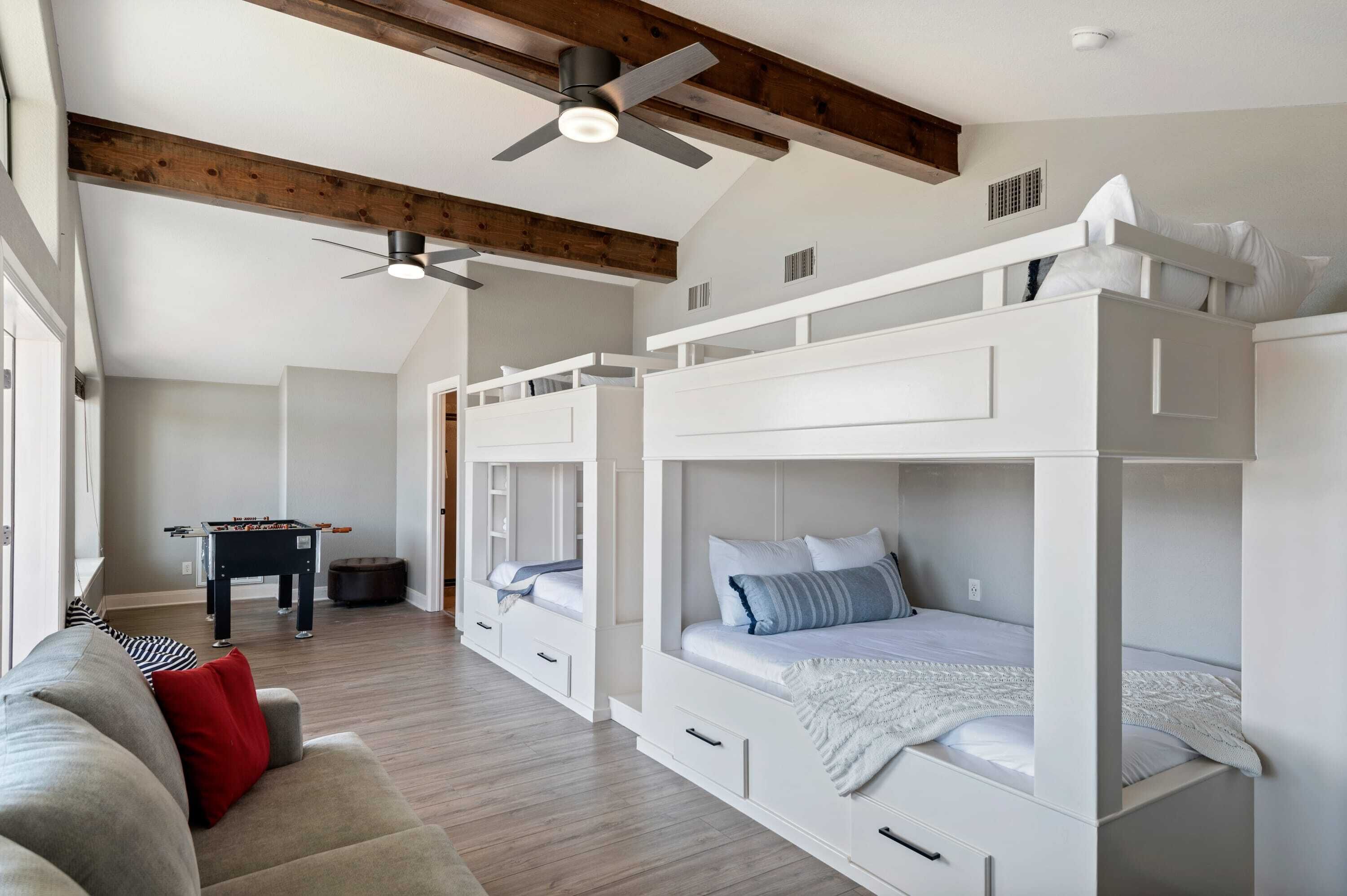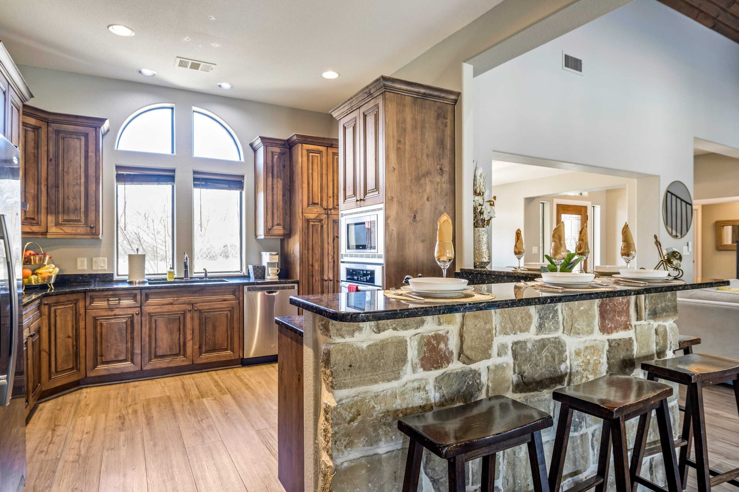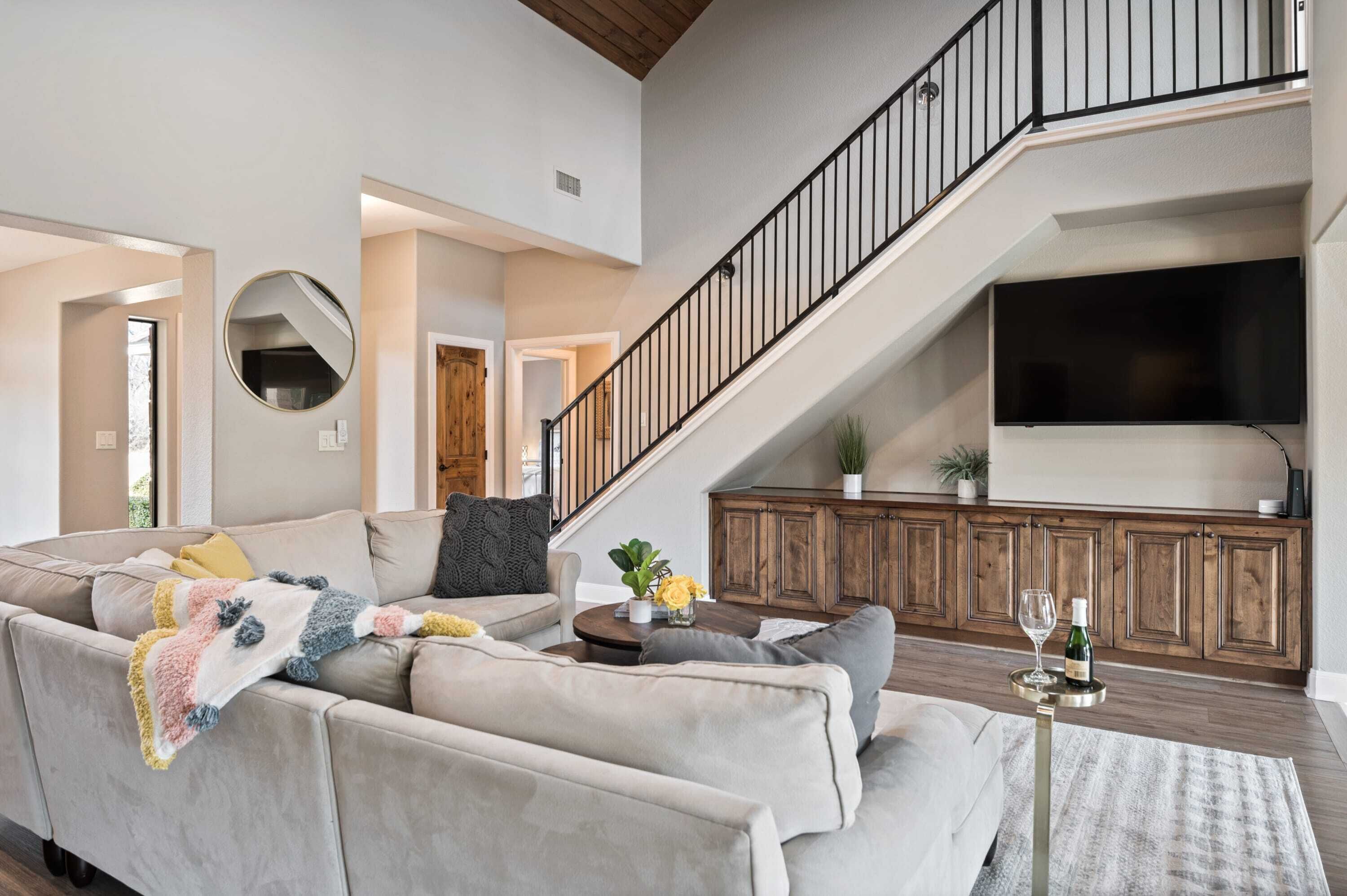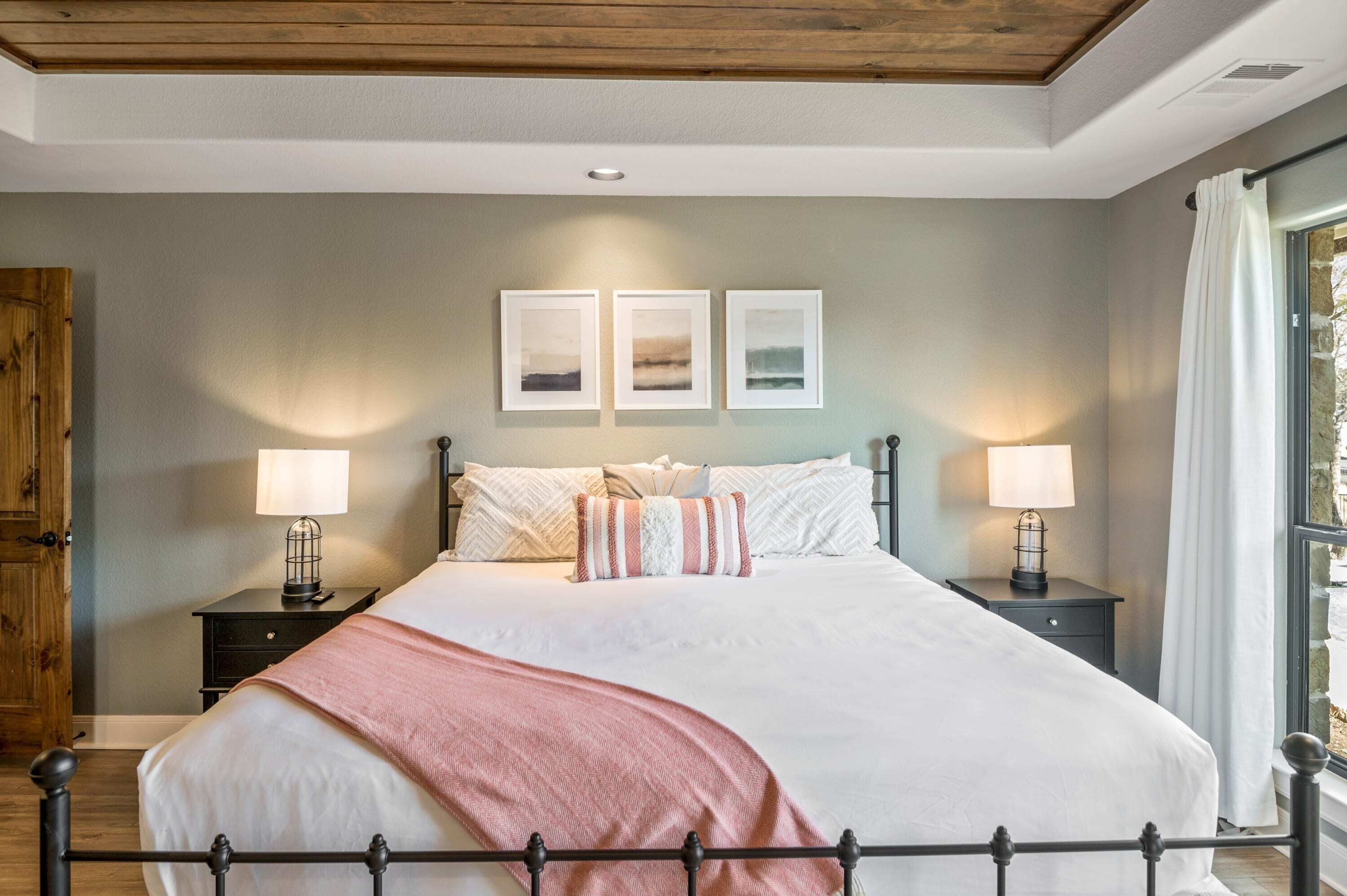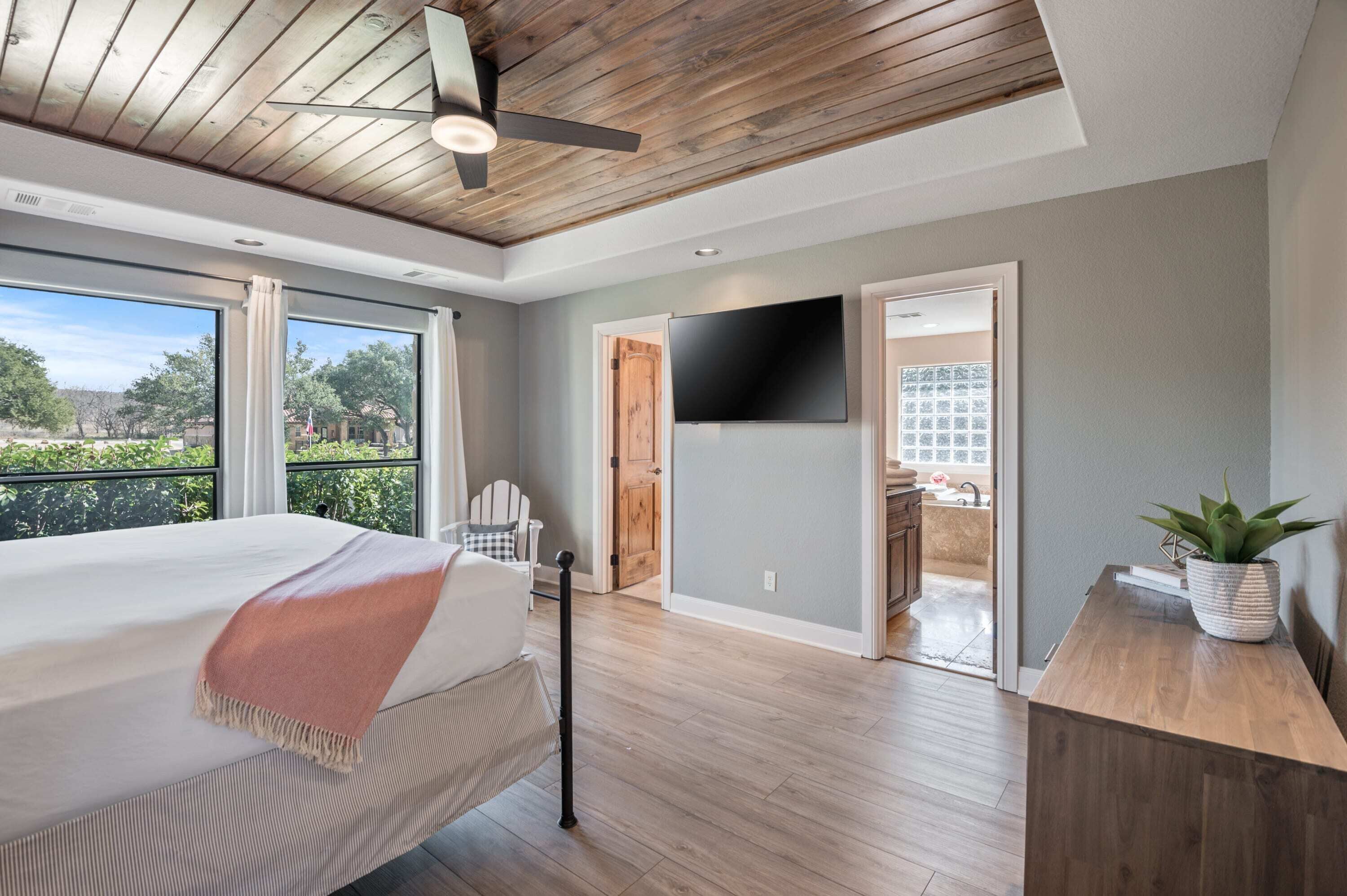 Waterfront House on Lake LBJ Cove | Heated Swimming Pool | Hot Tub | Wet Slip Summary:Promotions Available (Excluding Holidays and Valid only October Thru April):Book 3 Nights, Get 4th for 50% (Must Include a Sunday Night)Book 4 Nights, Get 5th FreeBook 6 Nights, Get Sunday and Monday Nights FreeLate Check Out Until 5pm (Subject to Availability, Inquire for Price)Early Check-In Special From 10am (Subject to Availability, Inquire for Price)***Winter Monthly Rates Available, inquire for pricing***Concierge Services Available Throughout Your StayThe Space:Sleeping Arrangements: Bedroom 1: King Bed (Sleeps 2) | Ensuite Bathroom | 55" Smart TV | Walk-In Closet | 1st Floor Bedroom 2: King Bed (Sleeps 2) | Ensuite Bathroom | 40" TV | Walk-In Closet | First Floor Bedroom 3: King Bed (Sleeps 2) |Ensuite Bathroom | 40" Smart TV | Lake View | Walk-In Closet | 1st Floor Bedroom 4: 2 Queen over Queen Bunk Beds (Sleeps 8) | Ensuite Bathroom | 65" Smart TV | Lake View | Private Balcony Access | 2nd Floor Bathrooms: 4.5Bathroom 1: Full | Shower, Tub, Double Vanity, Toilet | Ensuite to Bedroom 1Bathroom 2: Full | Shower, Vanity, Toilet | Ensuite to Bedroom 2Bathroom 3: Full | Shower, Vanity, Toilet | Ensuite to Bedroom 3Bathroom 4: Full | Shower, Vanity, Toilet | Ensuite to Bedroom 4Bathroom 5: Half | Vanity, Toilet | 1st Floor Kitchen & Dining: Fully Equipped Kitchen | Drip Coffee Maker | Coffee Provided | Electric Oven | Dishwasher | Refrigerator & Freezer | Microwave | Toaster | Blender | Dishes & Utensils | 6 Seat Dining Table | 6 Seat Breakfast Bar Area | Granite Countertops Indoor Living: Bright Open Layout |Fire Place (Just Decorative) | 65” Smart TV | Split Level Living Room Areas | 7 Person Couch Area on First Floor | Wide Open Windows w/ Pool & Lake View | Pool Table | Modern Stylish Interior Décor Watercraft Information: Wet Boat Slip Area (4 Mooring Cleats) | 6 Kayaks | 2 Stand Up Paddleboards | Height restrictions apply to approach to boat slipOutdoor Living: Large Outdoor Patio | Heated (Heating Fees Apply) Swimming Pool with Spill-Over Hot Tub | Kids Pool (Not Heated) | Fenced Yard | 65" Outdoor Smart TV | Cushioned Outdoor Seating | Outdoor Dining Area for 16 People | Outdoor Kitchen Area with Gas Powered GrillPet Policy:Pets Permitted: Yes | Max Number of Pets: 1 | Pet Restrictions: Dogs only, Under 20 lbs, Aggressive breeds and puppies under 1 year not permitted | Pet Fee: $150 plus applicable tax | Signed rental agreement with dog information General: Free WiFi | Air Conditioning | Central Heating | Ceiling Fans | Complimentary Toiletries |Two In-Unit Washers & Dryers | Linens & Towels | Hair DryersParking: Max parking of 6 vehicles Boat trailers are permitted on propertyFees:Property Insurance is required for each booking that covers up to $3,000 in accidental damage Pool heating is optional for an extra fee, please inquire for exact costsCancelled reservations on certain booking sites have a 5% cancellation penaltyAgreements: Check-In Form and Rental Agreement are required to be submitted prior to check-in. ID and Credit Card: Government issued ID and credit card used for the reservation are required prior to check-in. (The ID and credit card must match the name under which the unit is reserved.) These must be submitted via the Check-In Form. Your room door code will only be activated after all these documents have been submitted Horseshoe Bay Living is a leading full-service property management company specialized on the Texas Highland Lakes and hill country. We guarantee all listing information is accurate and up to date. From your first inquiry to the moment you book, you’ll be provided timely and helpful communications regarding your trip. You will receive a property information booklet 5 days before your arrival providing specific home details, local suggestions, WiFi access, TV instructions, and more.Horseshoe Bay Living Concierge Upgrade your stay and have it all ready for you. If you notify our guest experience team you would like concierge services, our team will contact you shortly after your booking is confirmed. We can help arrange additional services, from guided tours to chef services, their expertise will relieve the stress of planning. Simply arrive and relax.Guest Access:The property is equipped with an electronic key pad door lock. Your code will be sent to you via email the morning of your check-in date. Additionally, a property information booklet link will be emailed to you at confirmation of your reservation.The Neighborhood:Kingsland and Lake LBJ is one of the top vacation places in Texas! Whether you enjoy boating, water sports, fishing, hiking, visiting wineries, or exploring places rich in history, Kingsland and Lake LBJ have just the right conditions for you!Getting Around:A car is the preferred method of transportation in the Texas hill country and Kingsland, TX.Other Things to Note:-- Policies --- No smoking - Must be at least 25 years old to book- 1 dog permitted | Must be under 20 pounds | No puppies or aggressive breeds | $150 pet fee per stay | All dog information must be submitted in Rental Agreement - The swimming pool: It can be heated at an extra cost. If you would like the pool heated please contact us and we will set it up. Please do not heat the pool on your own. Please avoid using glass tableware or glass bottles near the pool. Broken glass in the pool will result in extra fines. Please help us keep the water clean by rinsing off any sunscreen before entering the pool. - Per local ordinances, outdoor spaces have quiet hours from 10 pm to 8 am.Interaction with Guests:The Horseshoe Bay Living AdvantageYour vacation rental is Horseshoe Bay Living Certified. All photos, calendar dates, and rates on this website are 100% accurate. All of our homes are fully-stocked and include soaps, paper products, hotel-quality linens, as well as a bath towel and washcloth for each guest.Our kitchens are also stocked and include pots, pans, plates, silverwar