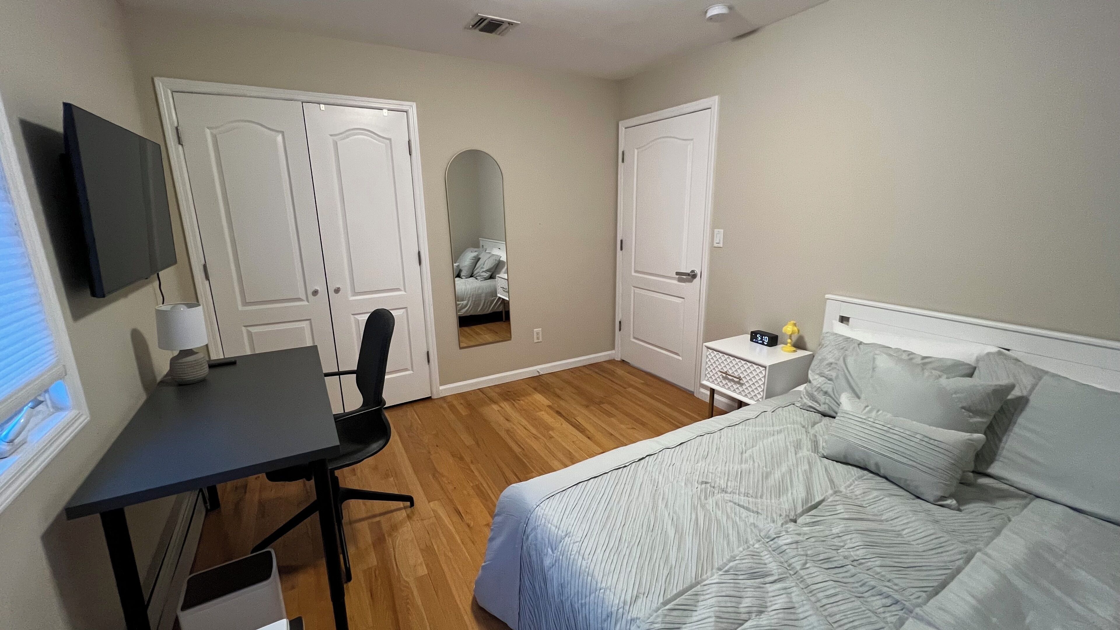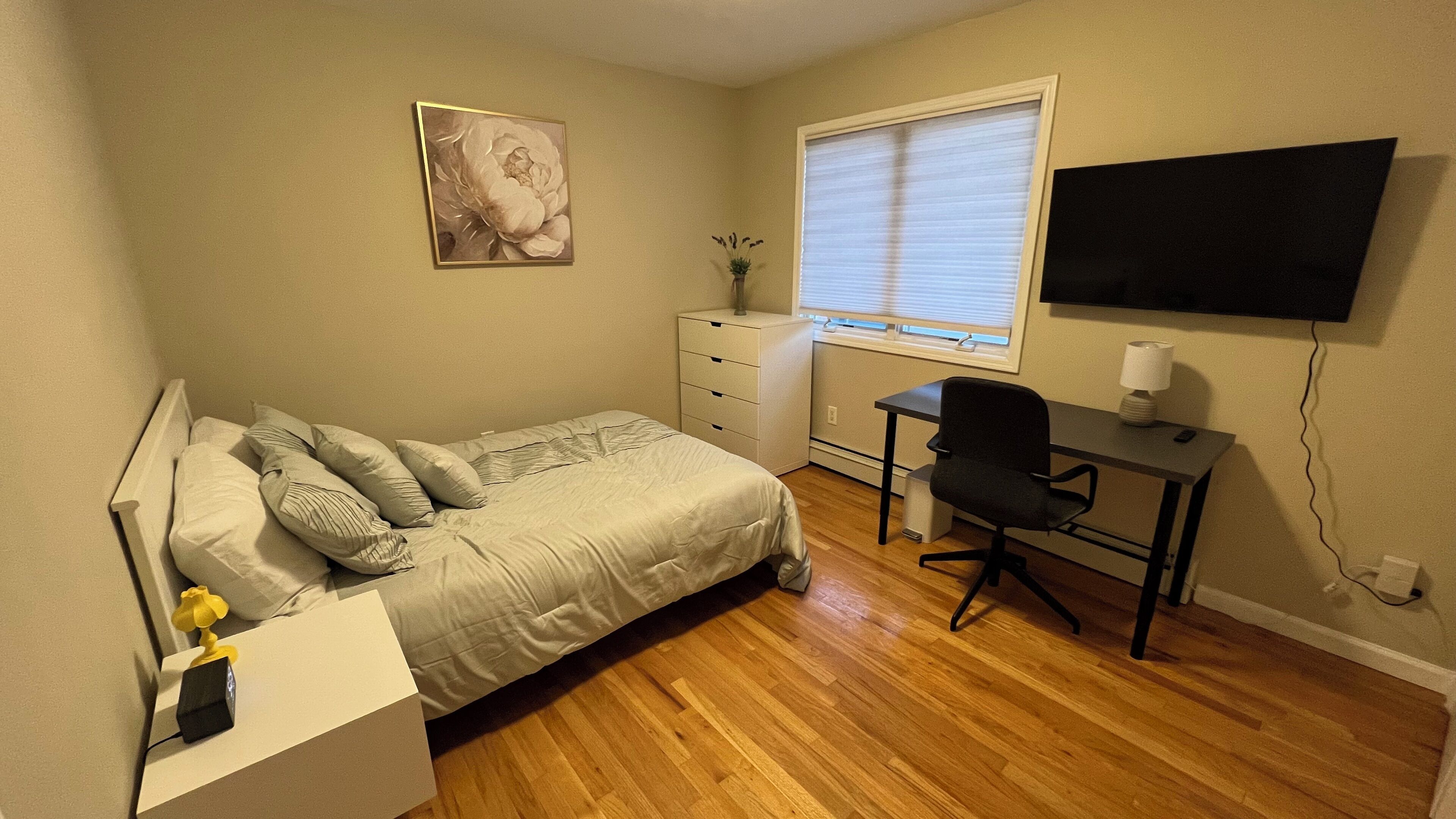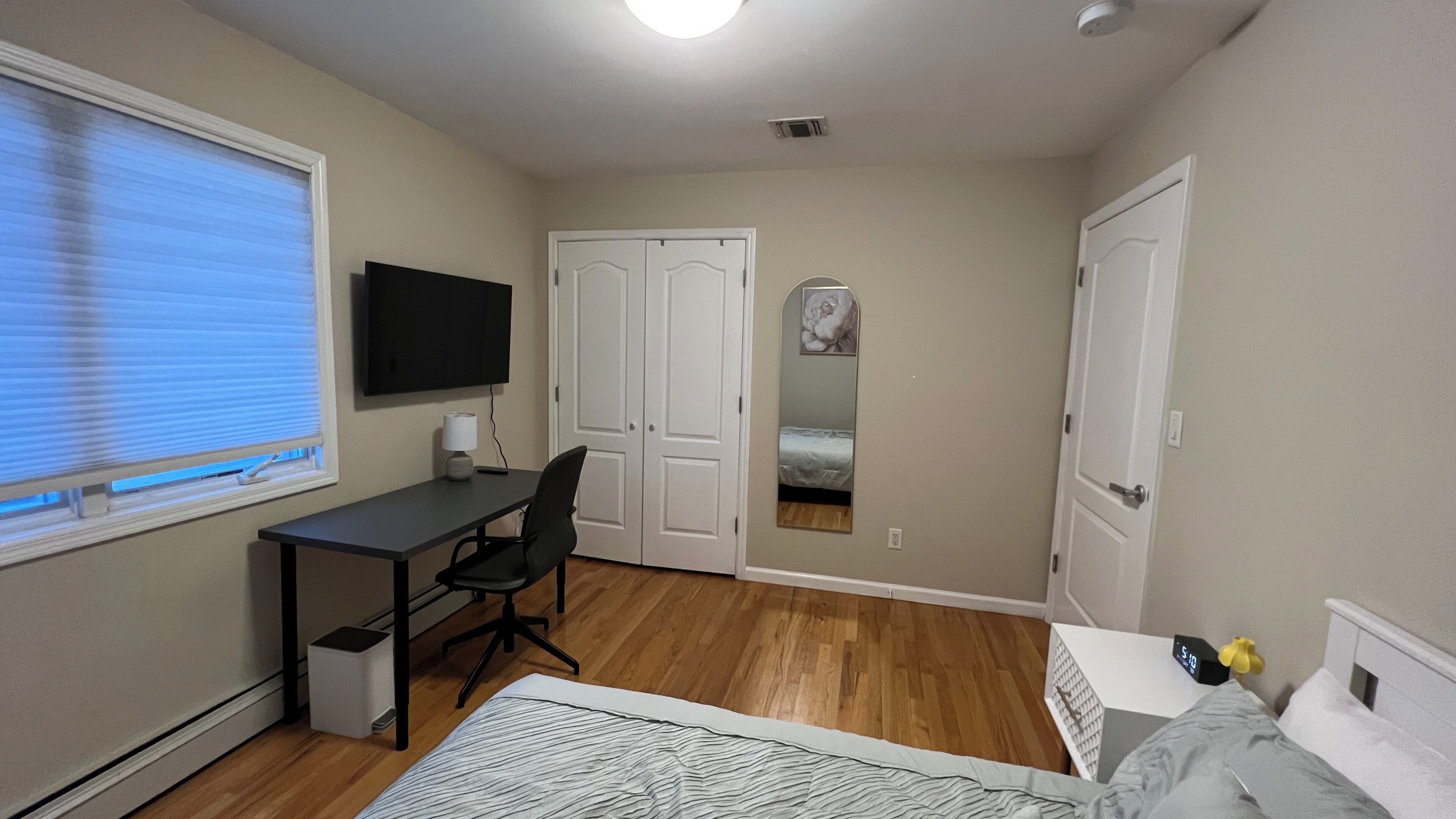 Cozy & Private Room - 20 Mins to Manhattan Heart This Palisades Park house boasts 1 cozy bedroom with a comfortable queen bed. Enjoy amenities like a 43" Smart HDTV, super-fast WiFi, fully equipped kitchen, living room, and laundry facilities. Nestled in Koreatown, our cozy room is just a 20-min express bus ride from Manhattan, with the bus stop 1 minute away. Explore local shops and restaurants on foot. Benefit from free driveway parking and contactless smart door lock check-in for a seamless experience.