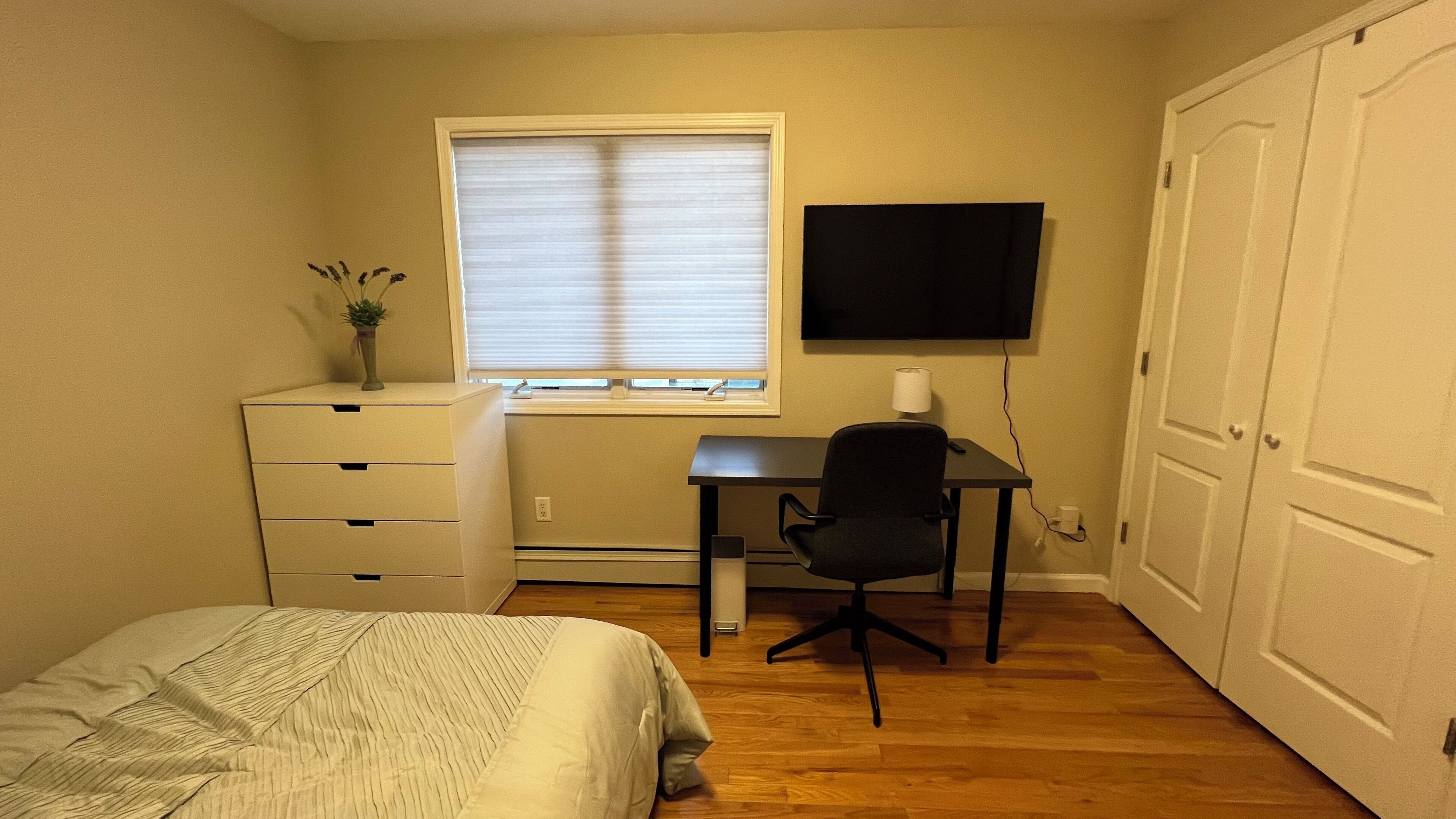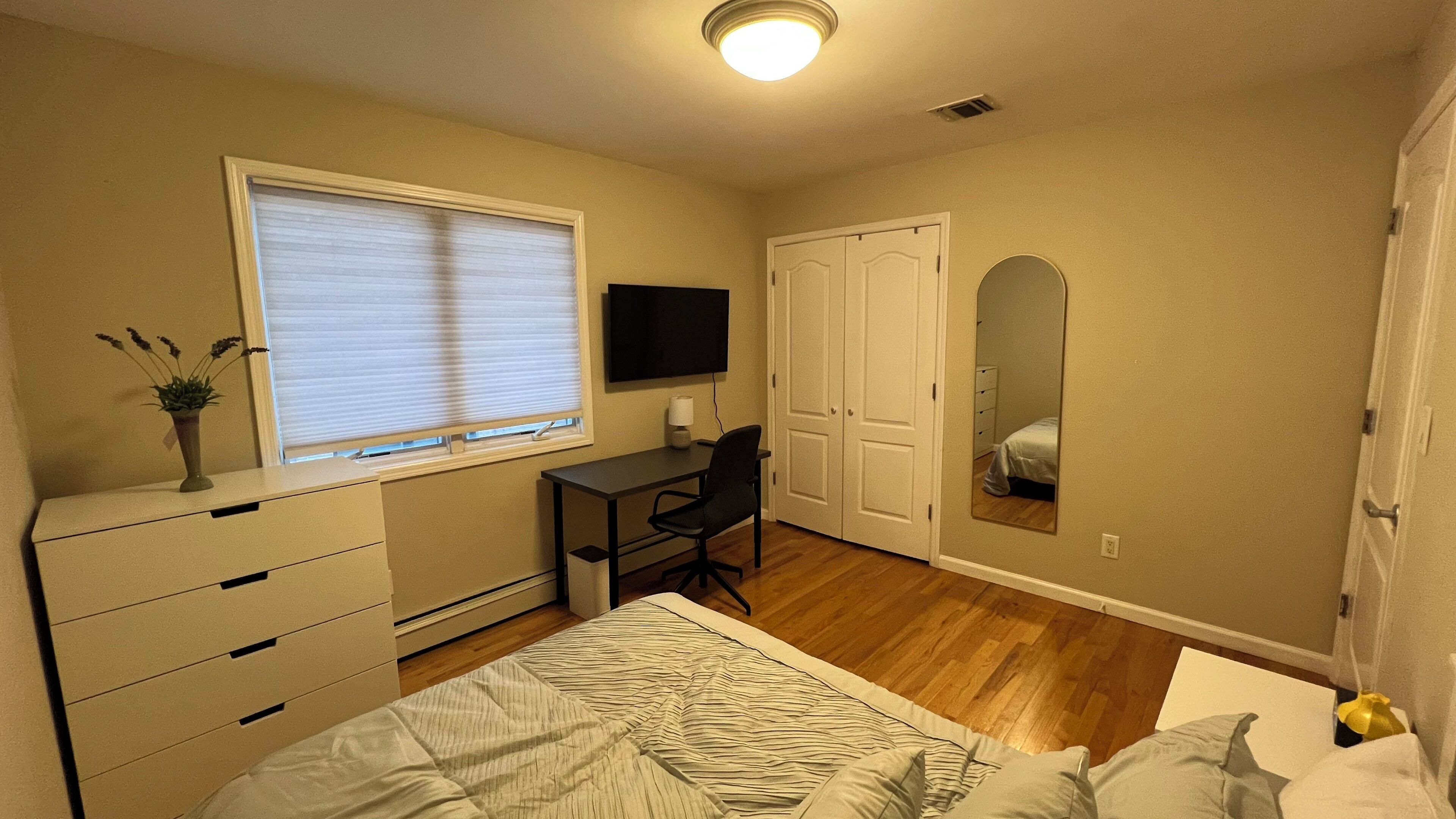 Cozy & Private Room - 20 Mins to Manhattan Heart This Palisades Park house boasts 1 cozy bedroom with a comfortable queen bed. Enjoy amenities like a 43" Smart HDTV, super-fast WiFi, fully equipped kitchen, living room, and laundry facilities. Nestled in Koreatown, our cozy room is just a 20-min express bus ride from Manhattan, with the bus stop 1 minute away. Explore local shops and restaurants o...