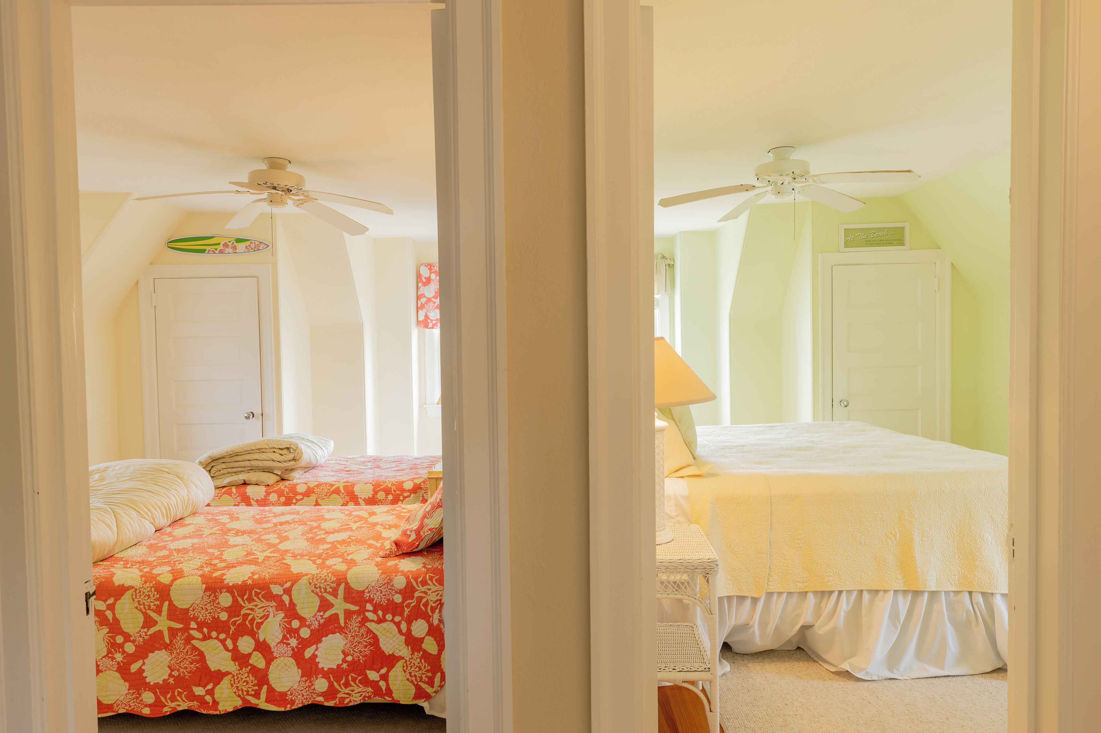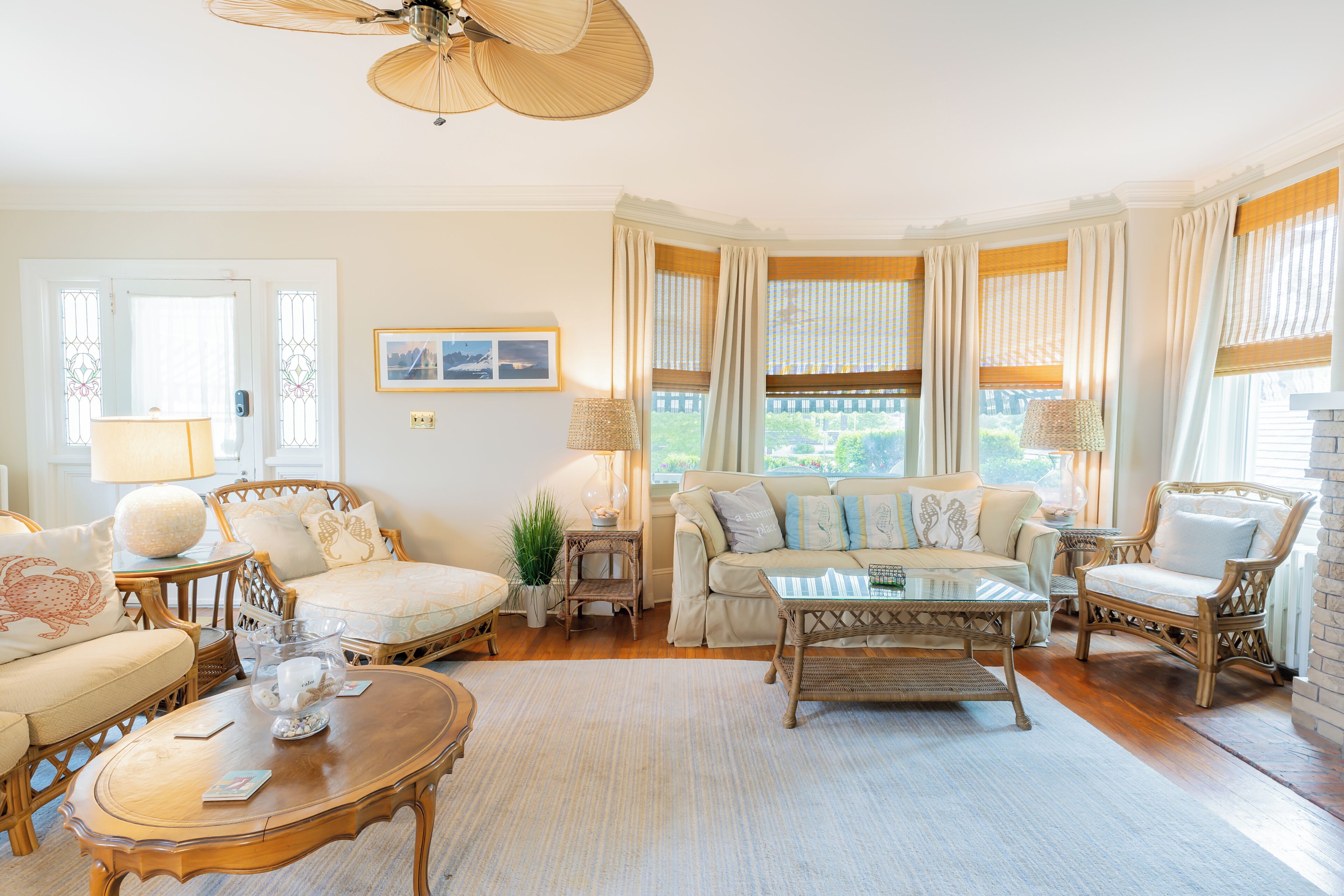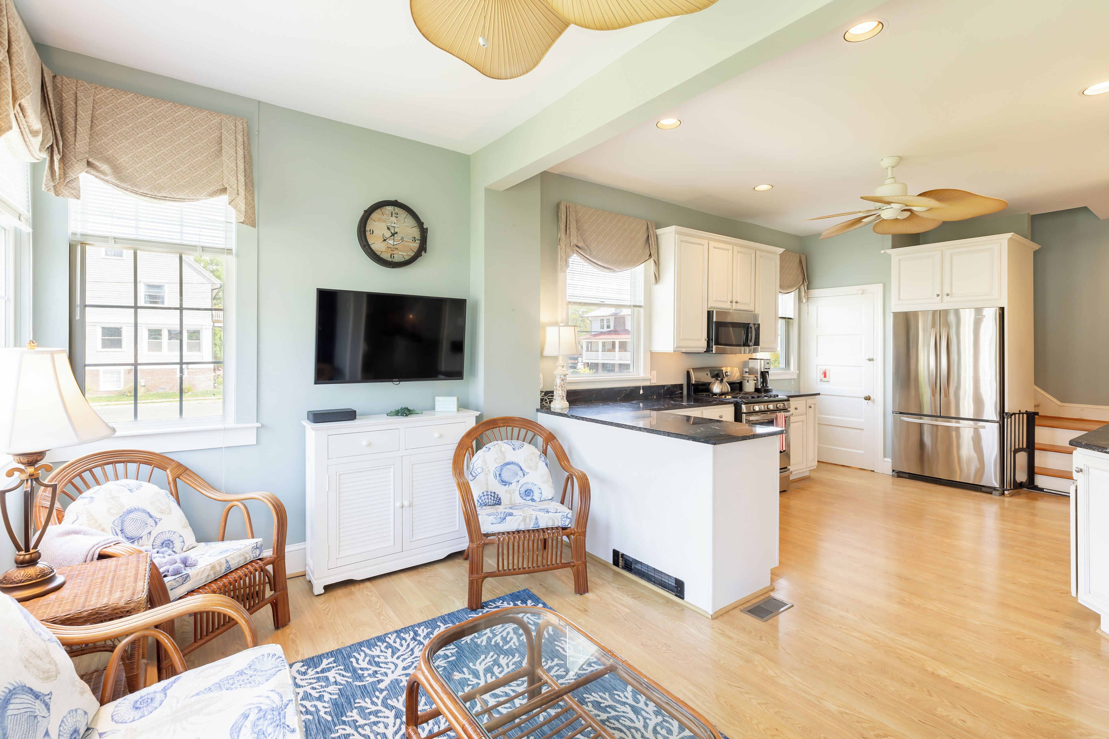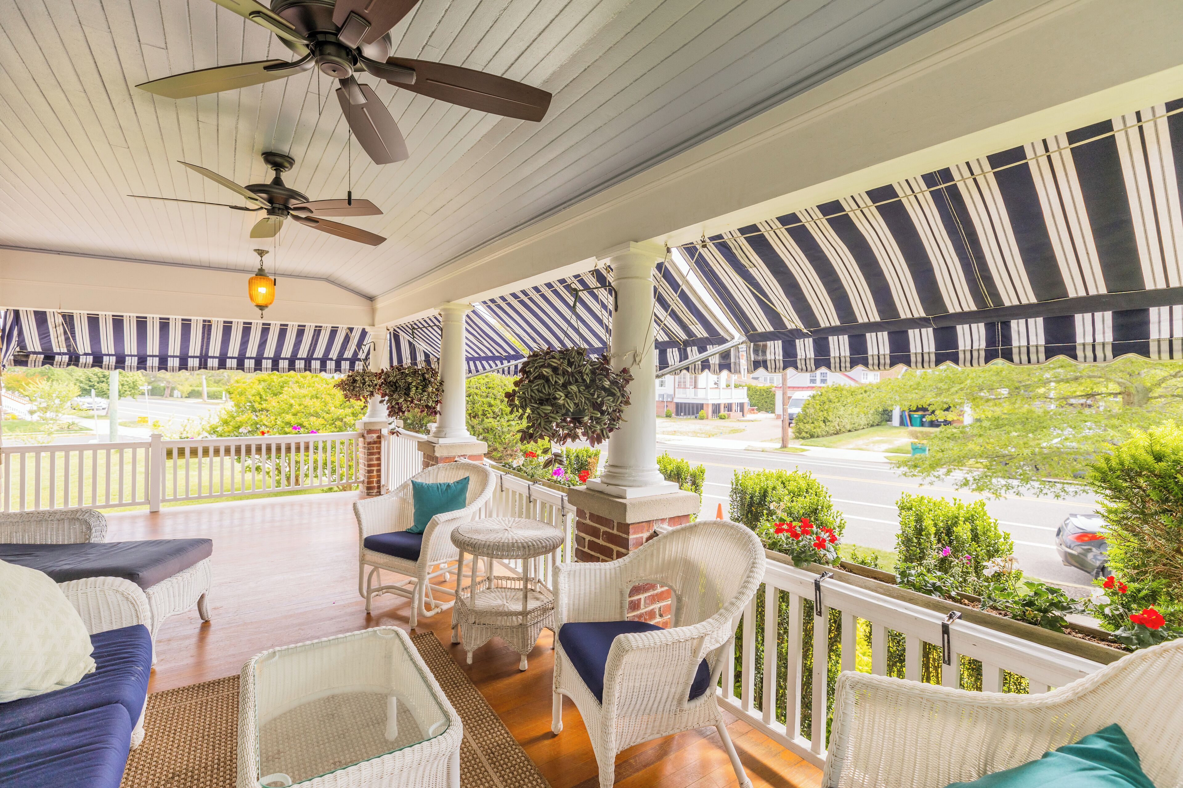 The MacFarland on Madison Welcome to 112 Madison Ave, a charming piece of history nestled just 1 and a half blocks from the beautiful beaches of Cape May. This enchanting property was built in 1905 and is surrounded by the historic homes that have made this seaside town a National Historic Landmark.With 7 bedrooms and 4 and a half baths (4th bath is in the basement), this spacious home is perfect for accommodating up to 14 guests. The layout features spacious living areas that effortlessly flow from room to room, providing plenty of space for both relaxation and entertainment. Whether you want to gather with loved ones in the grand living room with a cozy fireplace, enjoy a meal in the formal dining area, or have a quiet moment in the cozy sitting area just off the kitchen, this home offers the perfect setting for year round bookings.Each of the 7 bedrooms has its own unique feel, adding to the character of this historic home. There are 3 on the 2nd floor and 4 on the third. The warmth of the original wood floors creates an inviting ambiance that permeates each room. The property has been upgraded with modern conveniences, including HVAC, windows, kitchen, and baths, seamlessly blending contemporary comfort with the timeless charm of the past. The full basement is home to the fourth full bath for added convenience.Outside, the property boasts a large front porch where you can relax and enjoy the sea breeze. Additionally, a screened-in back porch on the second floor provides a private oasis for unwinding after a day at the beach. One of the standout features of this rental property is its spacious long driveway, capable of accommodating up to four cars. In a town where parking is a precious commodity, you can escape the parking chaos and enjoy the convenience and peace of mind of never struggling to find a spot again. Vacant lot to the right is not a part of this property, please do not park on this land. Rear Cottage is not part of this rental and rear tenants do not park in the driveway.Location is everything, and this property delivers. Situated just a short walk to the Cape May Beaches, you'll have easy access to pristine sands and sparkling shores whenever you desire. You can take a leisurely stroll to the town center for a quaint shopping experience or indulge in the culinary delights of the fine restaurants within walking distance.Experience the coastal lifestyle and create lifelong memories in this quintessential Cape May home. Book your stay at 112 Madison Ave and enjoy the perfect blend of history, comfort, and convenience in one of America's most beloved beach towns.Bookings are not confirmed until fully executed lease is received with Owner approval. CHECK IN TIMES DO VARY. Please check your lease for your check-in time.