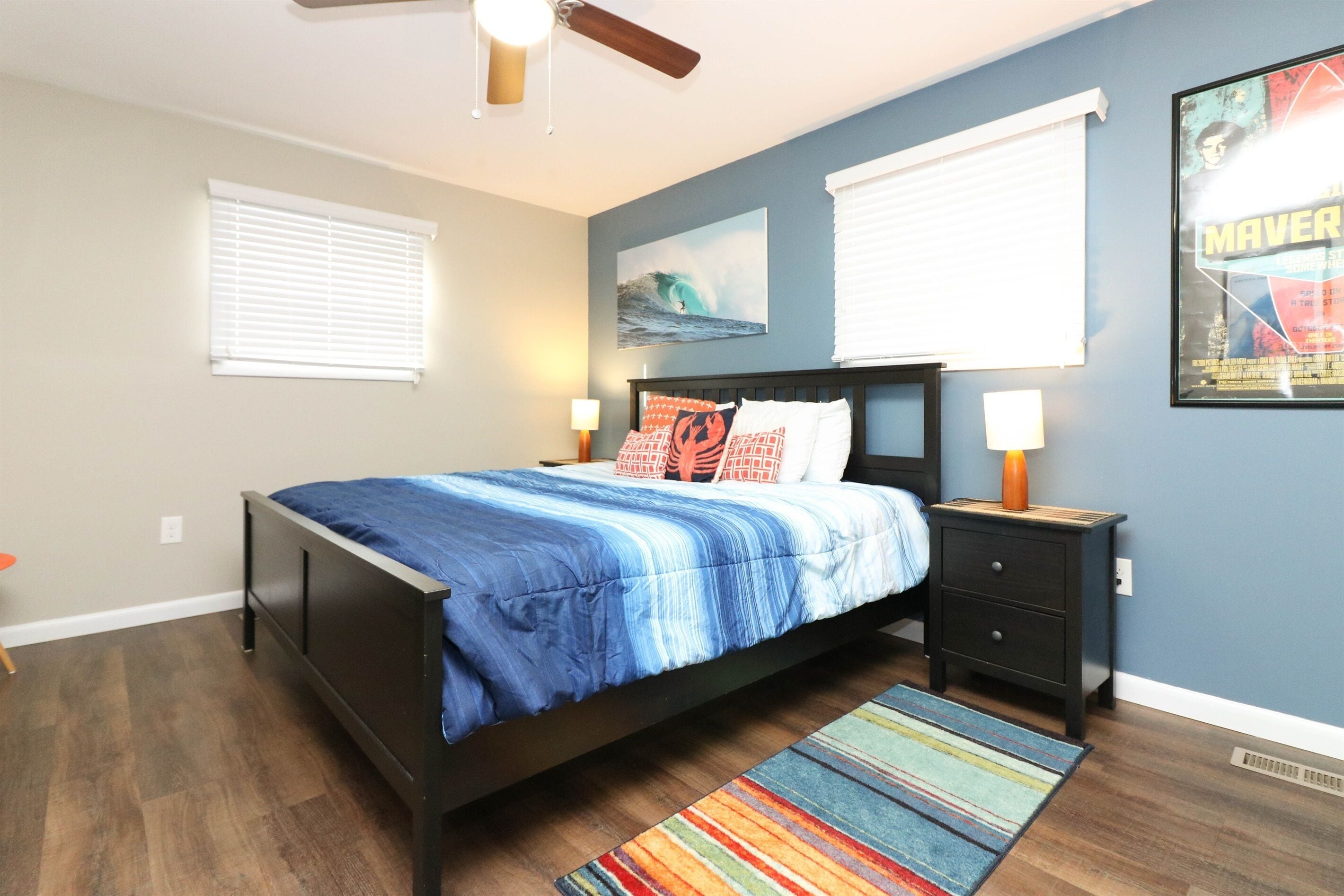 VRBO Premier Host Listing *Immaculate *A+customer service* Surfer House Uncover the best-kept secret of the Jersey Shore. This cozy vacation house has all you need to relax and enjoy all Cape May and Wildwood have to offer. You will be located 8 houses from Delaware Bay Beach in North Cape May where you will see amazing sunsets as you stroll the beach. You are also located very close to the entrance of the Cape May- Lewes Ferry, making it very convenient to take a day trip on the ferry to outlet shopping in Delaware. Enjoy a drink and listen to a band at the Ferry Bar while the kids play on the playground. Take your dog for a stroll to dog-friendly Harpoons on the Bay for a meal in this island theme local beach bar. Only 1 mile away from the grocery store and shopping. There is so much to see and do! – just a short drive to downtown Cape May and Wildwood boardwalk. Cozy, clean, affordable cottage.It's conveniently located 15 mins from downtown Cape May House FeaturesThe house was completely renovated in 2016. The house has heat and central air conditioning and driveway parking. The yard is oversized and completely fenced in. Large Patio with Gas grill for sunset dinners. Lots of trees for shade in the backyard.Family RoomSofa and loveseat. TV, DVD player. WiFi and basic cable is included. KitchenFull-sized appliances. Includes cookware, dishes, and utensils. Laundry RoomFull-sized washer and dryer. Please provide your own detergents and supplies. Full Hall Bath -full-sized tub/shower Master bath - 5 ft shower walk-in shower Bedroom 1- Master with en suite bathroomKing-sized bed, TV with cable. Many windows for beautiful sunshine. Bedroom 22 new twin beds Back yardOversized and fenced. Outside shower.Outdoor shedNo smoking at home. Linens are not included. You will need sheets for 1 king-sized bed and 2 twin beds. You will also need your own towels. PETS- SMALL/MEDIUM sized considered $100 per Dog per week. One dog maxPlease have your pet approved. Dogs only- No Cats. SMALL/MEDIUM sized considered Please ask ALL questions before booking and submitting payment. You will be charged 3% of the processed fees + $50 cancelation fee. A $300 credit card damage hold will be required during stay. Cancelation Policy -Guest receives 97% plus a $50 cancellation fee if cancellation occurs more than 60 days before arrival; Guest receives 50% plus a $50 cancellation fee) if cancellation occurs more than 30 days before arrival; No refunds within 30 days of arrival