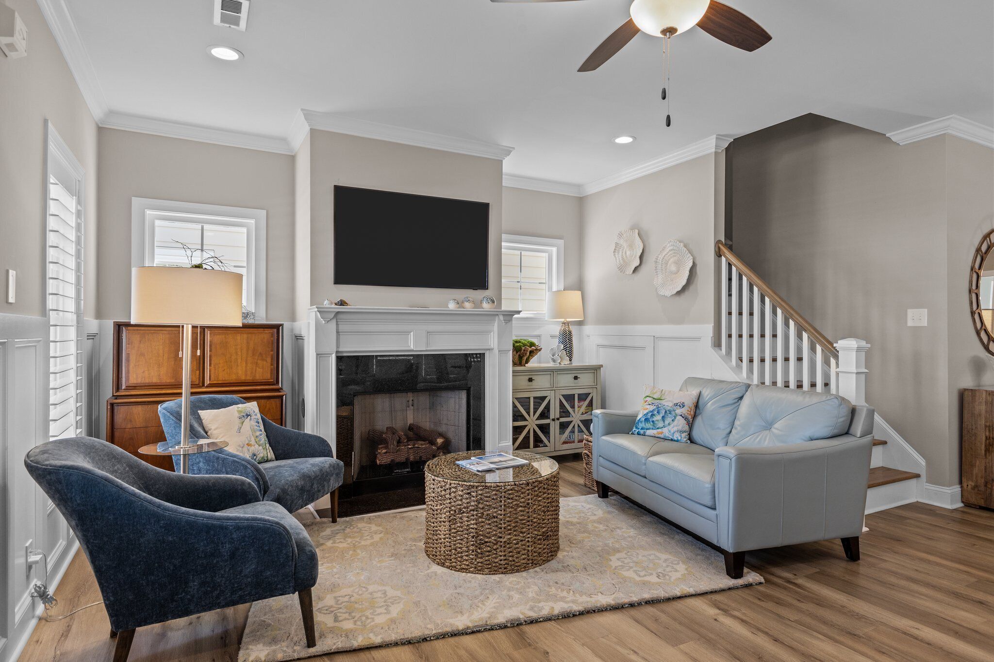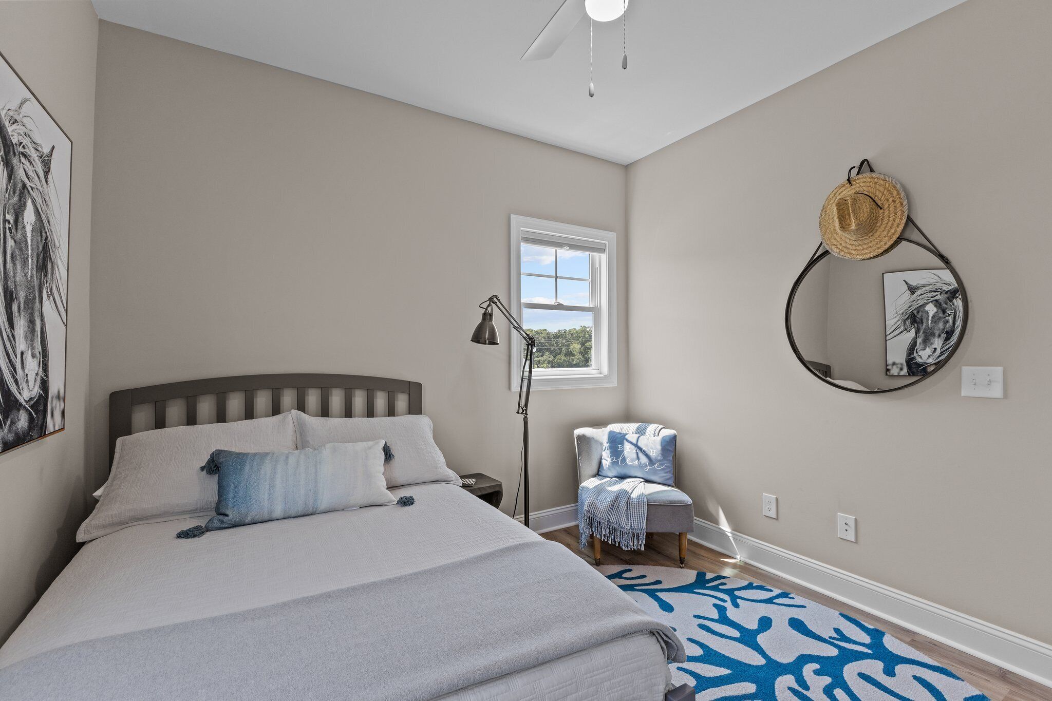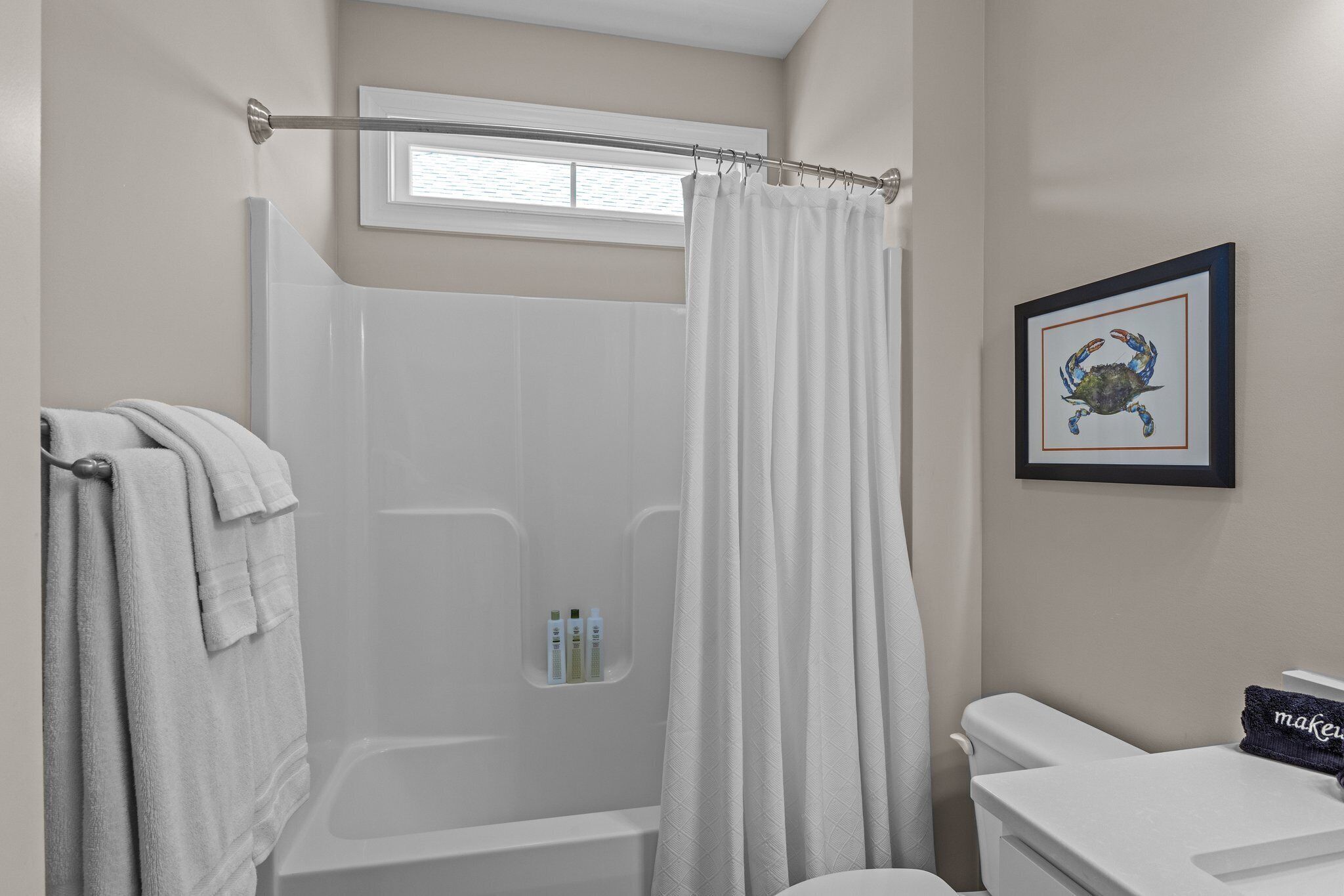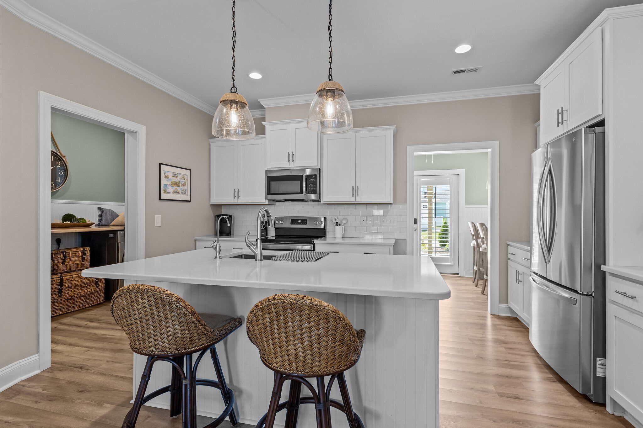 Peaceful Retreat. Walk to Pool/Dock, Bike to Downtown Beaufort, 8 Miles to Beach Welcome to Beau Harbor! A new, professionally decorated retreat perfect for families or friends exploring historic Beaufort and the Crystal Coast. Enjoy premium amenities (pool, grill, clubhouse, firepit, pickleball courts, and a private dock (boat pickup/drop-off, kayak launch, or fishing) and nearby Freedom Park. Plenty of restaurants and stunning nearby beaches. Enjoy 4-bedroom, 3-full baths with modern comfort including find amble living area seating, appliances, highspeed WIFI, and 3 smart TVs. Outside, enjoy a private upper balcony and lower front porch swings. We added a spacious back entrance room, ideal as a drop zone, workspace, or kitchen extension. Come and create memories at Beau Harbor!*** ROOM DETAILS ***LIVING ROOM: Offers comfortable seating for up to 7 people, including a plush leather couch, love seat, chair, and 2 additional chairs. Watch your favorite shows and movies on a brand new smart frame TV.DINING ROOM: Features a large wooden table with bench seating and sturdy Amish chairs, providing comfortable seating for up to 7 people.KITCHEN: Fully equipped with new appliances, including an oven/stove, dishwasher, Keurig and regular coffee maker, and a state-of-the-art purified water system, ensuring that you have everything you need for a comfortable and convenient stay. LAUNDRY: Features a brand new LG washer and dryer with a beautiful live-edge countertopOur 1st-floor shower/powder room is designed with accessibility features for guests with limited mobility, ensuring their comfort during their stay.BEDROOMS:The Primary bedroom offers a luxurious and spacious retreat, featuring an orthopedic King bed for a comfortable night's sleep, a large smart TV for your entertainment needs, a double vanity, and a walk-in shower. The room also includes a walk-in closet and an entrance to the upper deck, offering ample seating for up to 6 people.The Queen bedroom is furnished with an orthopedic Queen bed, ensuring a restful night's sleep in a comfortable setting.The Full bed provides additional sleeping space for up to 2 guests, with a plush pillow-top mattress that ensures a cozy and comfortable stay.1st FLOOR BEDROOM or FLEX/BONUS ROOM is a versatile space that can be transformed into an entertainment room or a bedroom. The room features an American Leather queen+ sleeper sofa, providing a comfortable and restful night's sleep without any bars, as well as a 55" smart TV for your entertainment needsEXTERIOR:• The two front porch swings and rocking chairs provide comfortable seating for up to 6 guests, welcoming you to relax and unwind while enjoying the outdoors.• The upper deck features comfortable cushioned seating for up to 6 people, along with a wide surface table and 2 side tables, making it a perfect spot for outdoor dining or socializing with family and friends.• Our Weber charcoal grill allows you to prepare delicious meals while enjoying the outdoor scenery, adding a delightful touch to your vacation experience.AMENITIES: • Our property offers an array of exceptional amenities, including a swimming pool, clubhouse, community dock, and pickleball courts. Plus, you can enjoy the nearby Freedom Park within eyesight, and a splash pad park just minutes away.• If you're looking for adventure, Beaufort is just 1.5 miles away, where you can explore the rich history and culture of the area.• For beach lovers, Atlantic Beach is only 15 minutes away, offering endless opportunities for fun in the sun.• To learn more about the area and our vacation rental, visit our website at beauharbornc.com, where you can find additional details about the property and its surroundings.• Need to park a boat, ask us about the offsite options.• There are outdoor security cameras: doorbell and driveway; they are not monitored during your stay.