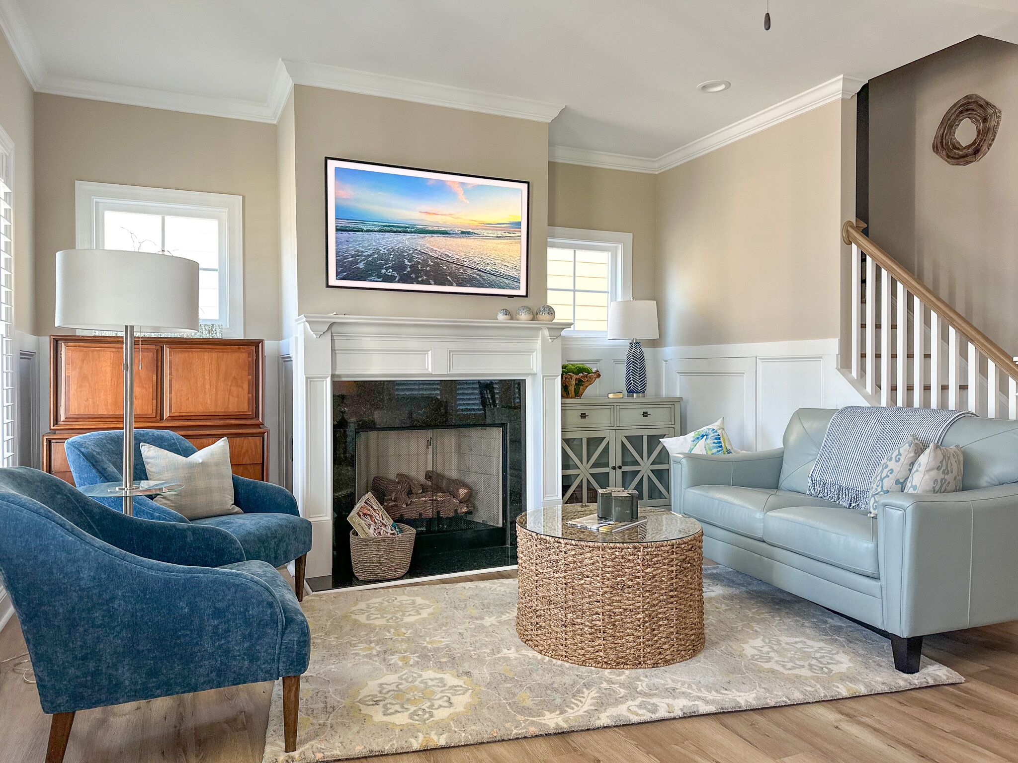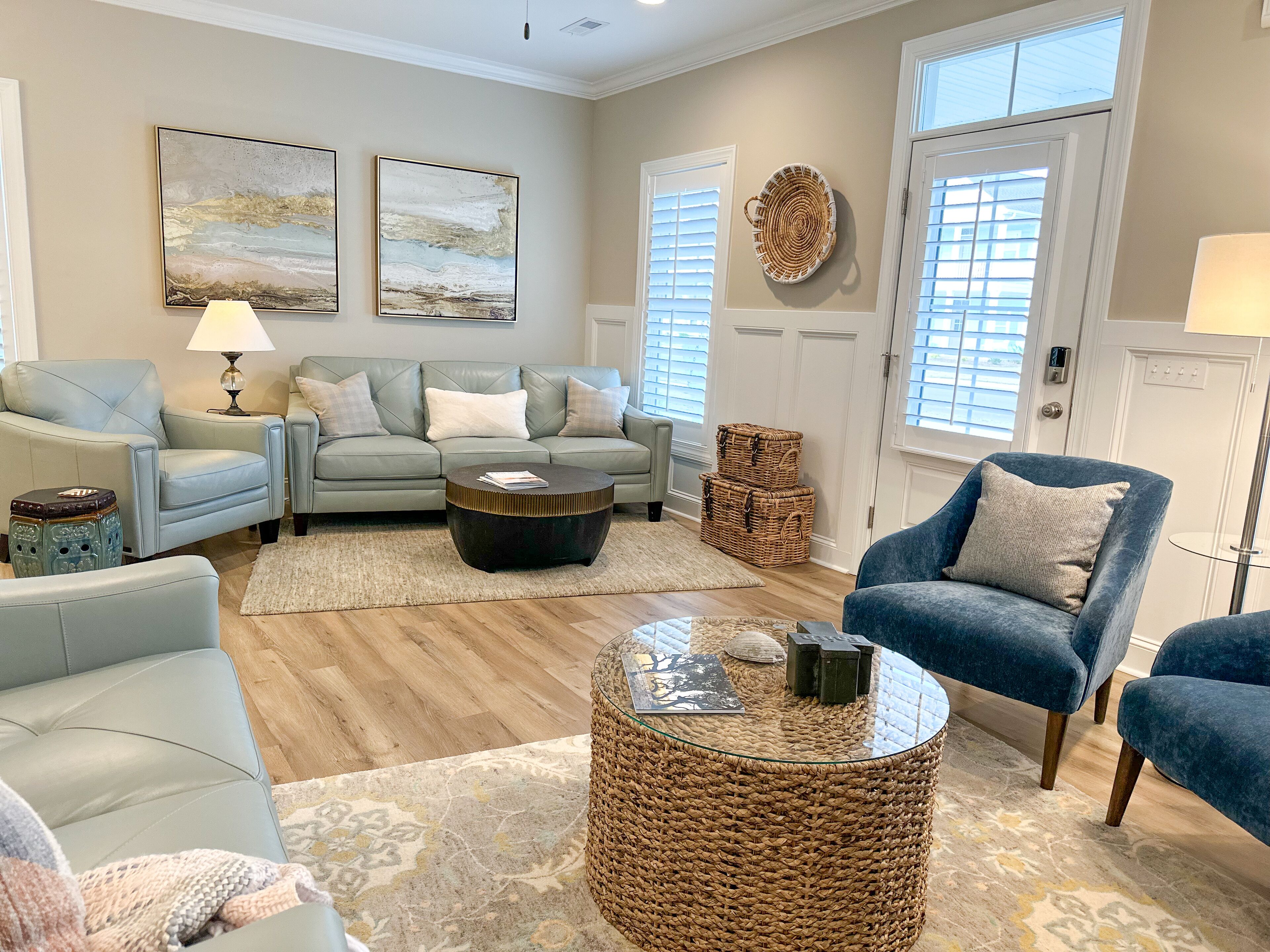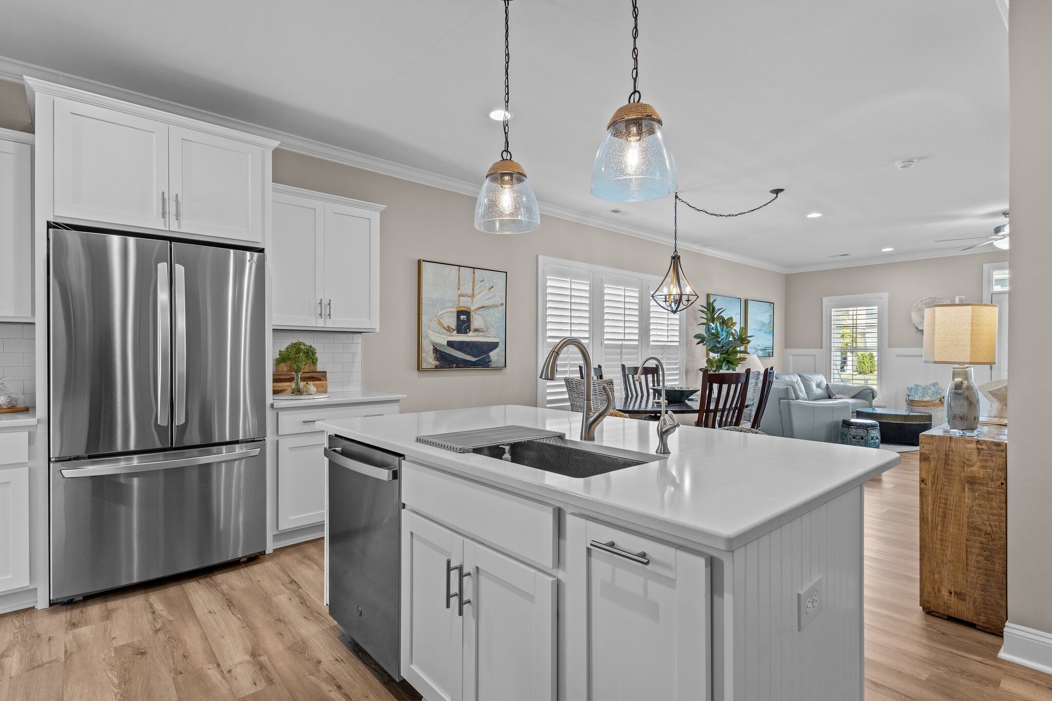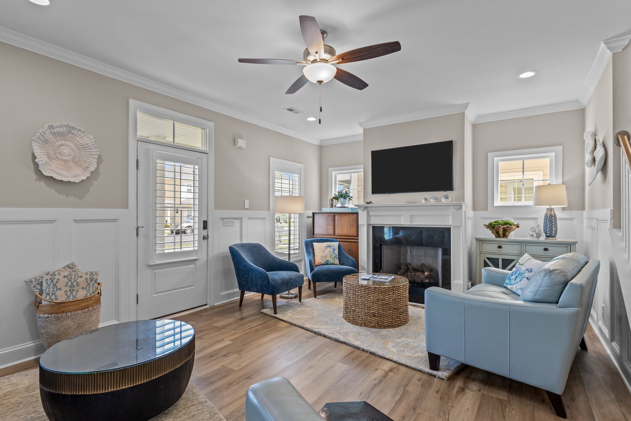Peaceful Retreat. Walk to Pool/Dock, Bike to Downtown Beaufort, 8 Miles to Beach Welcome to Beau Harbor! A new, professionally decorated retreat perfect for families or friends exploring historic Beaufort and the Crystal Coast. Enjoy premium amenities (pool, grill, clubhouse, firepit, pickleball courts, and a private dock (boat pickup/drop-off, kayak launch, or fishing) and nearby Freedom Park. Plenty of restaurants and stunning nearby beaches. Enjoy 4-bedroom, 3-full baths with modern comfort including find amble living area seating, appliances, highspeed WIFI, and 3 smart TVs. Outside, enjoy a private upper balcony and lower front porch swings. We added a spacious back entrance room, ideal as a drop zone, workspace, or kitchen extension. Come and create memories at Beau Harbor!*** ROOM DETAILS ***LIVING ROOM: Offers comfortable seating for up to 7 people, including a plush leather couch, love seat, chair, and 2 additional chairs. Watch your favorite shows and movies on a brand new smart frame TV.DINING ROOM: Features a large wooden table with bench seating and sturdy Amish chairs, providing comfortable seating for up to 7 people.KITCHEN: Fully equipped with new appliances, including an oven/stove, dishwasher, Keurig and regular coffee maker, and a state-of-the-art purified water system, ensuring that you have everything you need for a comfortable and convenient stay. LAUNDRY: Features a brand new LG washer and dryer with a beautiful live-edge countertopOur 1st-floor shower/powder room is designed with accessibility features for guests with limited mobility, ensuring their comfort during their stay.BEDROOMS:The Primary bedroom offers a luxurious and spacious retreat, featuring an orthopedic King bed for a comfortable night's sleep, a large smart TV for your entertainment needs, a double vanity, and a walk-in shower. The room also includes a walk-in closet and an entrance to the upper deck, offering ample seating for up to 6 people.The Queen bedroom is furnished with an orthopedic Queen bed, ensuring a restful night's sleep in a comfortable setting.The Full bed provides additional sleeping space for up to 2 guests, with a plush pillow-top mattress that ensures a cozy and comfortable stay.1st FLOOR BEDROOM or FLEX/BONUS ROOM is a versatile space that can be transformed into an entertainment room or a bedroom. The room features an American Leather queen+ sleeper sofa, providing a comfortable and restful night's sleep without any bars, as well as a 55" smart TV for your entertainment needsEXTERIOR:• The two front porch swings and rocking chairs provide comfortable seating for up to 6 guests, welcoming you to relax and unwind while enjoying the outdoors.• The upper deck features comfortable cushioned seating for up to 6 people, along with a wide surface table and 2 side tables, making it a perfect spot for outdoor dining or socializing with family and friends.• Our Weber charcoal grill allows you to prepare delicious meals while enjoying the outdoor scenery, adding a delightful touch to your vacation experience.AMENITIES: • Our property offers an array of exceptional amenities, including a swimming pool, clubhouse, community dock, and pickleball courts. Plus, you can enjoy the nearby Freedom Park within eyesight, and a splash pad park just minutes away.• If you're looking for adventure, Beaufort is just 1.5 miles away, where you can explore the rich history and culture of the area.• For beach lovers, Atlantic Beach is only 15 minutes away, offering endless opportunities for fun in the sun.• To learn more about the area and our vacation rental, visit our website at beauharbornc.com, where you can find additional details about the property and its surroundings.• Need to park a boat, ask us about the offsite options.• There are outdoor security cameras: doorbell and driveway; they are not monitored during your stay.