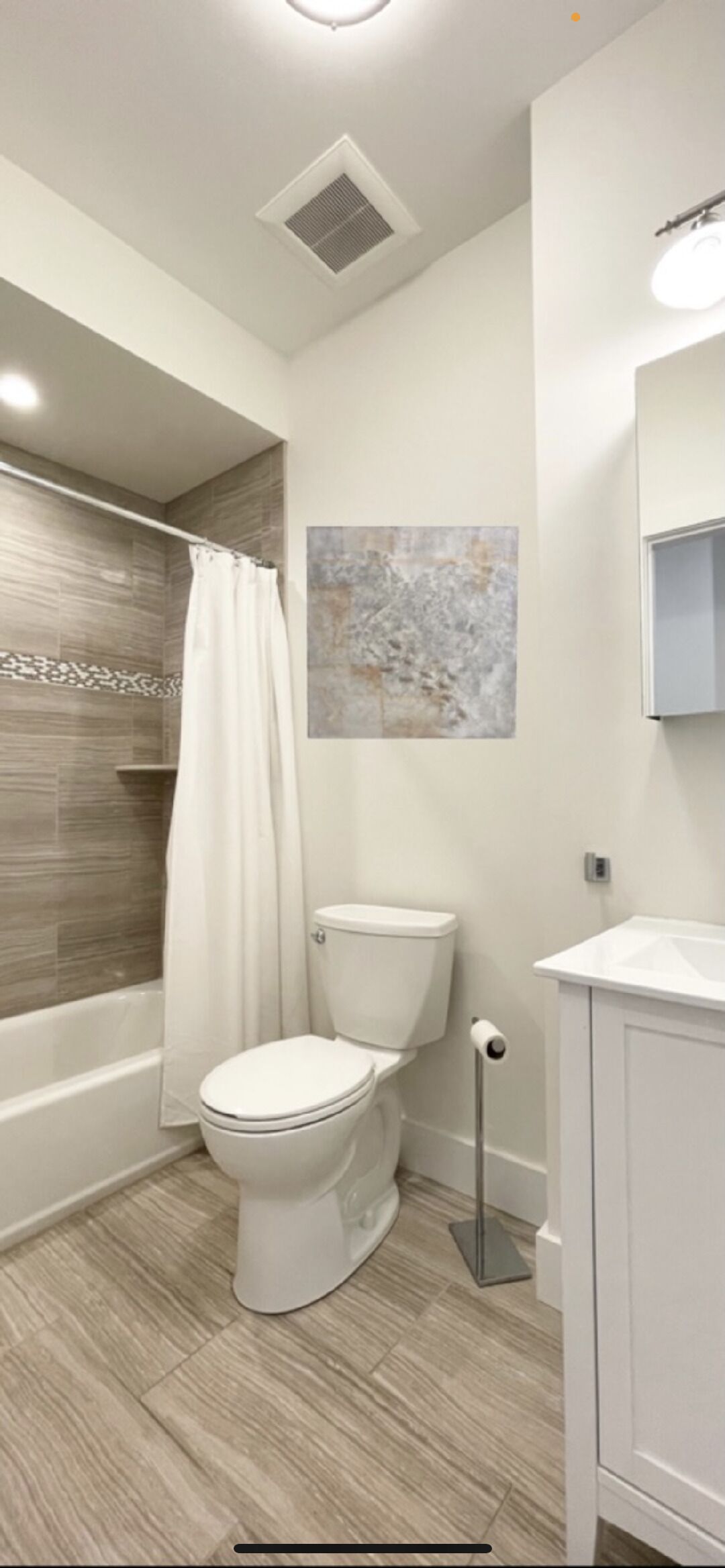 Luxury Sea Bright Home, Ocean Views, 6 Sun Decks! This modern home is the ideal getaway or vacation by the shore! Perfectly located 100 feet from the beach, situated in the heart of Sea Bright. Within walking distance of restaurants, shops, stores and beach. Meticulously appointed with renovated amenities and modern furnishings, featuring 6 decks with ocean and river views. Just a 5 minute car ride to the Seastreak Ferry Terminal and a short car ride to Long Branch.Feel at home this summer or winter, with the comfort of central air and heat, a fully equipped kitchen, washer & dryer, house linens, WiFi, cable, beach towels, beach chairs and umbrella.The main level has 2 bedrooms (1st bedroom has a full size bed and 2nd bedroom has two twin beds plus trundle), 2 full bath, kitchen, a living & dining area, 2 decks, and washer & dryer. Upstairs with its eclectic loft style has a queen size sleeper sofa, daybed, sink and 4 decks. Unit is in on the 2nd floor, guests must be able to walk up stairs. House also comes with 2 beach passes and 2 parking passes. You'll have everything you need to enjoy your stay, privacy and comfort with access to the entire house with terrific views of the ocean and river via the 6 decks!