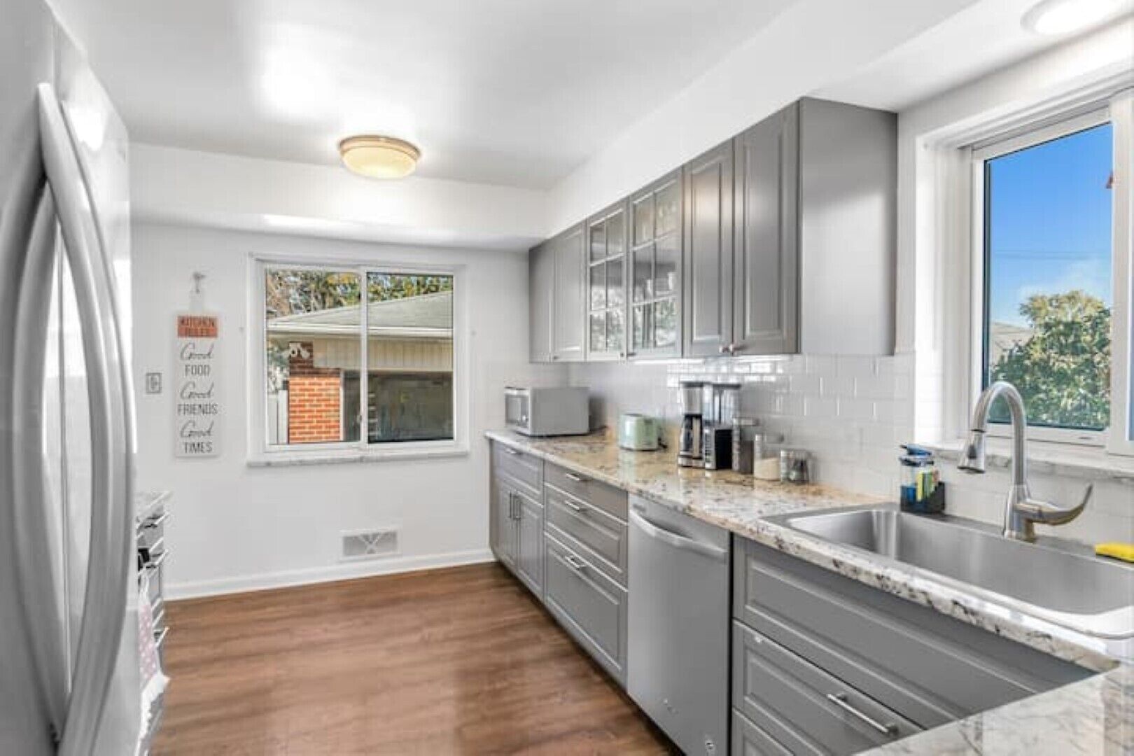 ★Entertainment & Game Room w/ Bar★ Cheerful and Bright Ranch w/ 2 Full Baths Welcome to Metro-Detroit and our centrally located ranch in the Lamphere district of Madison Heights. Our cozy, stylish home is an ideal place to stay as you explore all that metro Detroit has to offer while visiting for pleasure or for business. This is a 3 bedroom, 2 full bathroom home boasting a bar, game, and entertainment area in the basement. The main floor features an elegant living area with 3 bedrooms, 1 bath, a kitchen, and a dining area.The space:This beautifully appointed home features lots of classic details & charm including plaster walls, a living room w/ coved ceiling & hardwood floors throughout much of the main level. Highlights of the kitchen include a full remodel with granite countertops, stainless steel appliances, and an adjacent dining room. Three full bedrooms, a beautifully updated bathroom, and a spacious living area complete the first floor. The finished basement includes an entertainment/game room with a bar, a roomy full bath, an additional sleeping arrangement, and laundry. This home sits on a nice-sized lot & has a fully fenced-in backyard with a patio sectional seating, providing an excellent space for outdoor entertaining. Convenient to downtown Royal Oak and many nearby hubs.Guest accessDuring your stay, you are welcome to utilize all of the spaces and amenities. If there is something you're unsure how to use, let us know and we will be happy to assist!There is a locked closet door in the laundry room where we store cleaning supplies which guests do not have access to.Safety Devices:Security camera/recording device-Ring Doorbell Camera with recording located at the front entrance of the house.-Ring Spotlight Camera with recording located on the garage pointing to the driveway and the back of the home.Carbon monoxide alarm installedEach floor of the house has a carbon monoxide alarm. One is located by the kitchen, one is located in the hallway central to each of the 3 bedrooms, and one is located in the basement.Smoke alarm installedSmoke alarms are located throughout the home