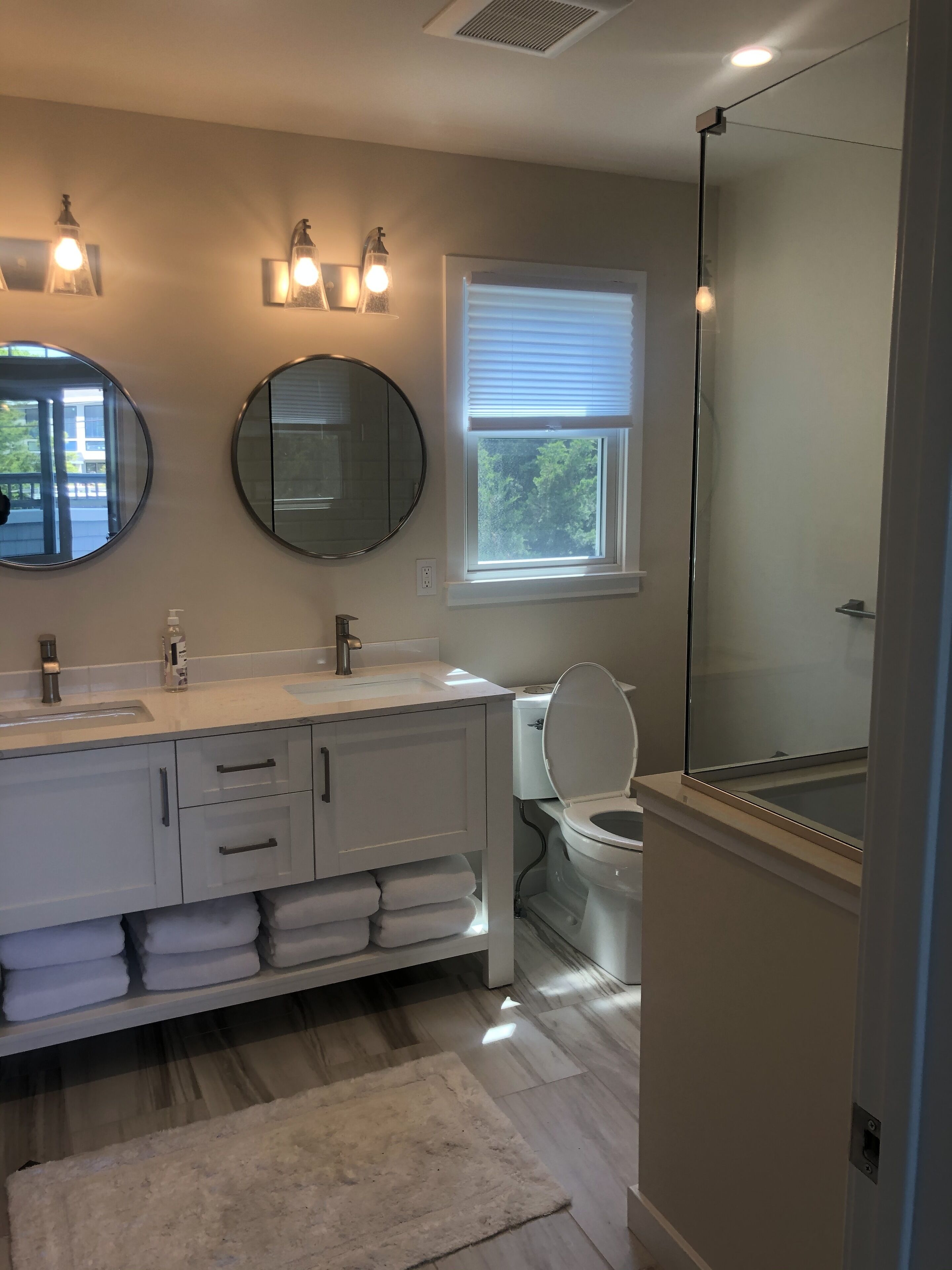 Completely renovated for summer 2021! Pet friendly Completely renovated for 2021. 4 bedroom, 3 bath house. Located on 30th street, one of Barnegat Lights Best beach blocks, 1 block to a guarded ocean beach and 5 blocks to guarded bay beach. No Tram needed to get to beach. Large open living area featuring ample seating for the entire family, 55" TV. Additional family room upstairs with 50" TV. The kitchen, which is open to living room & dining area, features brand new cabinets, granite counter tops and stainless steel appliance package, well-equipped for your cooking needs. Large spacious roof deck over garage has 4 lounge chairs, table for alfresco dining. 2 decks on front of house Downstairs front deck has seating and Gas Grill, Upstairs front deck has more seating and a view of the bay. Outside Shower- great after a day at the beach! Amenities include Central Air (2 zone), Large capacity Washer & Dryer, Cable TV (both living rooms), WIFI Internet Service. The master bedroom has a King size bed with newly renovated private bath, shower stall. Additional bedroom on main floor has twin beds and hall bathroom, which has a bathtub. Up stairs are 2 additional bedrooms (queen size bed) one with access to rooftop deck, full bath and living area. Included in rental are 6 beach badges, beach chairs, beach umbrella, wagon to bring all your belongings to the beach Also included,, 3 adult bicycles and 1 child's bicycle for your use We are a pet friendly home. If you want to bring your furry friends, please inquire. There is no additional charge for pets but if you book, additional paperwork required. Barnegat Light has a dog park on 10th street which makes a great vacation for the dogs as well! Check township website for dog park policy/rules A short distance to Viking Village featuring Cassidy's fish market, How you brewin coffee, Off the Hook restaurant for take out or dine outside, many quaint shops. The village of Barnegat Light has Mustache Bills Diner, Kubels Restaurant, Daymark & Kelly's restaurants both by the light house Poppys Ice cream, Dairy Queen, miniature golf and of course the Barnegat Lighthouse, where you can climb 217 steps and see the best view of LBI! Weekly rental during summer weeks beginning 6/28 through labor day - Sunday change over daySmoke Free Home!Thanks for looking!
