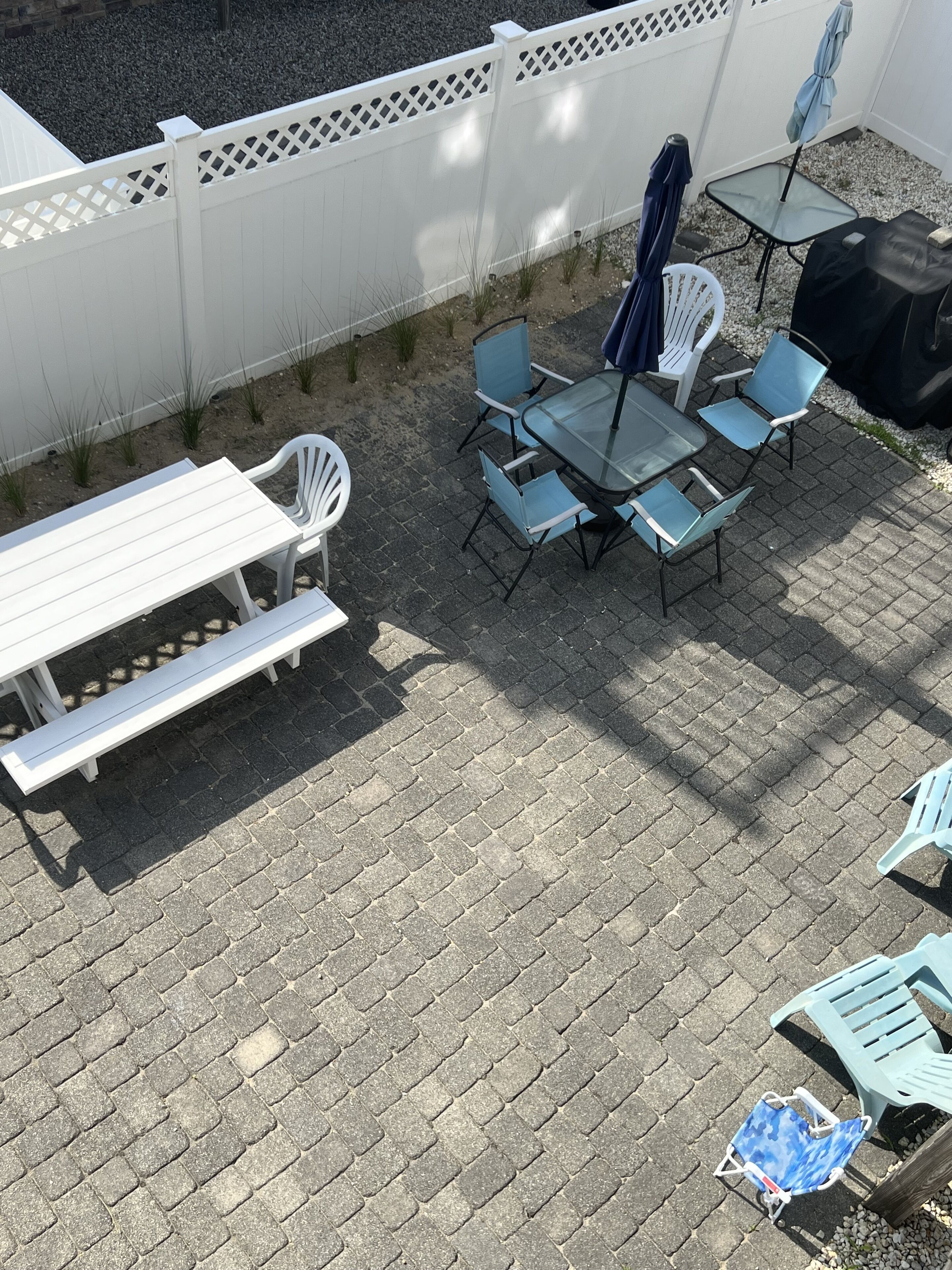 "Oceanfront Paradise" -Steps Away from the Beautiful Sand & Surf! During the months of July and August I only rent out weekly from Saturday to Saturday.Enjoy the luxury of walking right across onto the glistening sand and surf in this oceanfront home with spacious, modern floor plan in Ortley Beach. Sit back and enjoy your morning cup or evening refreshment on the porch listening to ocean waves roaring and watching seagulls soaring. The 1st FLOOR APARTMENT of this 2 family home sleeps six with two bedrooms and queen sofa bed. The primary bedroom has a queen size bed, large closet and private access to bathroom. The second bedroom/sitting room with ocean facing bay window has a sleigh daybed with twin size mattress and a twin size trundle bed, two lounging chairs, storage ottoman, 40' flat screen cable TV and DVD player. The living room has queen size sofa bed with mattress topper for added comfort, two comfy chairs, tables and enclosed 42' flat screen cable TV and DVD player. Sitting area by ocean facing double window in living room has bistro table with two chairs. Fully equipped kitchen has granite countertops with 4 stools around island and additional tile top table with 4 chairs and sliding glass door onto patio. Full bathroom with tub/shower. Large laundry room with washer and dryer. Home is also complete with internet, central air, linens and towels. Ocean facing front porch has seating for 4. Landscaped property has backyard with solid fence enclosed patio that has 2 grills, picnic table, table with umbrella, chairs and large outside enclosed shower. Paved driveway for off-street parking, additional free street parking and much more! Relax and enjoy walking down the block to wonderful restaurants, ice cream shop, bagel store, fish market, salon, miniature golf/arcade and much more! Also close to parks with basketball and tennis courts, supermarket, liquor store, shops, bicycle and boat rentals. Just a little over a mile to Seaside Heights Boardwalk with rides, amusements, waterpark and weekly summer fireworks. Great fishing at both the ocean and Barnegat Bay. - - PLEASE EMAIL FOR AVAILABLE WEEKS LEFT - -- No Groups, Young Adults, Parties or Events.- 2nd FLOOR APARTMENT available with limited summer weeks has Beautiful Ocean Views. 3 Bedrooms, 1 Bath, 1 Large Deck also with Ocean Views. Similar floor plan and amenities as 1st Floor Apartment. $3,800/wk. plus Fees & Tax. OFF-SEASON Rates and Long Term WINTER Rental available for both apartments. Email or Call for info., rates and additional pics.