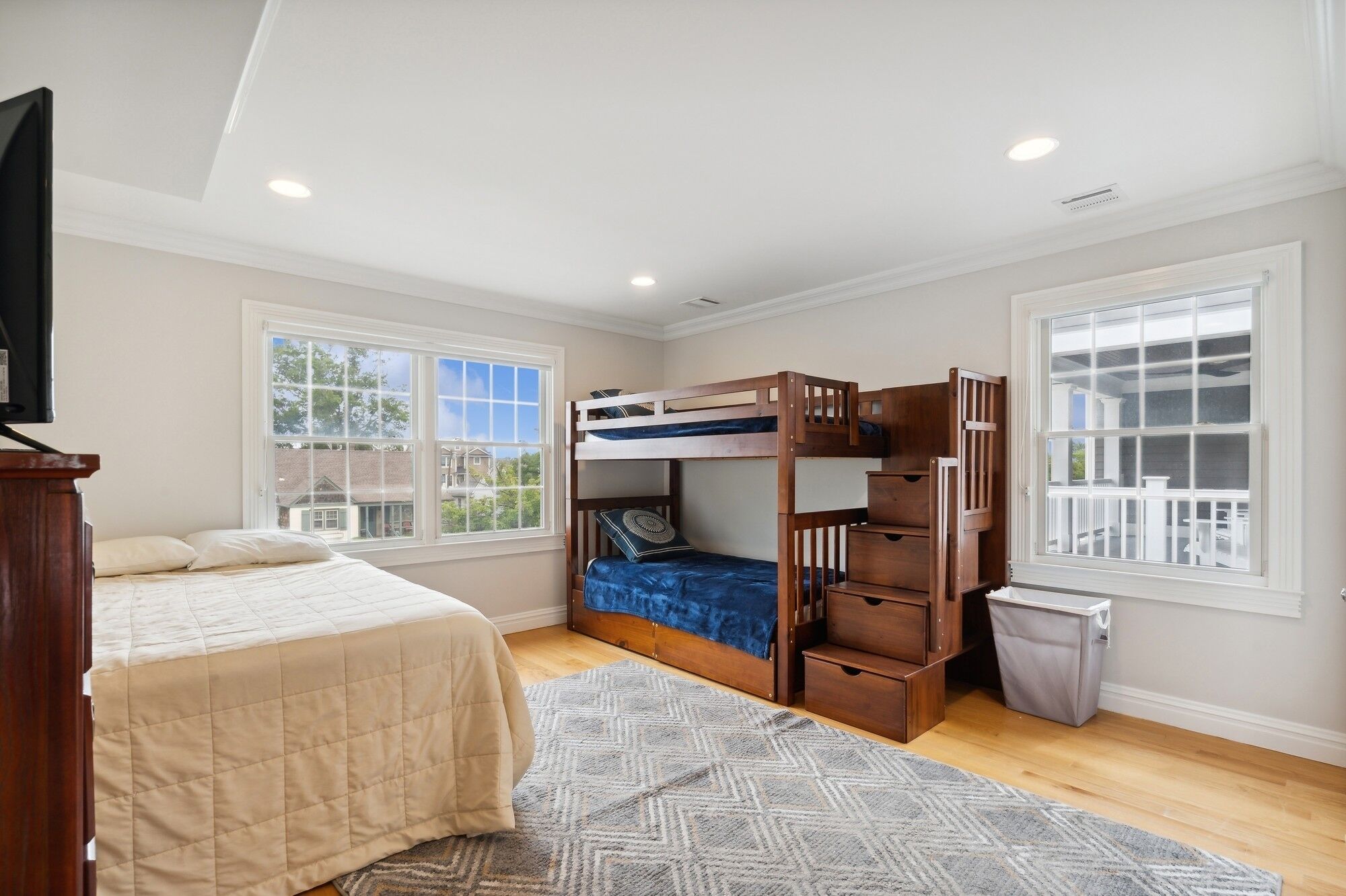 Luxury Home a Short Walk to Beach and Town with Amazing Reviews SUMMER 2024 UPDATE: We are fully booked through Labor Day, open for September for weekly rentals at reduced in-season rates, and then available for the off-season for monthly rentals starting in October.All in-season rentals are Saturday-Saturday, minimum 7 days (a legal requirement). All off-season rentals are one-month minimims (also a legal requirement).OVERVIEWA modern, clean vacation home in the heart of Point Pleasant Beach, close to both town and the beach. This luxury home can comfortably sleep 10 and features a backyard with a deck, paver patio, and lovely swimming pool (during the summer). FIRST FLOOR MAIN LEVEL: LIVING ROOM, DINING ROOM, KITCHEN, BONUS ROOMThe main level features an open architecture with what is basically a great room broken up into a kitchen, dining area, and living area. The kitchen is all set up with all the appliances, plates, glasses, silverware, etc. that most people will need. (There is also a gas barbecue grill in the back yard.). The long wood rectangular dining table seats up to 10. And the living area features two couches, four adjustable and reclining chairs, and a large flat screen smart tv with cable and all the major streaming services over the fireplace. The first floor also has a bonus room, which is set up as a TV room but has a new pullout sofa including a queen bed that can be used as a bedroom in a pinch (although there's no full bath on that floor). SECOND FLOOR BEDROOM LEVEL: FOUR BEDROOMSThe second floor features four bedrooms that can sleep 10 (one king, three queens, two single bunk beds). The master bedroom is huge and features a walk-in closet and a large master bath with an oversized tub and standup shower. The other three guest bedrooms share two full baths. Two bedrooms (both with queen beds) have a jack and jill bath between the. The other bedroom, which has a queen and two bunk beds, is next to a full bath. THIRD FLOOR "GAME ROOM"The third floor is fully finished and furnished, totaling about 1,200 square feet but including a lot of angled ceilings that limit the usable space somewhat. The floor features what we think of as a "game room" for kids, set up with a futon, a big yugibo, and a 50-inch television hooked up two a Ninetendo Wii U gaming system along with about 10-15 games.. The TV is a smart TV with a roku system where you can access all major streaming systems, and has an HDMI expansion hookup so you can connect any additional gaming system you wish to bring. The third floor has a futon, and there are also two cots in the back area of the room that can be used in a pinch. BACKYARDThe house features an expansive fenced-in backyard the includes: a full deck with a four-chair dining table, a paver patio with seven lounge chairs and other seating, extensive plantings and landscaping, and a grassy strip if you wish to lay out on a towel right on the ground. The backyard is relatively lush for Point Pleasant beach area houses, with hydrangeas and about a dozen medium-sized crepe myrtle and birch trees that enhance privacy. POOL The backyard also has a medium-sized pool with lots of pool toys for kids. The pool is relatively shallow, and never gets deeper than six feet, so absolutely NO DIVING, but it's fun for the kids and good for pool games. The pool is only open from June-to-mid-September, and can be heated to 82 degrees maximum. INTERNET AND TVBesides the flatscreen in the living room, there's another large flat screen in the first floor bonus room, and small smart TVs in all the bedrooms. We also have the highest-level Xfinity high speed internet throughout the house with an Eero mesh network that generates super-fast internet connections through the whole house. We have the full Xfinity cable package with some major pay services and virtually every major cable channel, which is available on the main Living room TV through a cable box and through the other TVs through the Infinity app on the Roku.PARKING— WITH AN ELECTRIC CAR CHARGING OUTLETWe have parking for two cars, one in the garage and the other in the driveway, although you have to push stuff in the garage into a corner to fit a car in there. For those of you with a Tesla or other electric car, we have a dedicated NEMA 14-150 240v outlet in the garage for charging (you need your own cord).PETS: DOGS ALLOWEDWe have dogs, so we are not averse to guests who want to bring their dogs, but we will need an extra $500 fee for cleaning per stay (the website says it's $500 per dog, but that's incorrect and we apparently can't change it). Unfortunately, we cannot accommodate cats because of allergies in the family. Other types of animals are on a case-by-case basis.KEYLESS ACCESSWe have a smart lock keypad on the front door to allow you to go keyless during your stay. You give us a personal code you want to use, and we program it into the lock and the alarm system before your stay. You get to the house, use your code, and walk in. No complicated key deliveries. You do also get two physical keys for your stay if you want them.LOCATIONThe house is located perfectly between the beach and the town. We are about three blocks and a seven-minute walk (timed walking with kids and pulling a cart and wagon) from Jenkinson's beach, which is a huge beach that also features a classic Jersey Shore boardwalk with games and rides and food and all that -- one of the best boardwalks in the state. We are also a seven-minute walk the other way from the charming and eminently walkable town of Point Pleasant Beach, with great shops and restaurants. We're also a three-minute walk from the PPB train station. If you want to visit the rest of the Jersey Shore, you're well situated: 5 minutes from Bayhead, 20 minutes from Seaside Heights, and 20-30 minutes from Long Branch, Asbury, Spring Lake, etc. to the north and 30-40 minutes from LBI to the south.If you want a day away from the beach for some kid fun, we're about a 30 minute driv