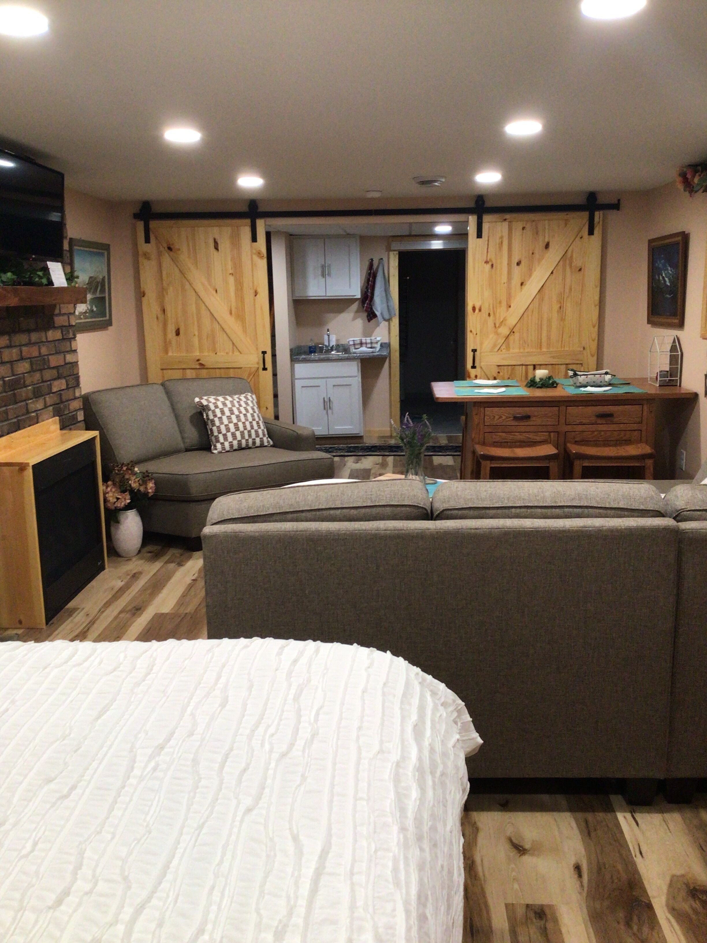 Jaggi Swiss Gasthaus Herzlich Willkommen!Welcome to my Swiss Style Gasthaus, located on a scenic country overlook with a beautiful view of Green County. You will be surrounded by peaceful woods with walking trails and abundant wildlife. Your proximity to New Glarus, Monroe, and Madison makes it a great home base.This newly remodeled private suite is located in a residential home. It features a separate private entrance with a keypad, queen bed, private full bath with shower, kitchenette, Wi-Fi, TV, and gas fireplace.The backyard is yours to explore- 7 acres of woods, walking trails, picnic table, and firepit.Coming spring of 2022 a beautiful relaxing pool with deck.8 minutes drive to New Glarus.20 minutes drive to Monroe.15 minute bikeride to New Glarus Woods State Park.