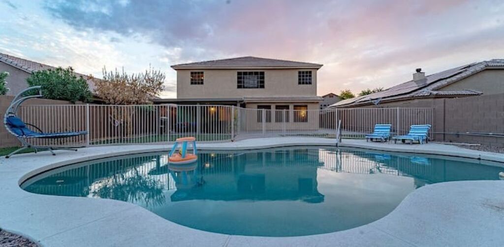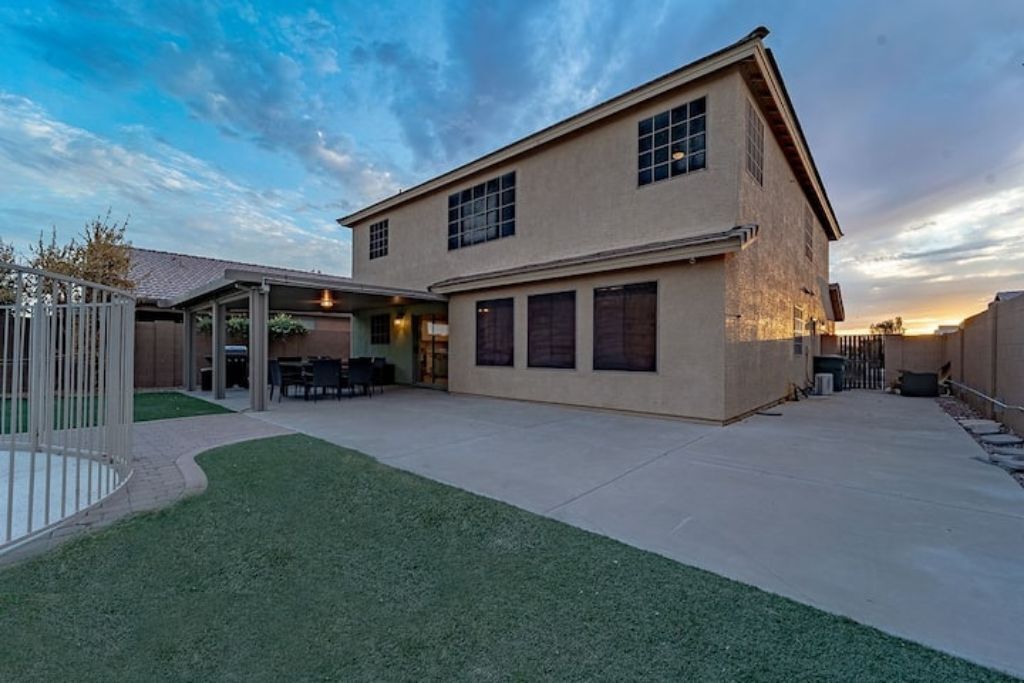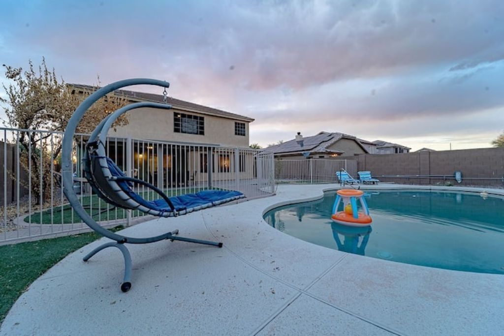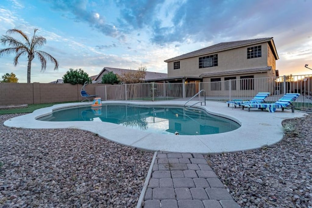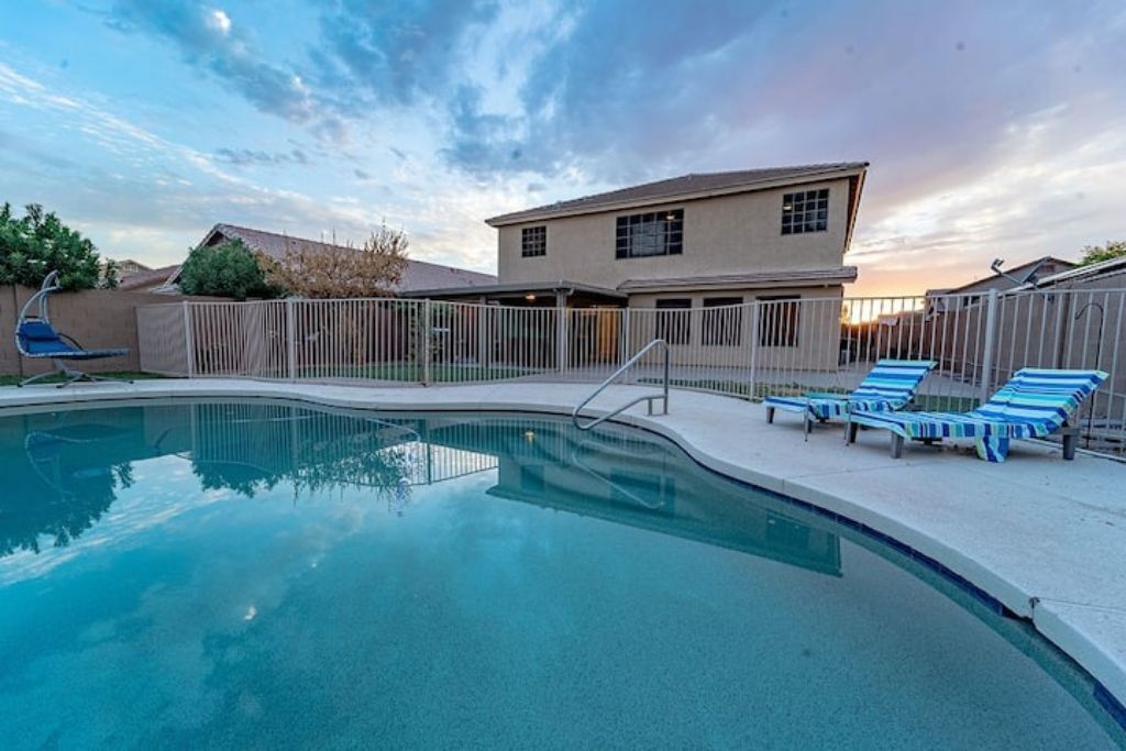 Playful Paradise in Casa Grande! Bring the whole family to this great place with lots of room for fun. 4 spacious bedrooms, 10 beds and a sofa bed for large families or groups. Large backyard with an amazing refreshing pool. Mini-golf, BBQ and patio furniture to enjoy many fun activities. 2 story home, Tvs, Wifi, books to read and much more.