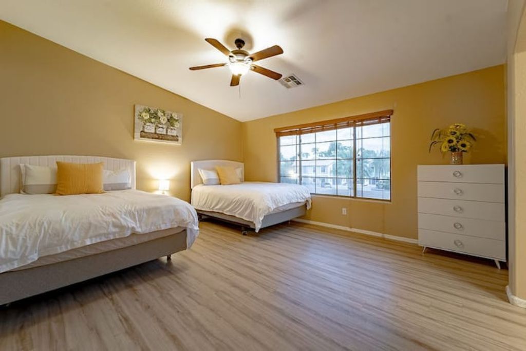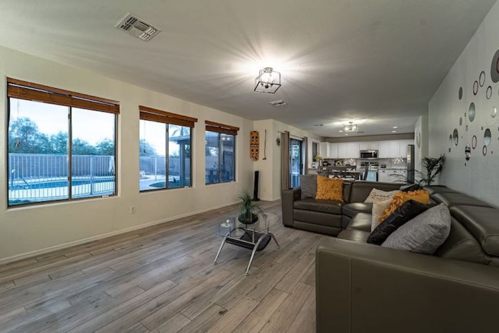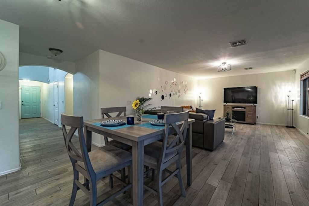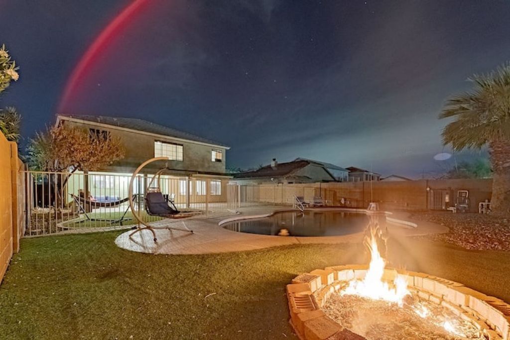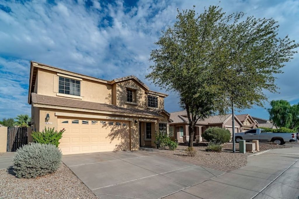 Playful Paradise in Casa Grande! Bring the whole family to this great place with lots of room for fun. 4 spacious bedrooms, 10 beds and a sofa bed for large families or groups. Large backyard with an amazing refreshing pool. Mini-golf, BBQ and patio furniture to enjoy many fun activities. 2 story home, Tvs, Wifi, books to read and much more.