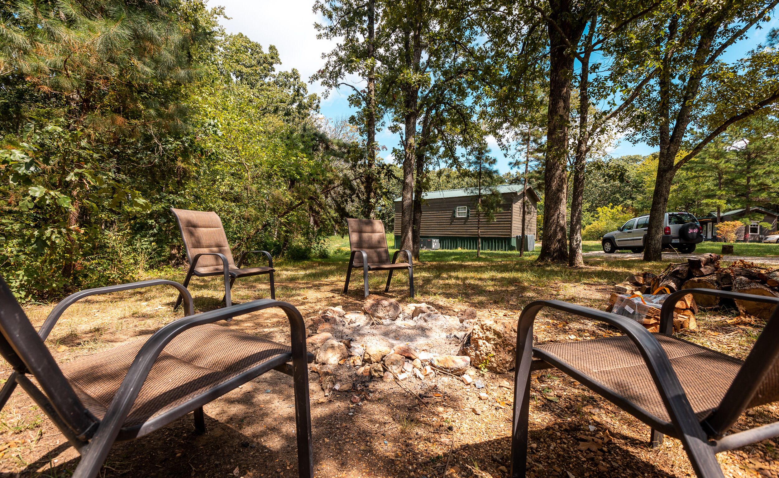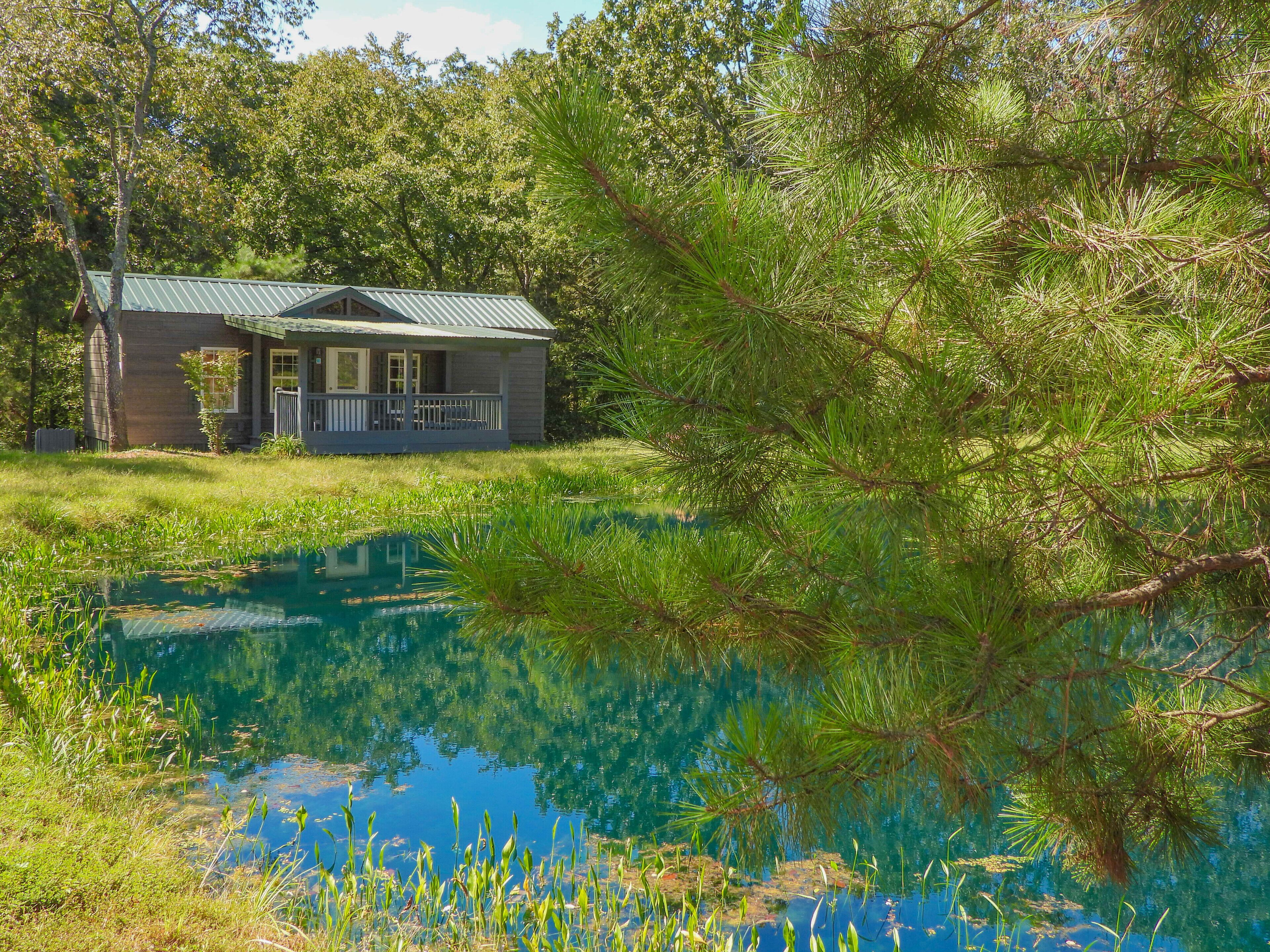 Fletcher's Village Group Cabin rental near Meramec River. Unique 3 cabin rental property with over 3 a/c of seclusion to relax with friends and family. Cabins comes fully furnished and include kitchen wares, linens, charcoal BBQ pit, fire pit, 2 RV full hook up sites and covered pavilion. Enjoy volley ball, horseshoes or just relax around the pond.Vacation Cabins (3 Deluxe Kozy Kabins): Sleeps 7 each - 1 Bedroom (1 queen bed), 1 Bedroom (1 double, single bunk bed), 1 Sofa Sleeper (queen),1 Full Restroom with Shower, Stove, Refrigerator, Microwave, Coffee Maker, Kitchen Table & Chairs, Heat & Air Conditioning.2 RV Sites: Water, Electric, Sewer, 20/30/50 amp Hook Up Capabilities.30×30 Pavilion: 2 Restrooms, 2 Showers, Fire Pit, Pedestal Charcoal BBQ, Picnic Tables, Full Kitchen with Stove, Refrigerator, Microwave, and Sink, & Washer & Dryer.This cabins are within minutes of several floating outfitters and public river access (Meramec, Huzzah, Courtois Rivers). Also there is Onondaga Cave, Aerial Park and Horse Trail rides for more options giving plenty of fun things to do on your trip. These are located within 20 minutes of this home. Also there are Antique Malls, Murals of Cuba, Mo. and Red Rocker for other day trip outings.