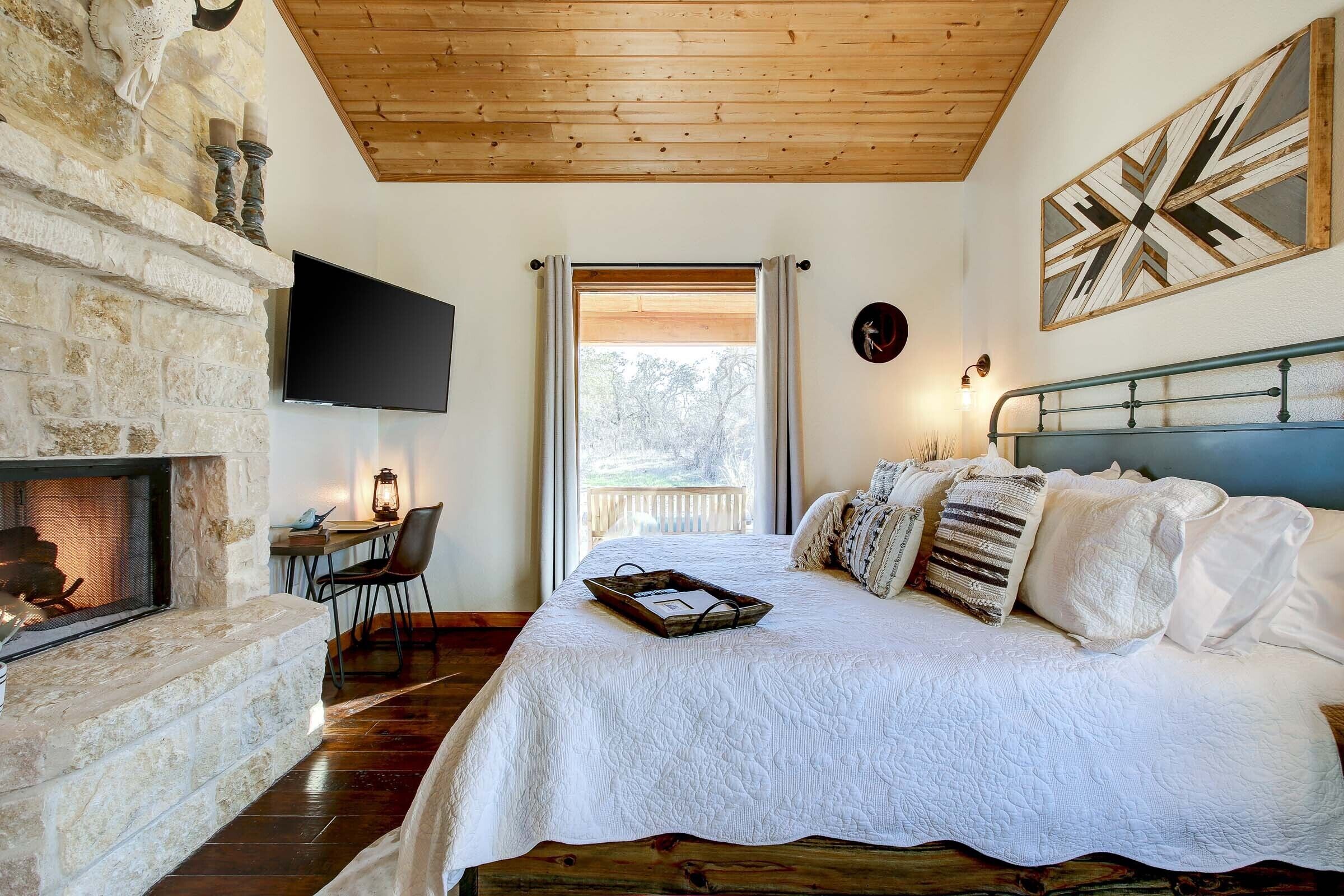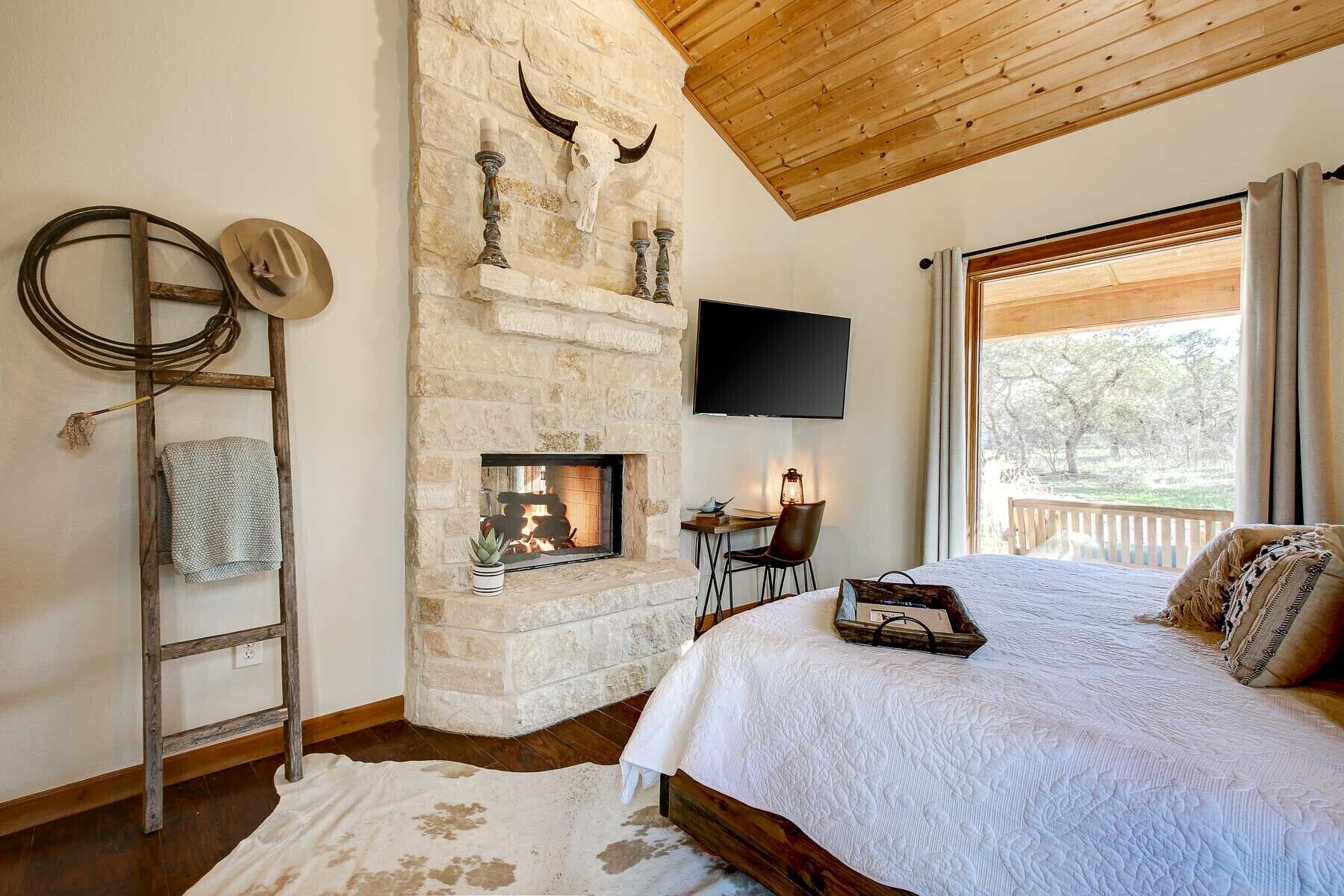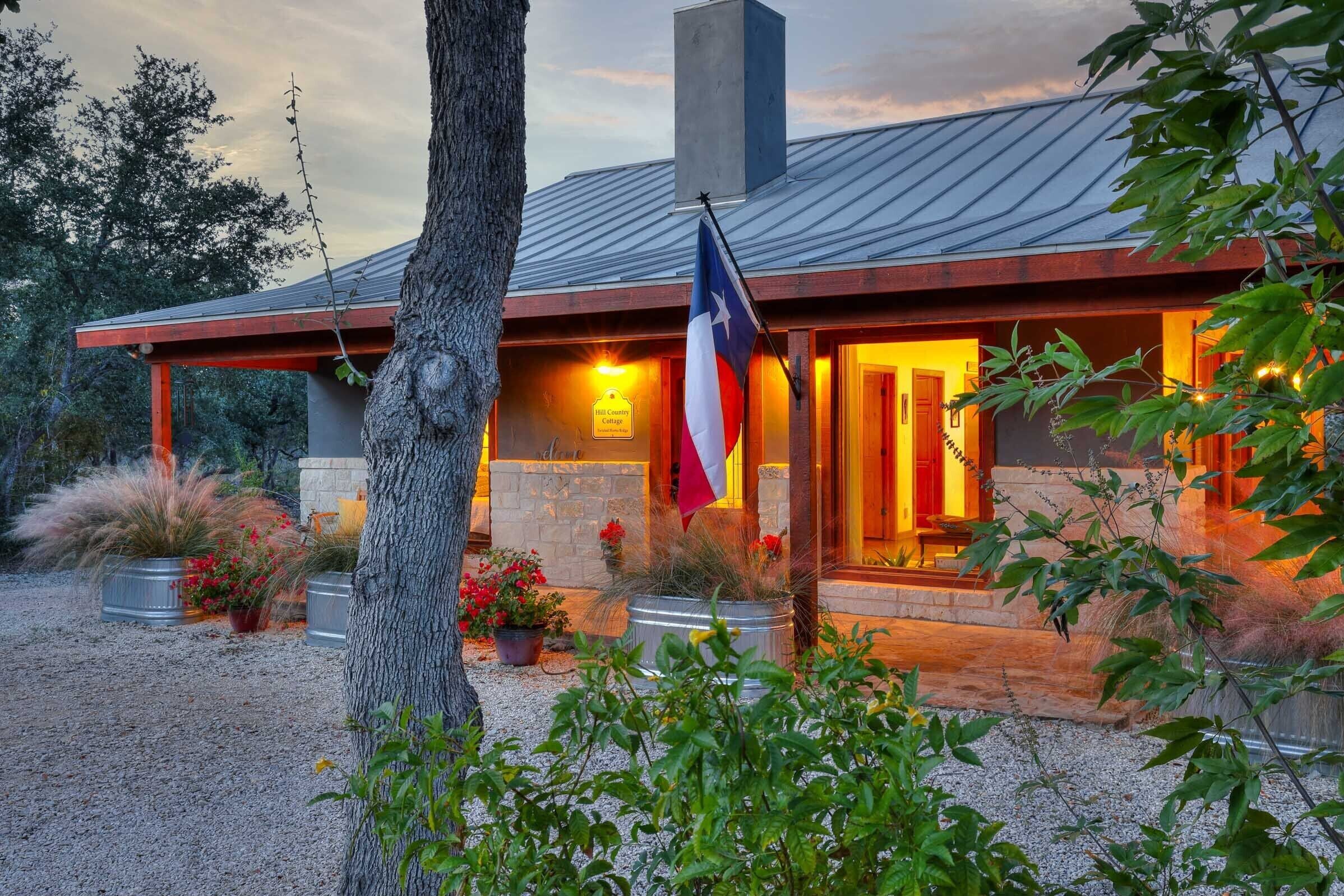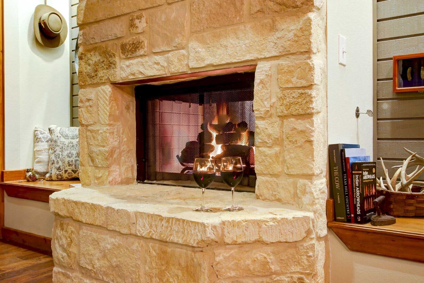 The Hill Country Cottage The Hill Country Cottage is truly a couple’s paradise. Inside, rest in the luxurious king-size bed, cuddle up in front of the stunning see-through fireplace and enjoy all of the comforts of a full-size living room with plush, comfy furniture. A large bathroom features a walk-in shower with Rain Shower Head.