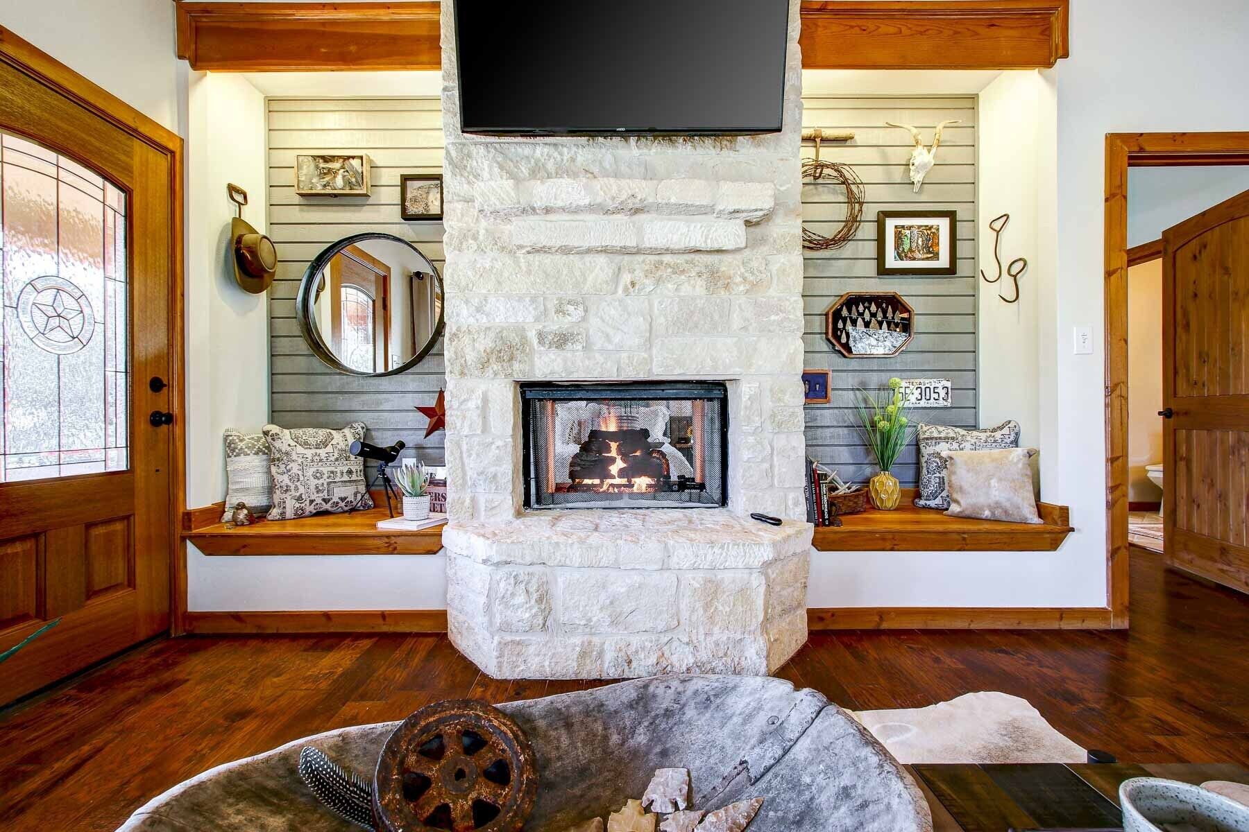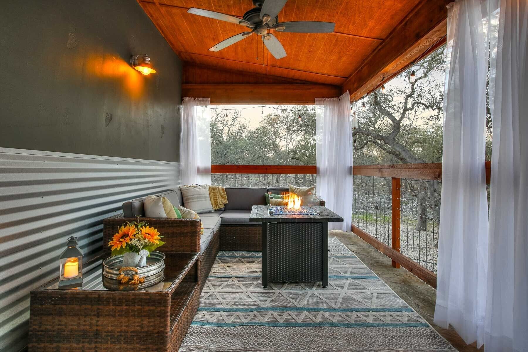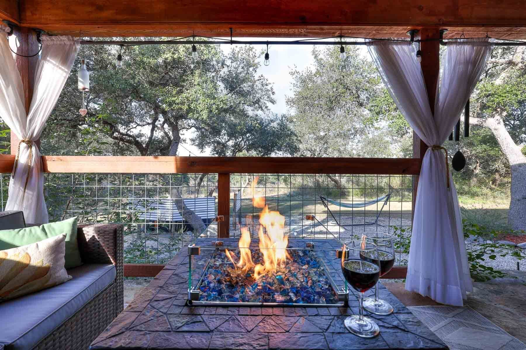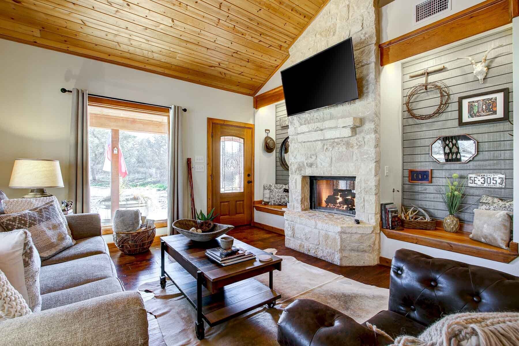 The Hill Country Cottage The Hill Country Cottage is truly a couple’s paradise. Inside, rest in the luxurious king-size bed, cuddle up in front of the stunning see-through fireplace and enjoy all of the comforts of a full-size living room with plush, comfy furniture. A large bathroom features a walk-in shower with Rain Shower Head.