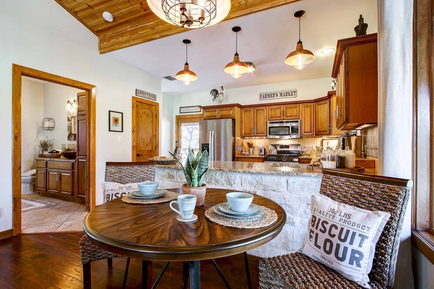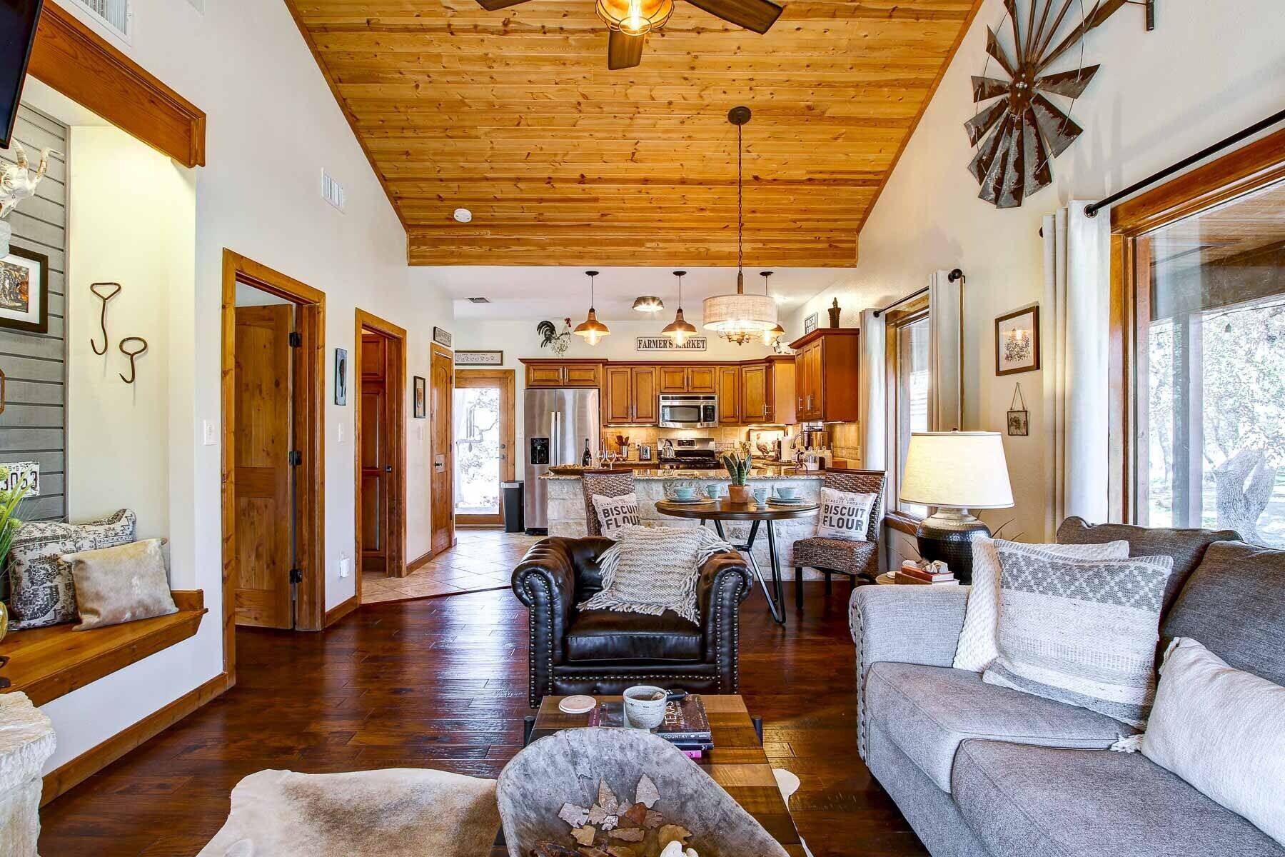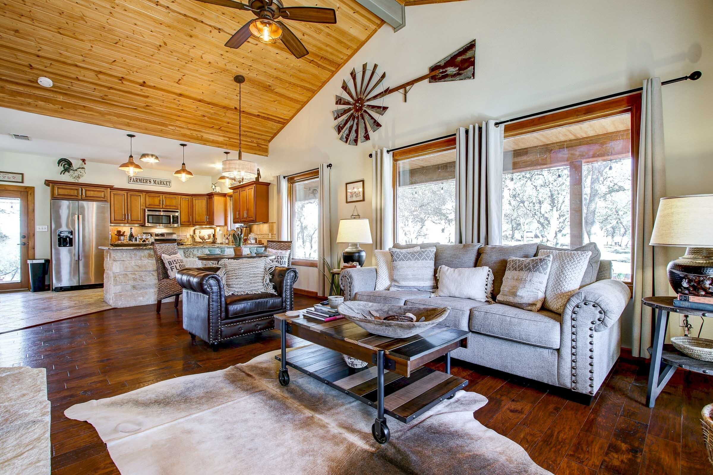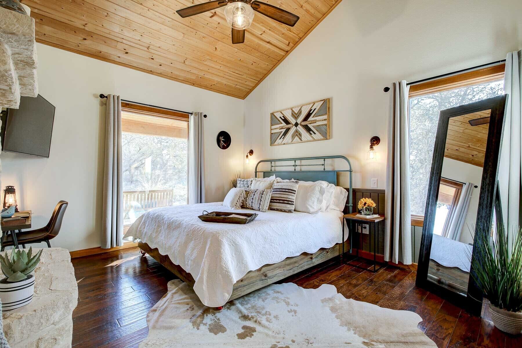 The Hill Country Cottage The Hill Country Cottage is truly a couple’s paradise. Inside, rest in the luxurious king-size bed, cuddle up in front of the stunning see-through fireplace and enjoy all of the comforts of a full-size living room with plush, comfy furniture. A large bathroom features a walk-in shower with Rain Shower Head.