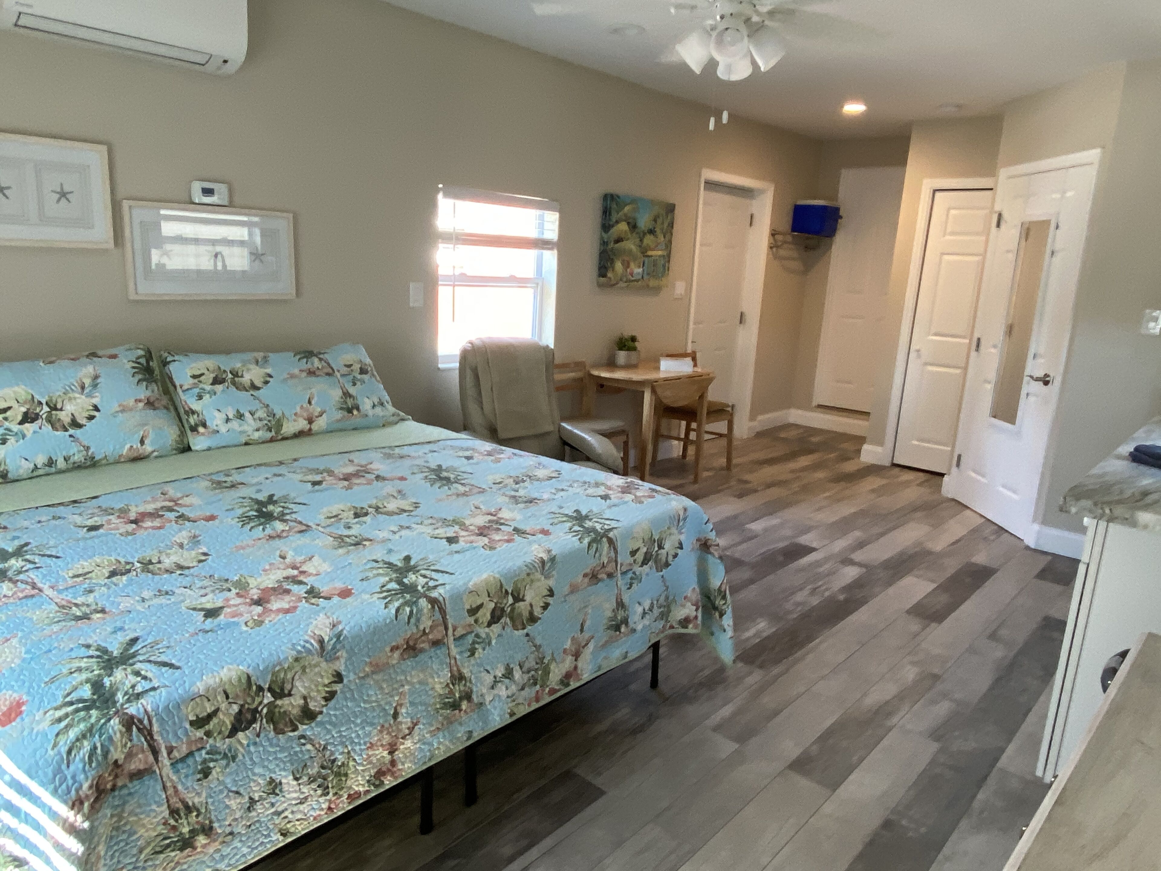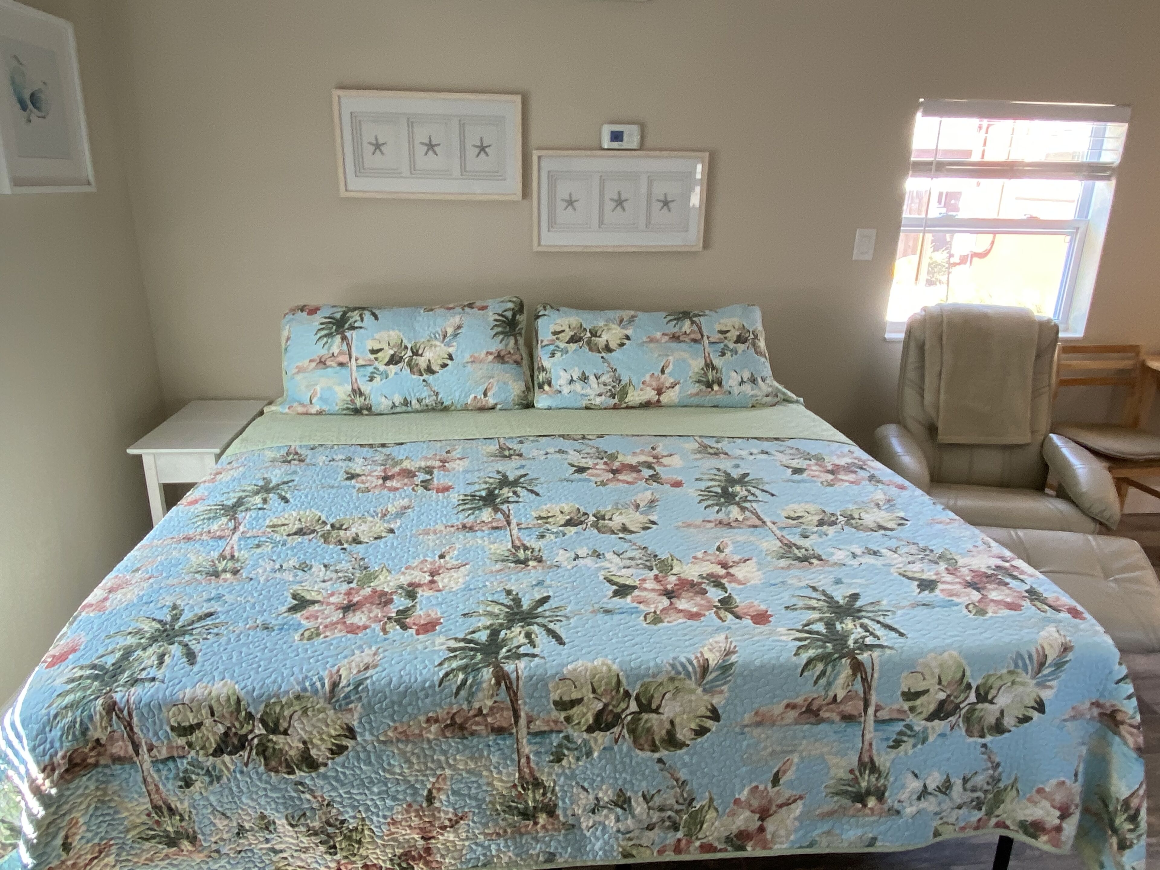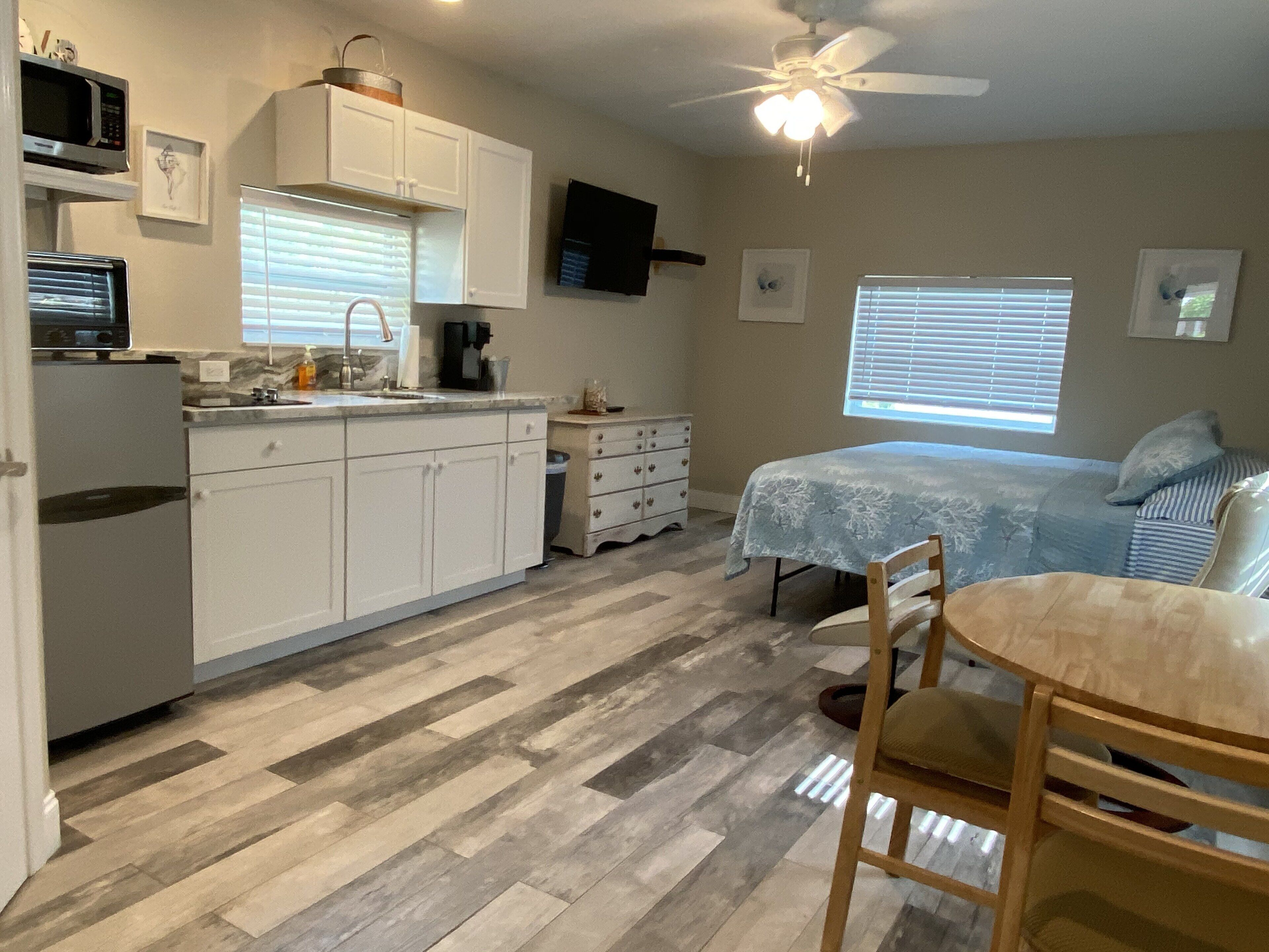 Walk to The Beach and shops “The Sweet” FALL SPECIAL stay 2 get 3rd free! Another one of Island Rum Suites Collection! Super sweet is this little suite! It's clean, beachy, walking distance to Indian Rocks Beach, local shopping, restaurants, nature parks, trails, marina, fishing and even a water park! Guest will park in the marked parking area and follow the shell walkway to "The Sweet" There is plenty of lighting if you should arrive late. The lights are motion sensor and solar. This unit sleeps 2 comfortably on a King Size bed. It has a stall shower, high rise toilet and a vanity with plenty of lighting. All bath towels, beach towels, beach chairs, cooler, and clean fresh linens are included. The well stocked kitchen for cooking and dining, medium size refrigerator, toaster oven, microwave, coffee maker, a 2 burner stovetop and cookware. There is free WiFi....BLAZING fast Spectrum internet and a TV with access to all the streaming services. Some are free or you can login to your own Netflix, Hulu HOBGO, etc. Outdoor patio with a charcoal grill for grilling and sunbathing as well as a fire pit. Beach chairs, towels, cooler and beach wagon are provided. Best of all guests receive a local favorite super rummy Island Rum Cake and a gift certificate to PJ's Oyster Bar with every stay! Entry is a keyless touch pad to make it easy for you and we change the code for each guest for safety and security. If you have any questions or concerns any time before or during your stay, please call or text Lynne, we live very close by and can resolve most issues immediately! We also are known for being clean freaks! We do wash all bedding, quilts, pillow shams and blankets between guests, most vacation rentals do not, so you can rest easy knowing this!
