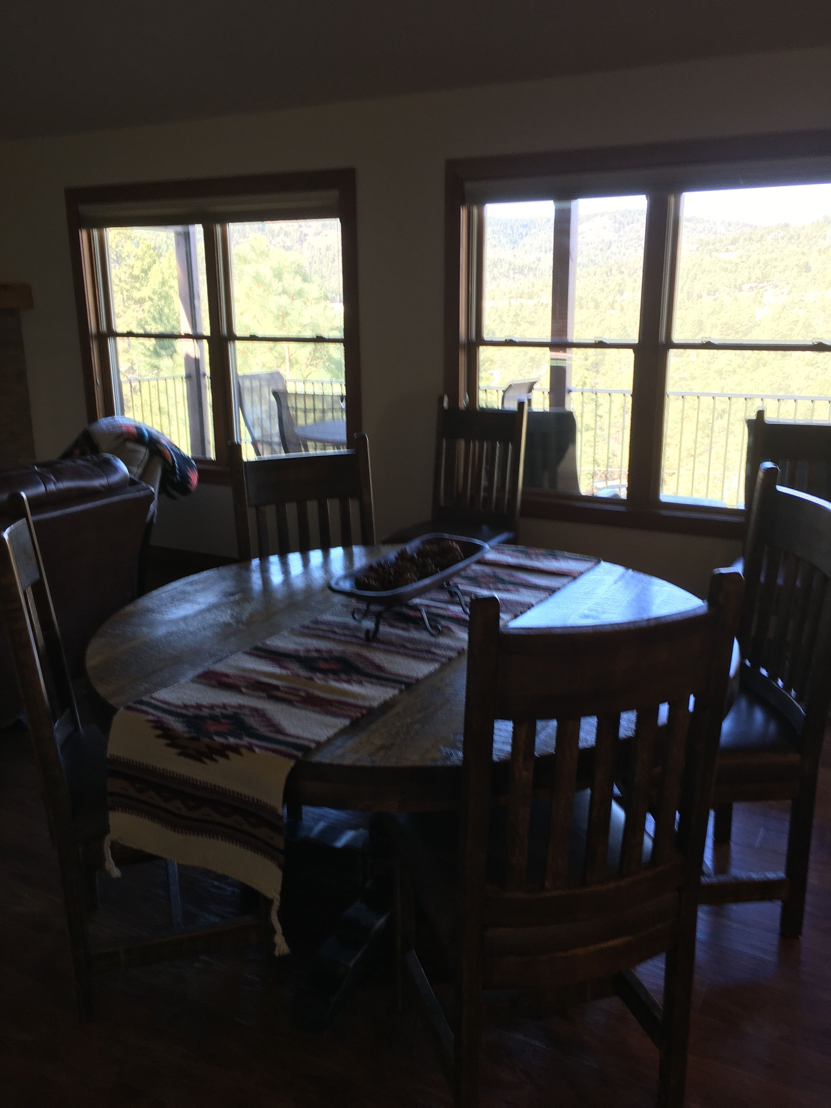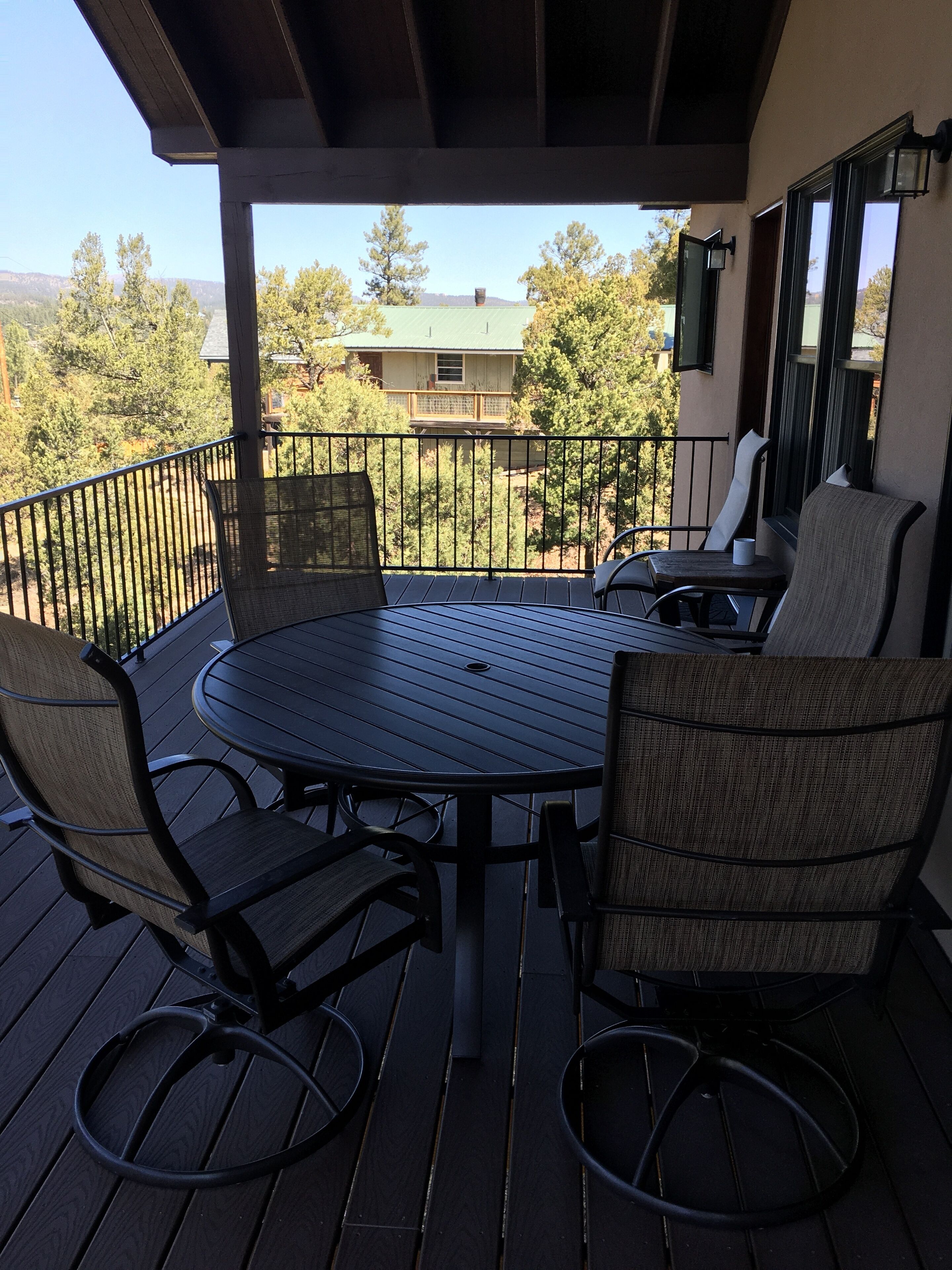 Fabulous view of Sierra Blanco This beautiful three bedroom three bath home was built in 2016. It has everything you need to enjoy your stay in Ruidoso! It is located just three blocks off of main street and has an awesome view of Sierra Blanco!! The main floor has a large deck with table and chairs to enjoy the views! Downstairs is a large media and game room with a deck. The house will comfortably sleep three couples or six people!