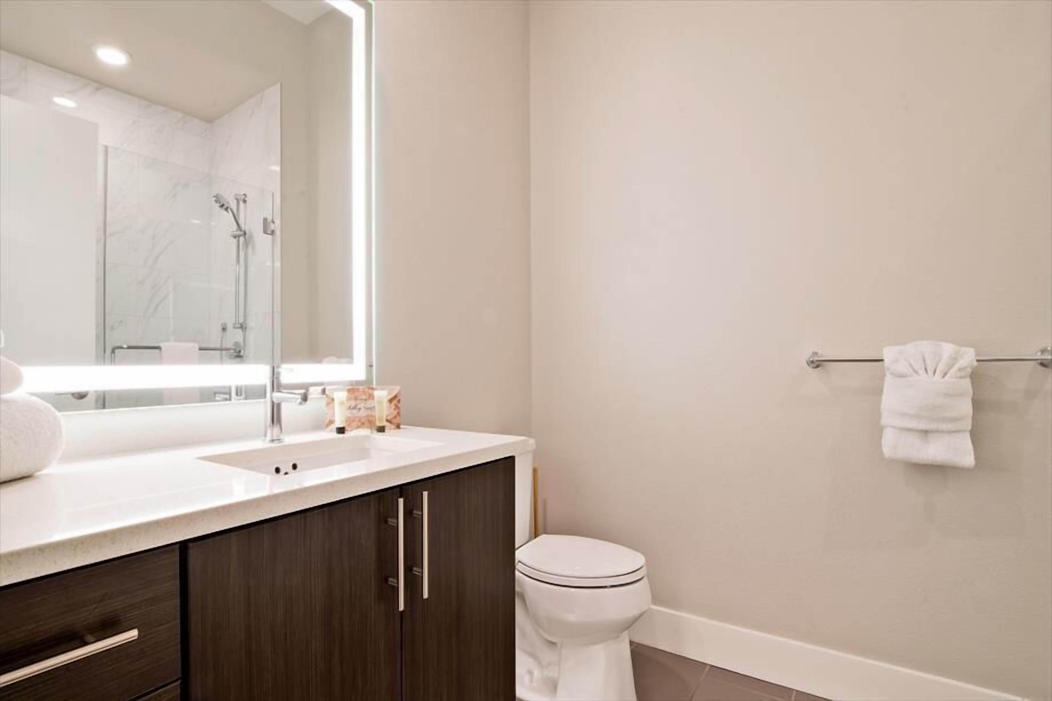Modern 2BR | Ideal for Business | Free WiFi | Downtown Mopuntain View Enjoy California living at its finest in these modern apartments located in downtown Mountain View. This perfect location offers instant access to everything in town, public transportation and highways 85, 101 and 237 with the best amenities. This luxury community features a modern architectural design plus a wonderful outdoor swimming pool and spa, clubhouse, hybrid theatre, kinetic fitness center, and rooftop terrace. Every unit features open floorplans, ample windows, hardwood flooring and fully equipped kitchens.These modern, brand-new apartments are in the middle of all the action in downtown Mountain View and within reach of everything in the Bay Area. Enjoy the sidewalk cafes, restaurants, and unique boutiques of this wonderful town brimming with cultural activities. This community, which is nestled in the Silicon Valley, has been designed with technology and a modern lifestyle in mind. This building features stylish interiors, large common and lounge areas, and facilities like a kinetic fitness center and a hybrid theater. Each unit offers fully equipped kitchens with stainless steel appliances, large windows, high ceilings, open floor floorplans, and hardwood flooring. Enjoy the outdoor spaces of this wonderful community, including a rooftop terrace with a beautiful pool and spa.At Global Luxury Suites, your wellbeing is our top priority, therefore, we are following the CDC guidelines to ensure your safety. All apartments are thoroughly cleaned after each resident has checked out and before another guest checks in. All linens are changed and surfaces are sanitized (handles, windows, appliances, countertops, furniture, etc.). In addition, our teams will be fully sanitizing common areas such as business centers and recreation rooms for guests’ safety.Photos are representative of the actual apartment. There may be differences in furniture and layouts of assigned unit.